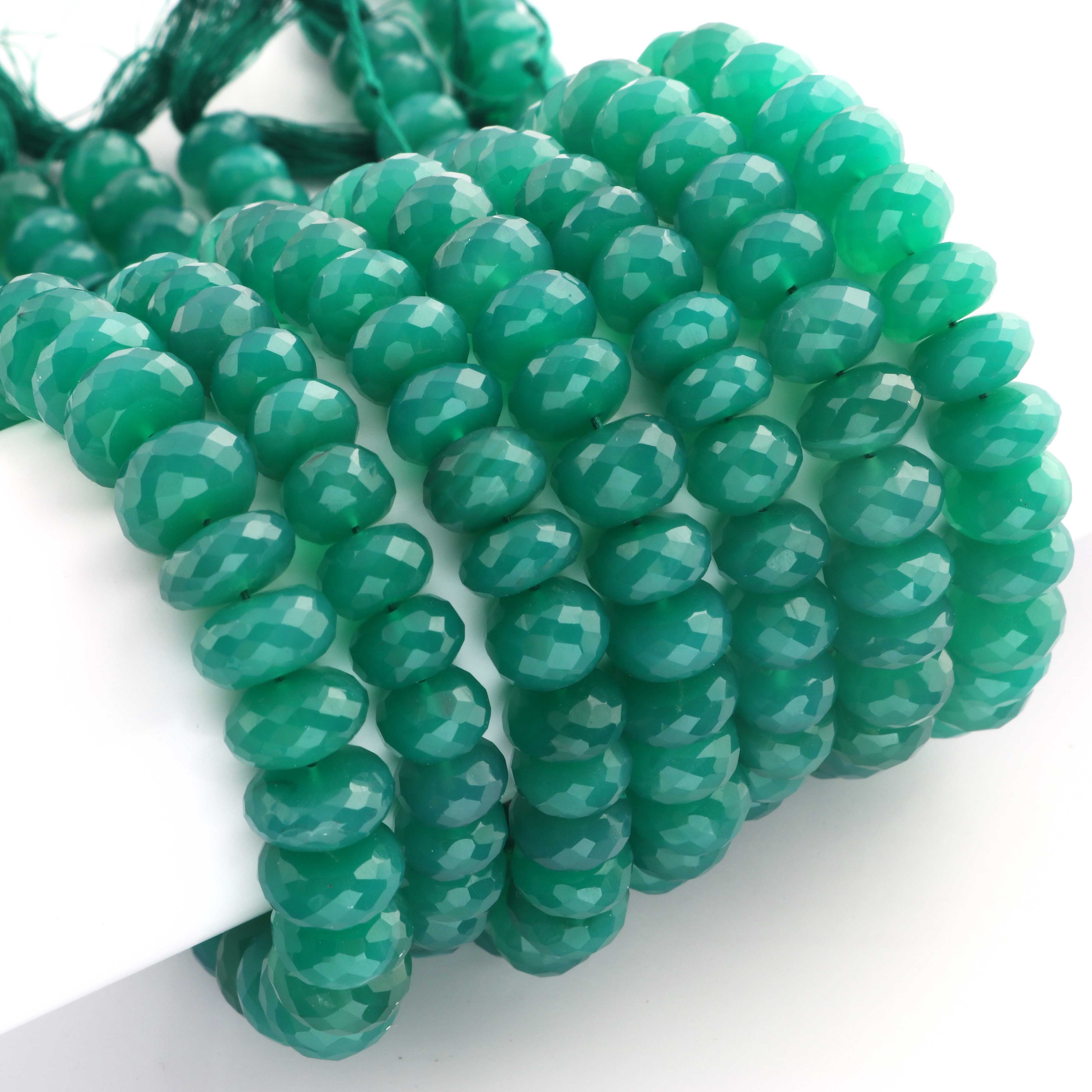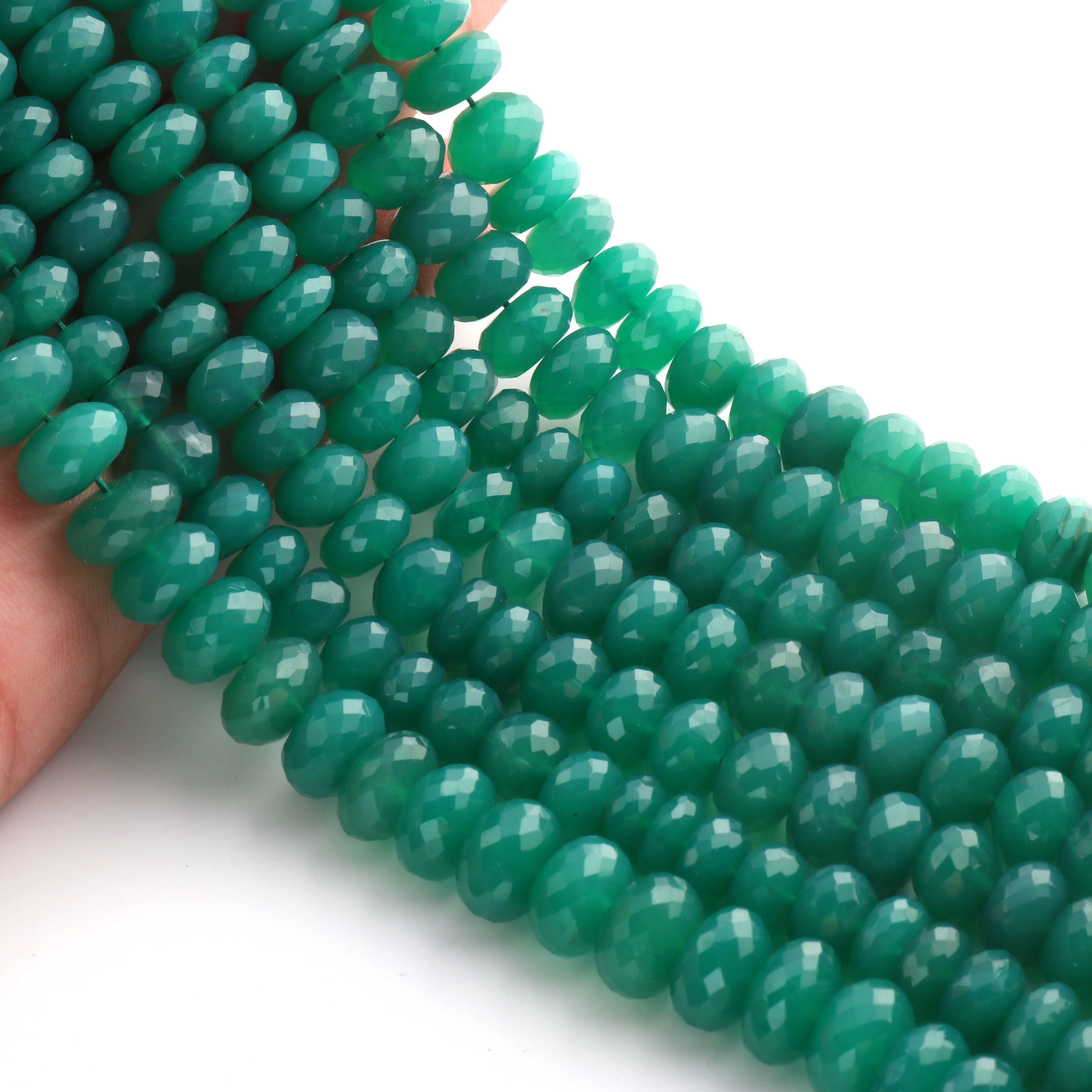 1 Strand Green Onyx Faceted Rondelles Beads-Semi Precious Gemstone Roundelles Beads 8mm-13mm - 9 Inches BR02023