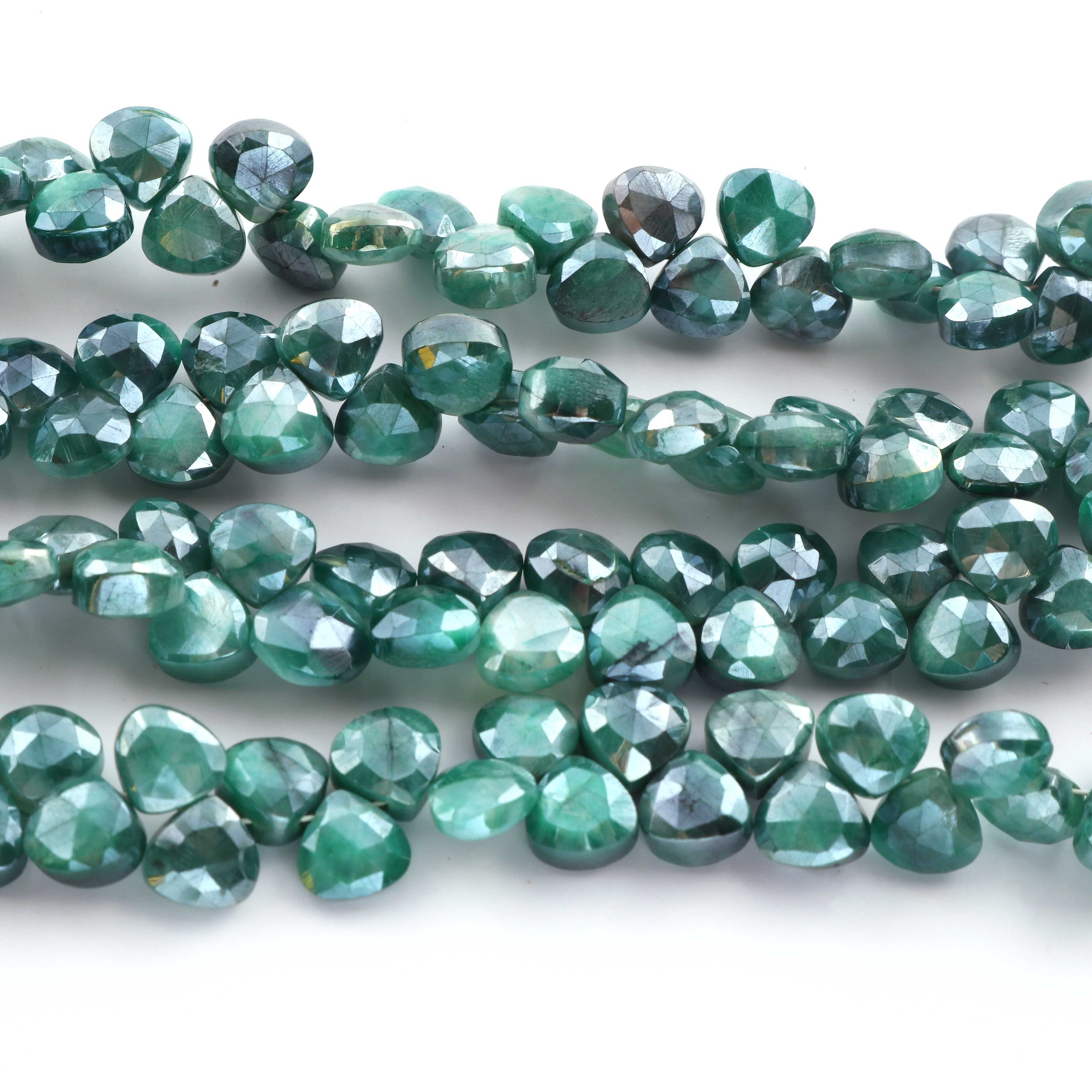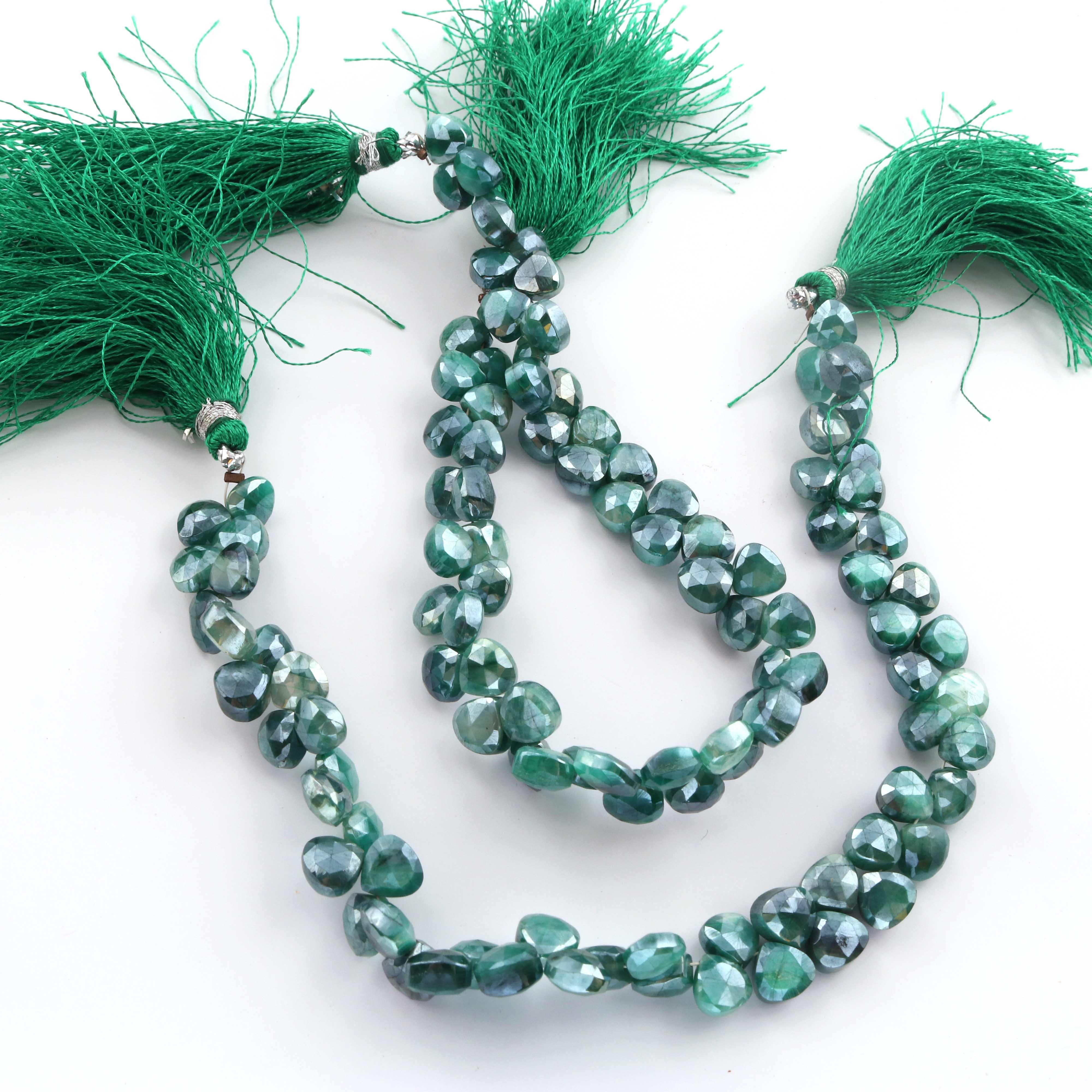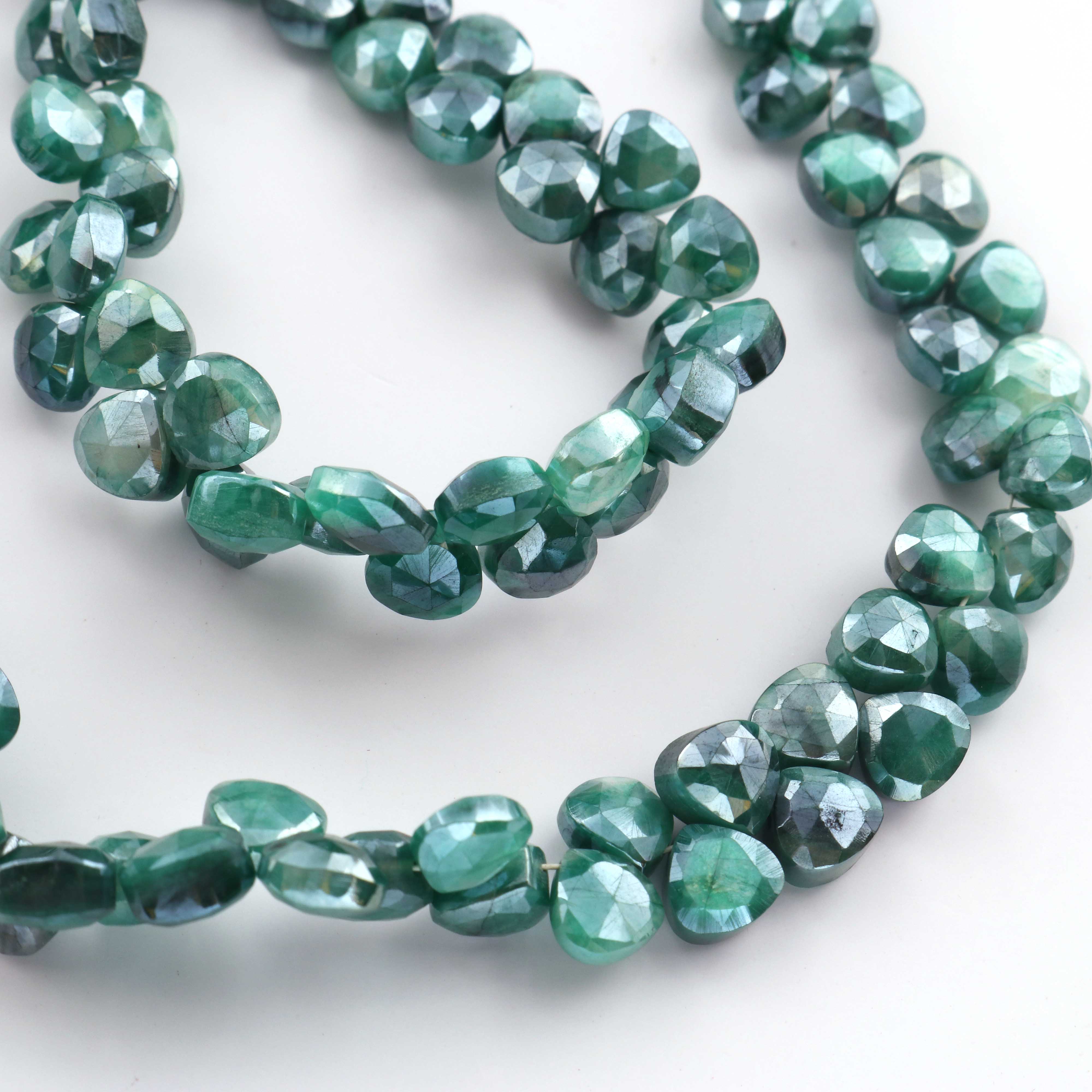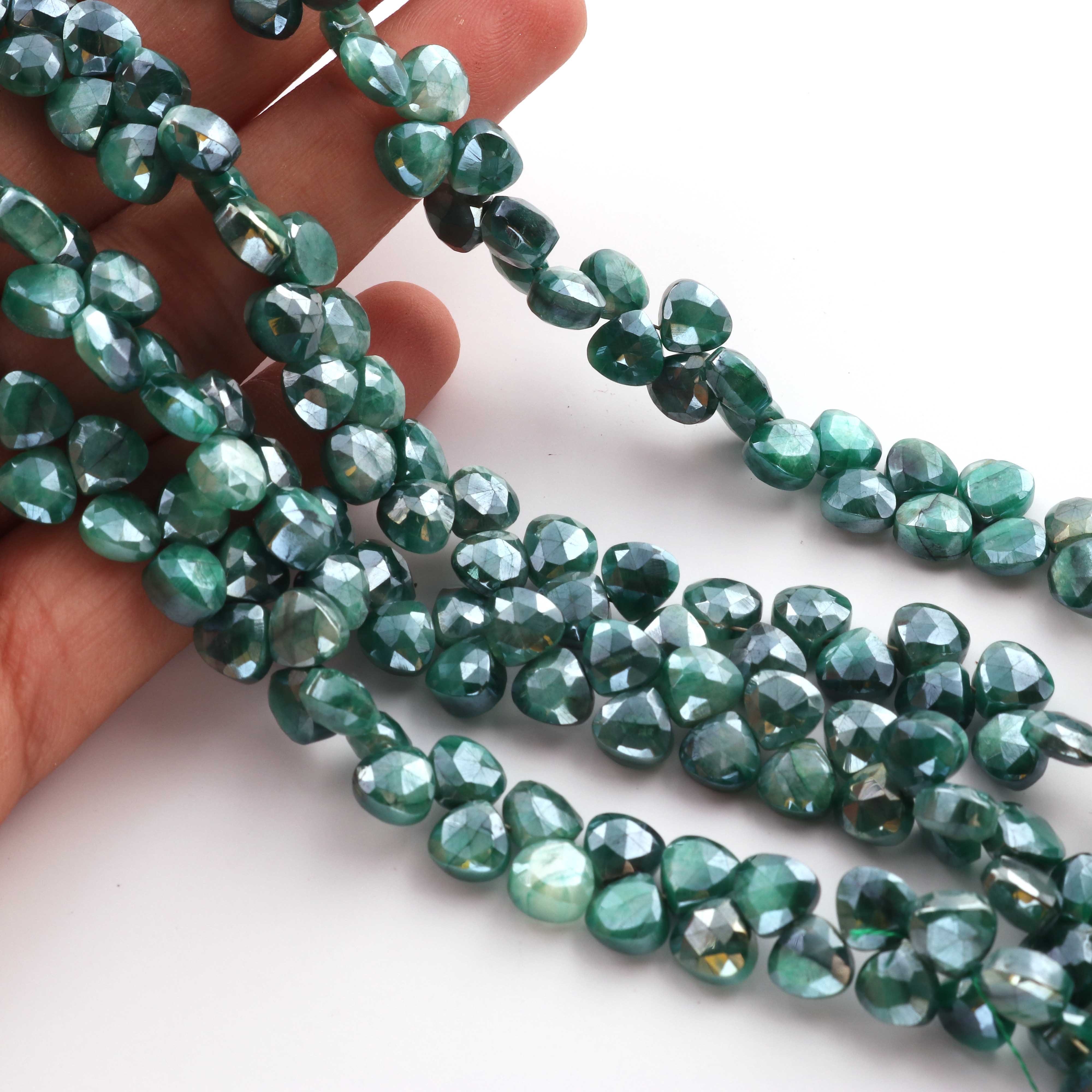 1 Strand Green Silverite Faceted Briolettes -Heart Shape Briolettes -7mm -8mm-10 Inches BR317
