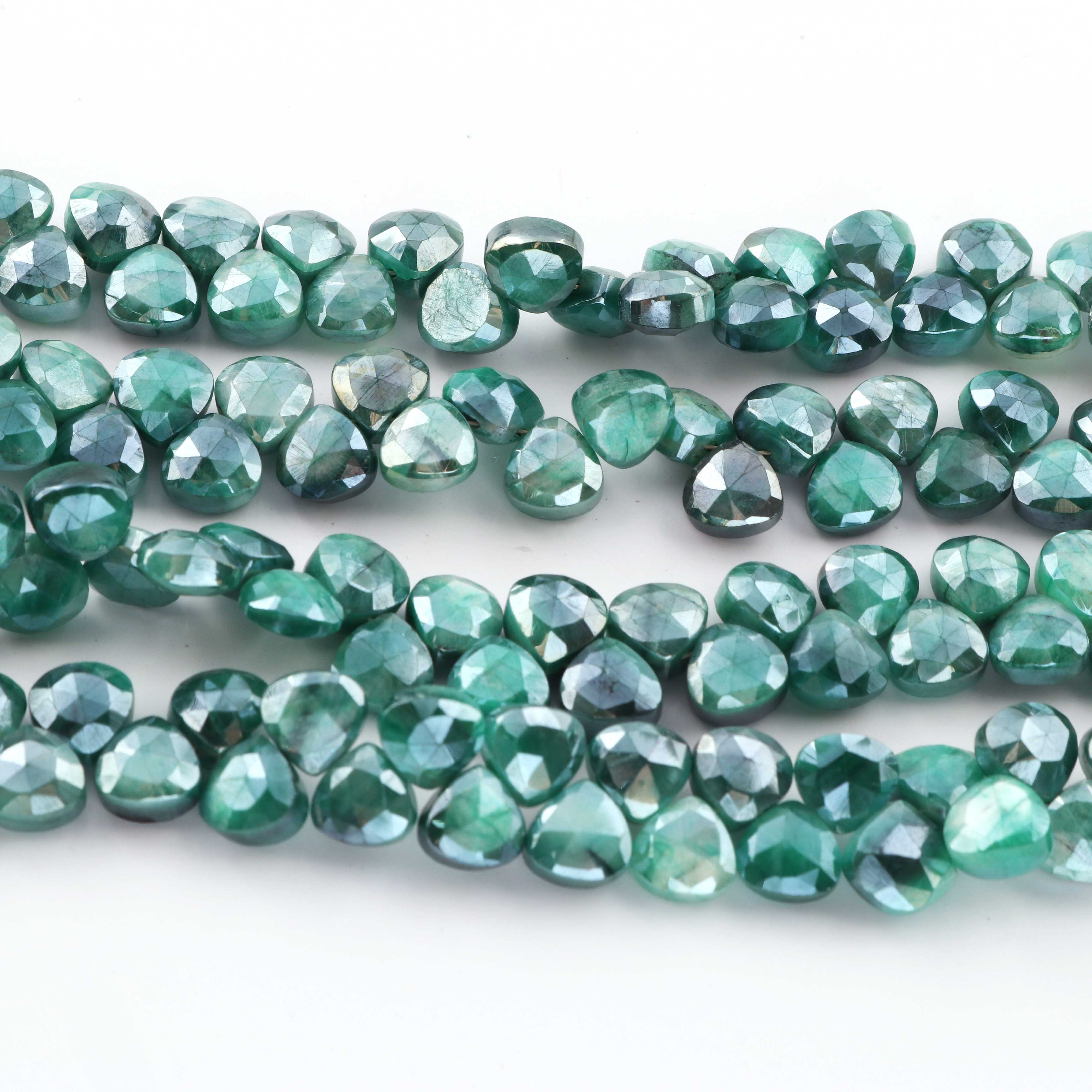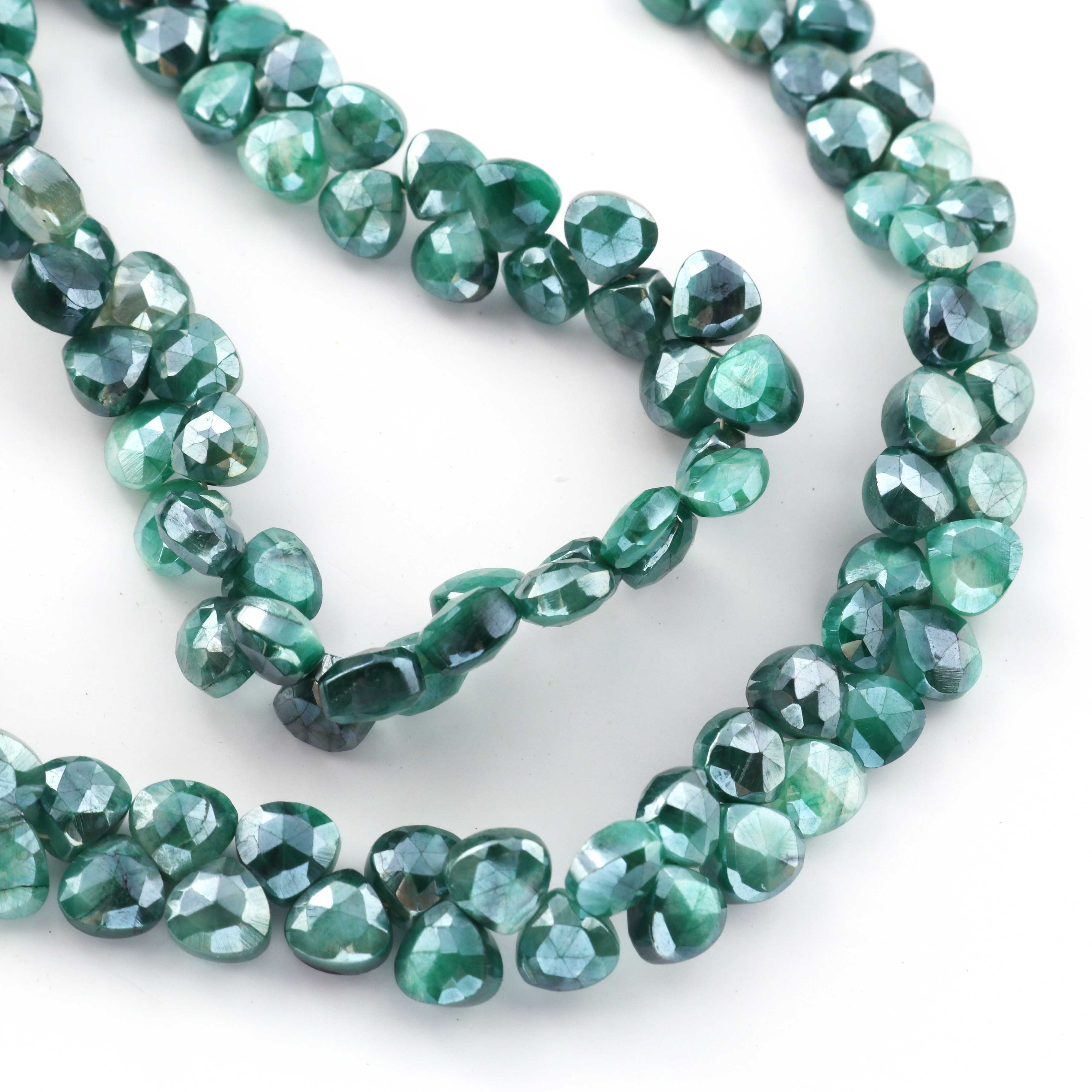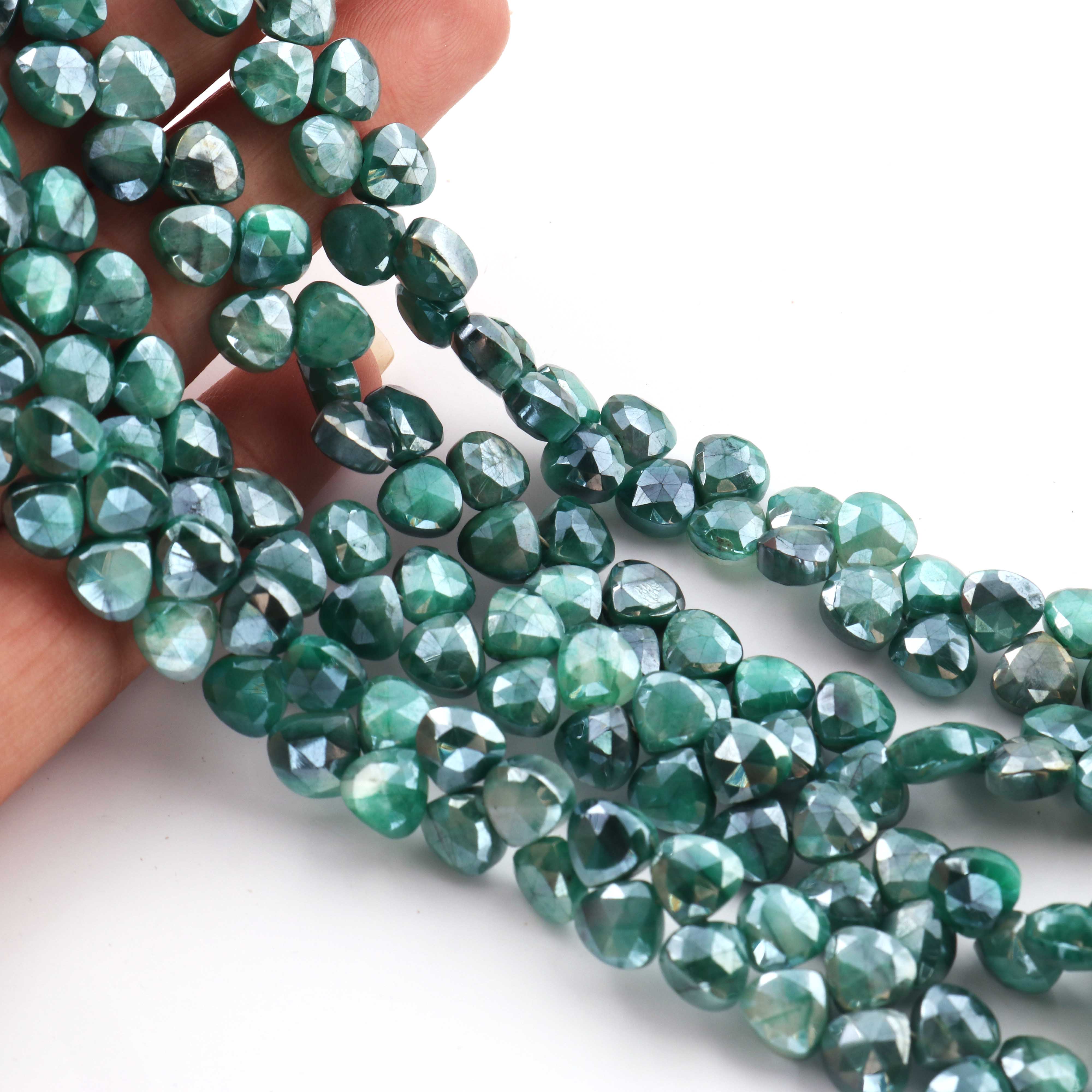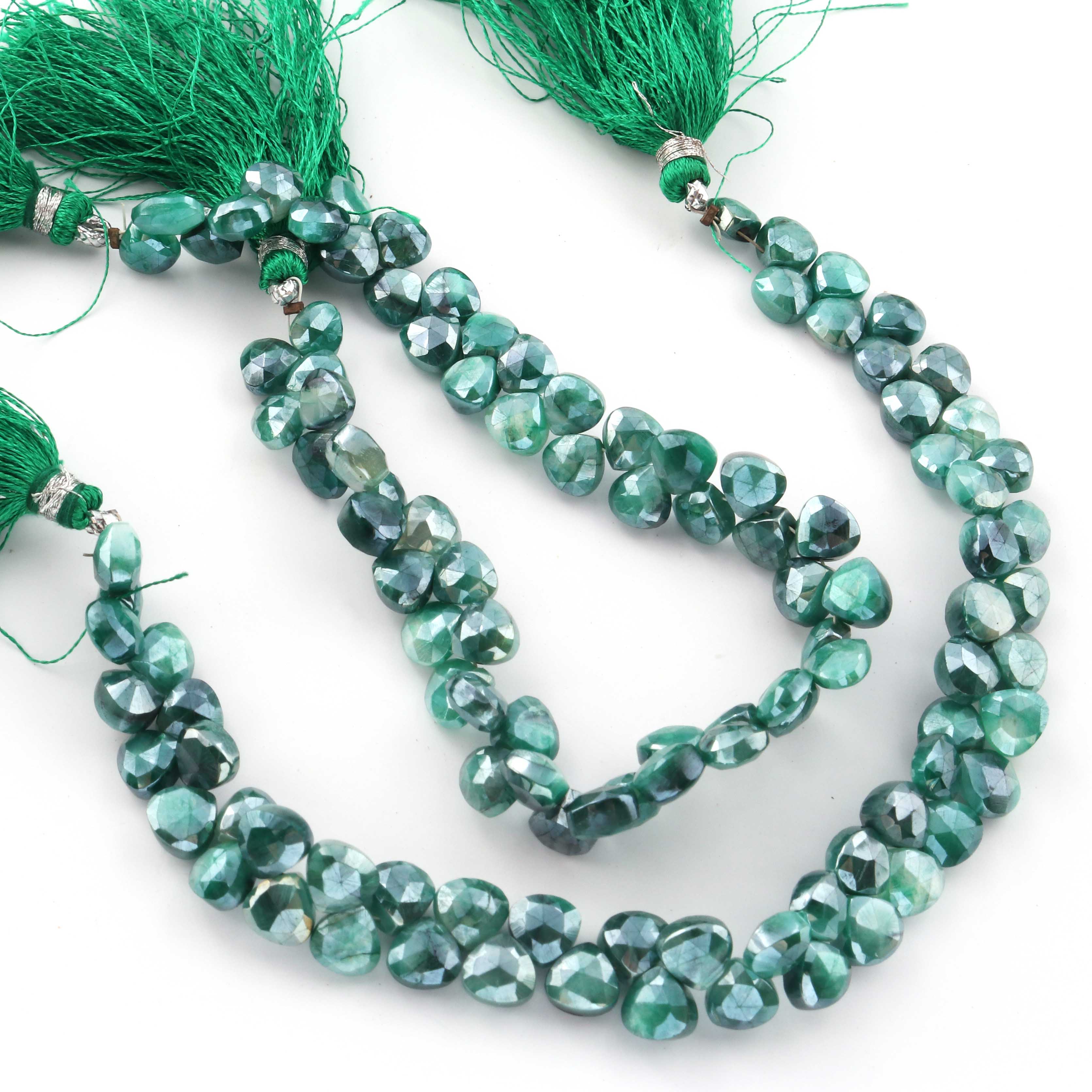 1 Strand Green Silverite Faceted Briolettes -Heart Shape Briolettes -7mm -8mm-10 Inches BR317