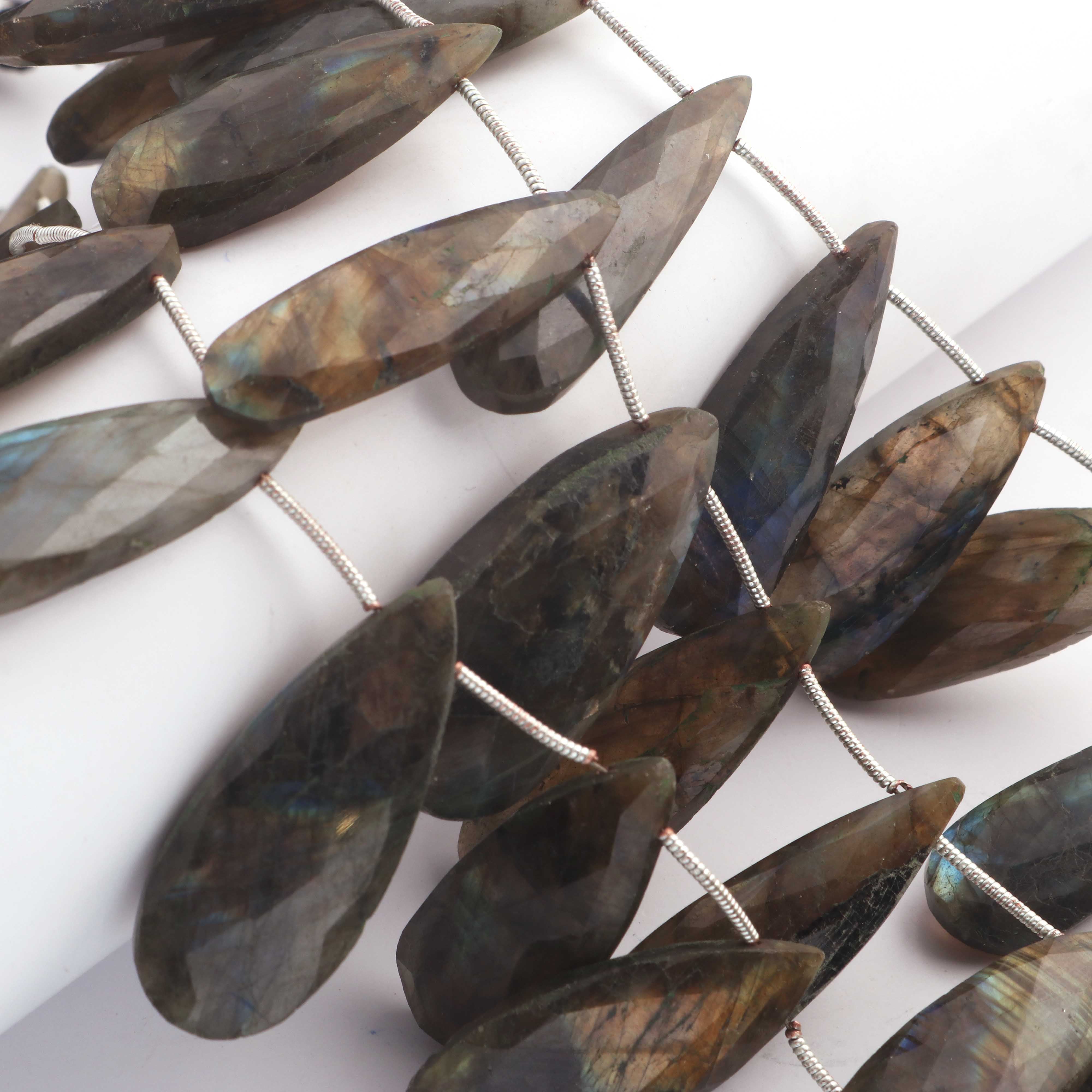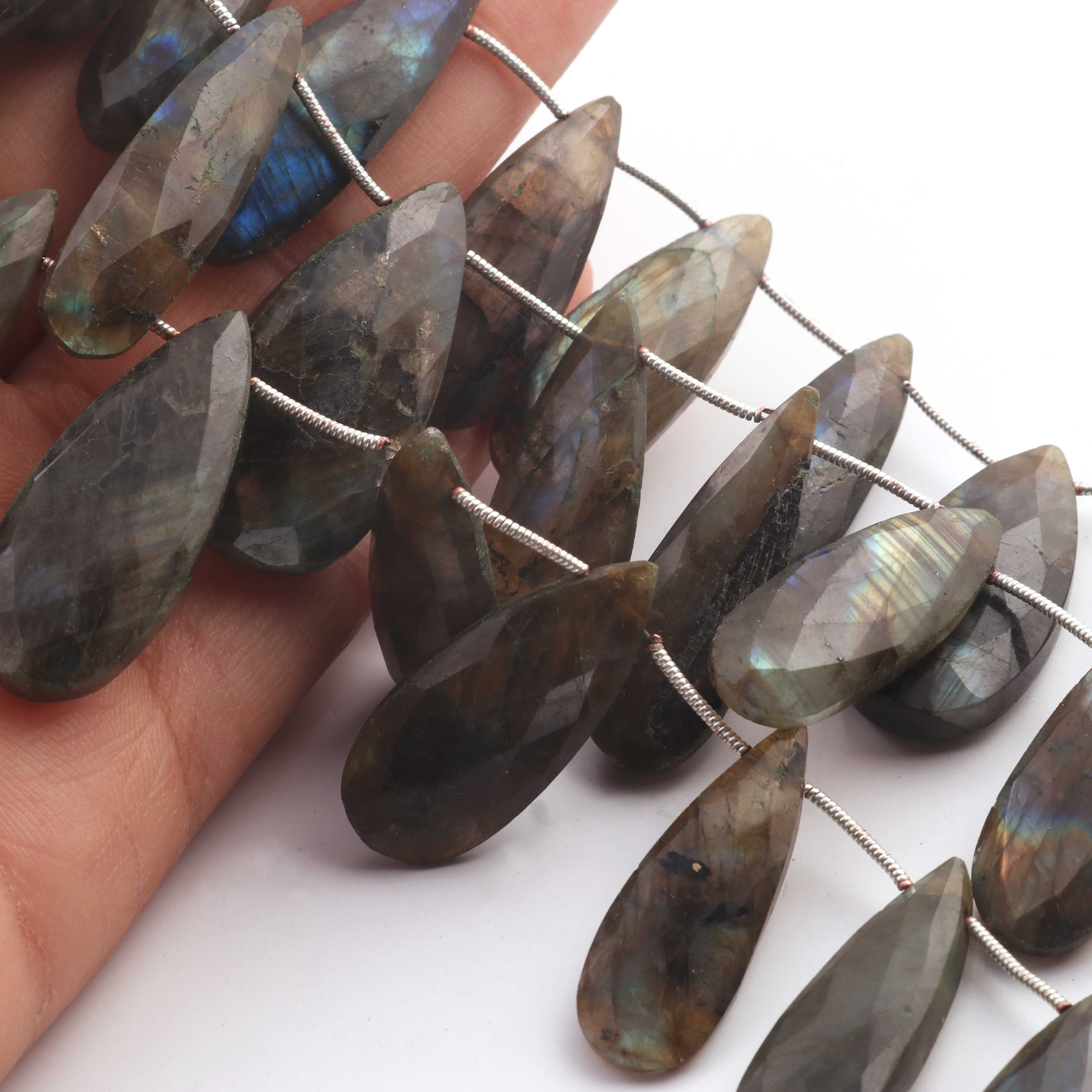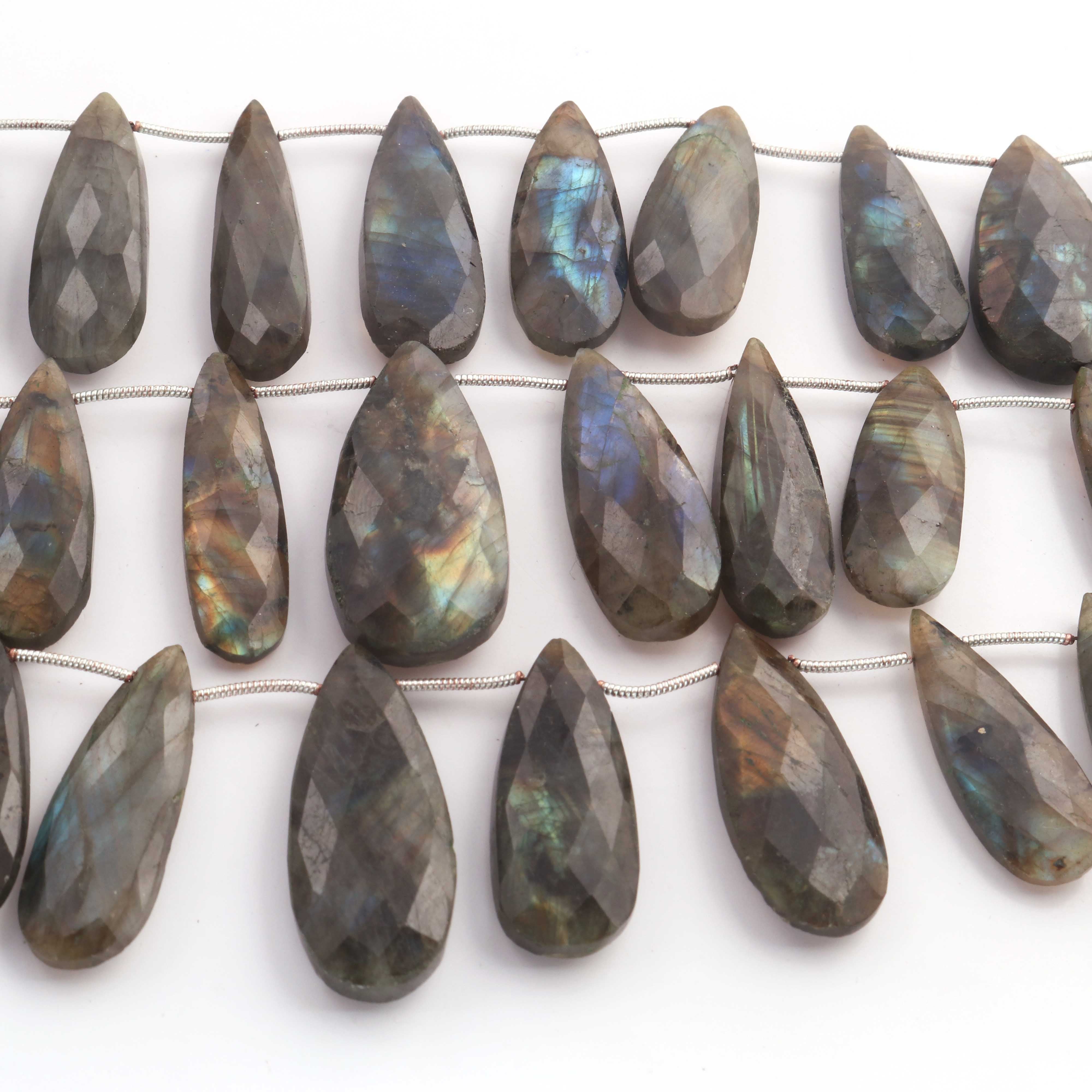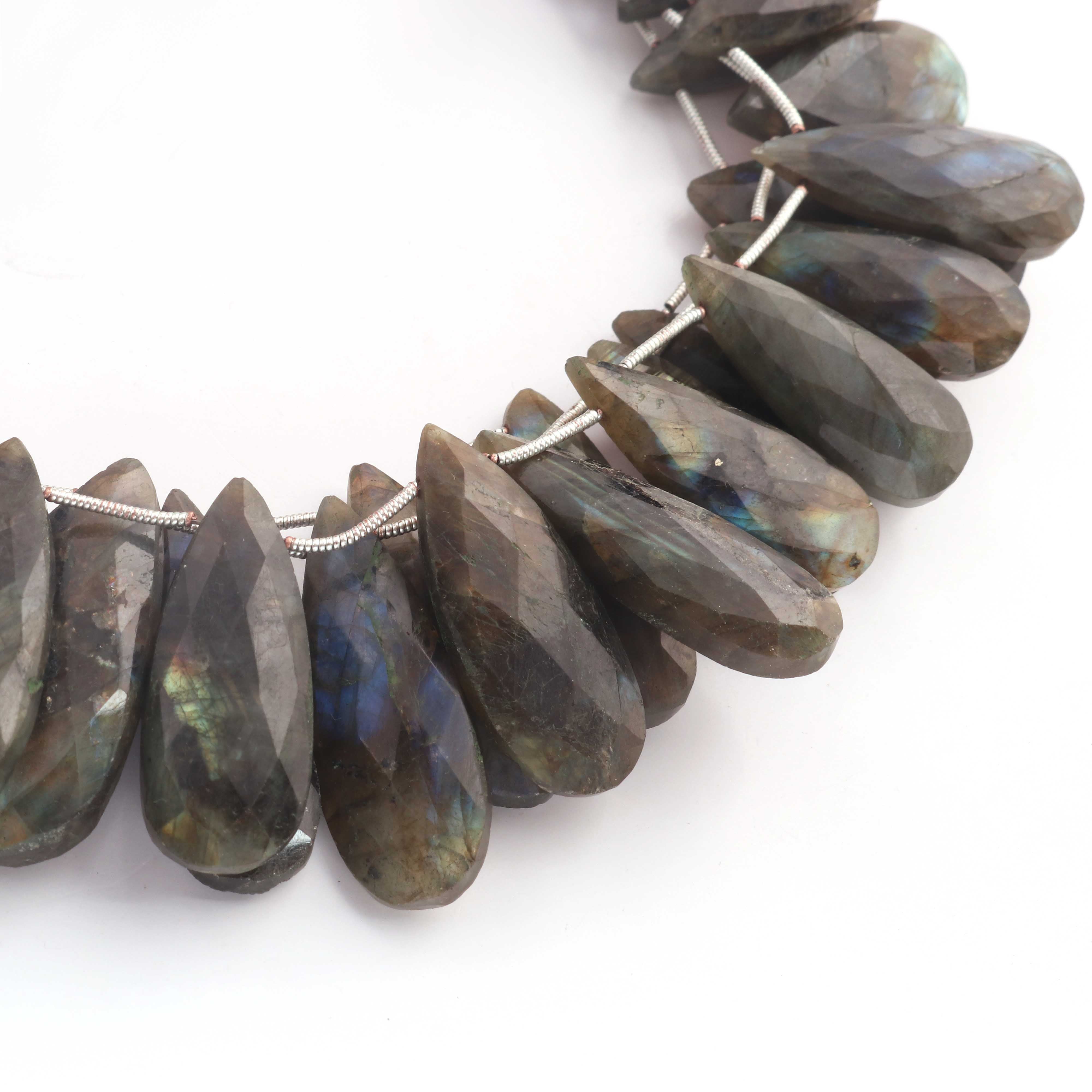 1 Strand Labradorite Faceted Briolettes - Long Pear Shape Briolettes -21mmx12mm-35mx13mm-9 Inches BR1116