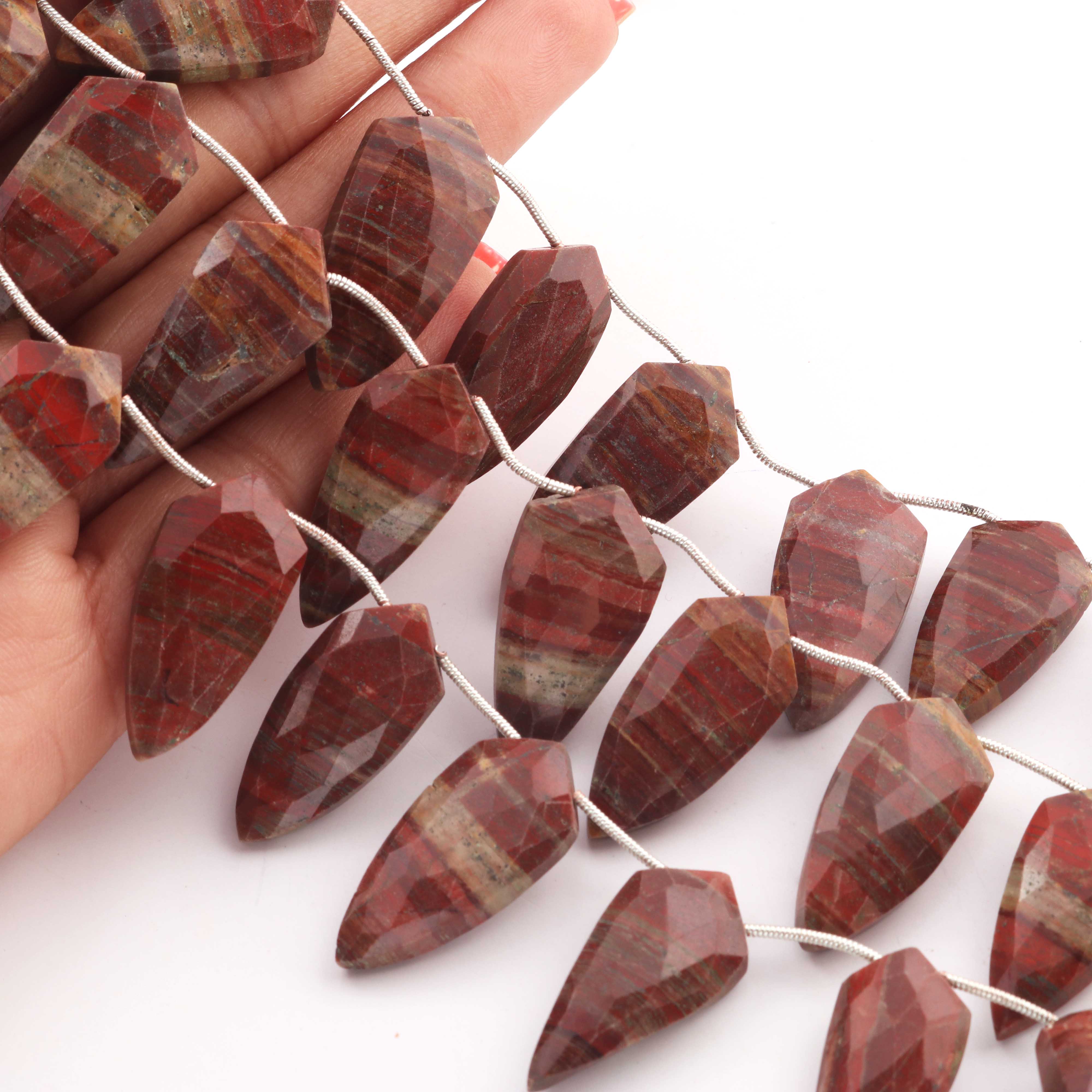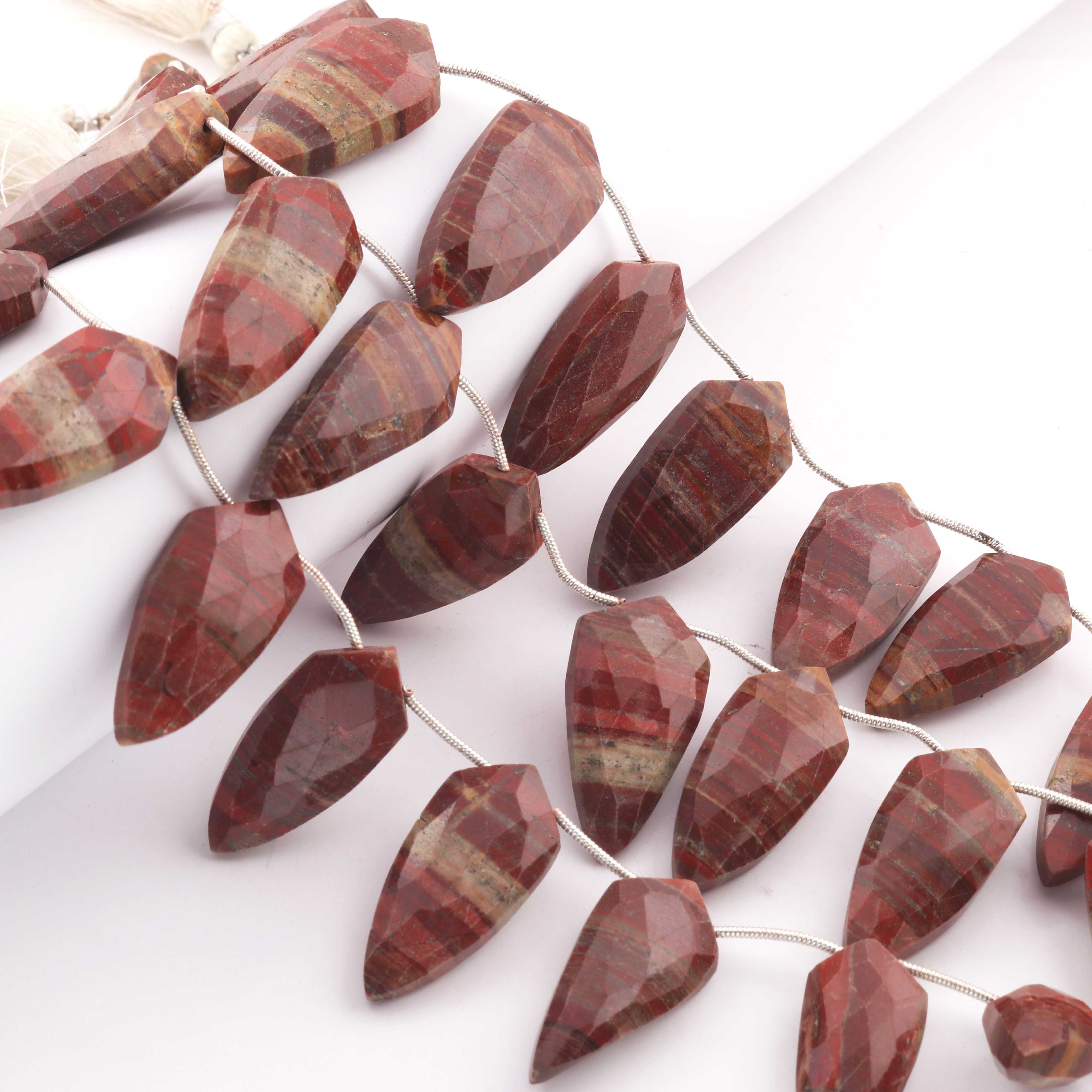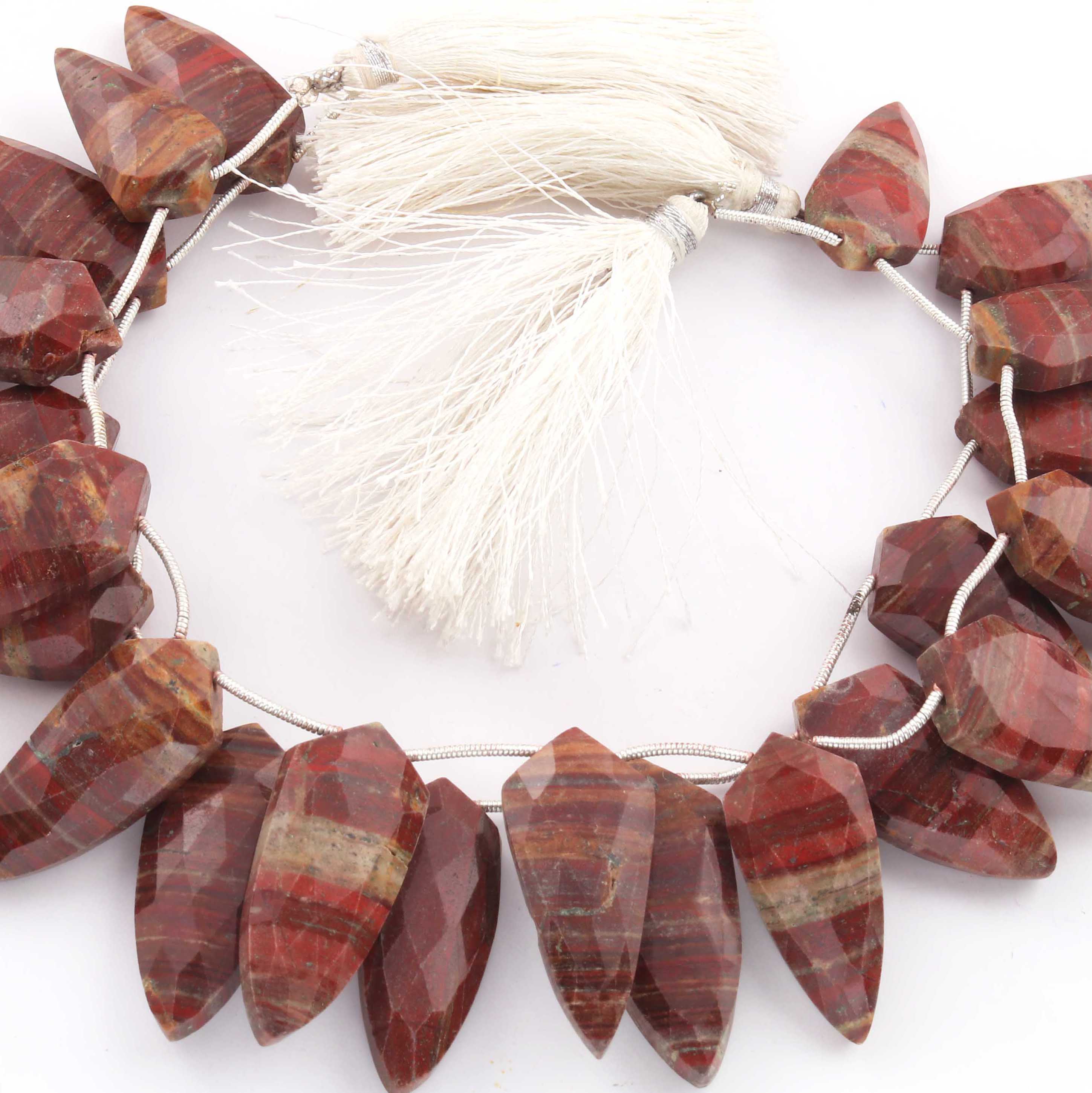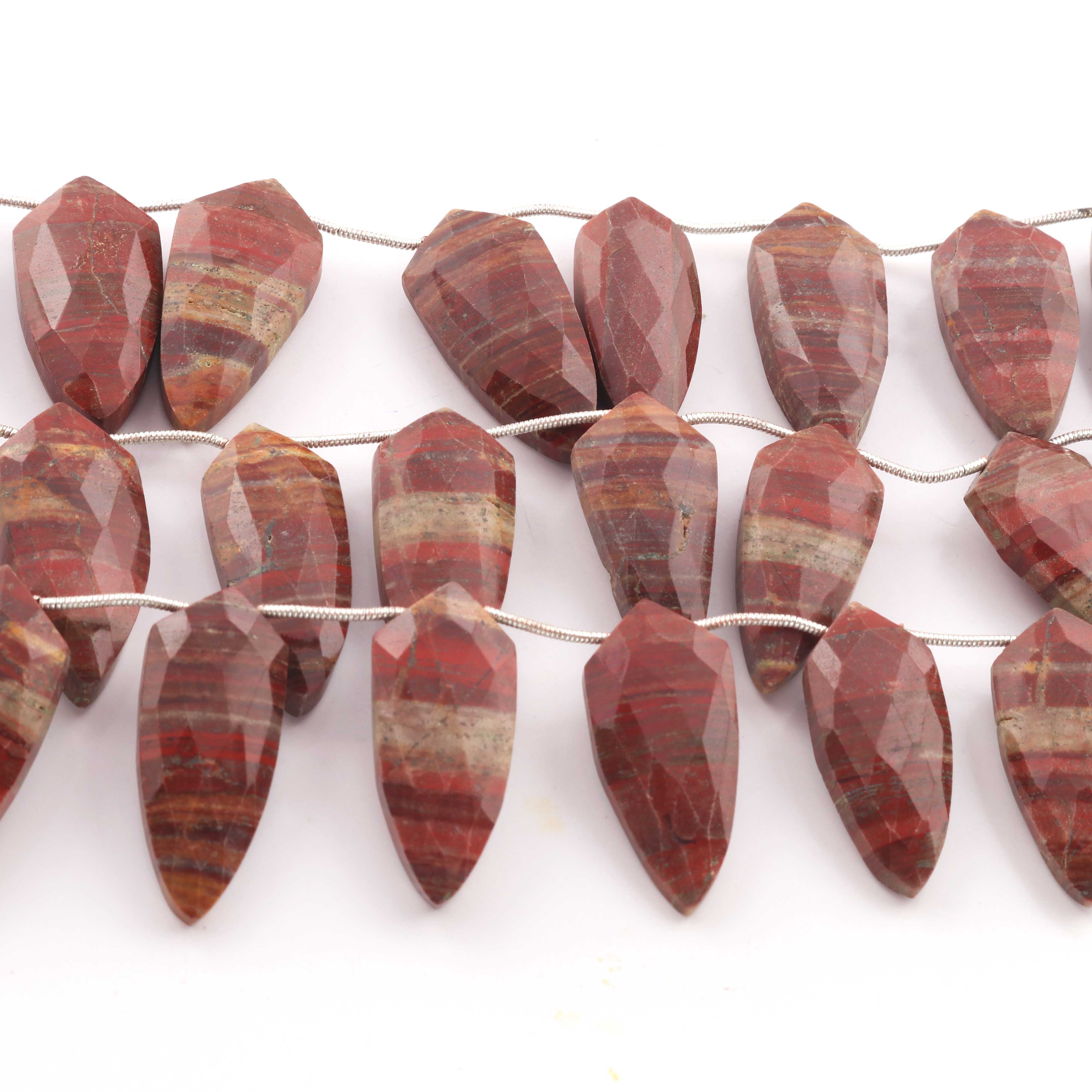 1 Strand Mexican Fire Agate Faceted Briolettes - Fancy Shape Briolettes -20mmx12mm-32mmx15mm - 9 Inches BR03402