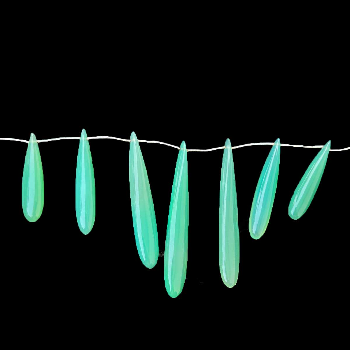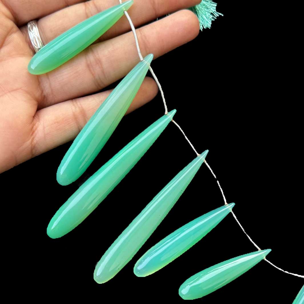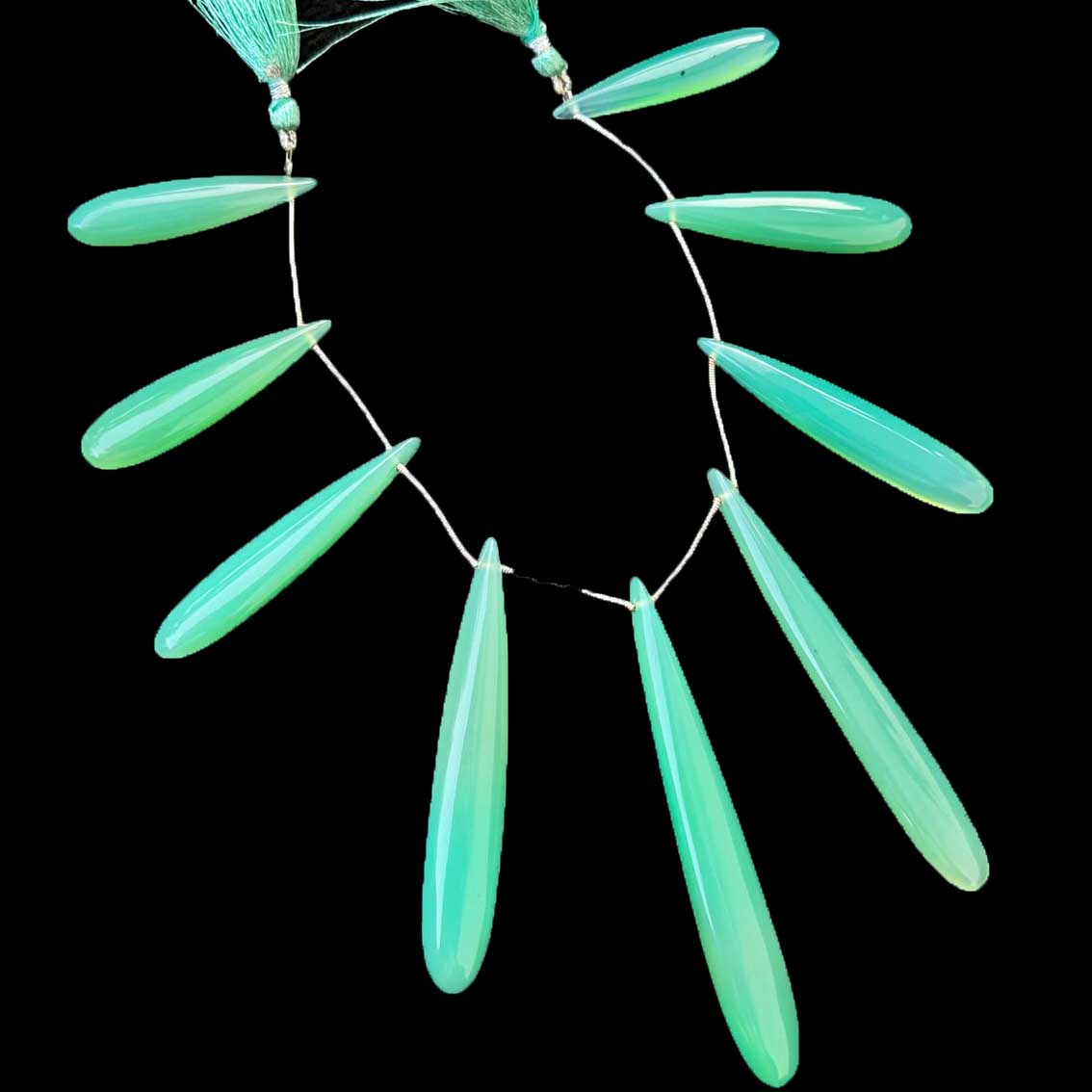 1 Strand Mint Green Chalcedony Smooth Briolettes -Long Tear & Pear Drop Briolettes - 40mmx9mm-78mmx11mm 8 Inches BR1022