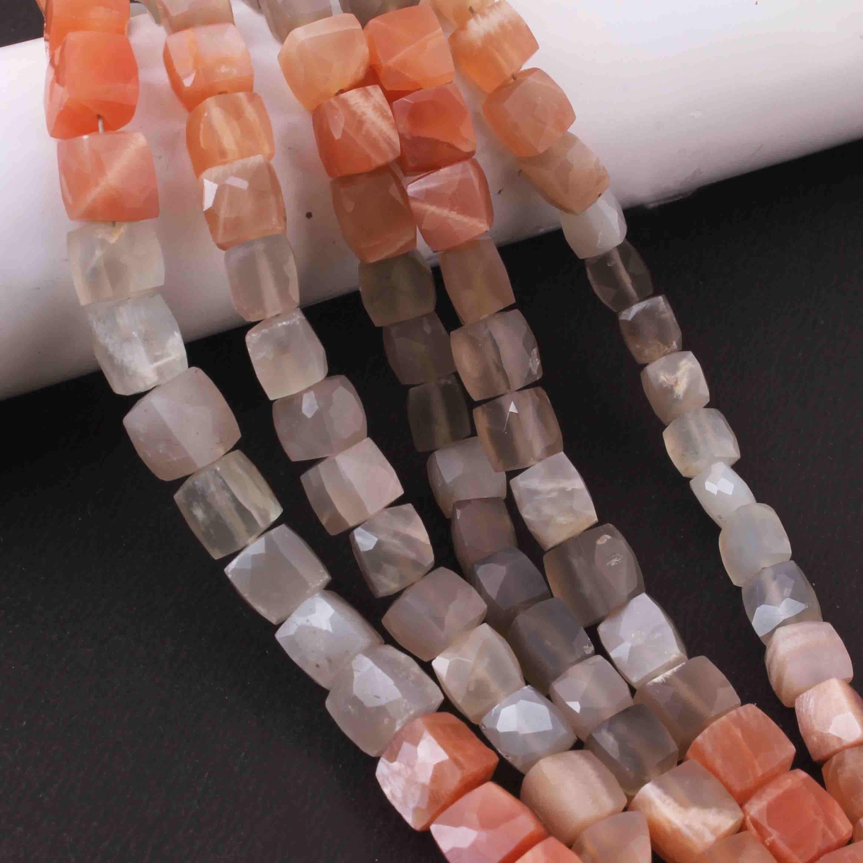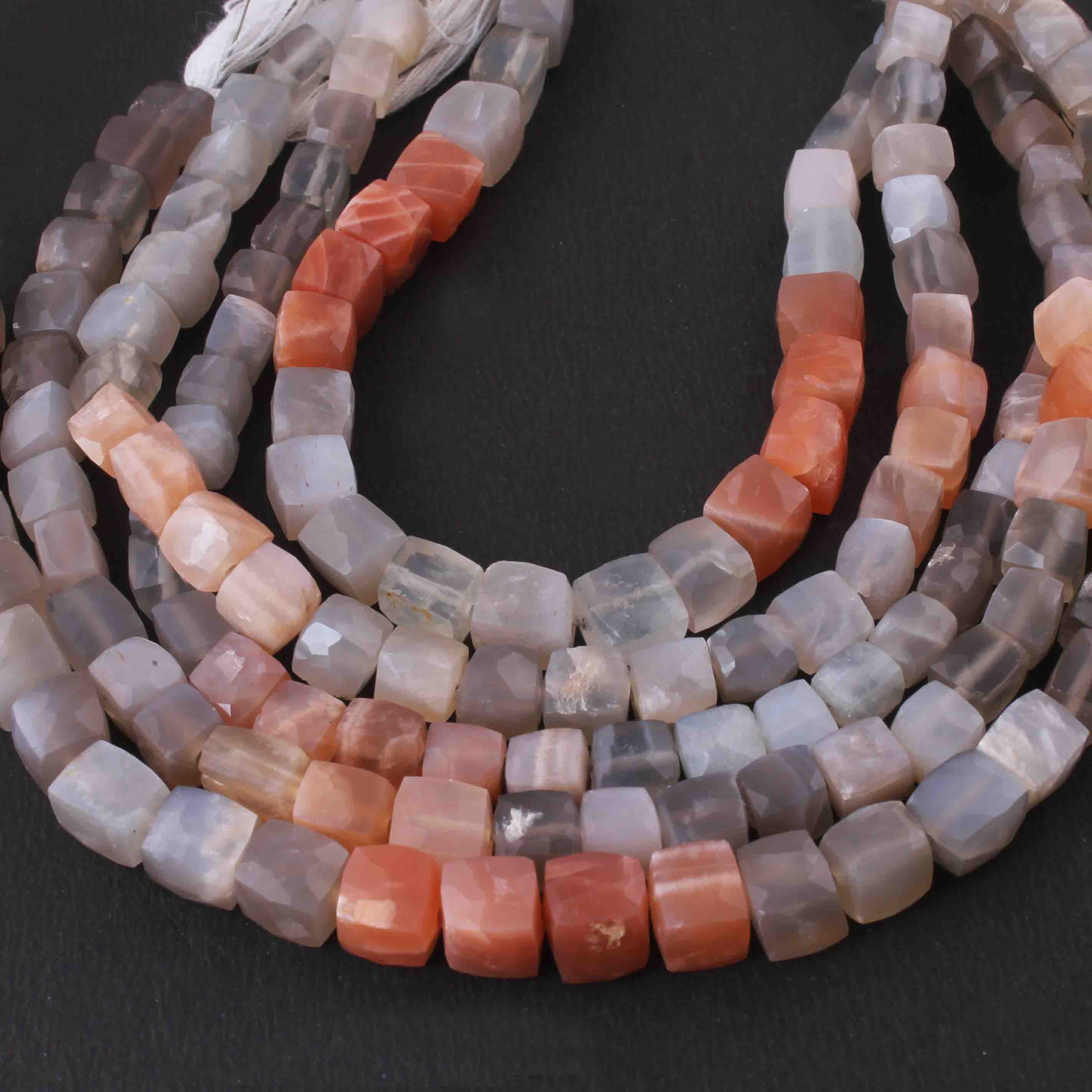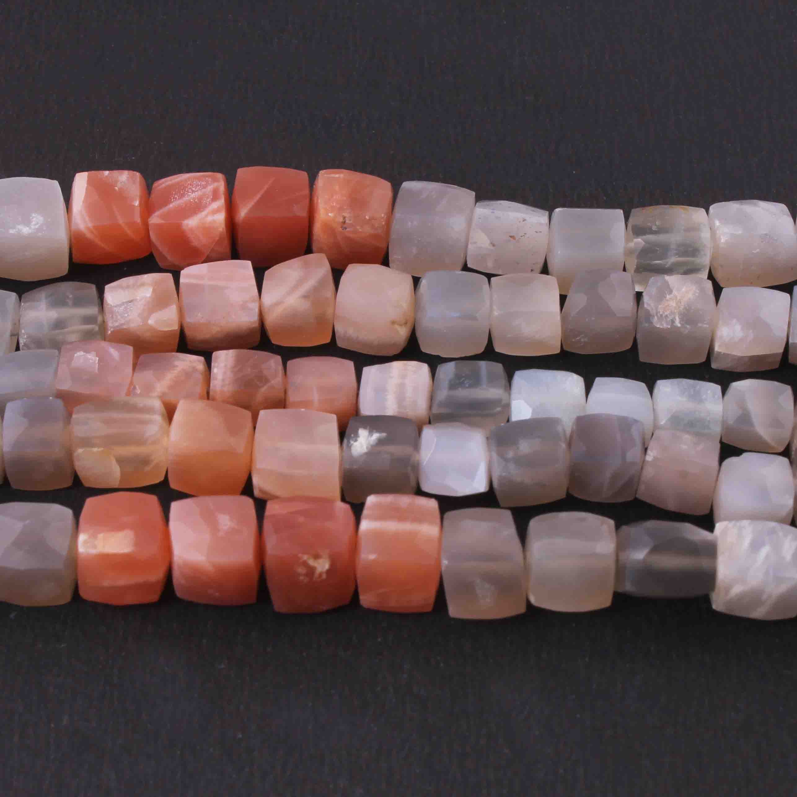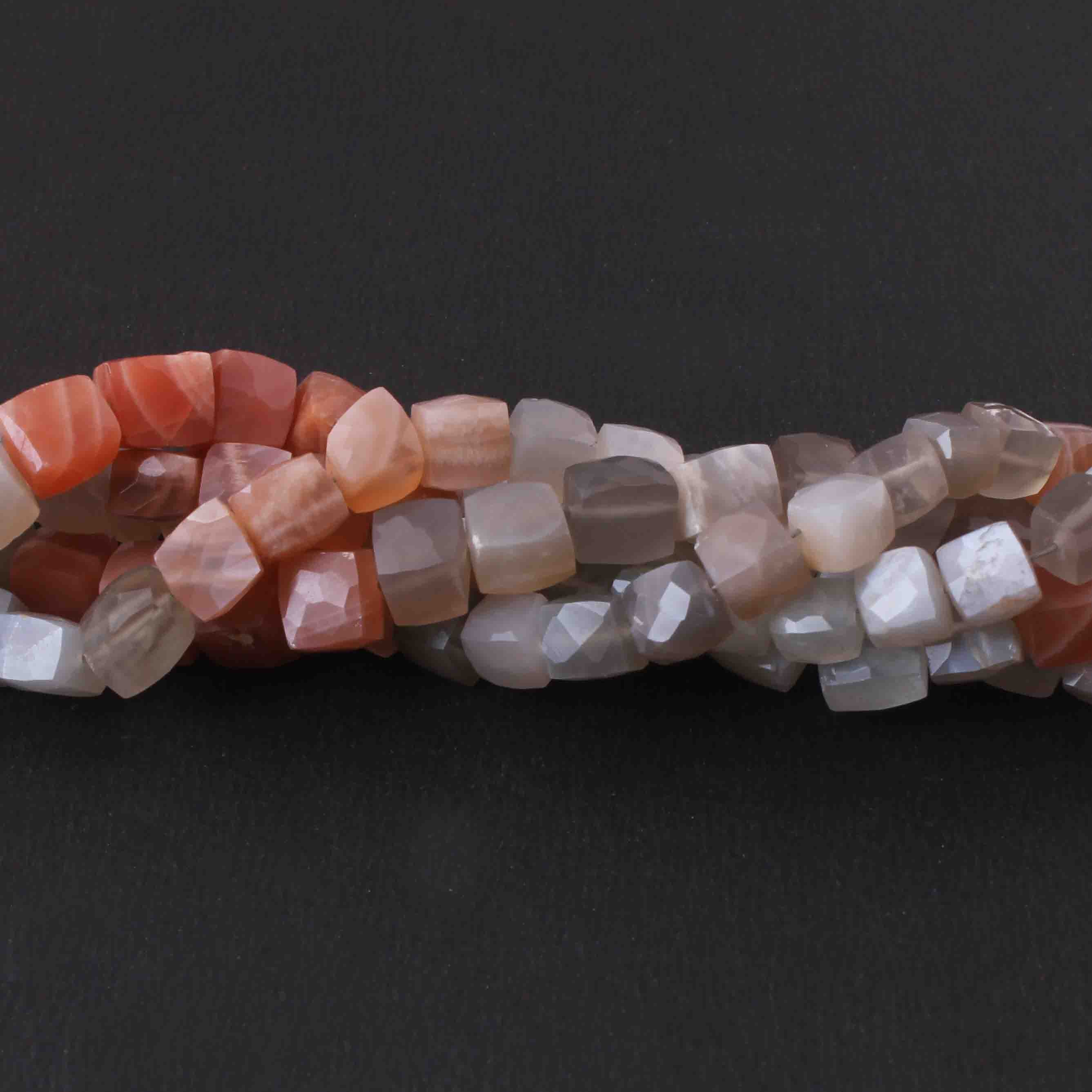 1 Strand Multi Moonstone Cube Shape Faceted Briolettes - 5mm - 7.5 inches BR3283