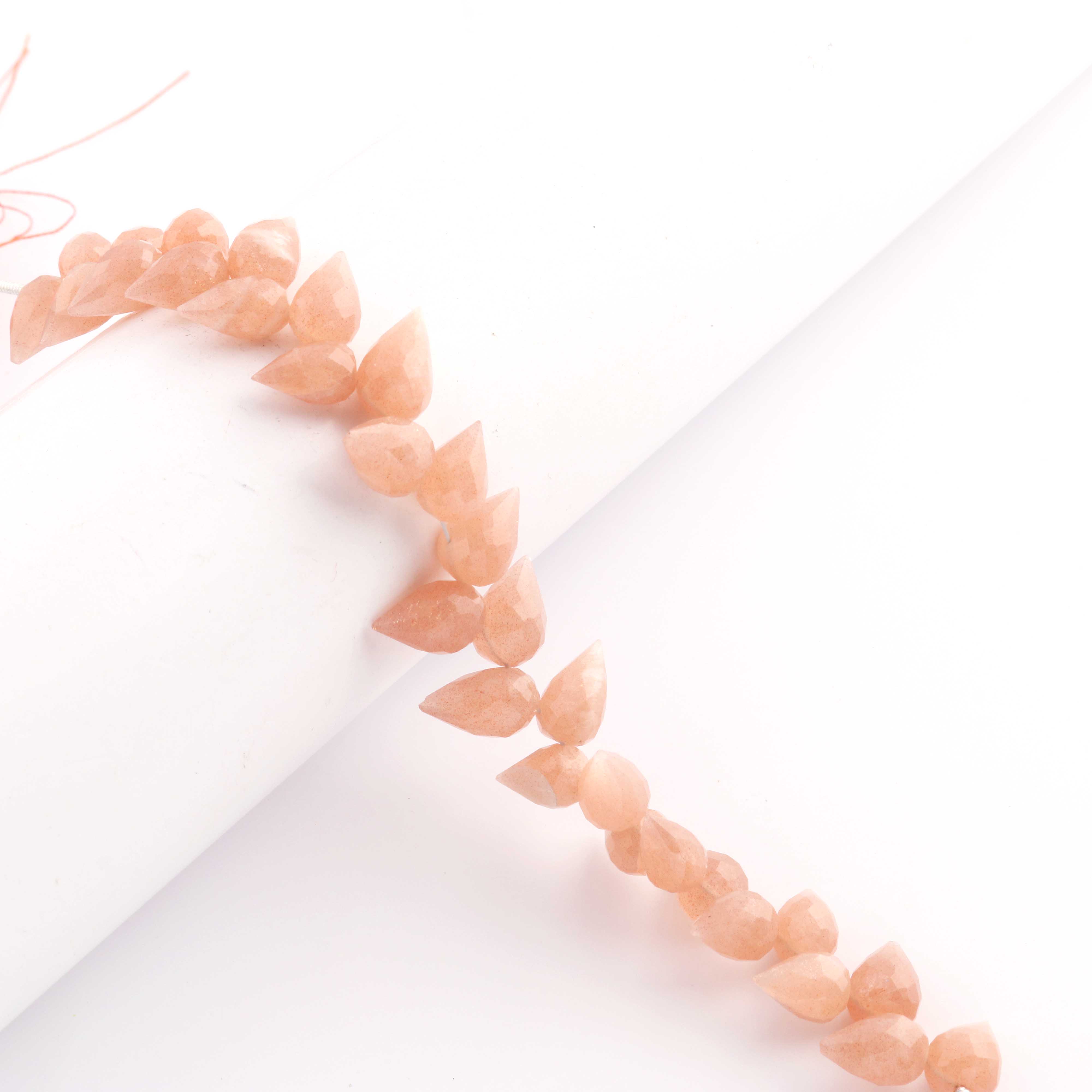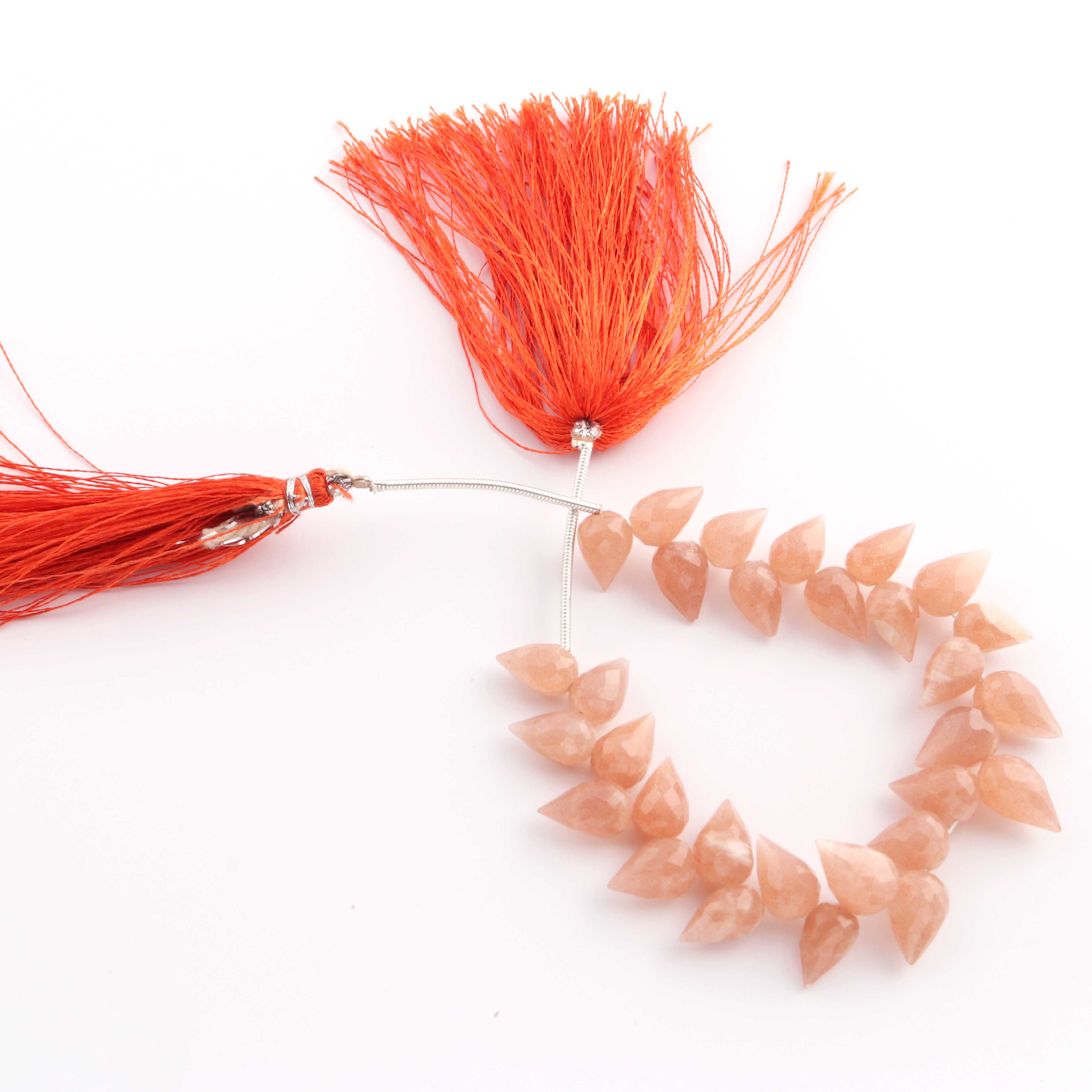 1 Strand Natural Peach Moonstone Faceted Tear Drop Briolettes - Semi Precious Gemstone Water Drop- Beautiful Jewelry Making Briolettes Beads - 9mmx6mm-10mmx7mm - 7 Inches - BR3565