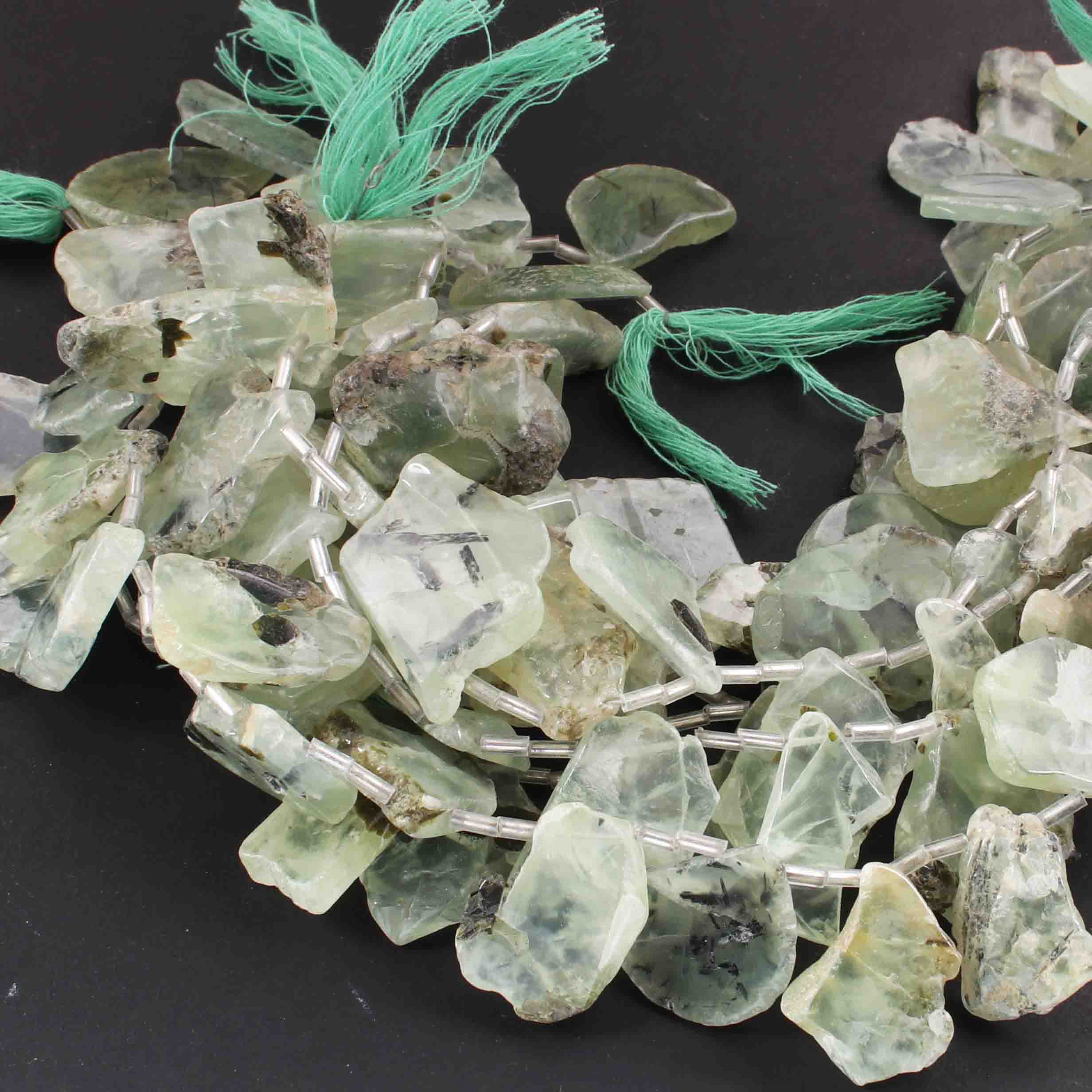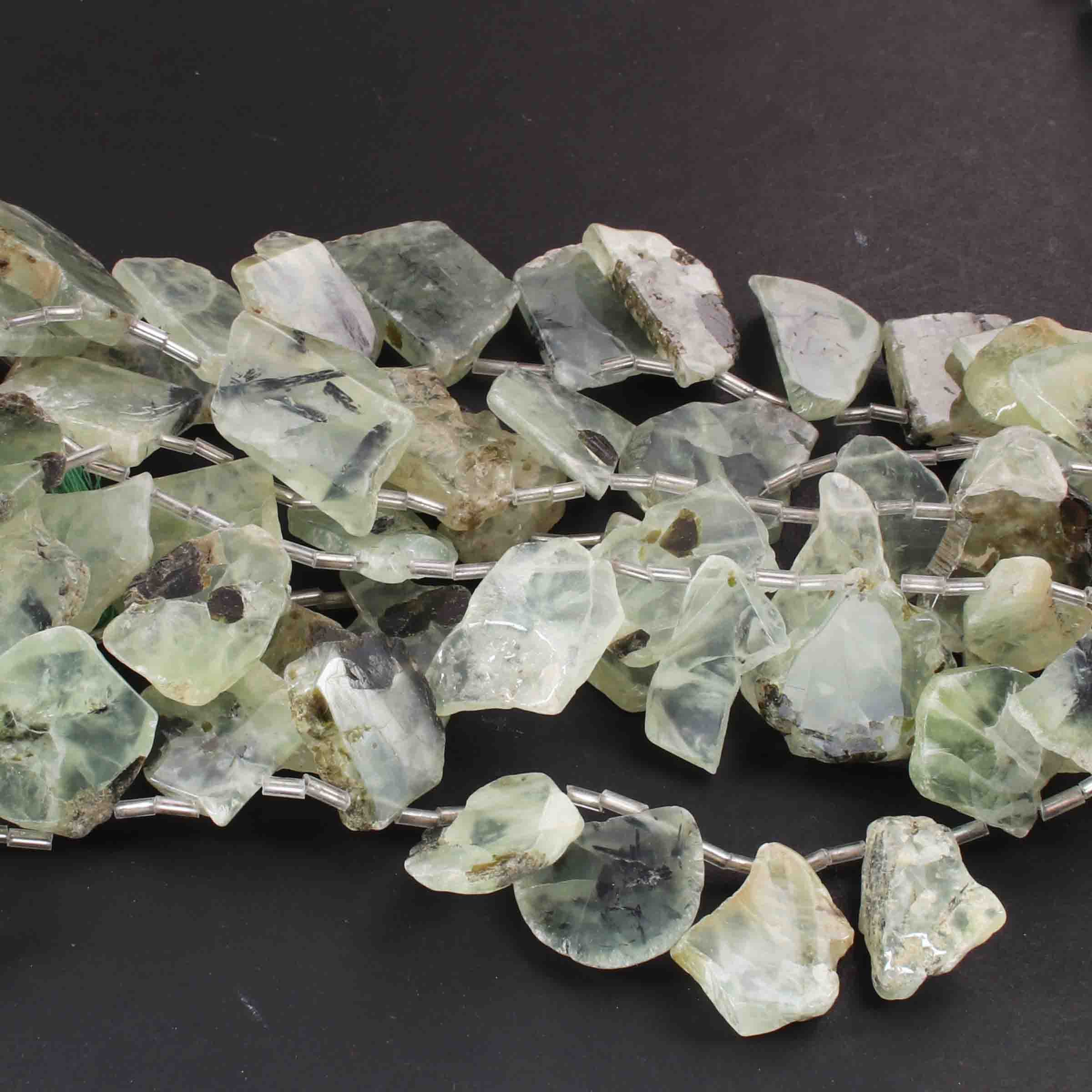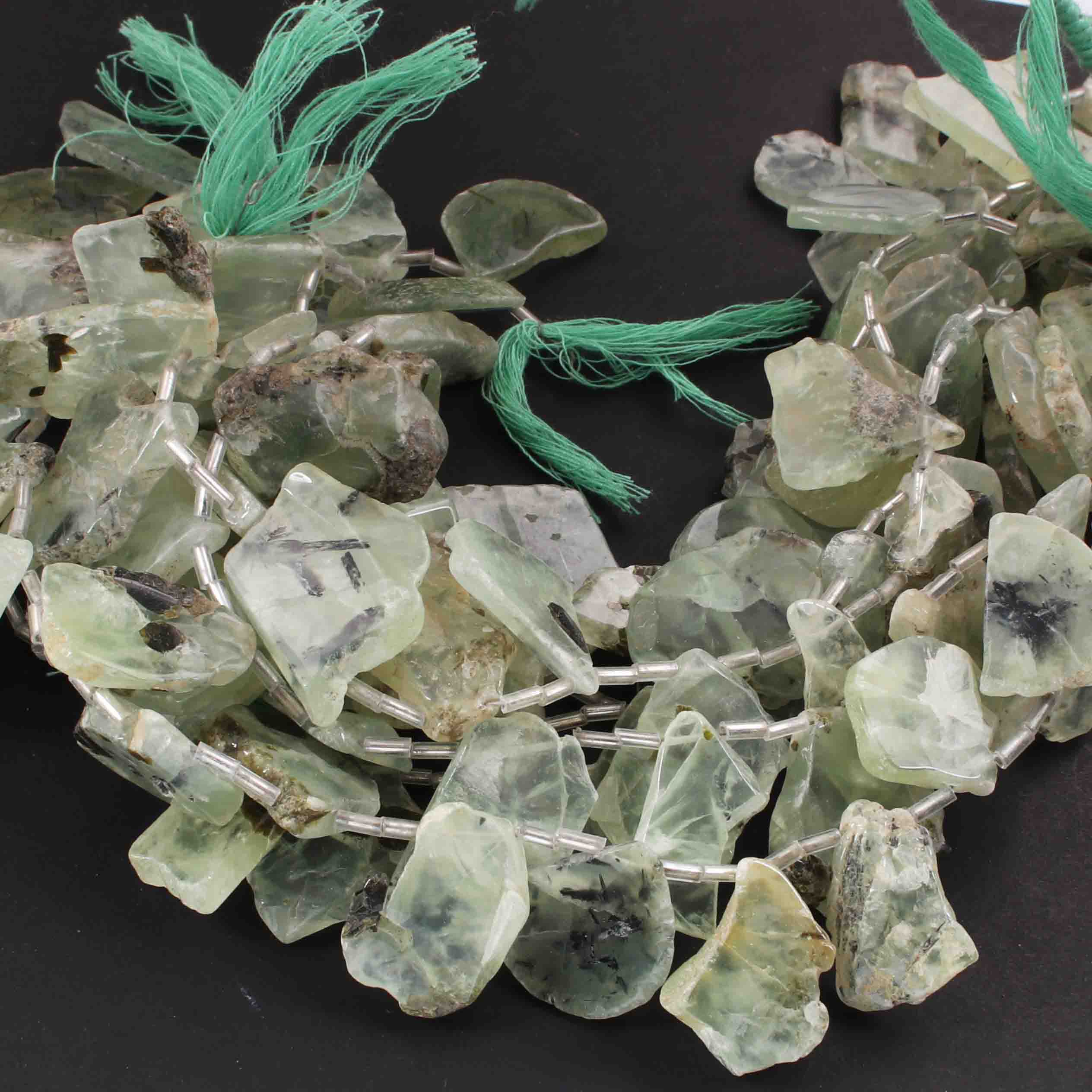 1 Strand Prehnite Smooth Briolettes - Assorted Shape Briolettes - 16mmx15mm-37mmx13mm - 11 Inches BR01975
