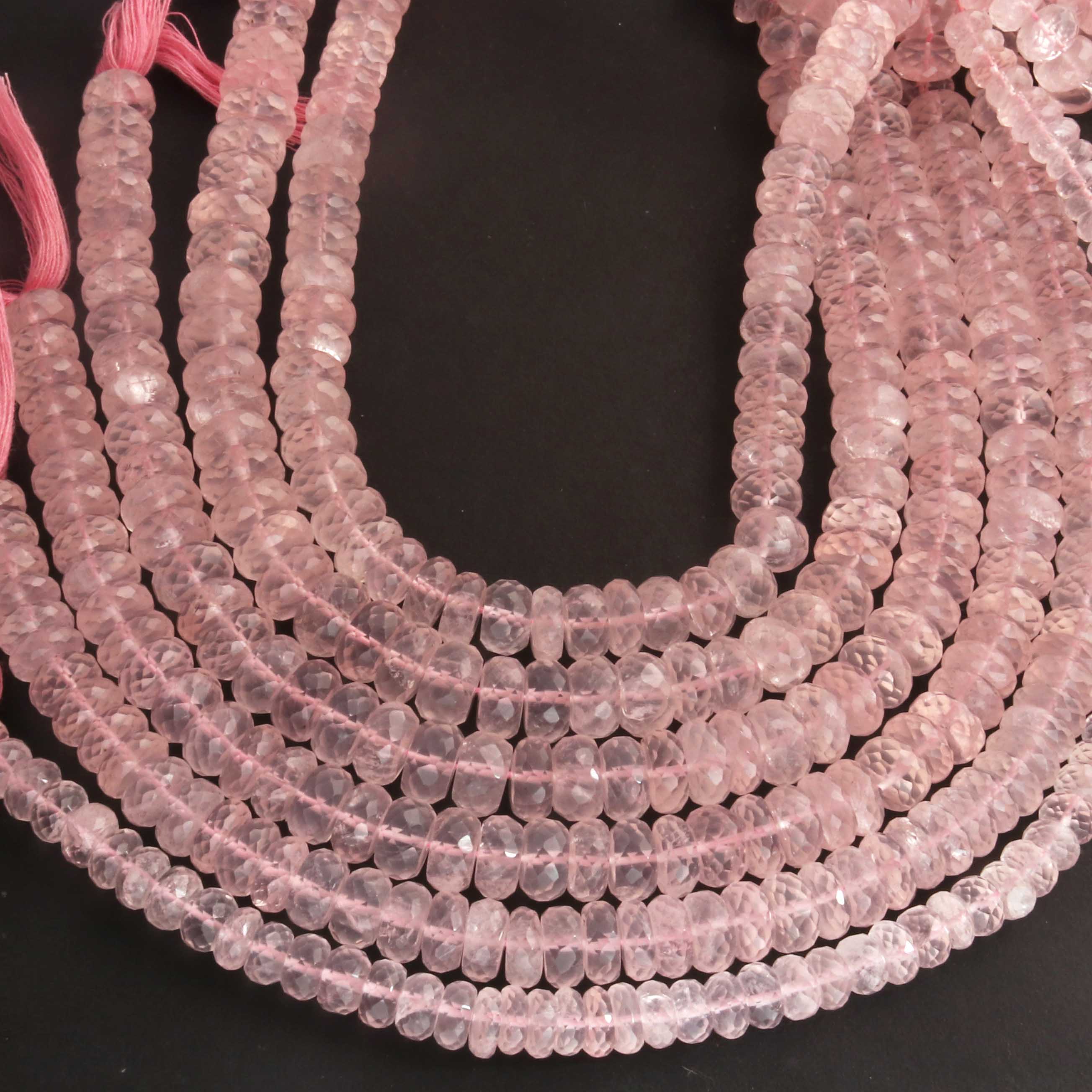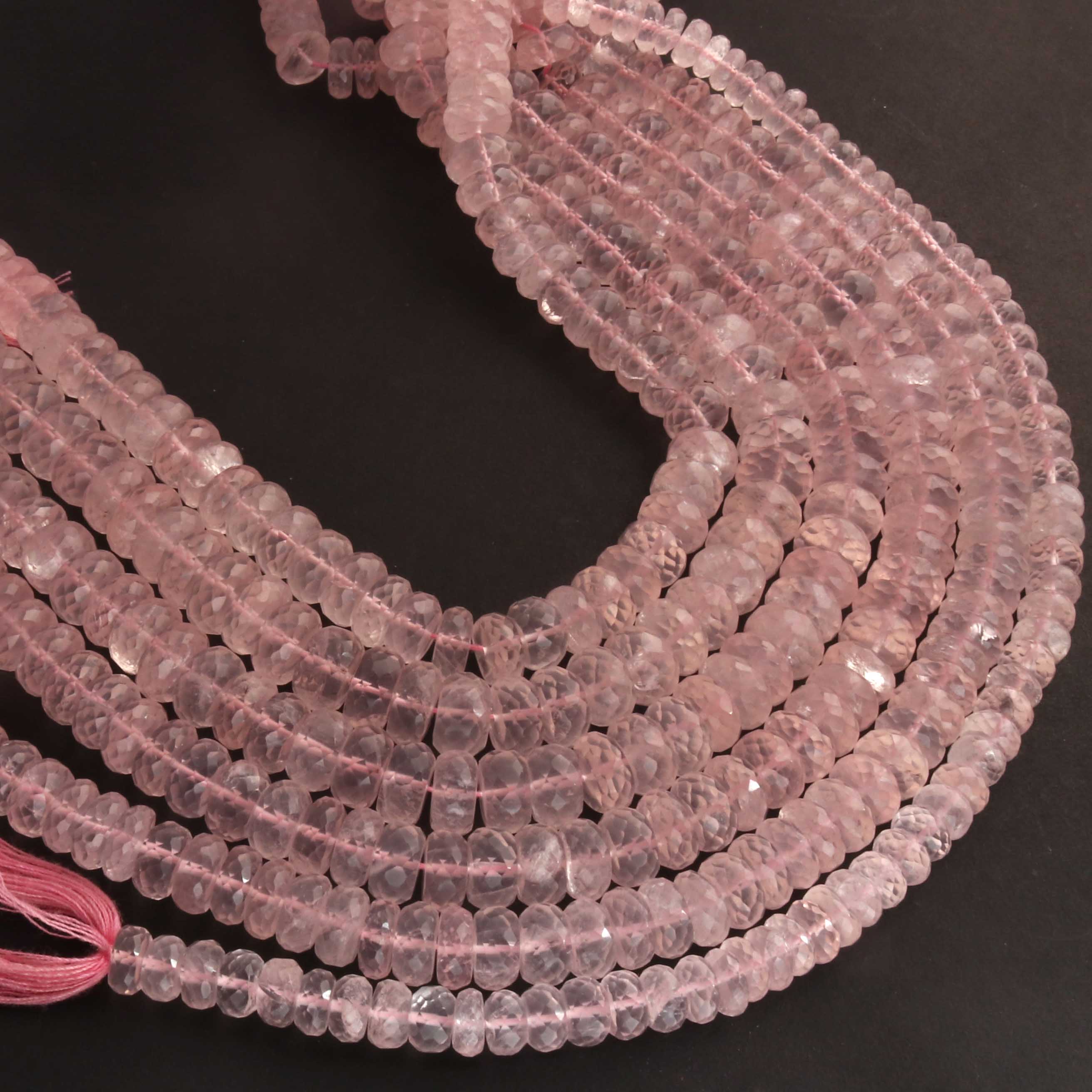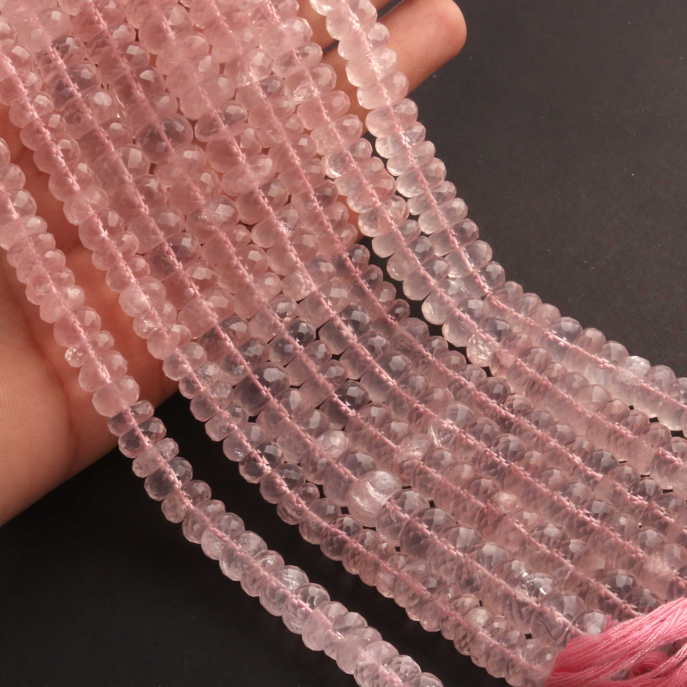1 Strand Rose Quartz Faceted Rondelles -Semi Precious Gemstone Rose Quartz Rondelles Beads- 7mm-10mm 10 Inches BR03705