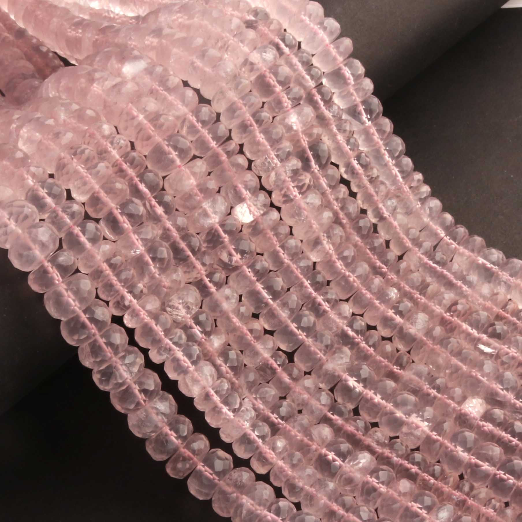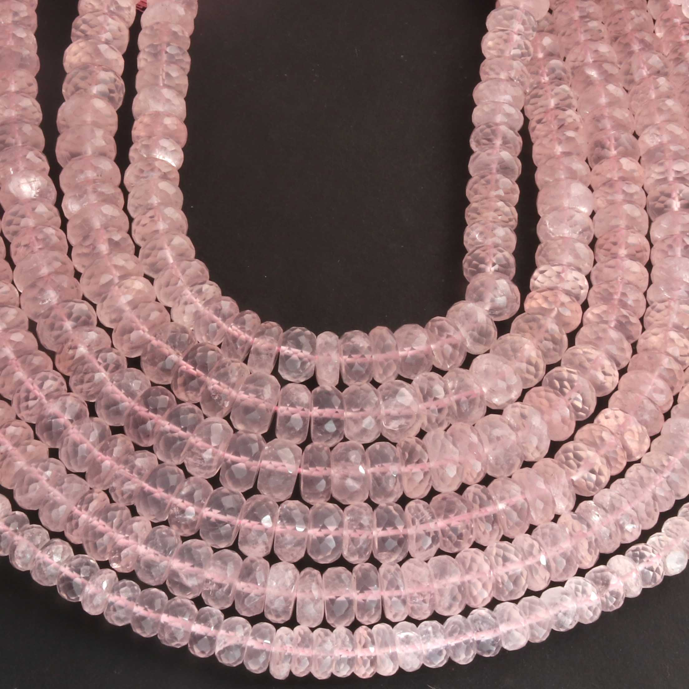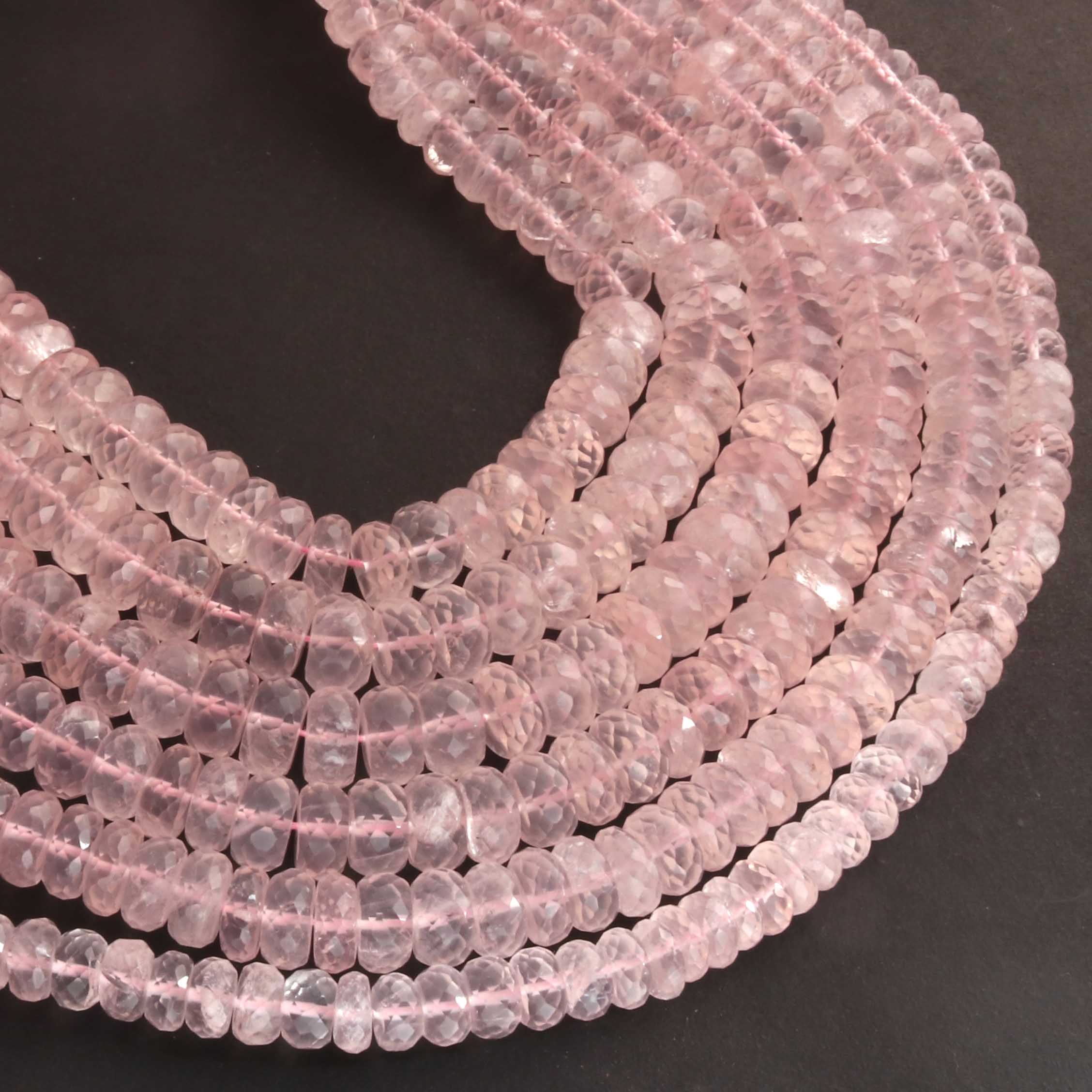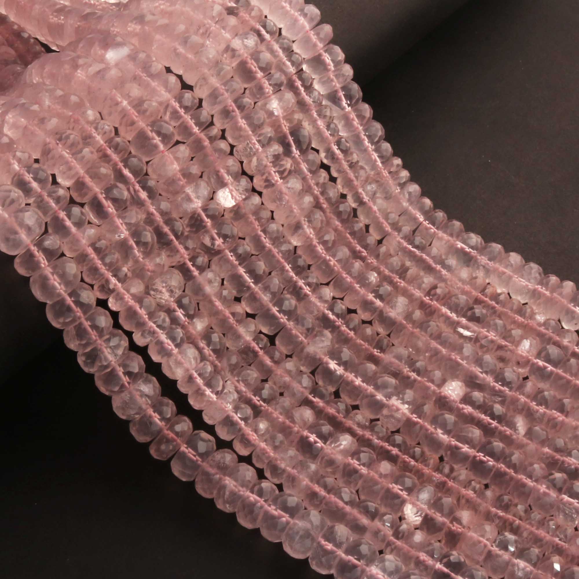1 Strand Rose Quartz Faceted Rondelles -Semi Precious Gemstone Rose Quartz Rondelles Beads- 7mm-10mm 10 Inches BR03705