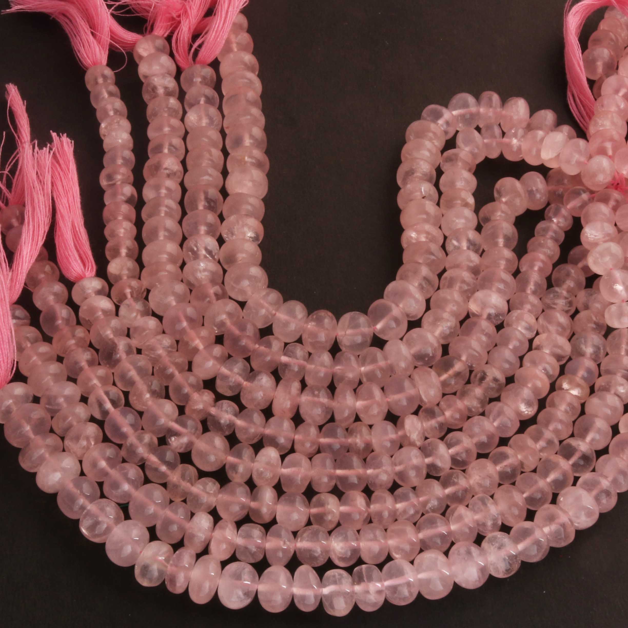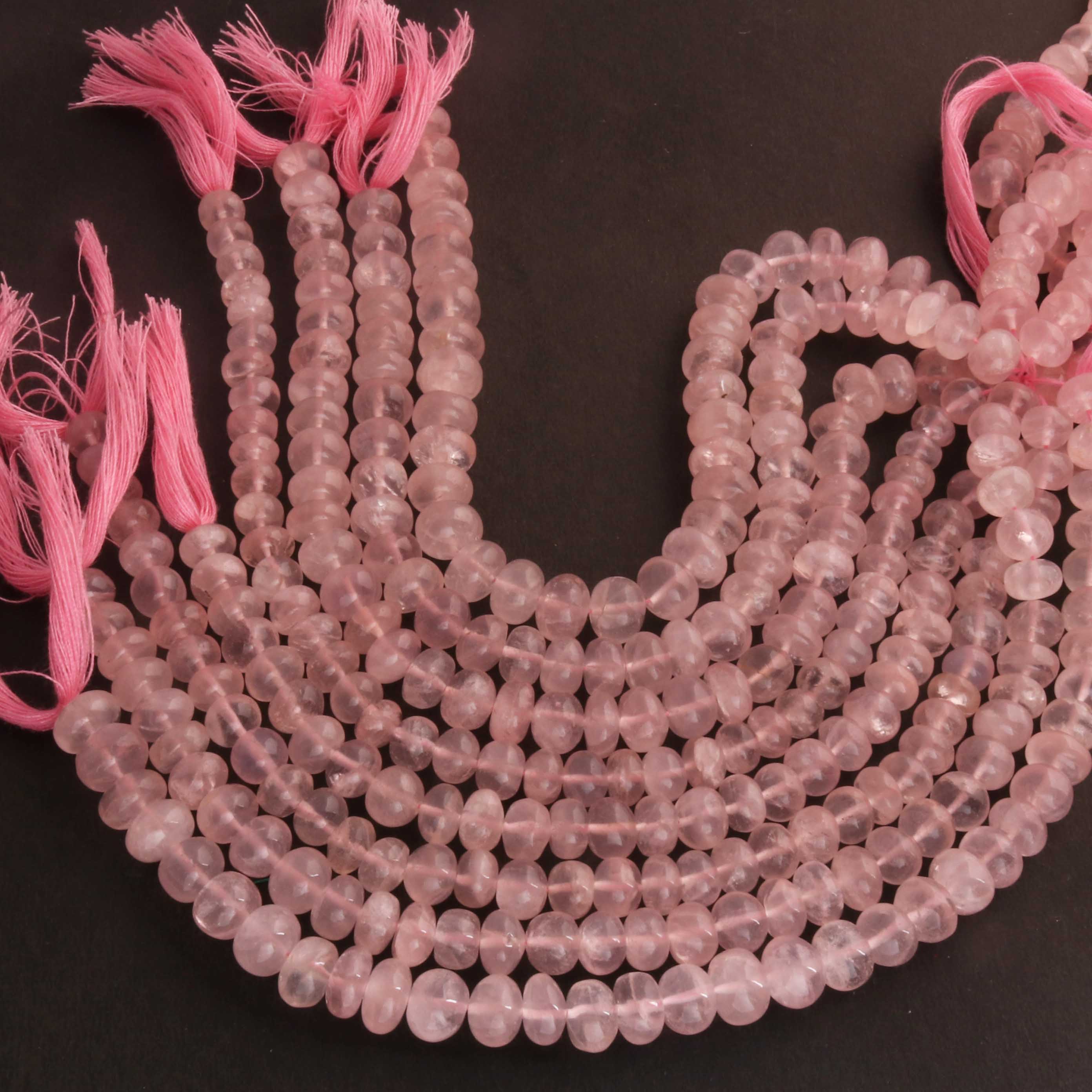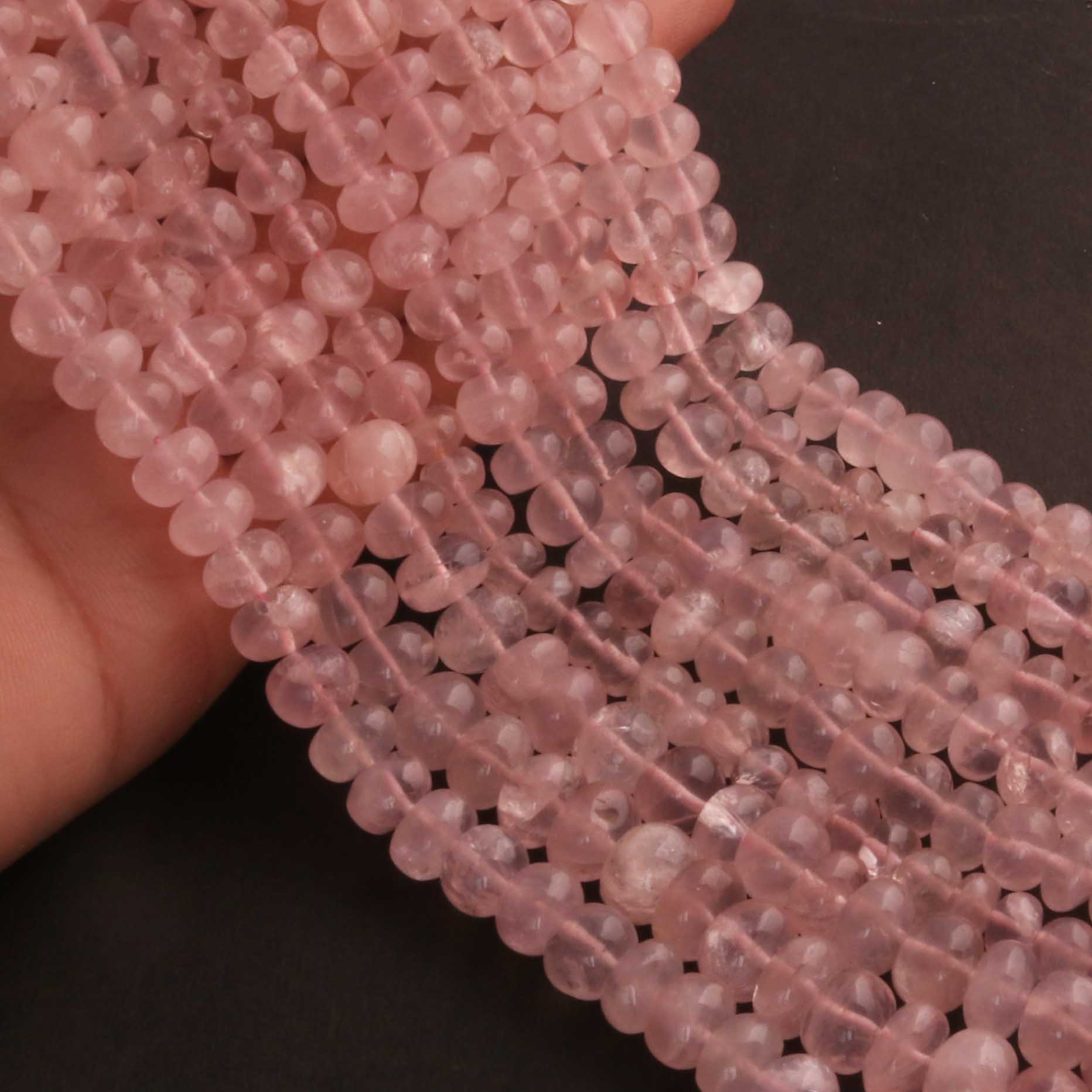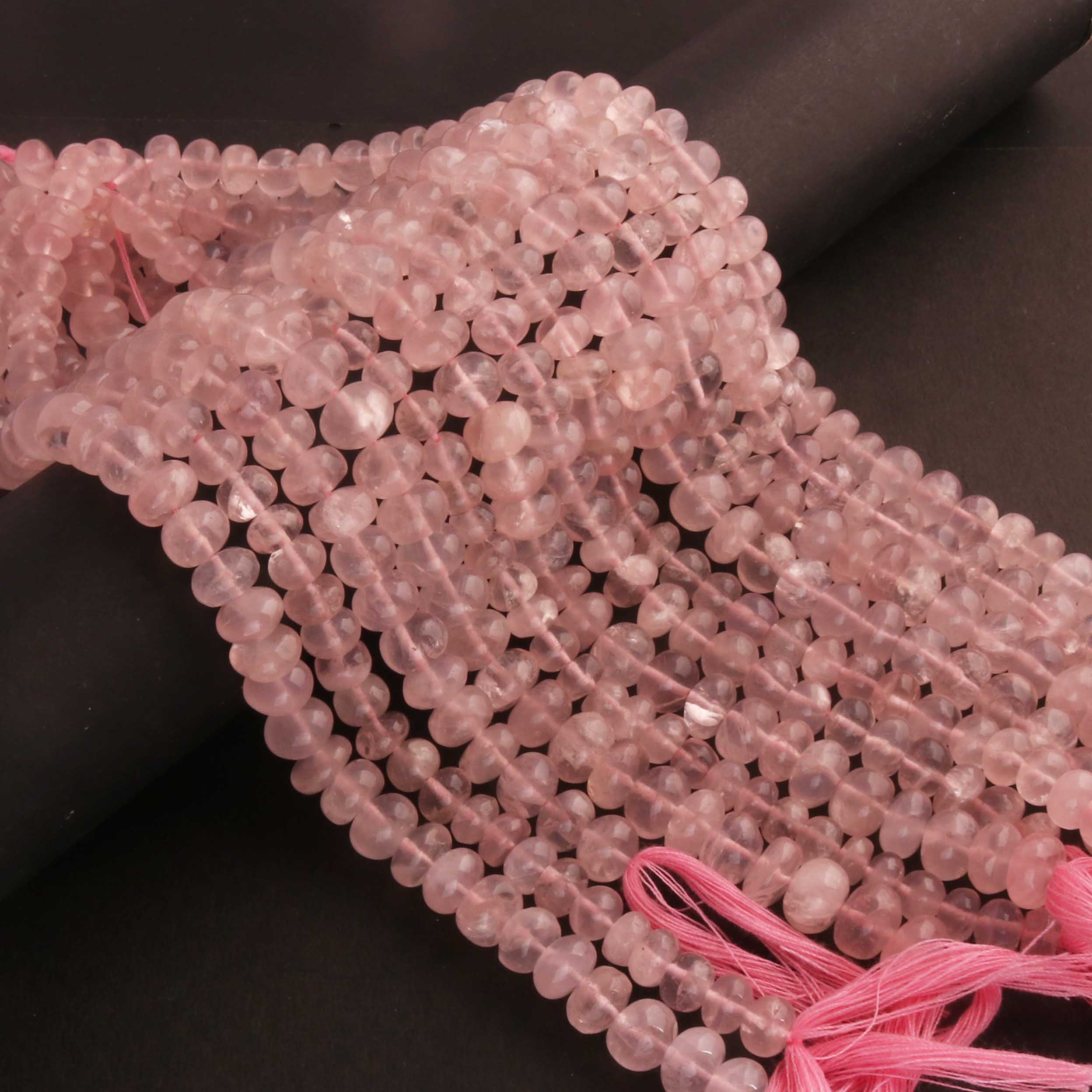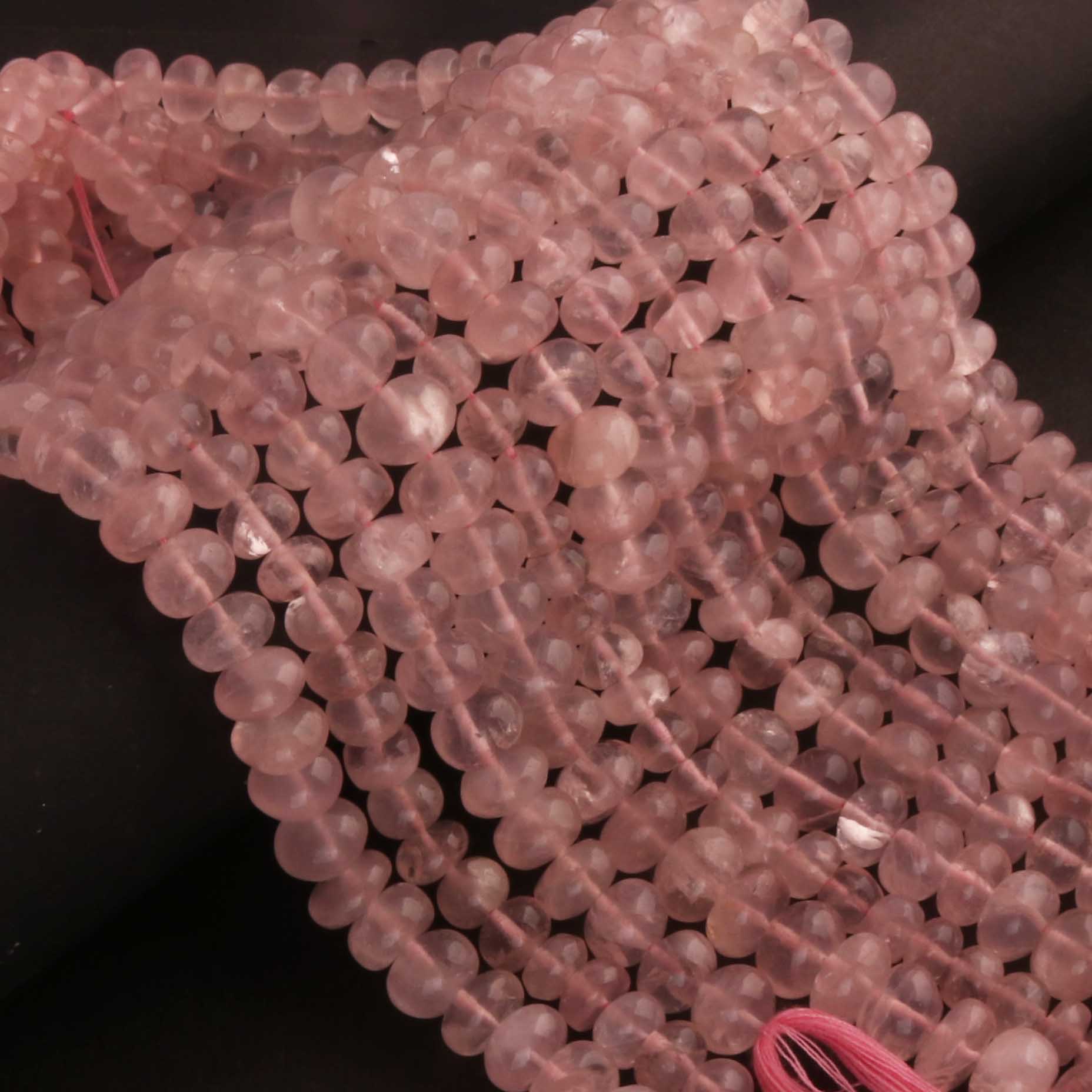 1 Strand Rose Quartz Smooth Rondelles -Semi Precious Gemstone Rose Quartz Rondelles Beads- 6mm-14mm 8 Inches BR03723