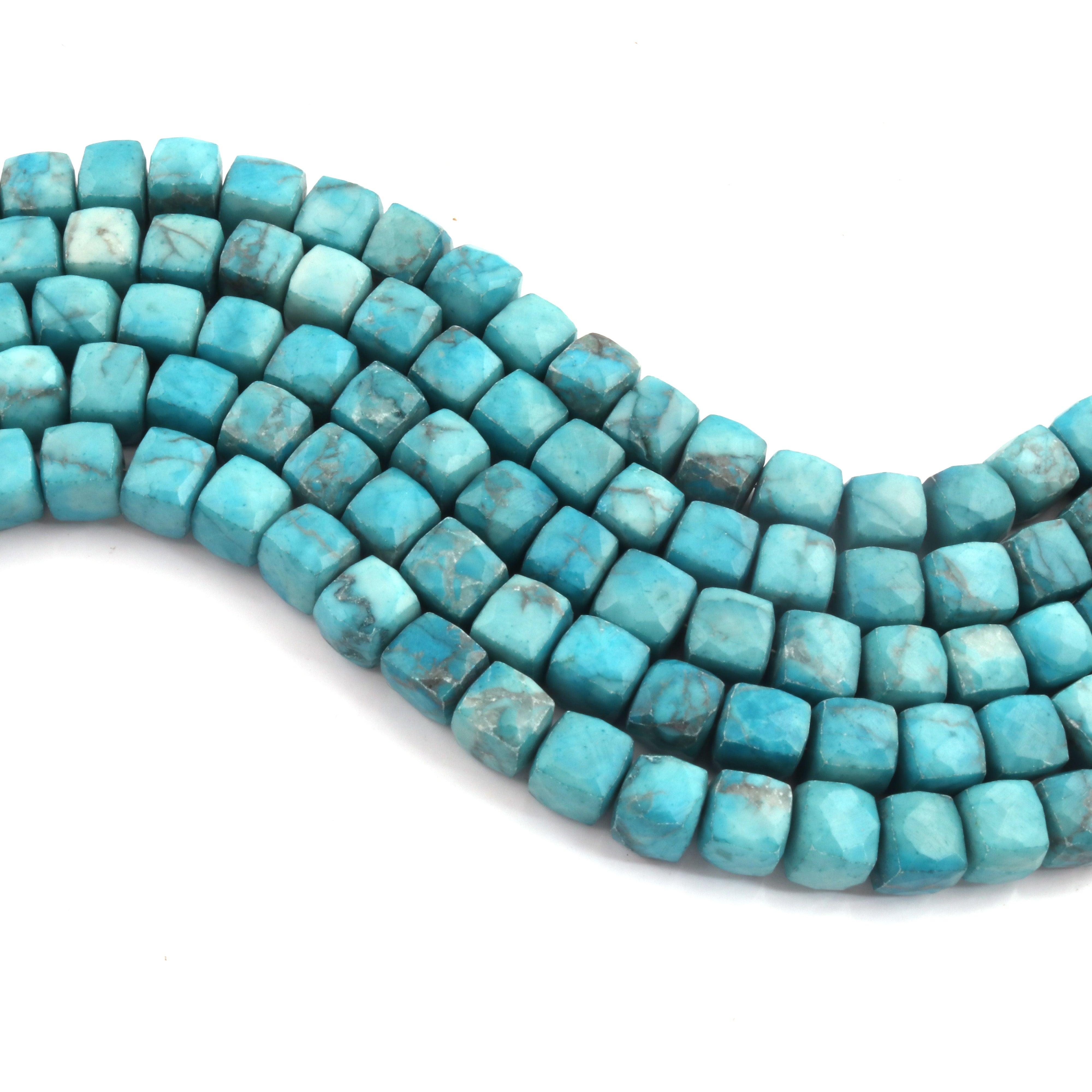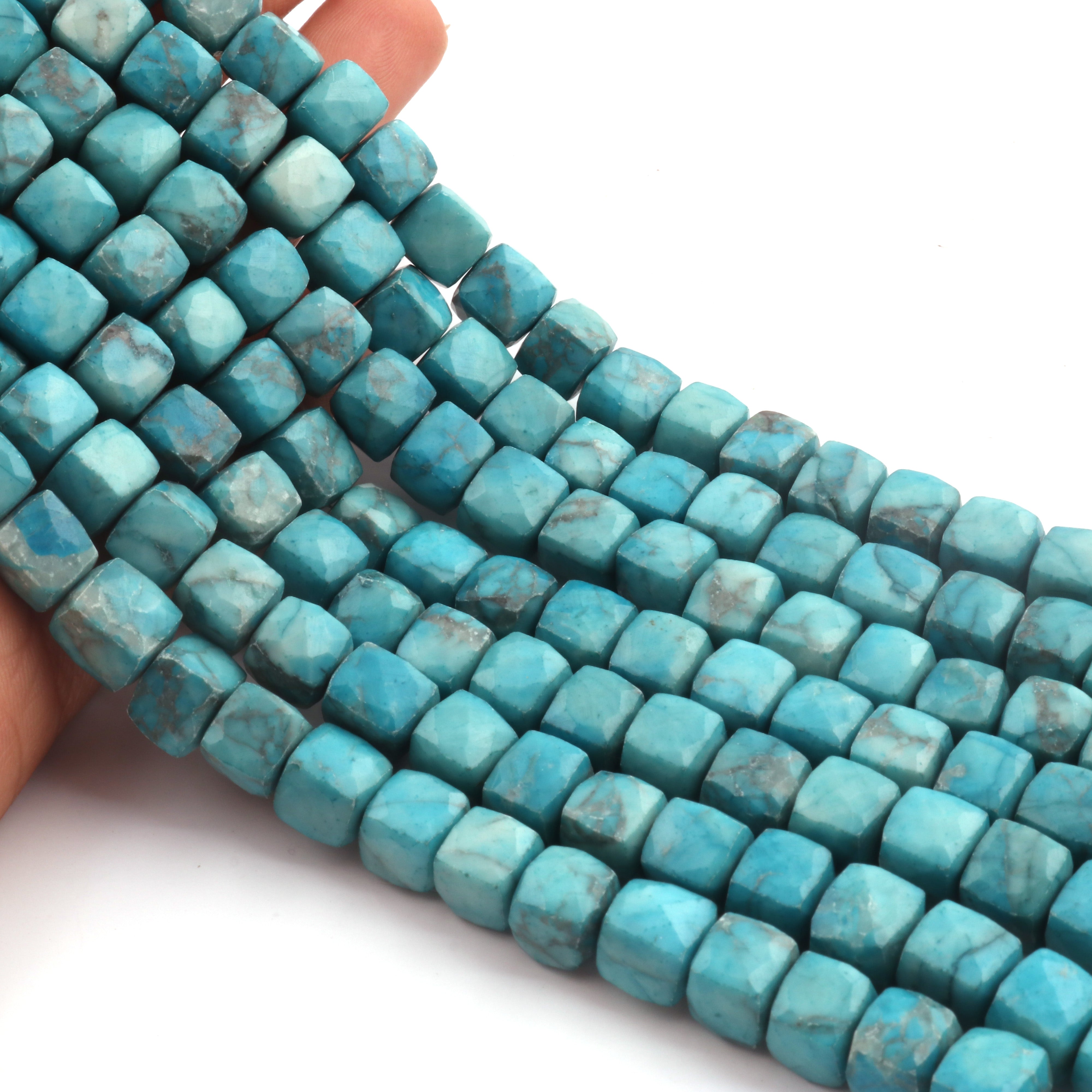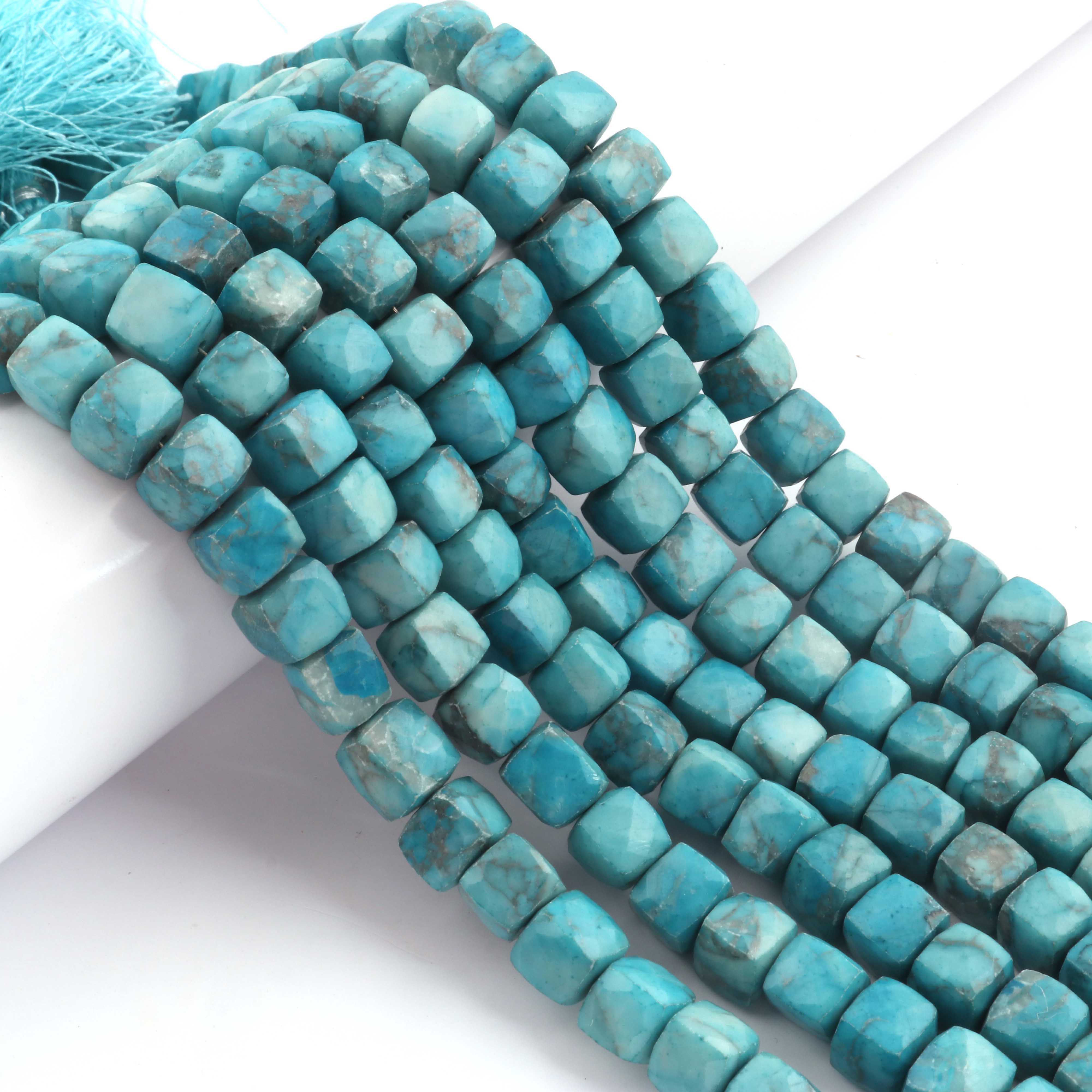 1 Strand Turquoise Faceted Cube Beads, 3D Box, Square, Dice Briolettes - - 7mm- 8 Inches BR03950