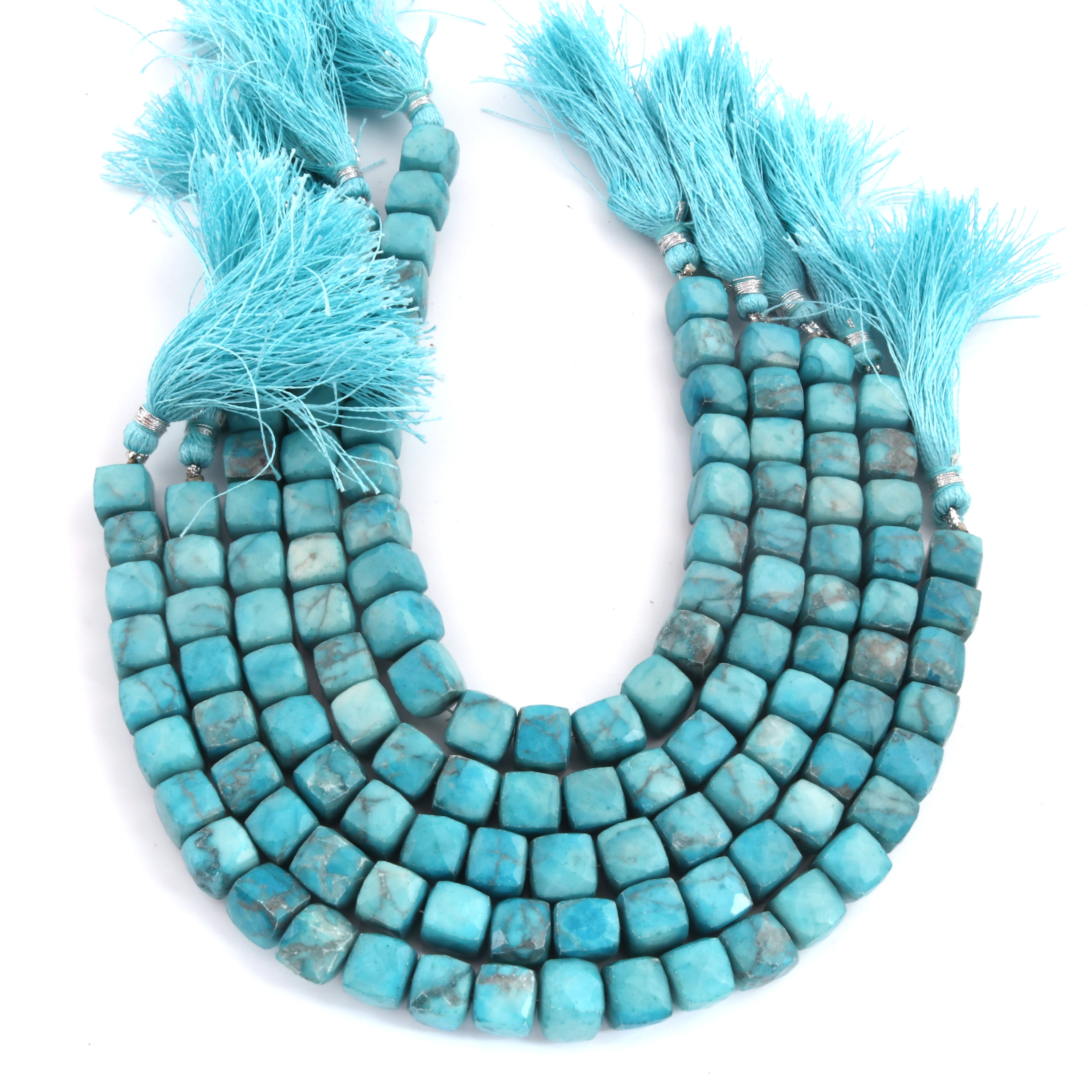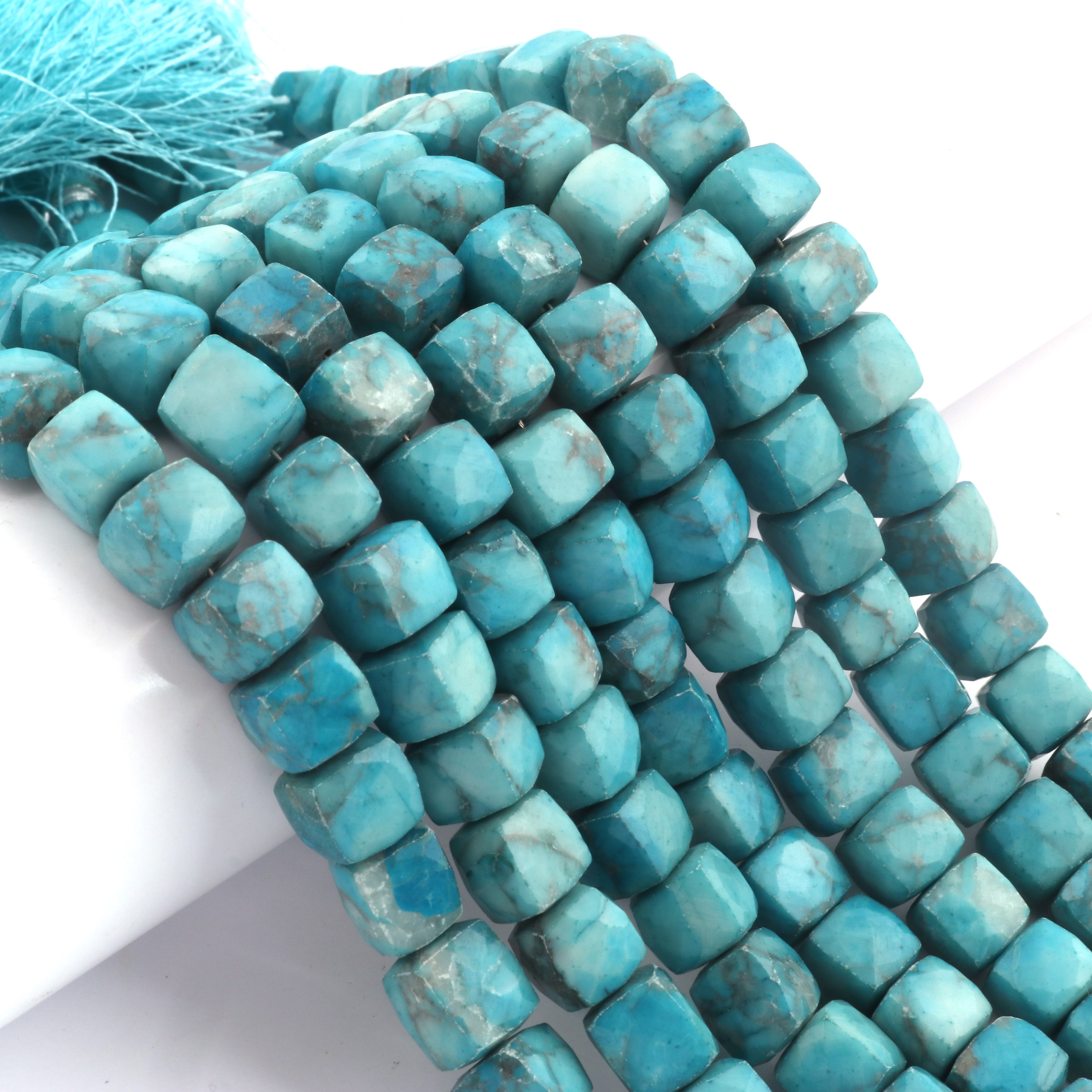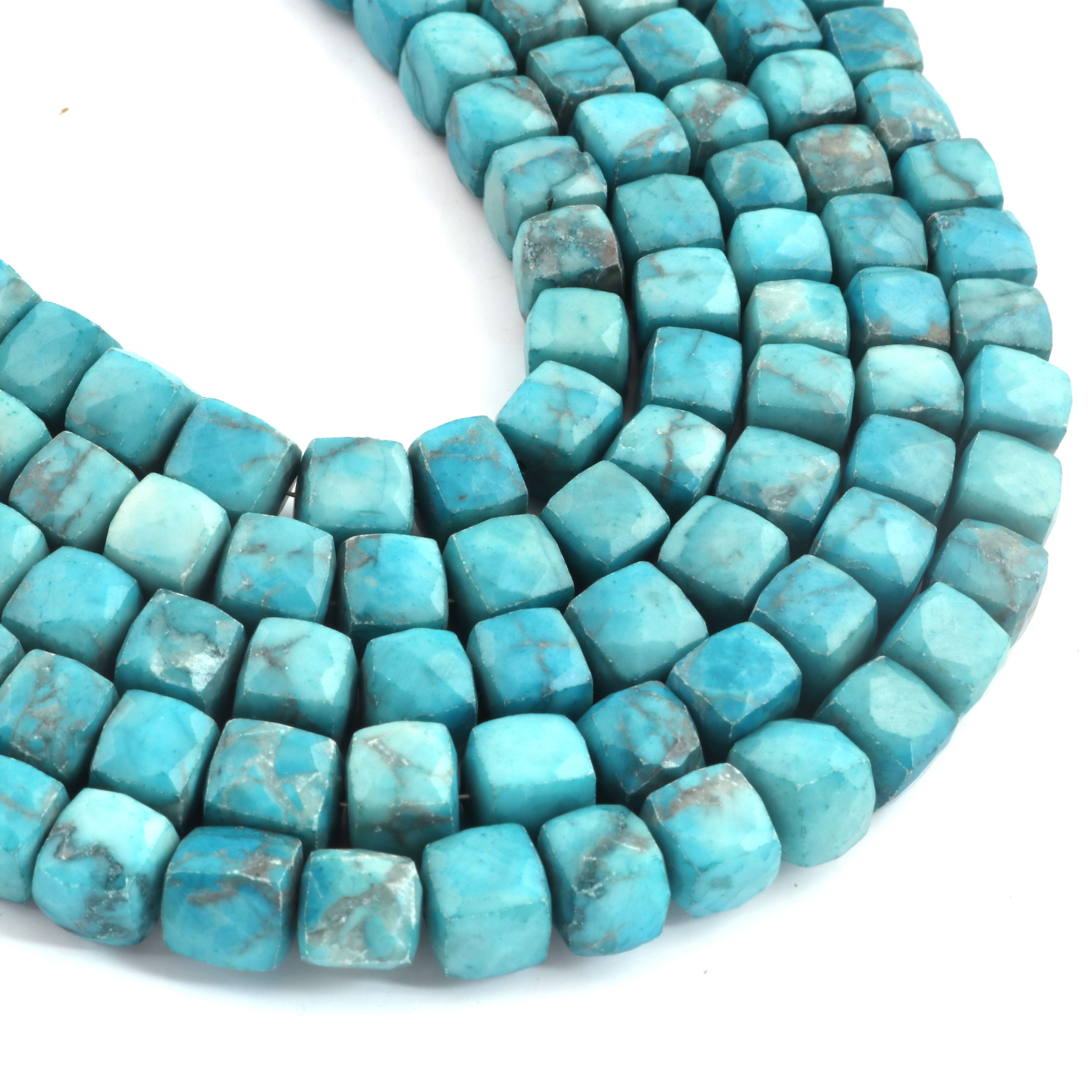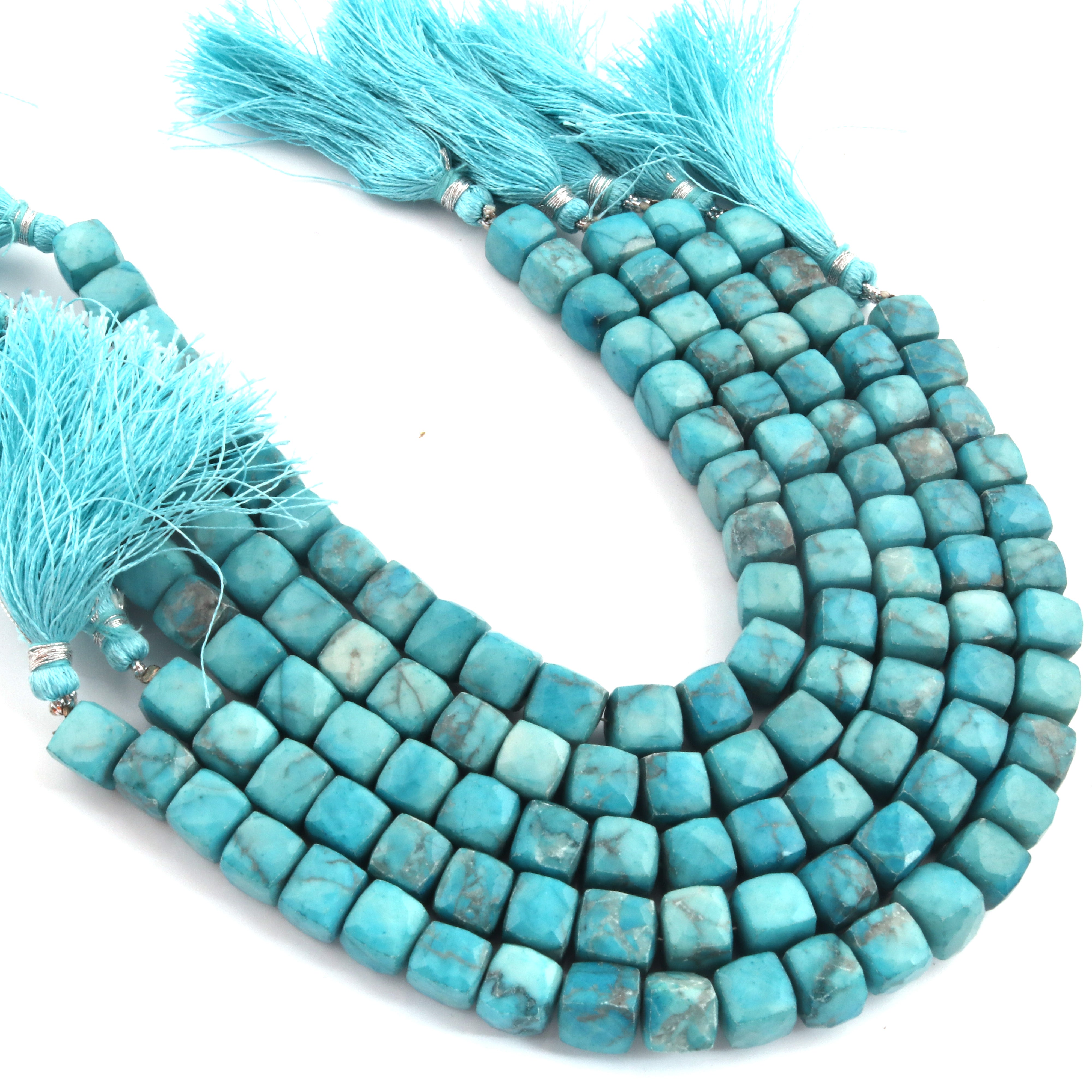 1 Strand Turquoise Faceted Cube Beads, 3D Box, Square, Dice Briolettes - - 7mm- 8 Inches BR03950