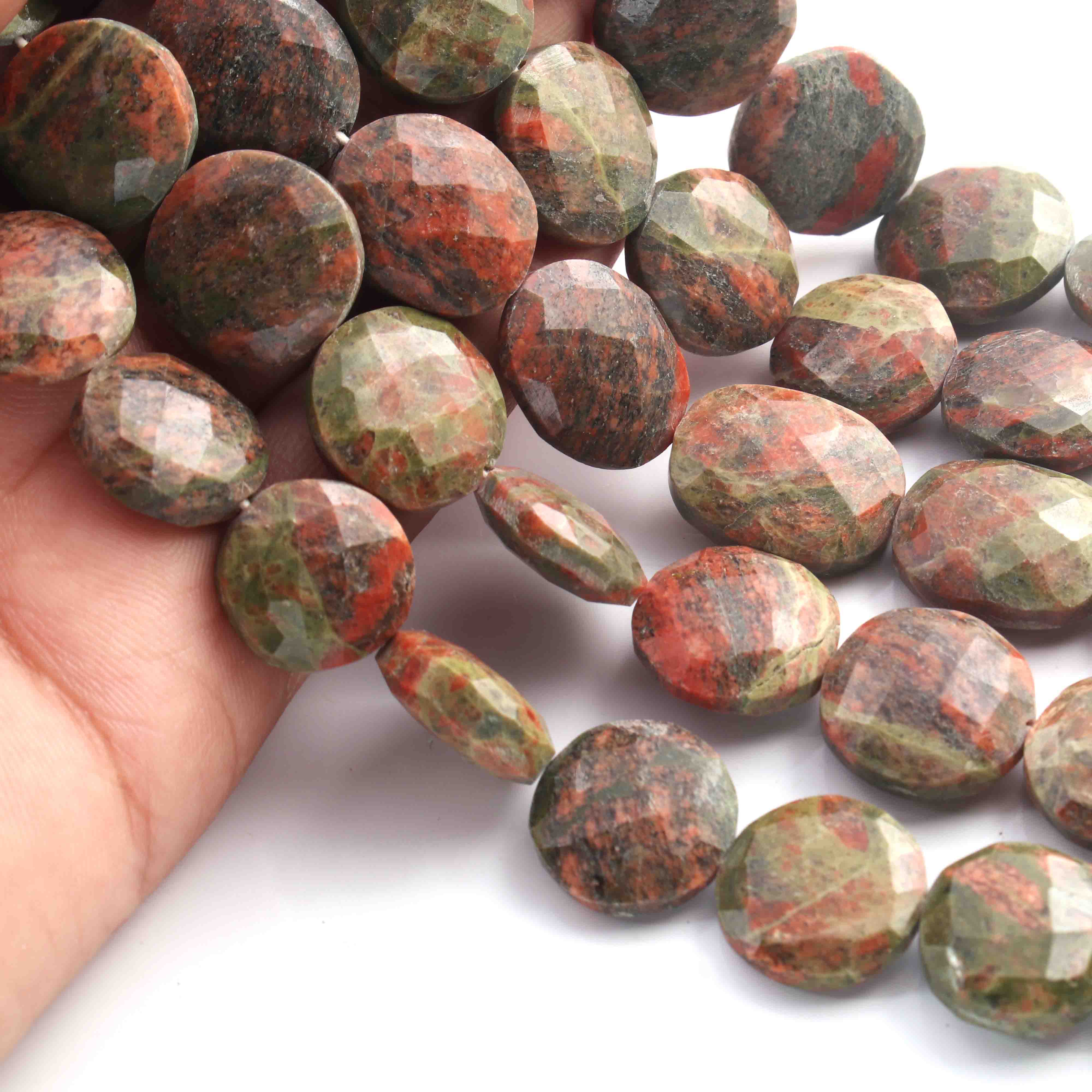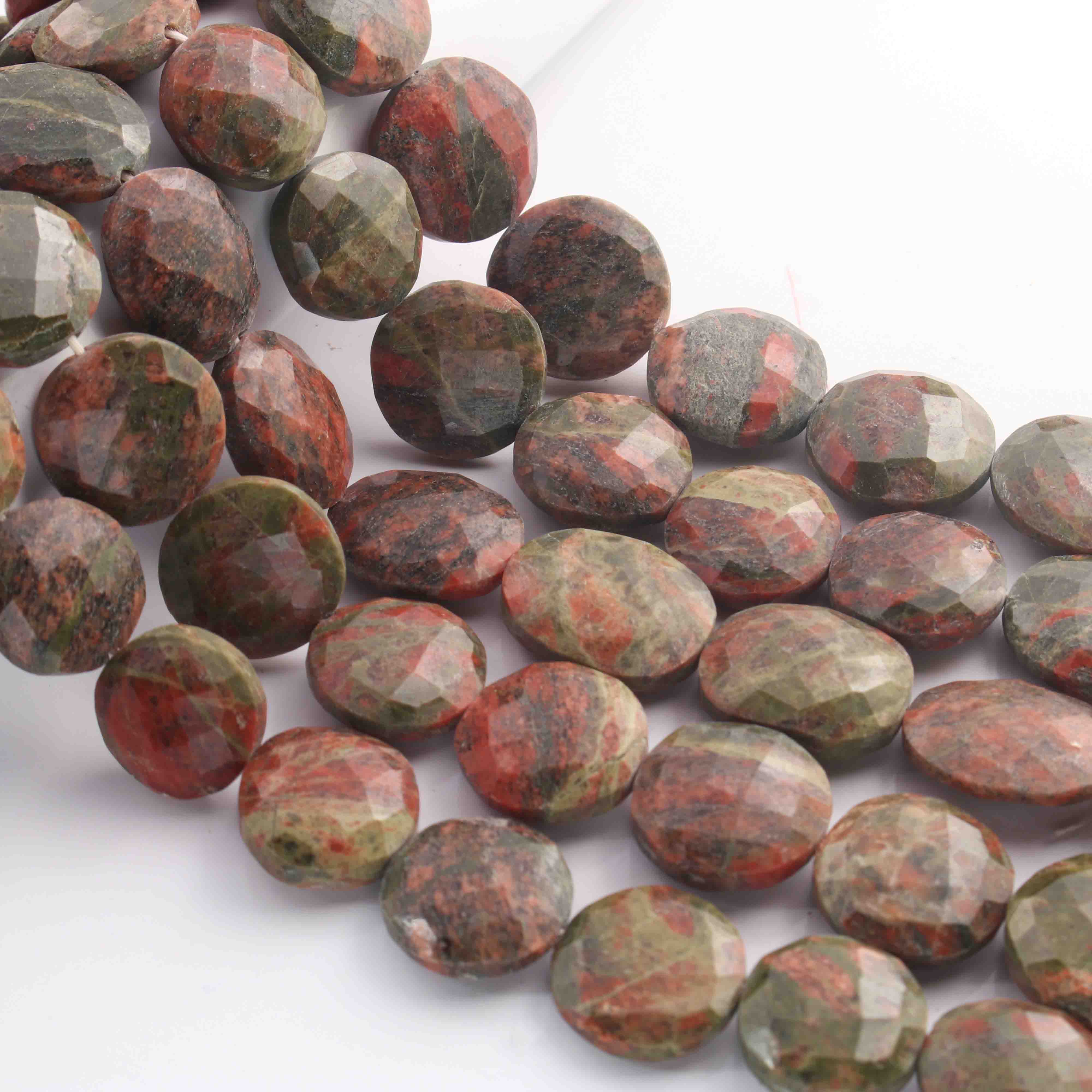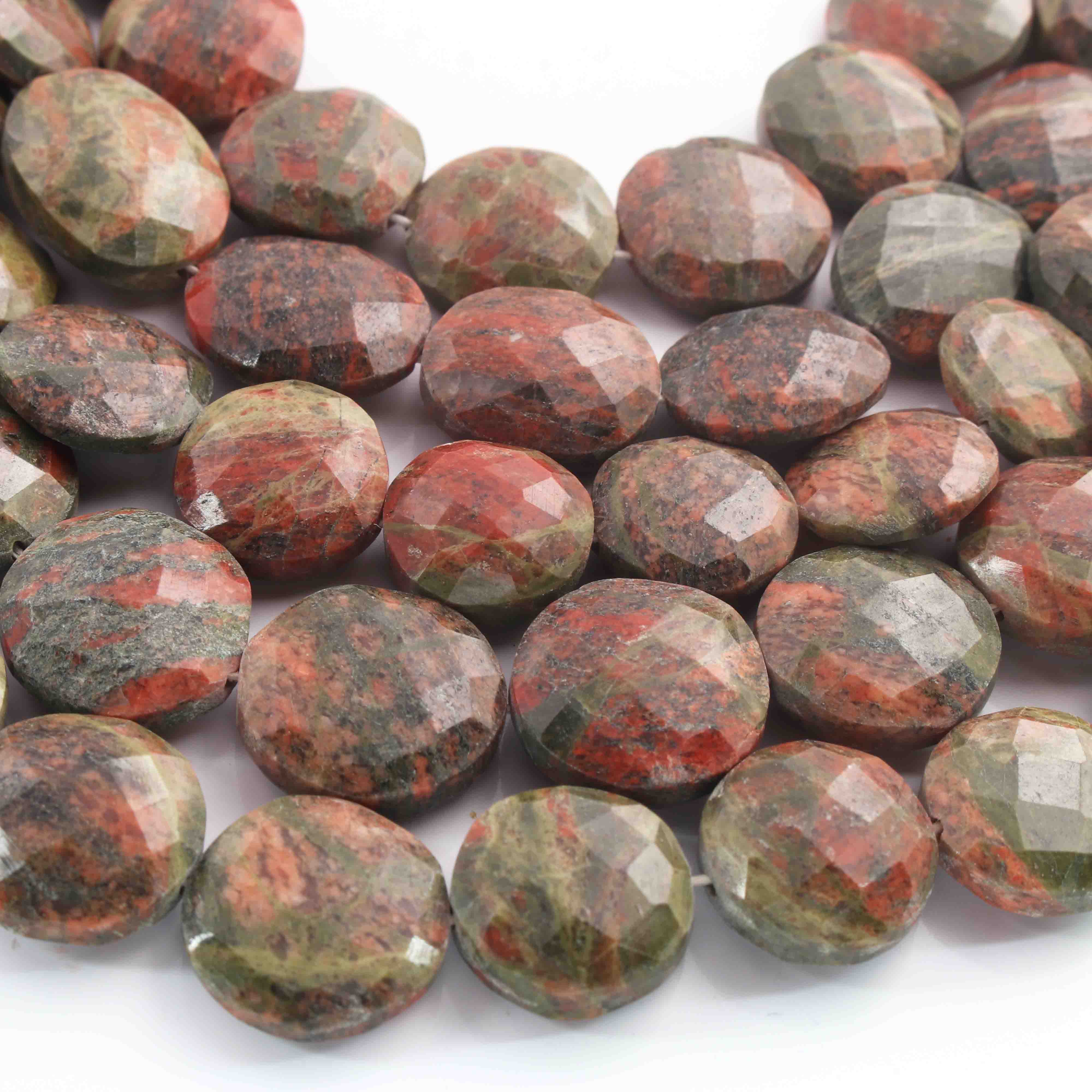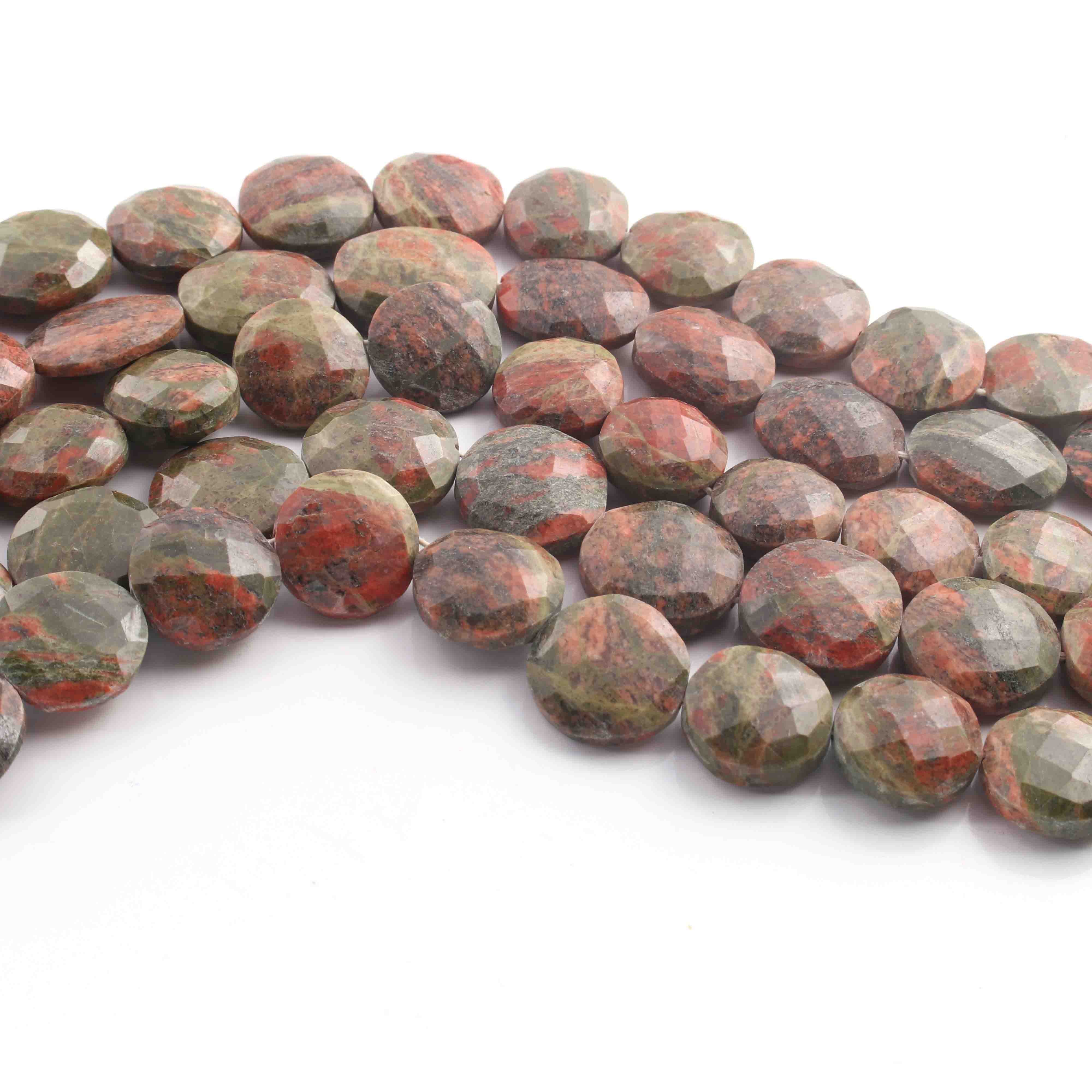 1 Strand Unakite Faceted Briolettes -Coin Shape Briolettes - 18mmx13mm-20mmx16mm-10 Inches BR01536