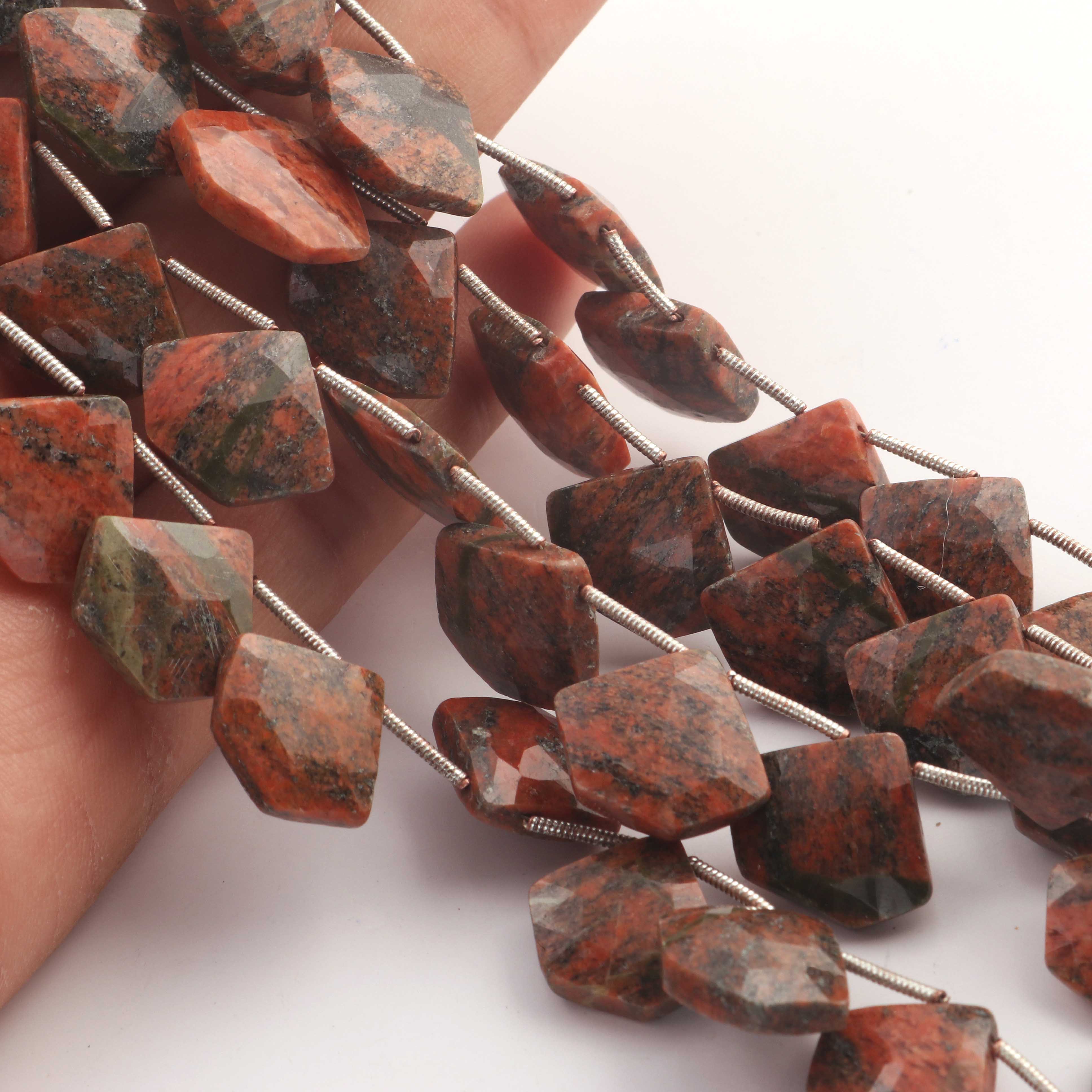 1 Strand Unakite Faceted Briolettes -Diamond Shape Briolettes - 15mmx13mm- 18mmx14mm -10.5 Inches br03556