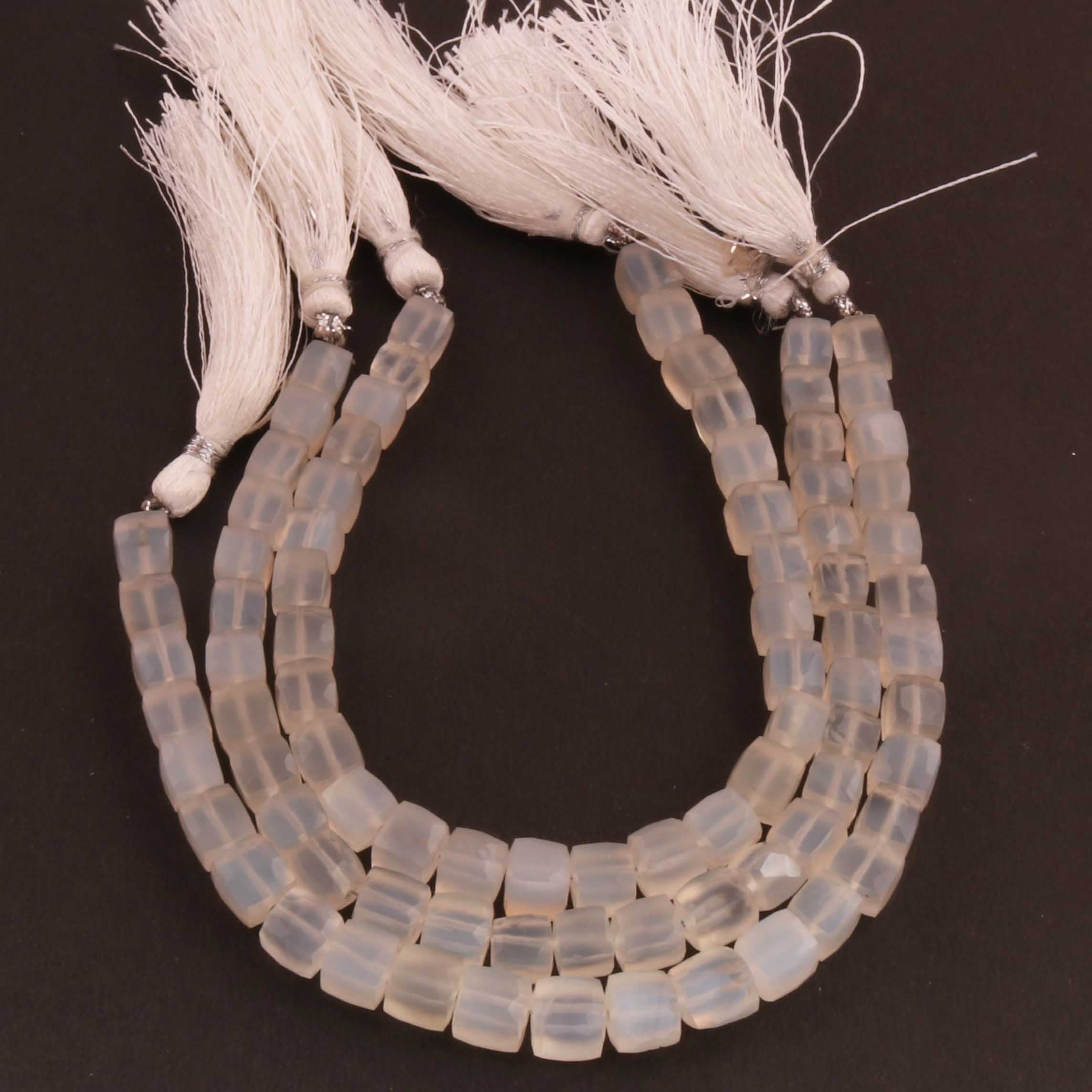 1 Strand White Silverite Faceted Cube Beads, 3D Box, Square, Dice Briolettes - 7mm-- 8 Inches BR1472