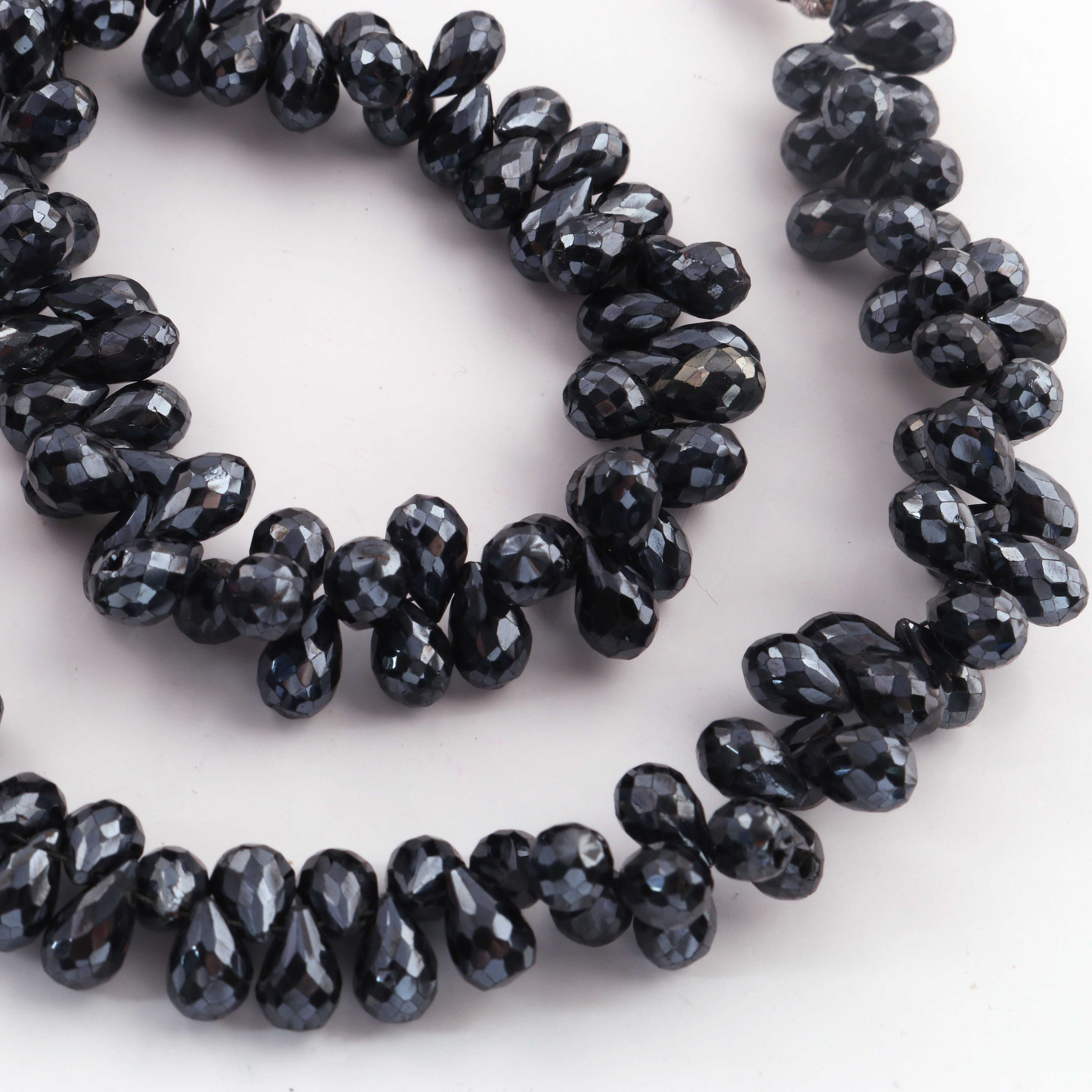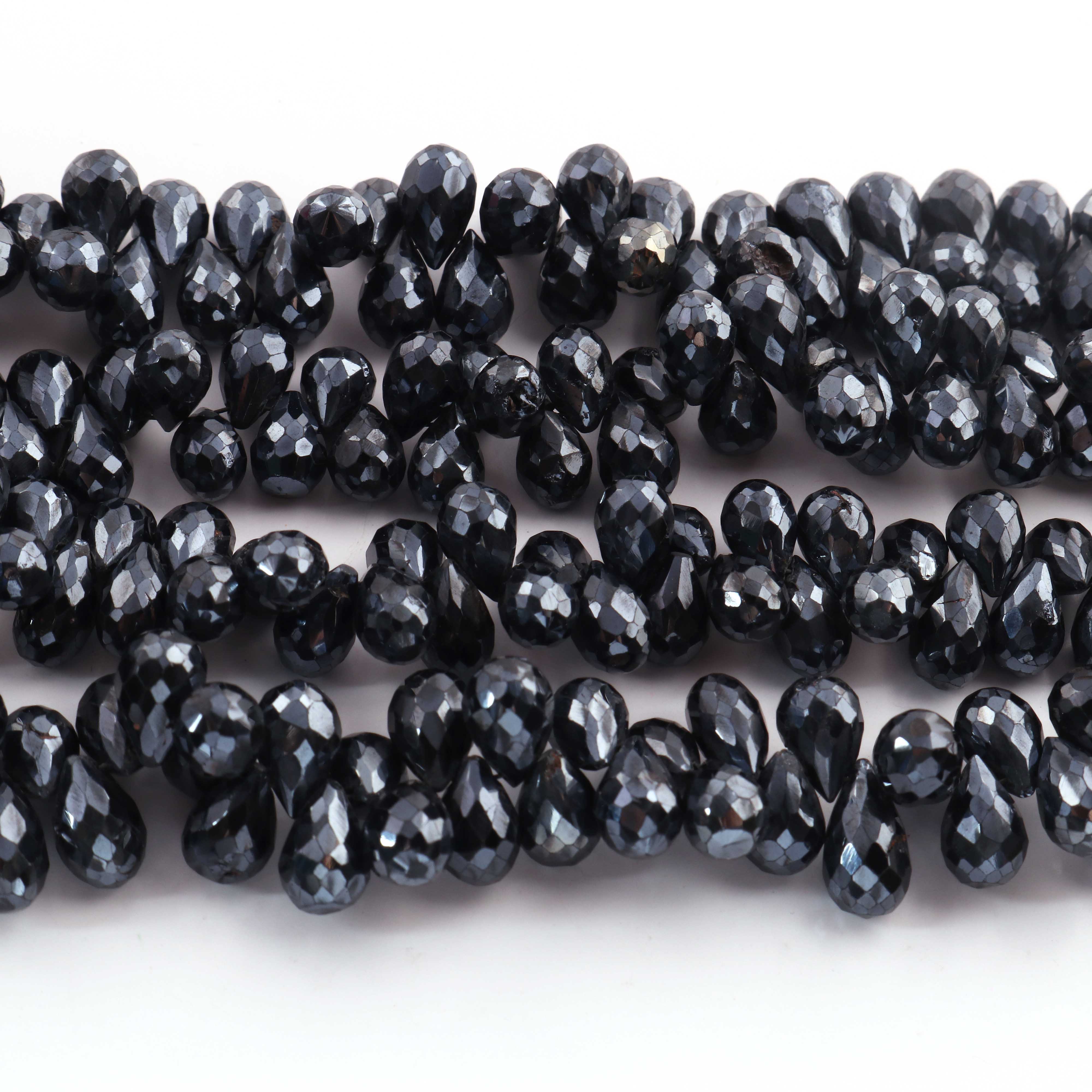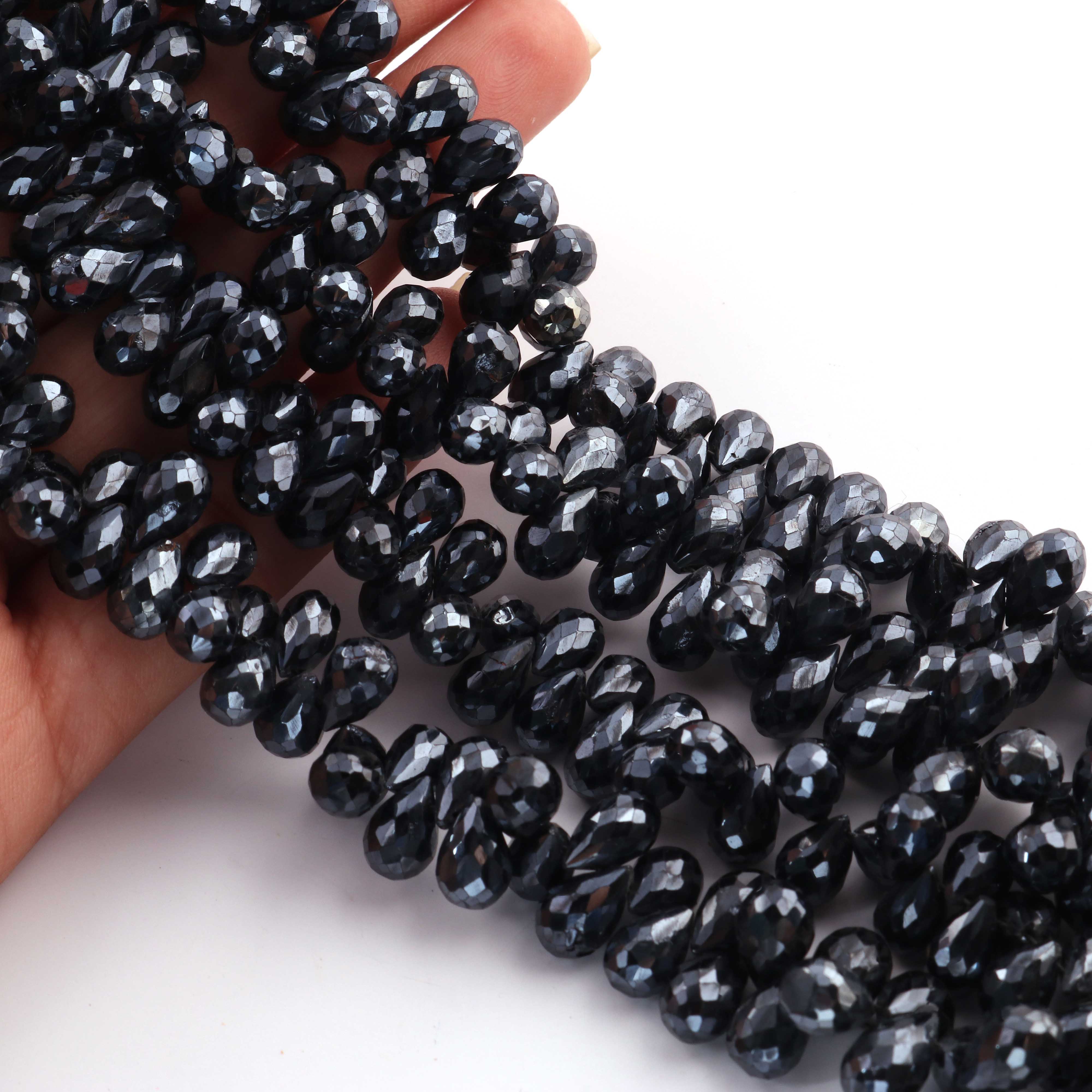 1 Strands AAA Quality Black Spinel Silver Cocated Faceted Tear Briolettes- 10mmx6mm-8 Inch BR03629