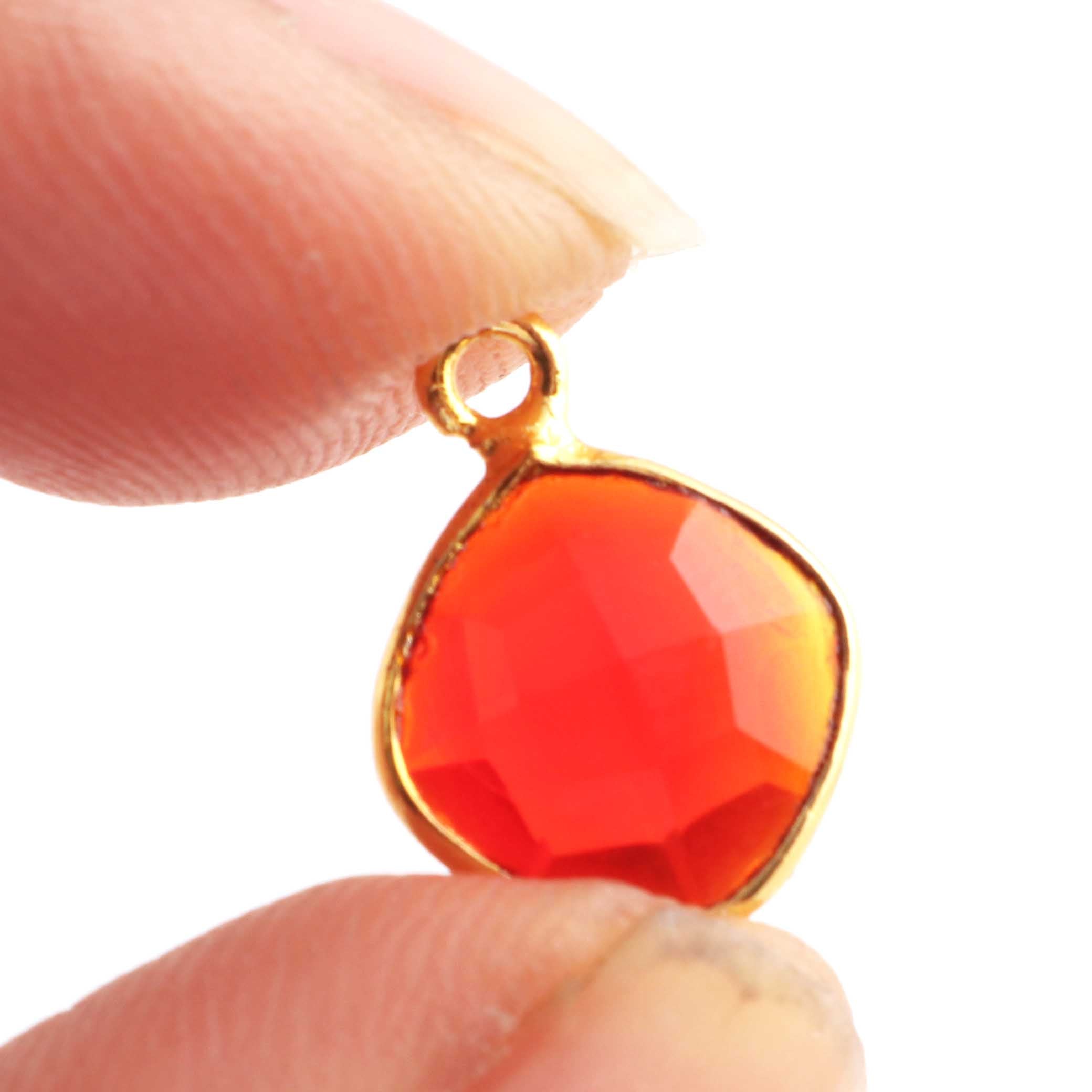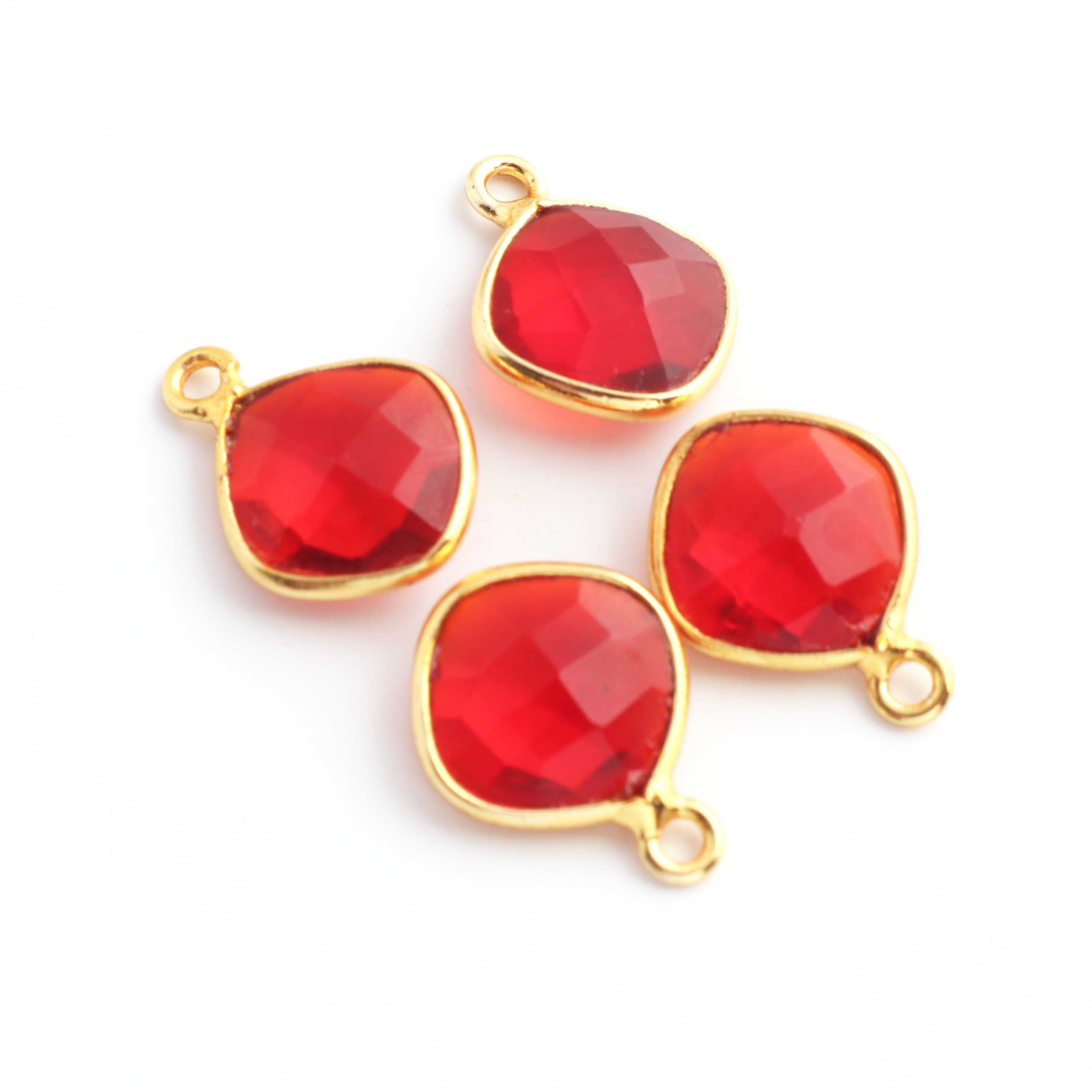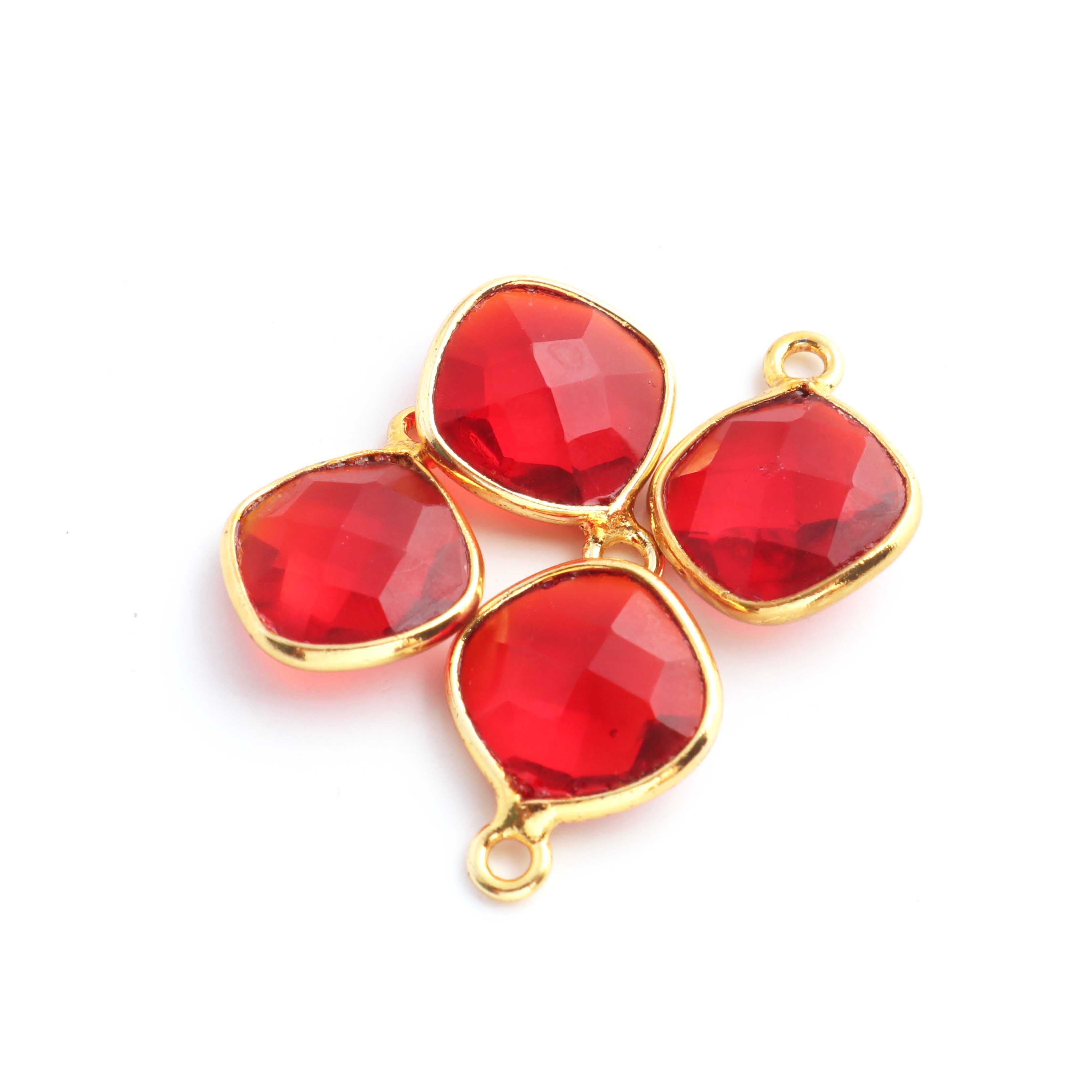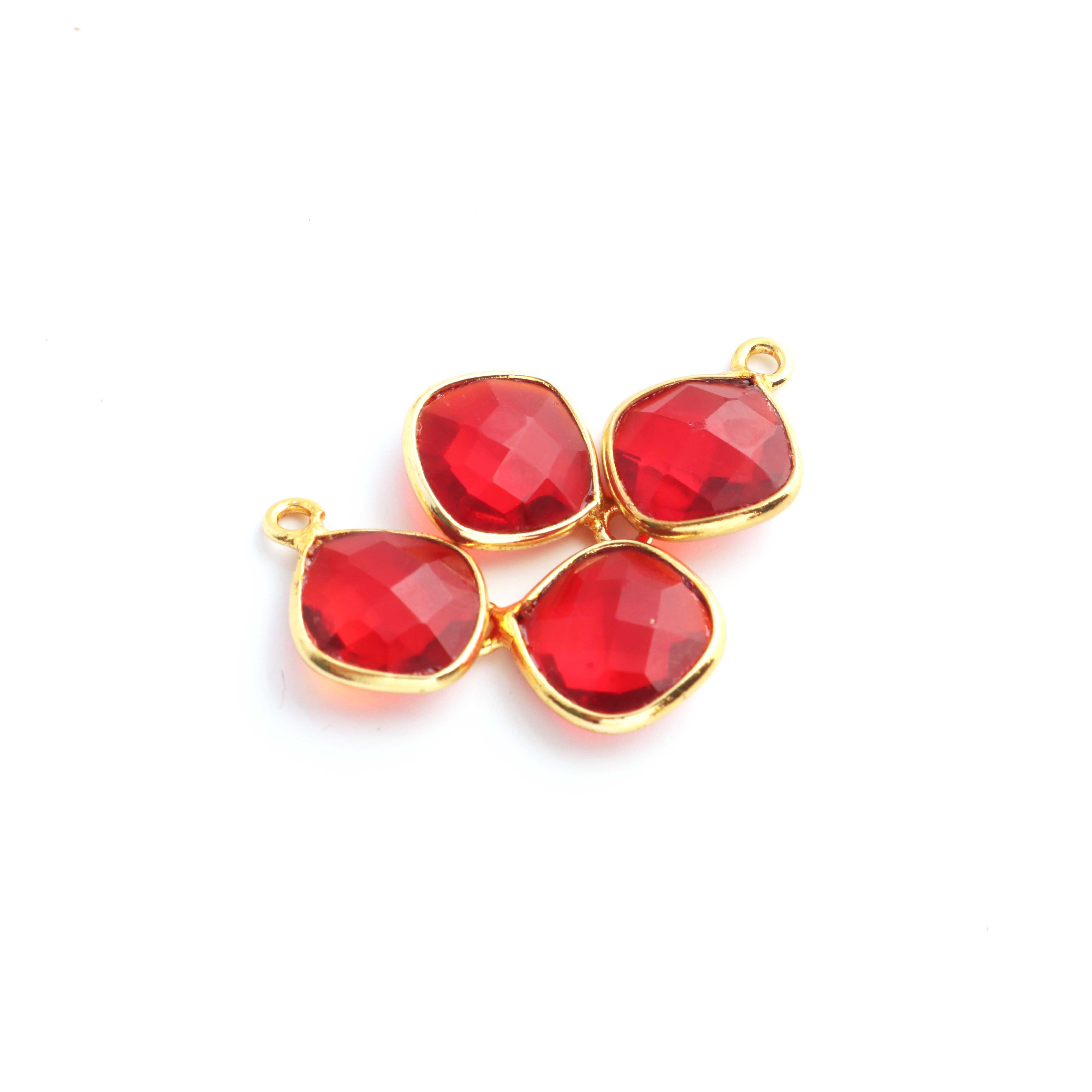 4 Pcs Garnet Birth Stone Faceted 925 Sterling Vermeil Cushion Shape Pendant , Birthstone Colors Add- On Charm As Pendant 13mmx10mm SS204