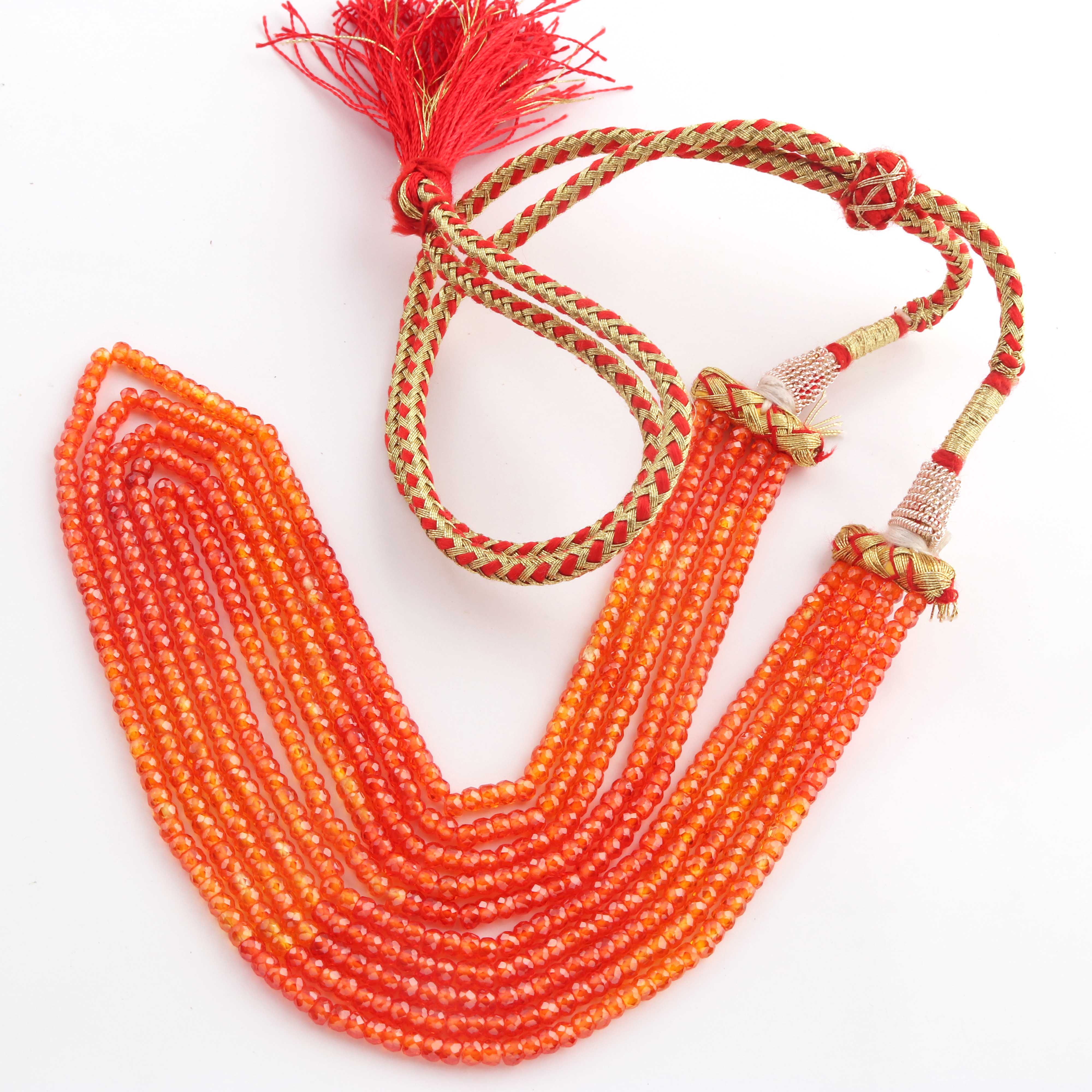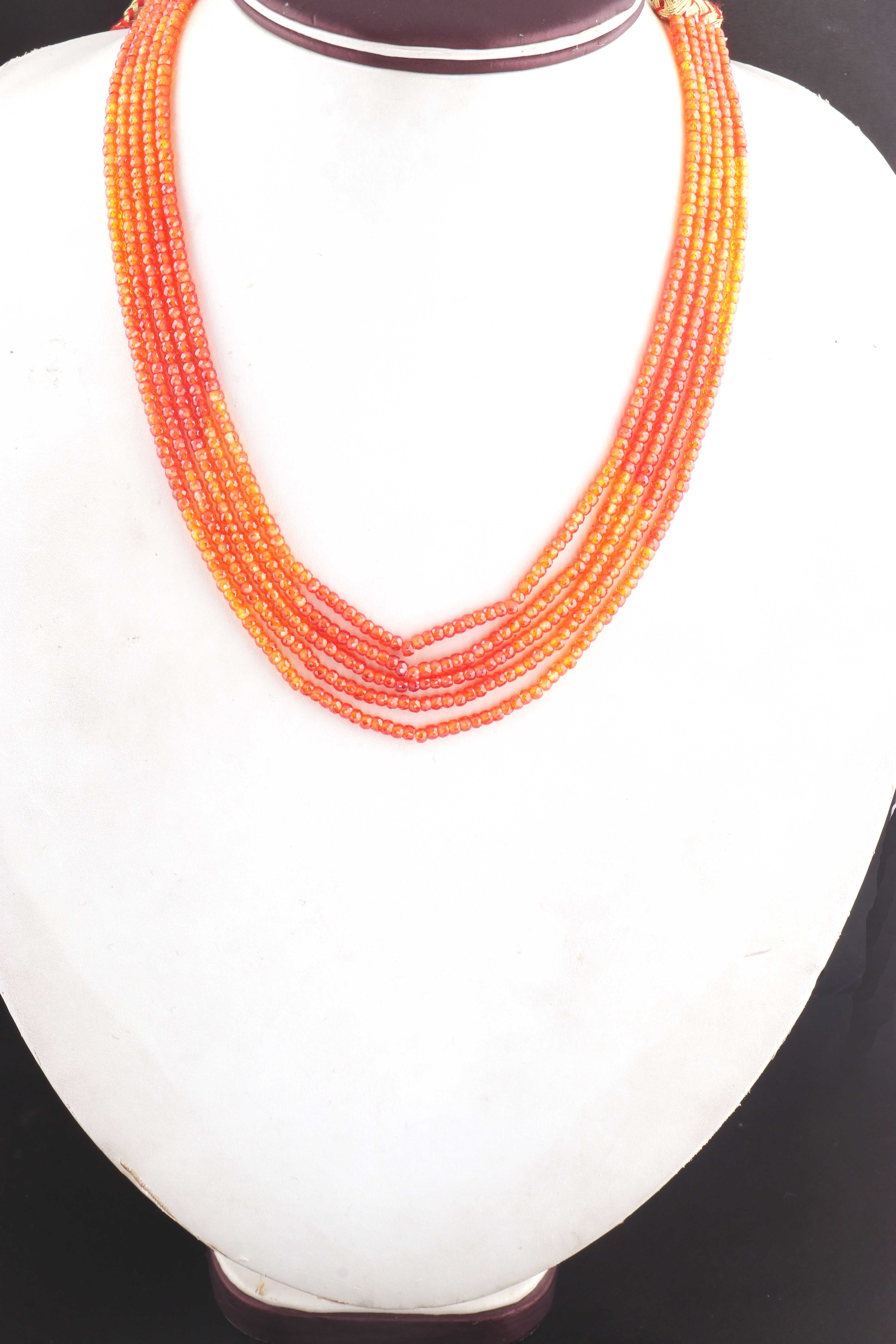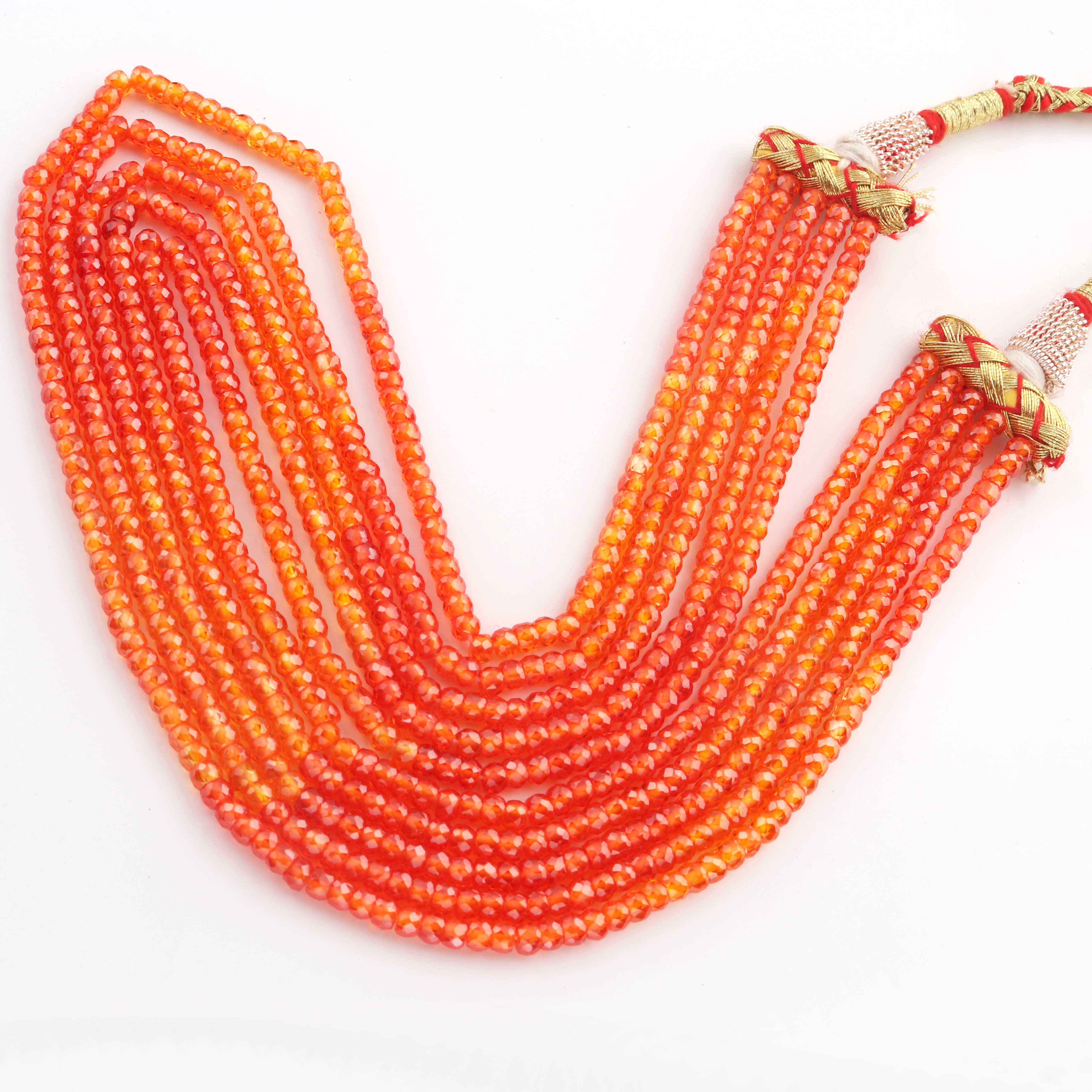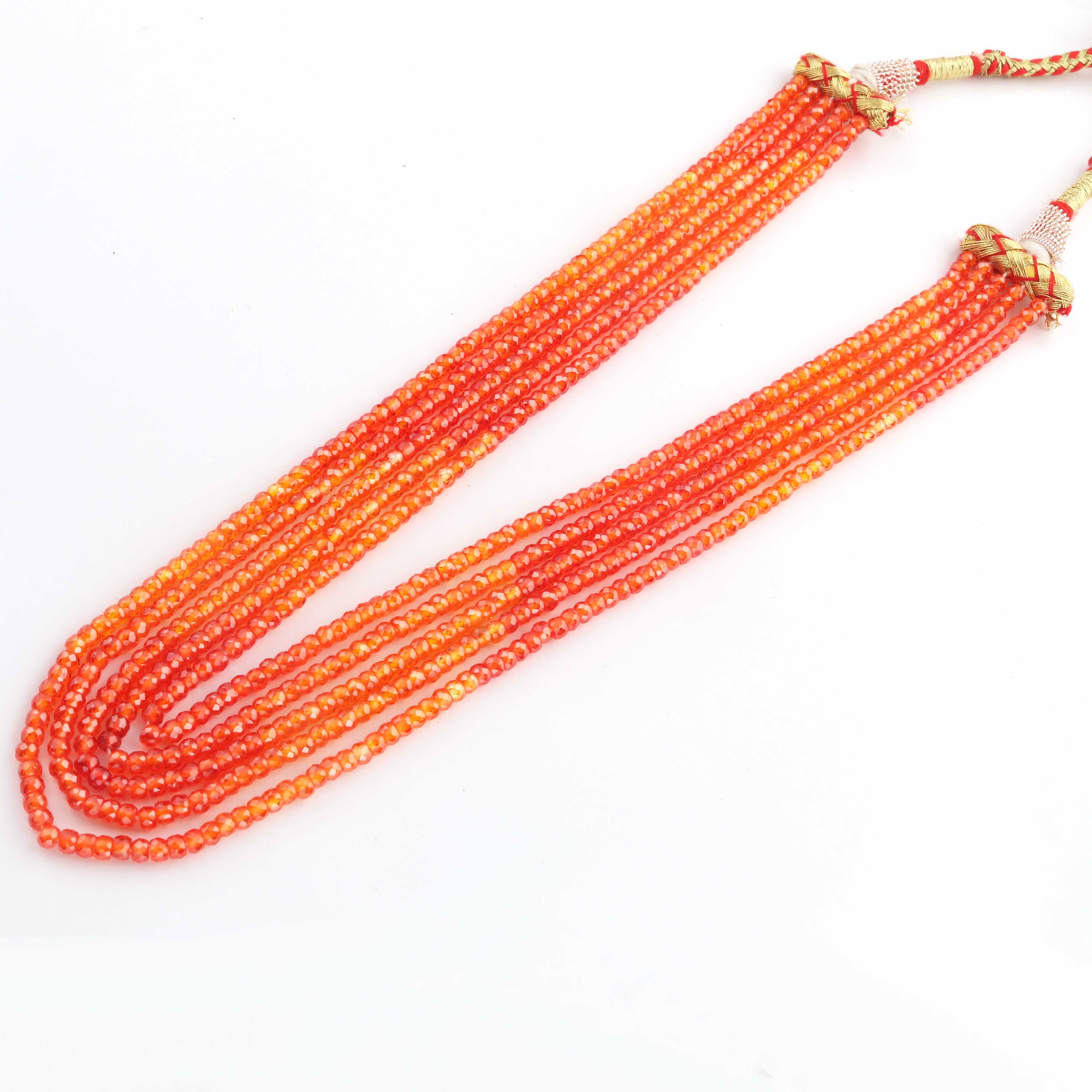 5 Strands AAA Quality Shaded Orange Zircon Faceted Rondelles Ready To Wear Necklace -Sheded Orange Zircon 3mm 13 Inches BR942