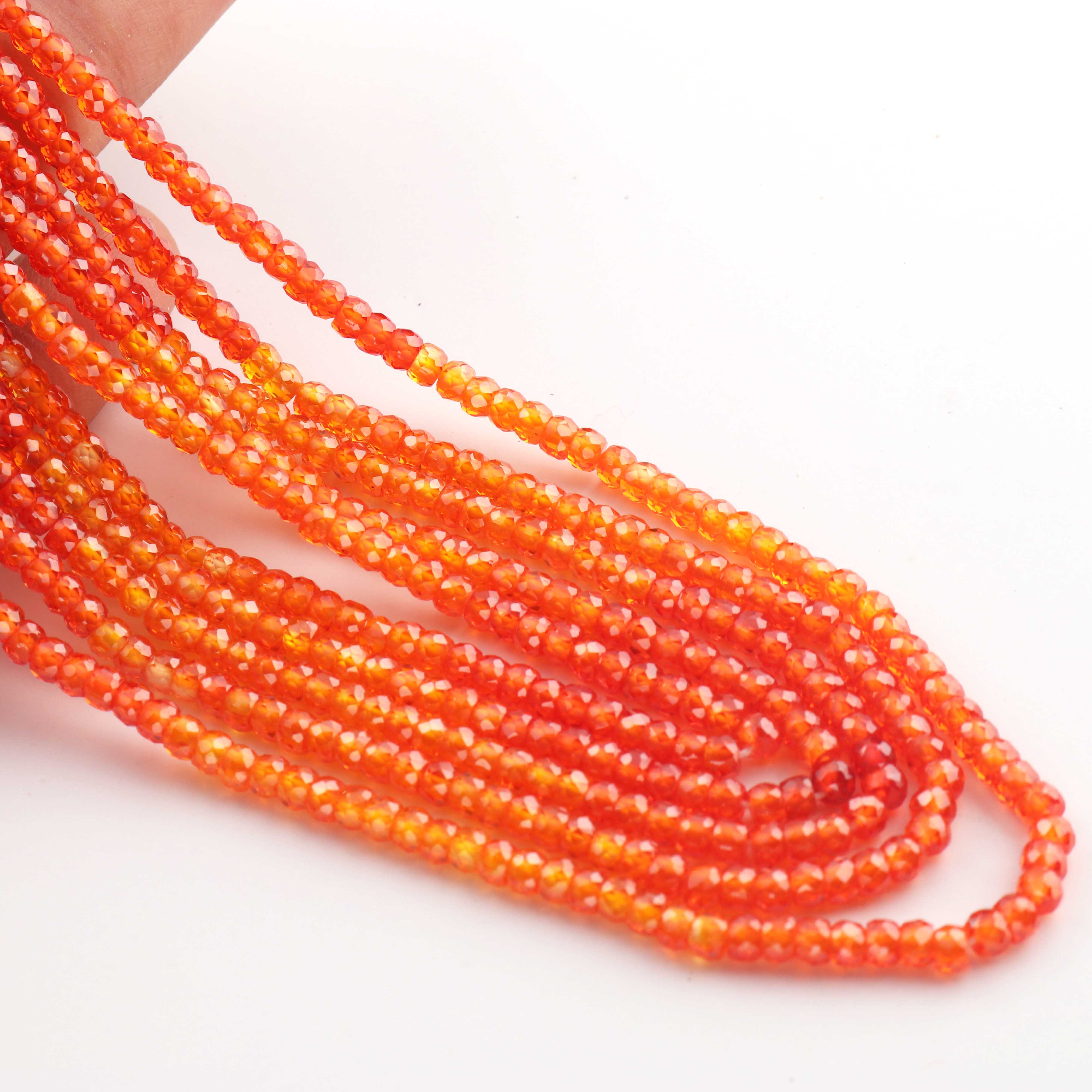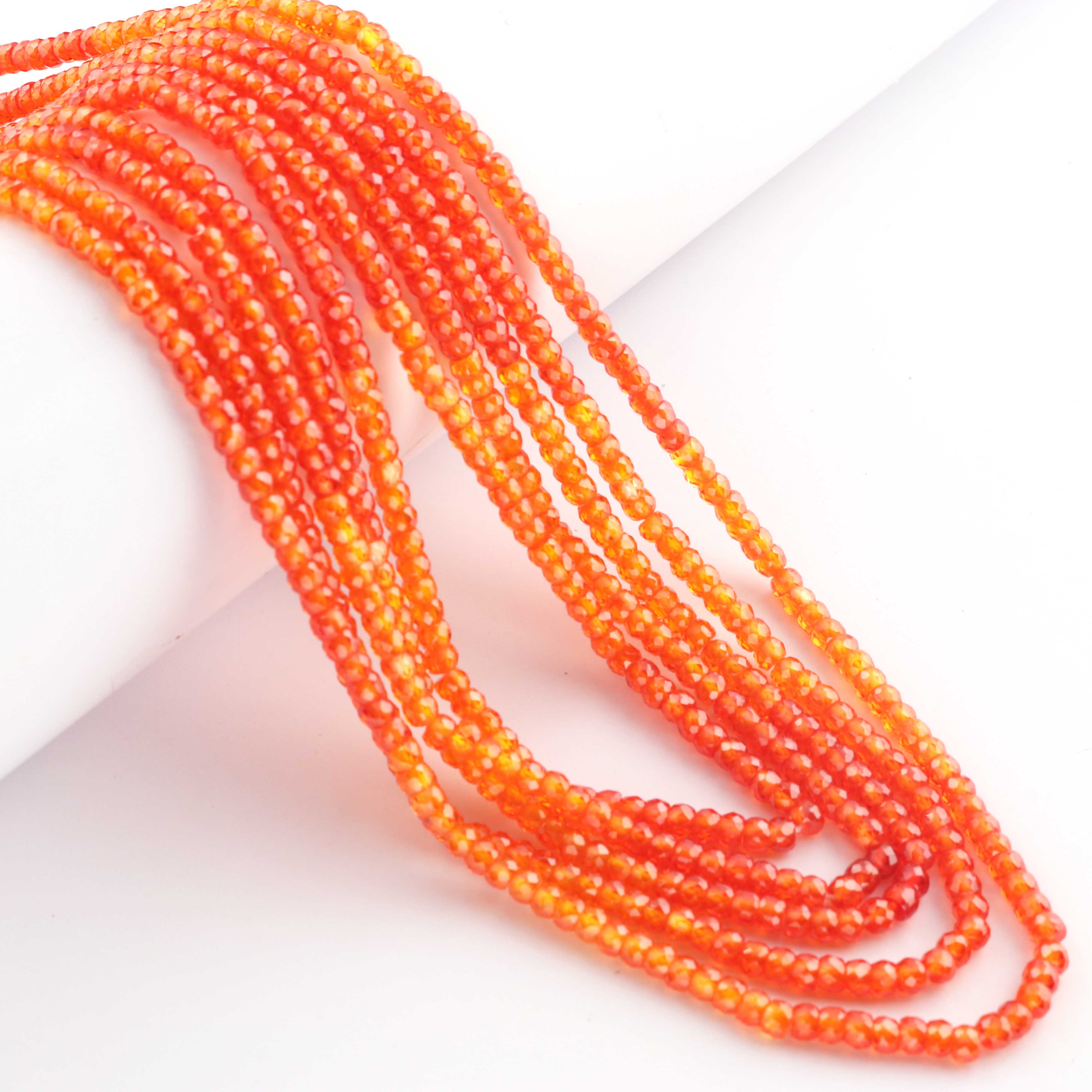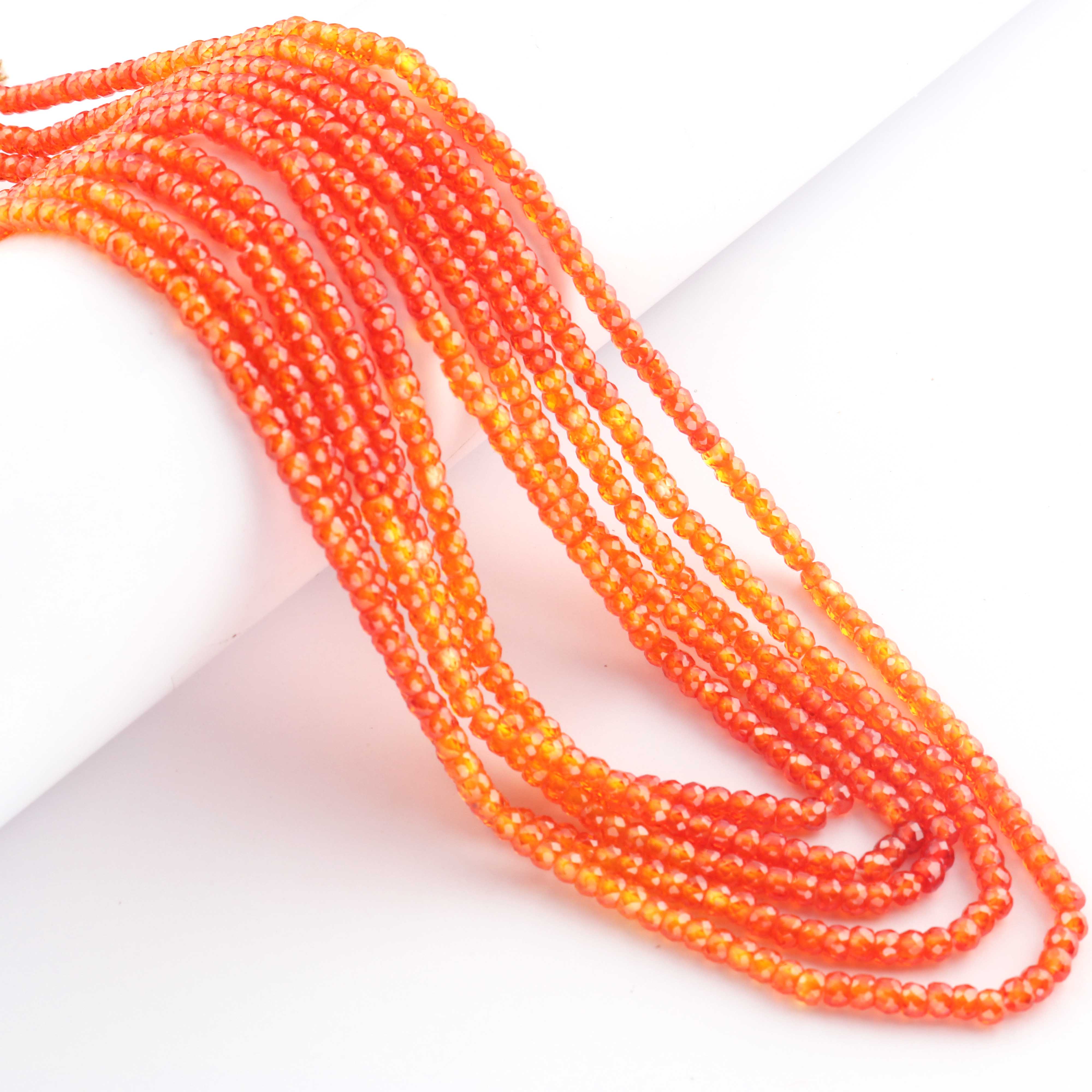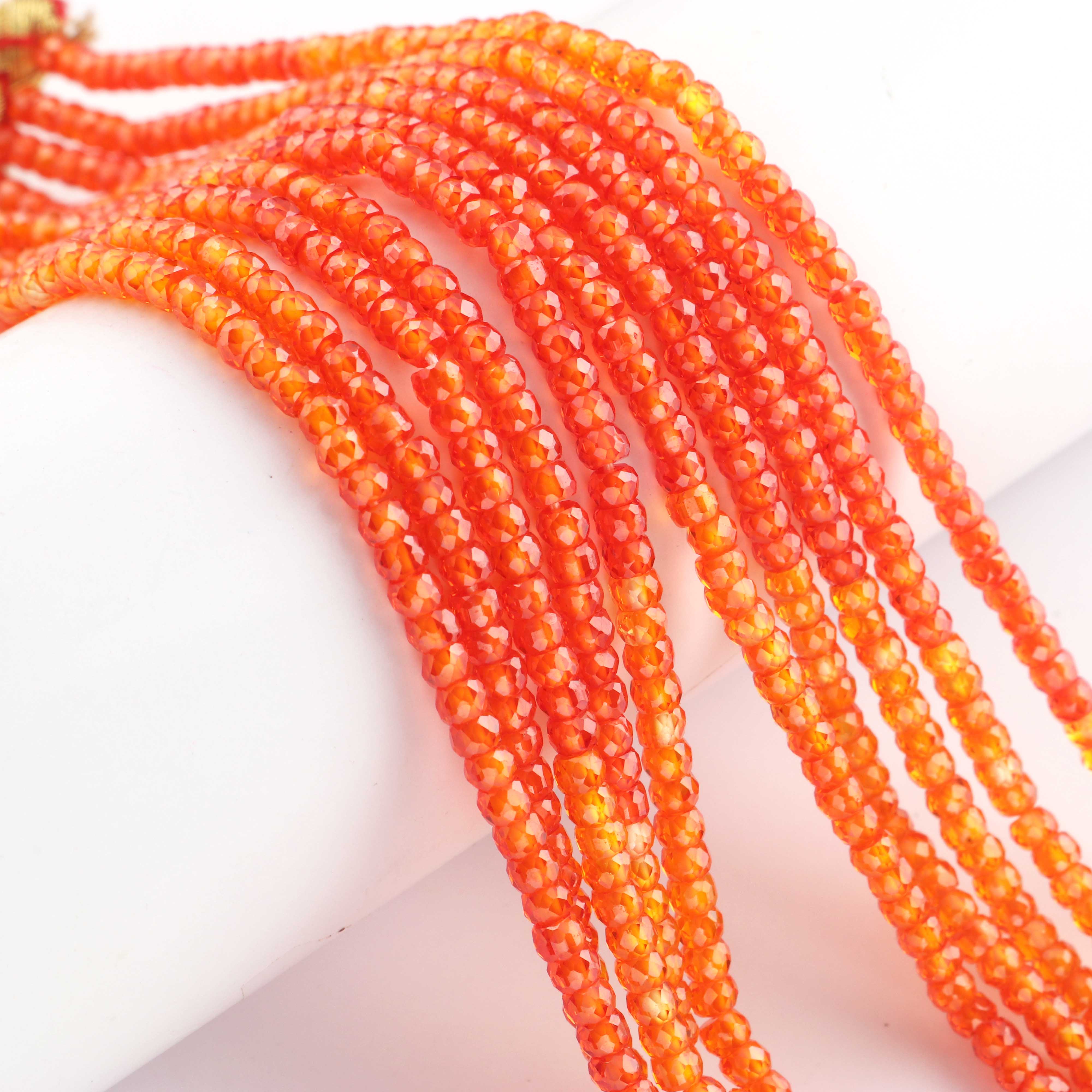 5 Strands AAA Quality Shaded Orange Zircon Faceted Rondelles Ready To Wear Necklace -Sheded Orange Zircon  3mm 13 Inches BR942