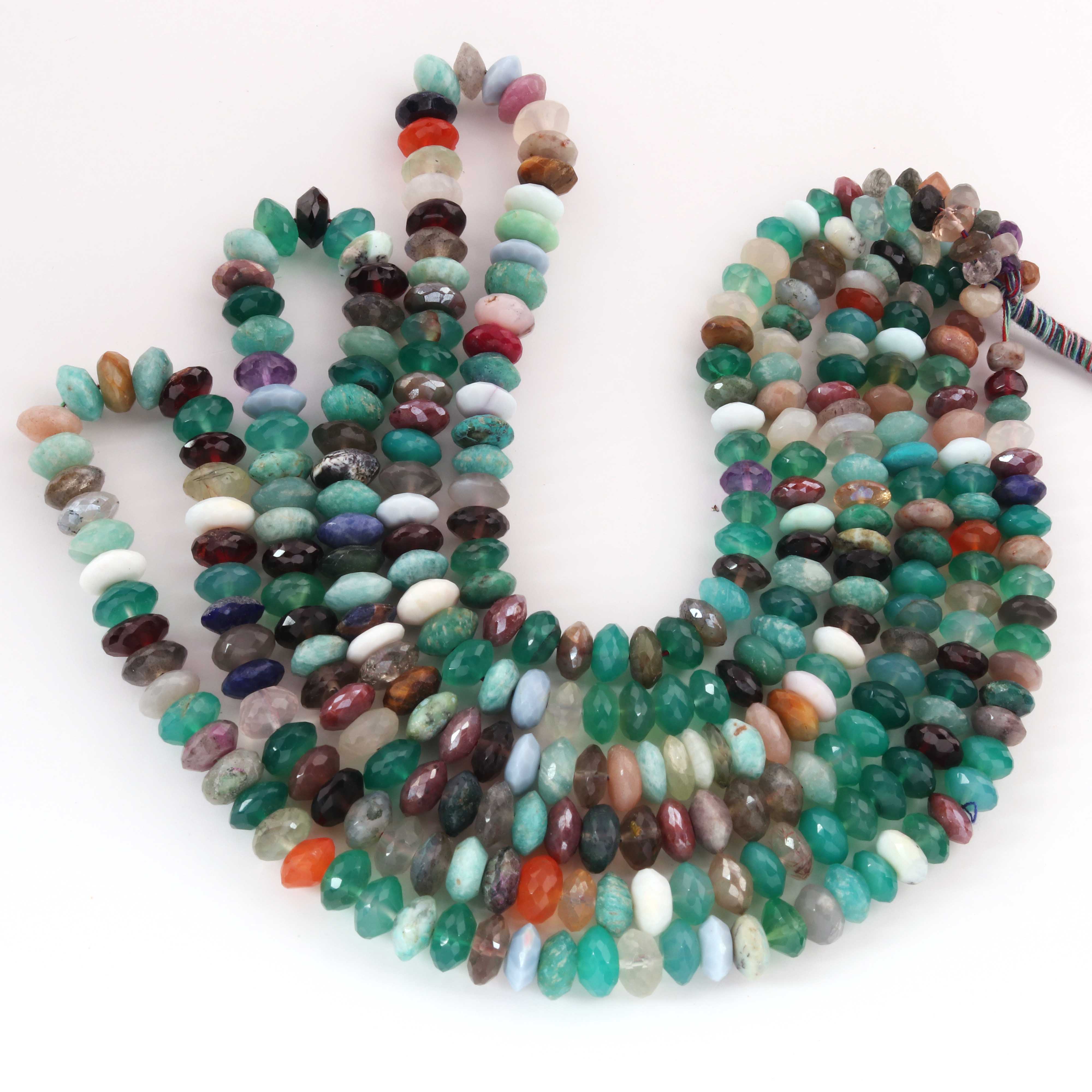 AAA Top Quality 1 Long Strand Multi Stone German Cut Faceted Briolettes , German Cut Beads - 4mm-8mm ,16 Inches BR03073