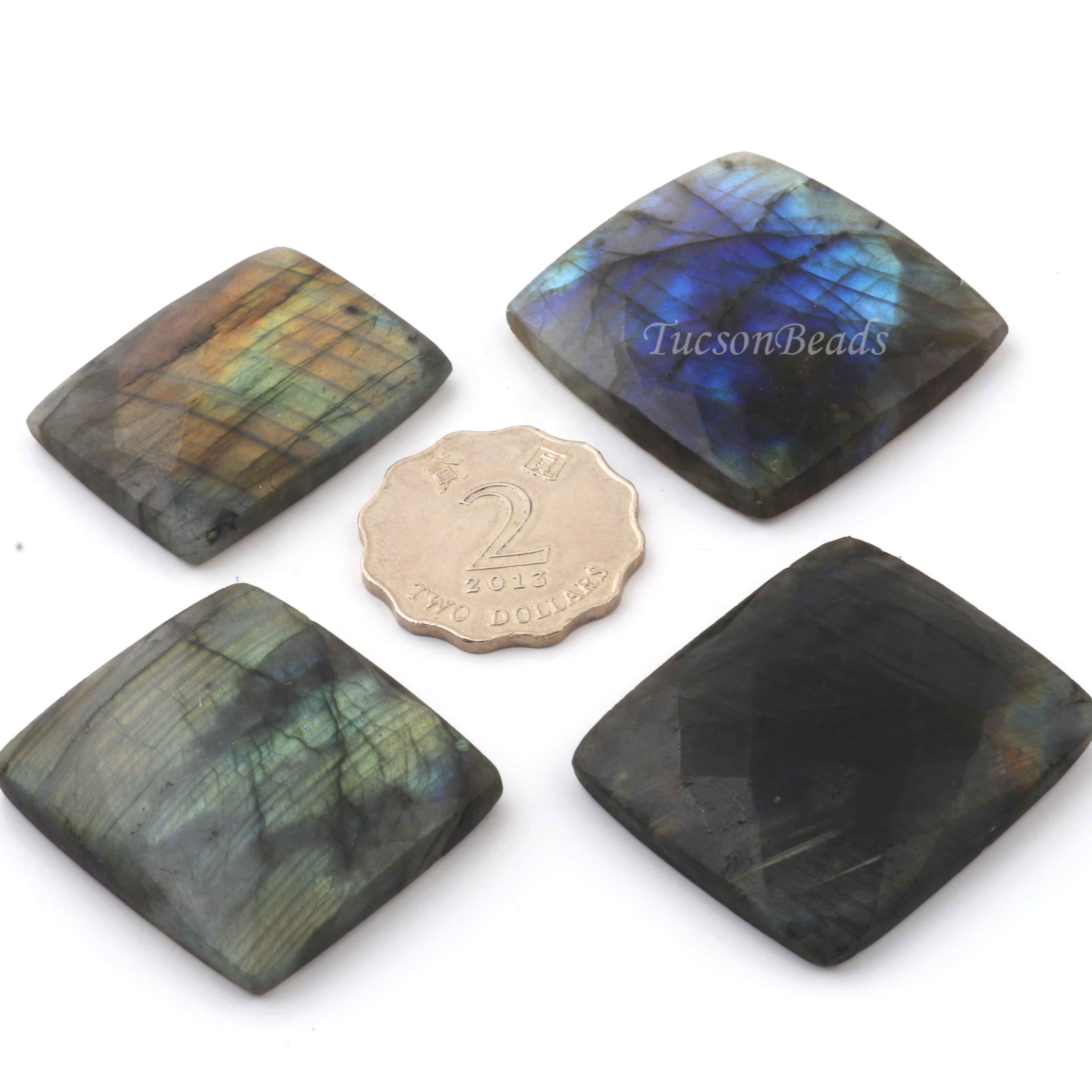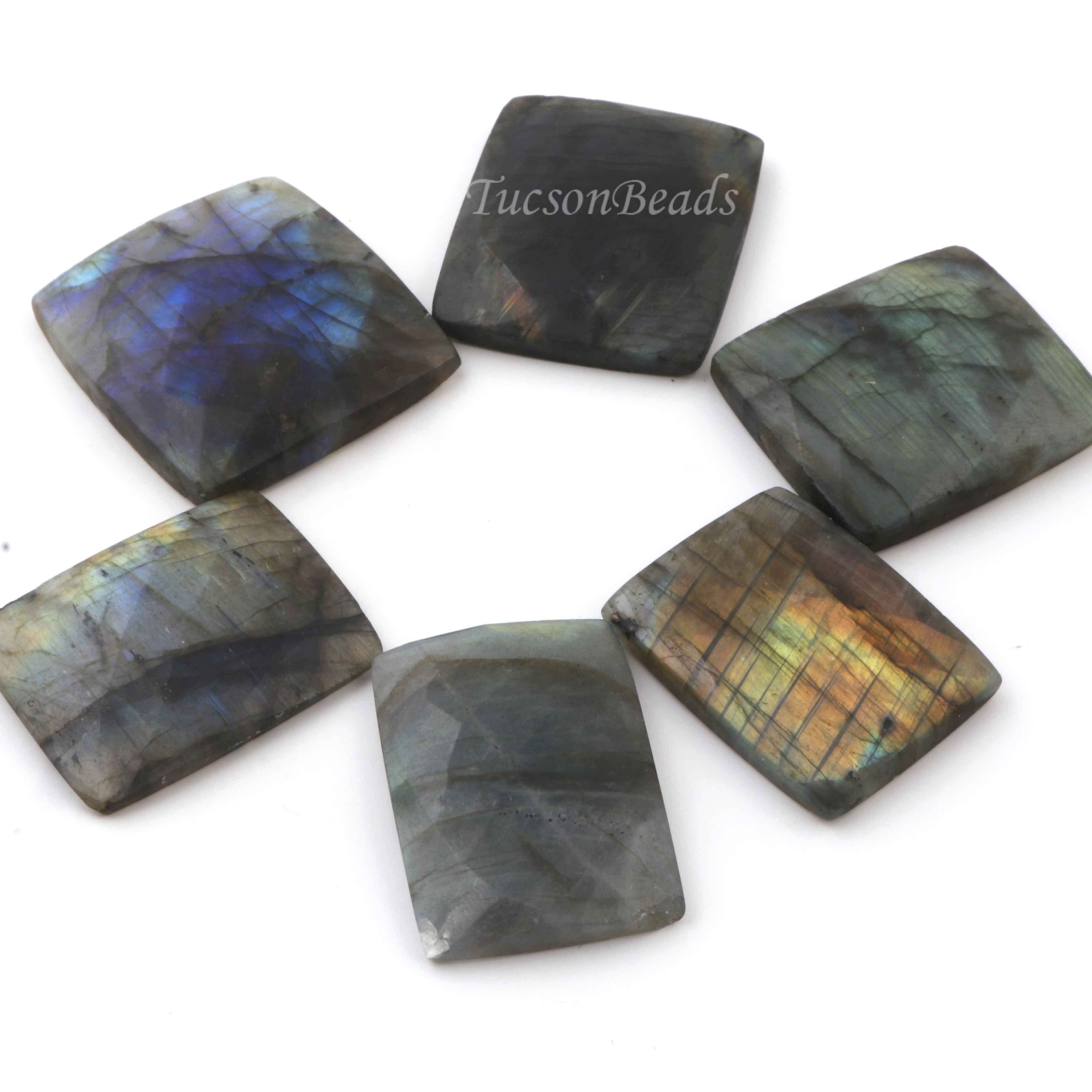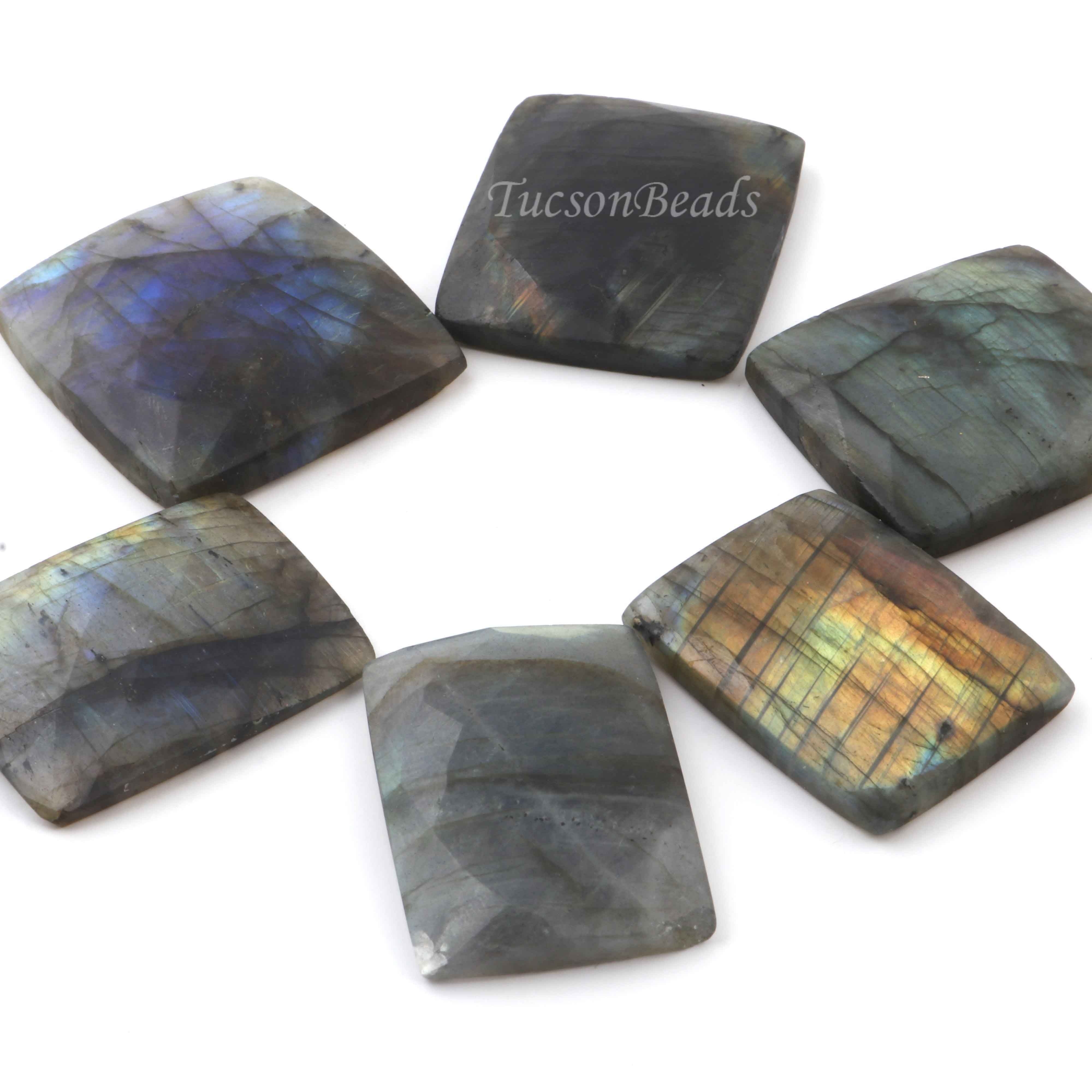 6   Pcs Amazing Labradorite Faceted Cabochon Spectrolite - Square Shape Multi Fire Loose Gemstone -40mmx37mm-37mmx29mm   LGS100
