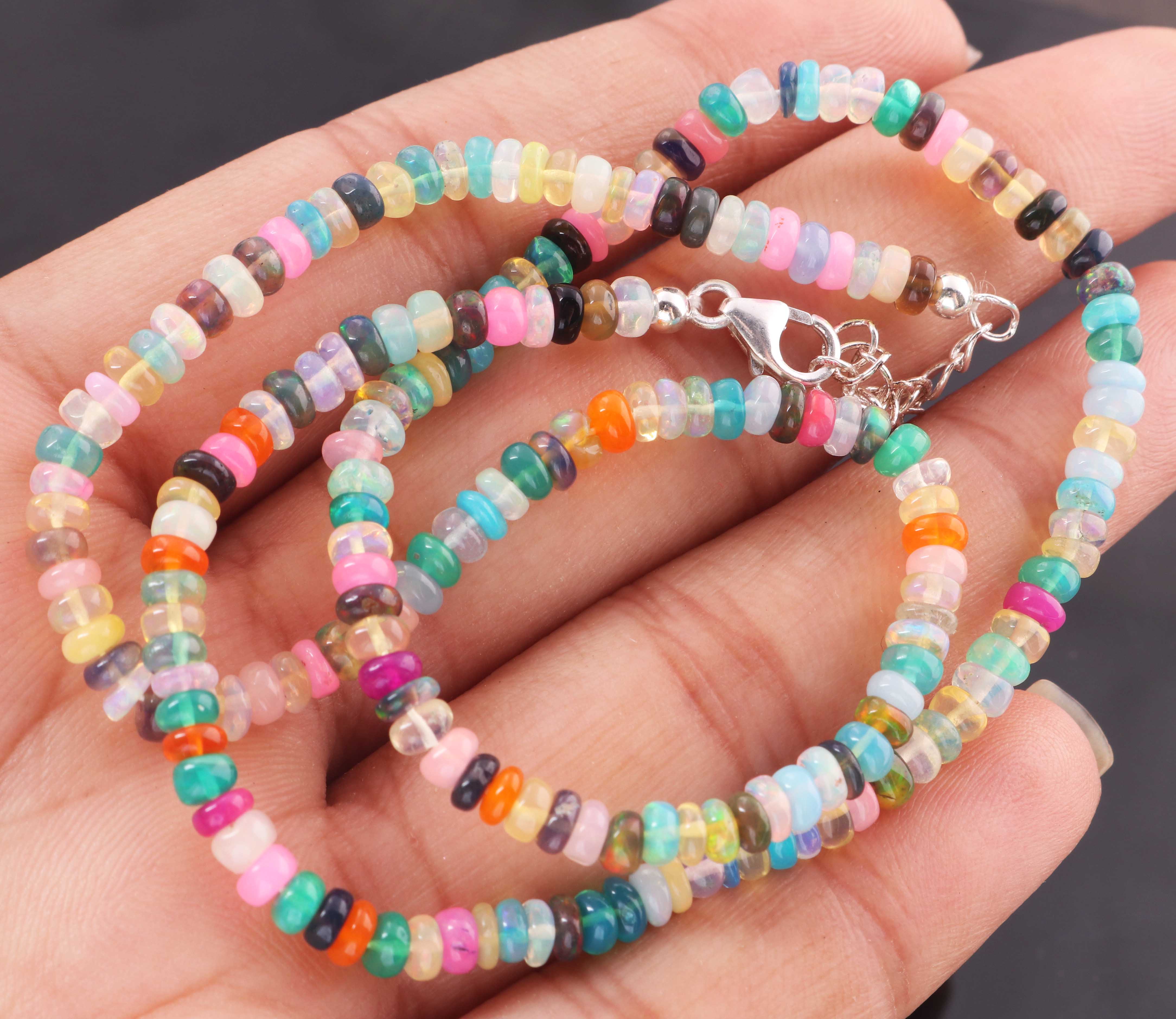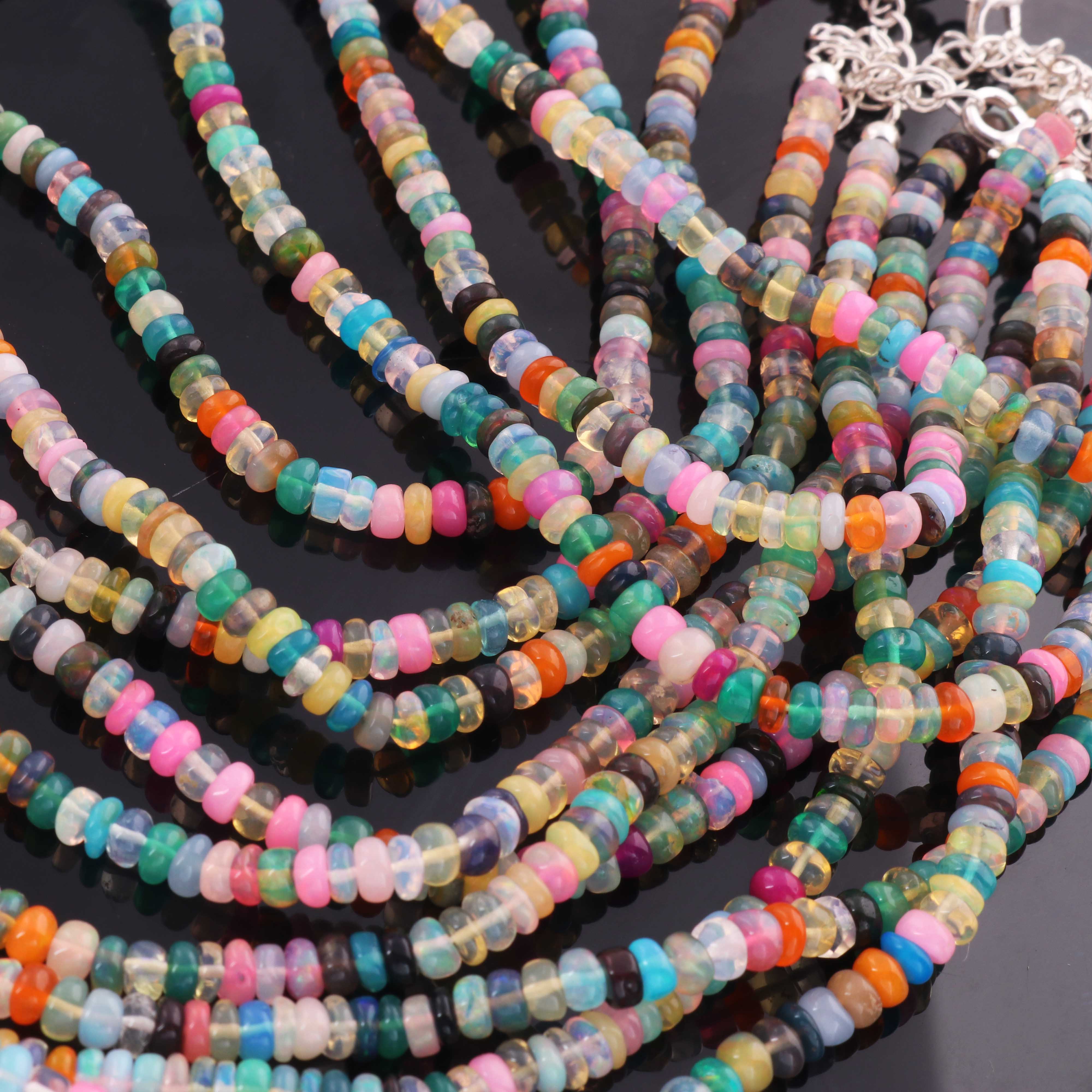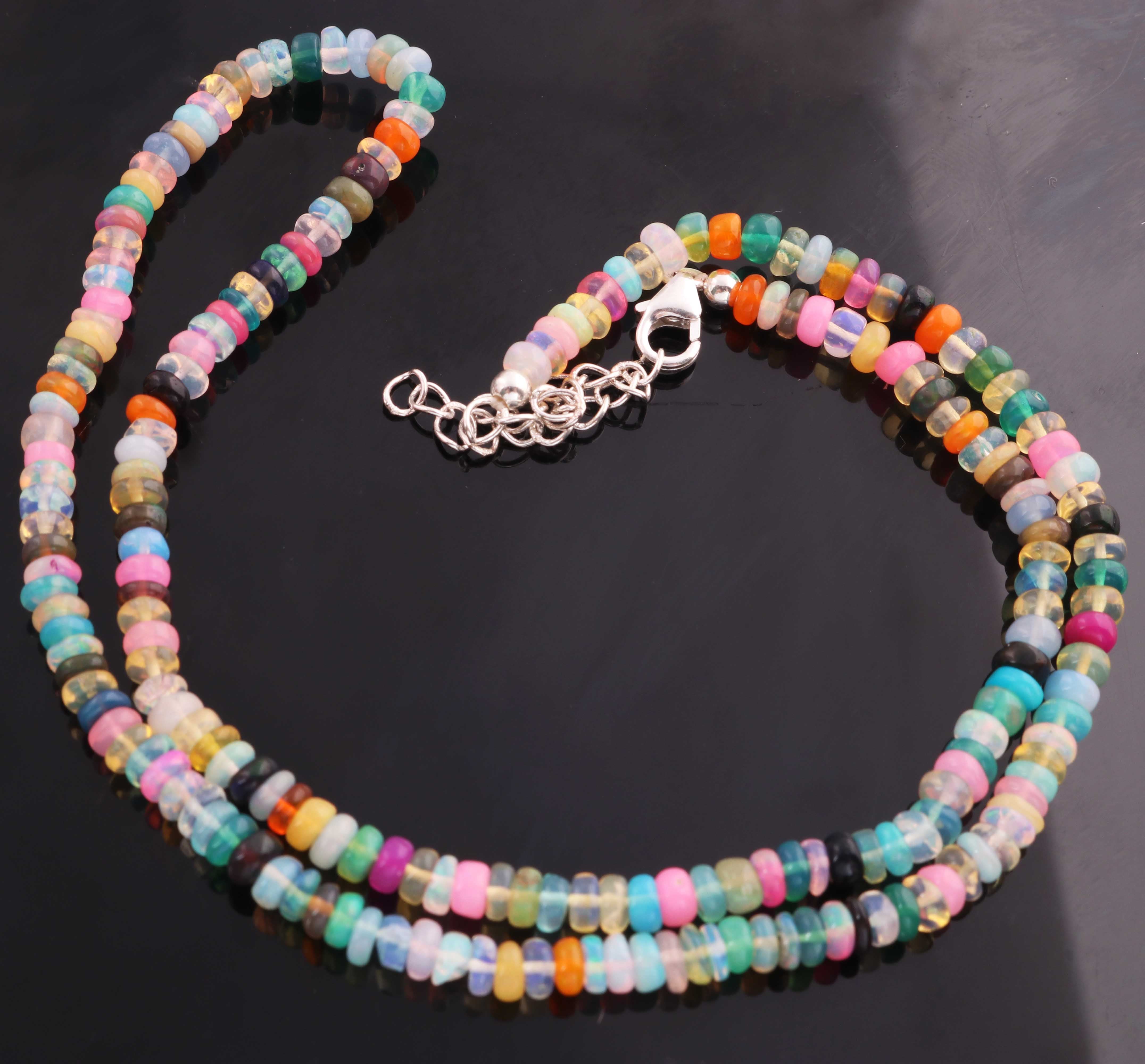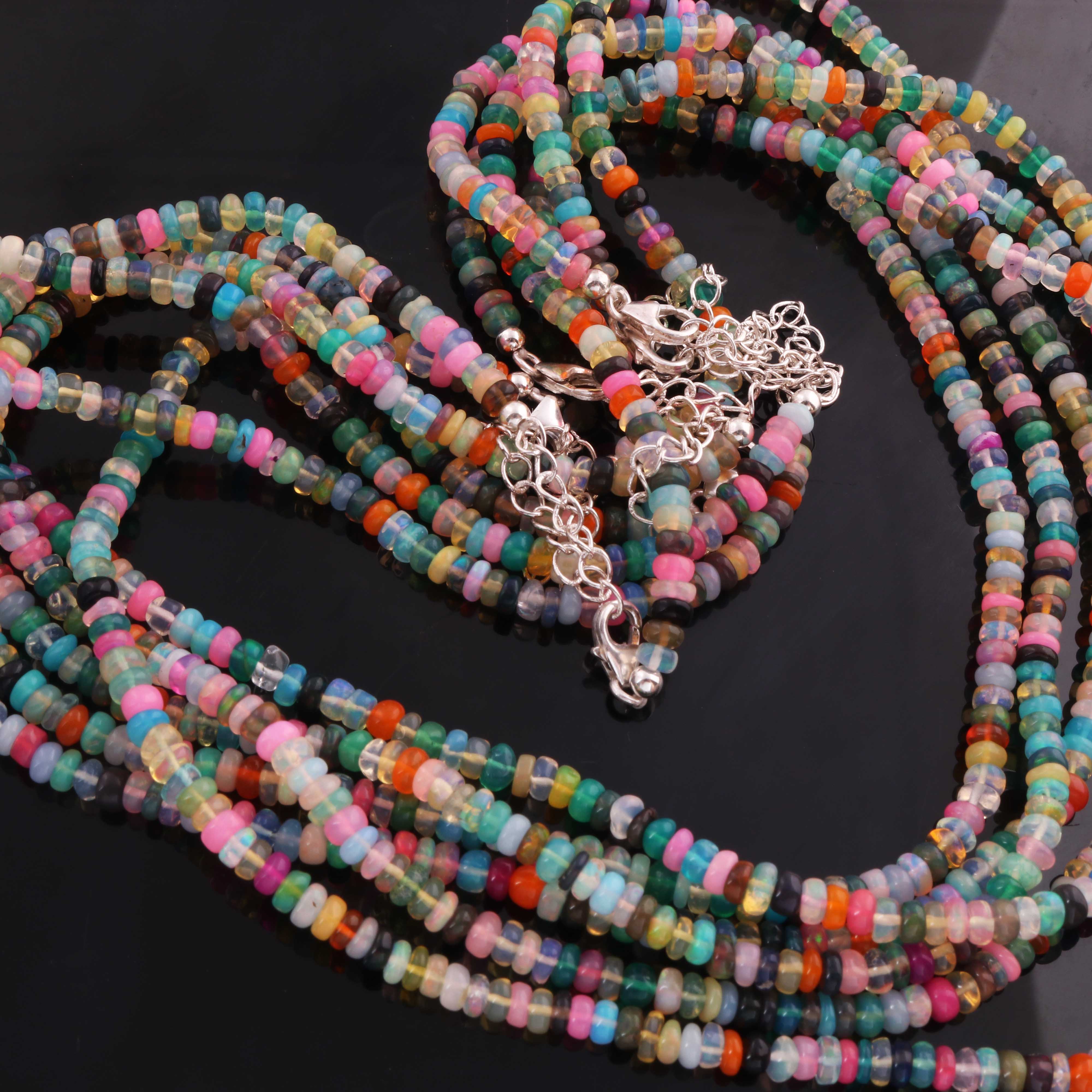 Multi Ethiopian Opal Smooth Rondelles Beaded Necklace - Necklace With Lock -Single Wrap Necklace - Gemstone Necklace - 4mm-15.5 Inches BR-03597