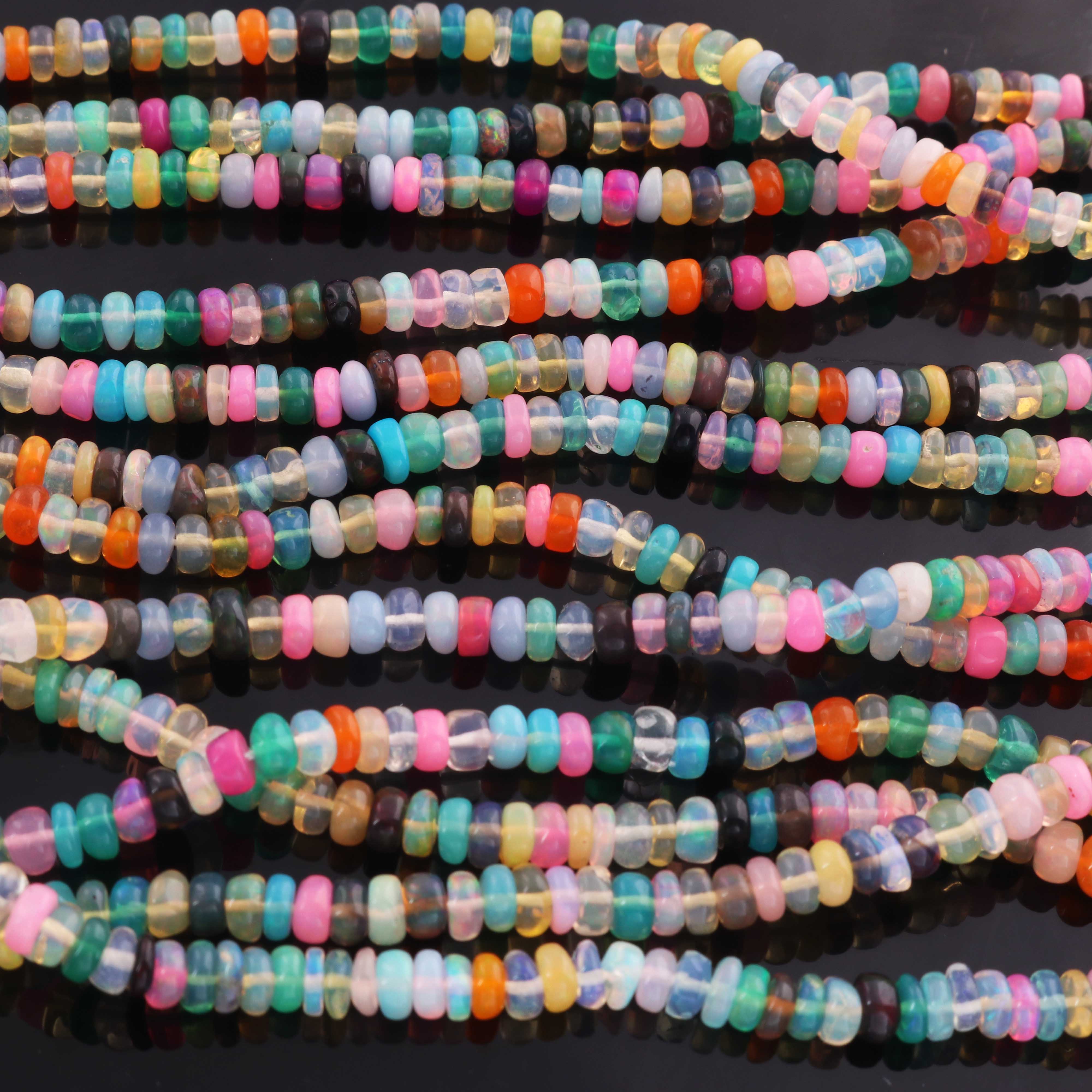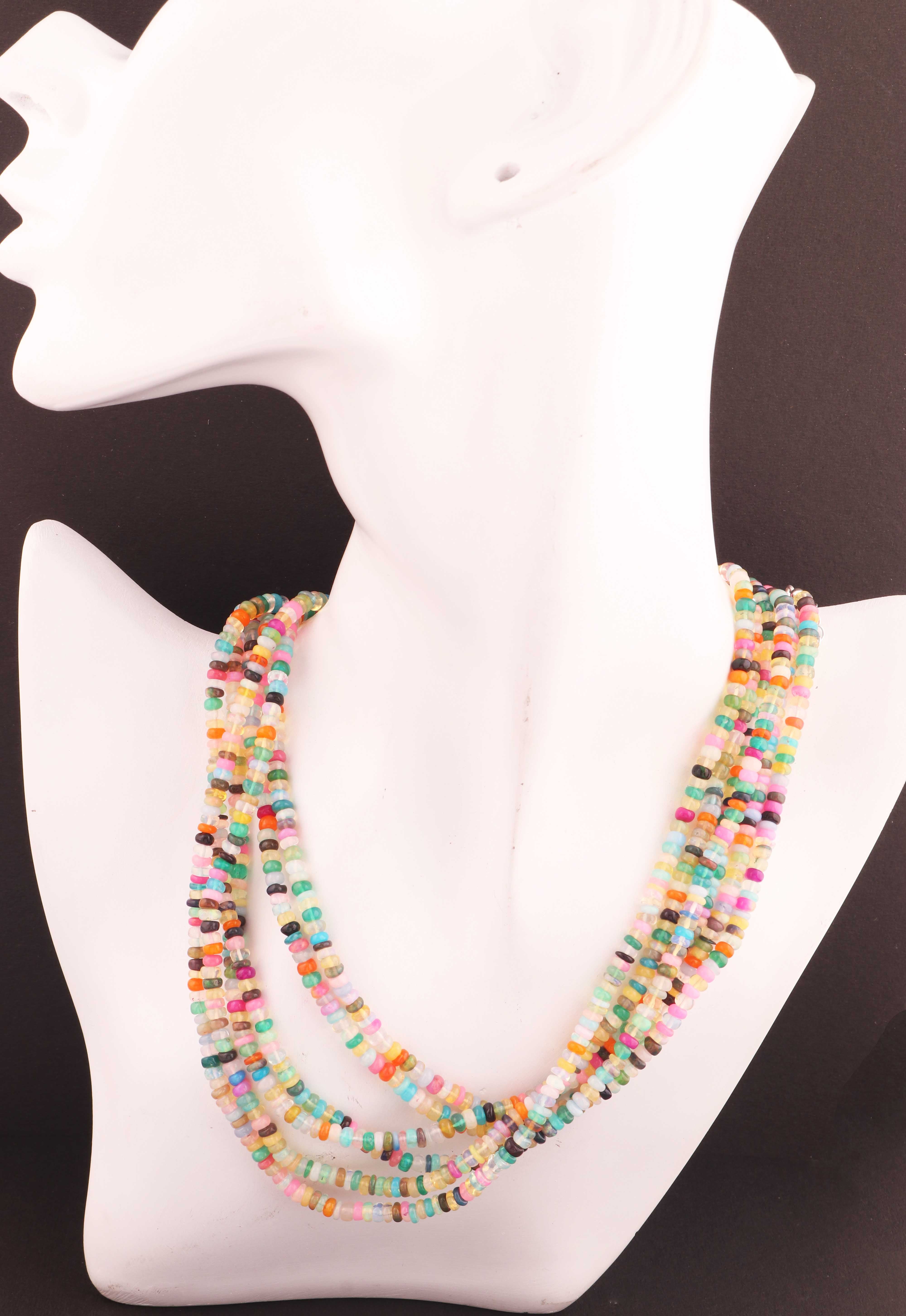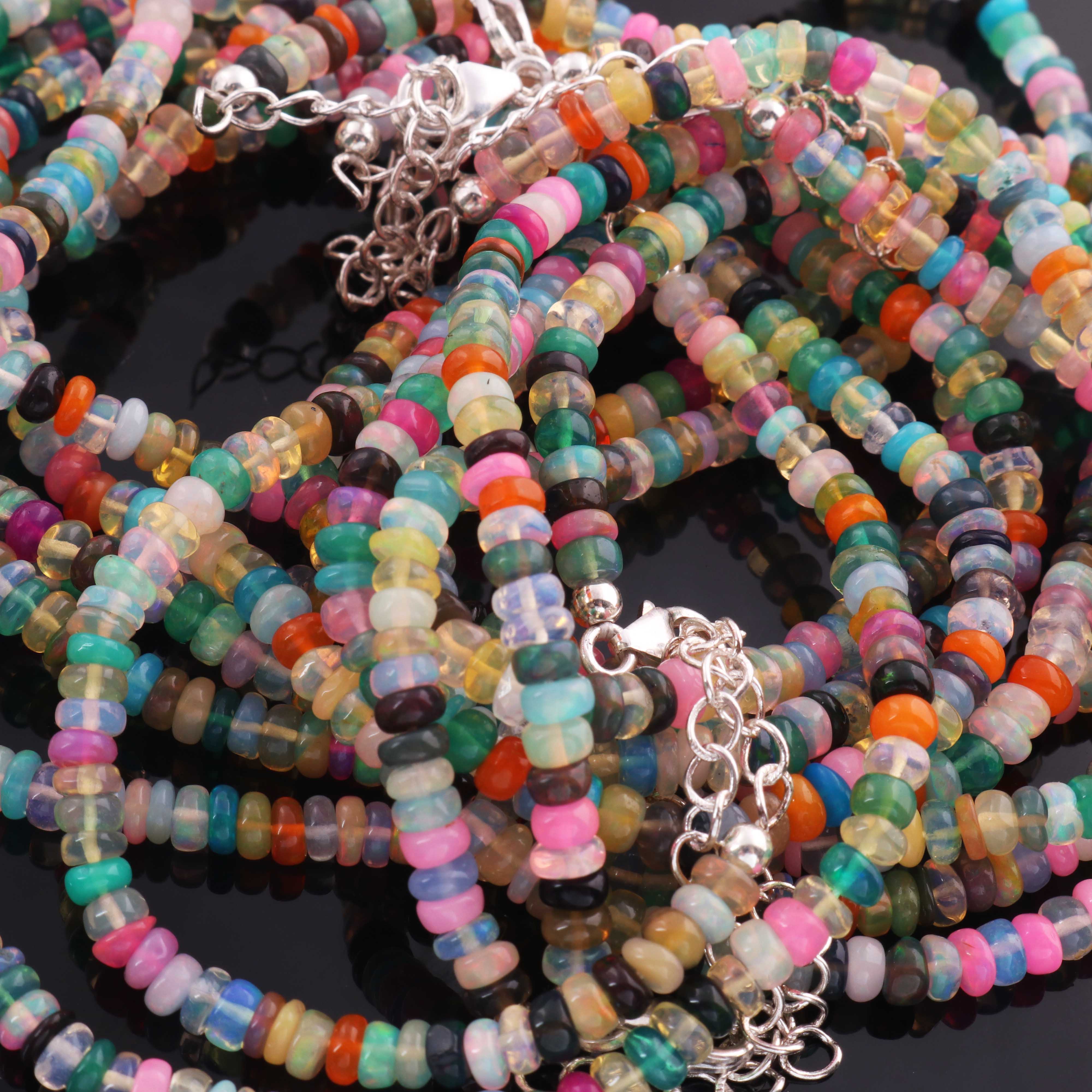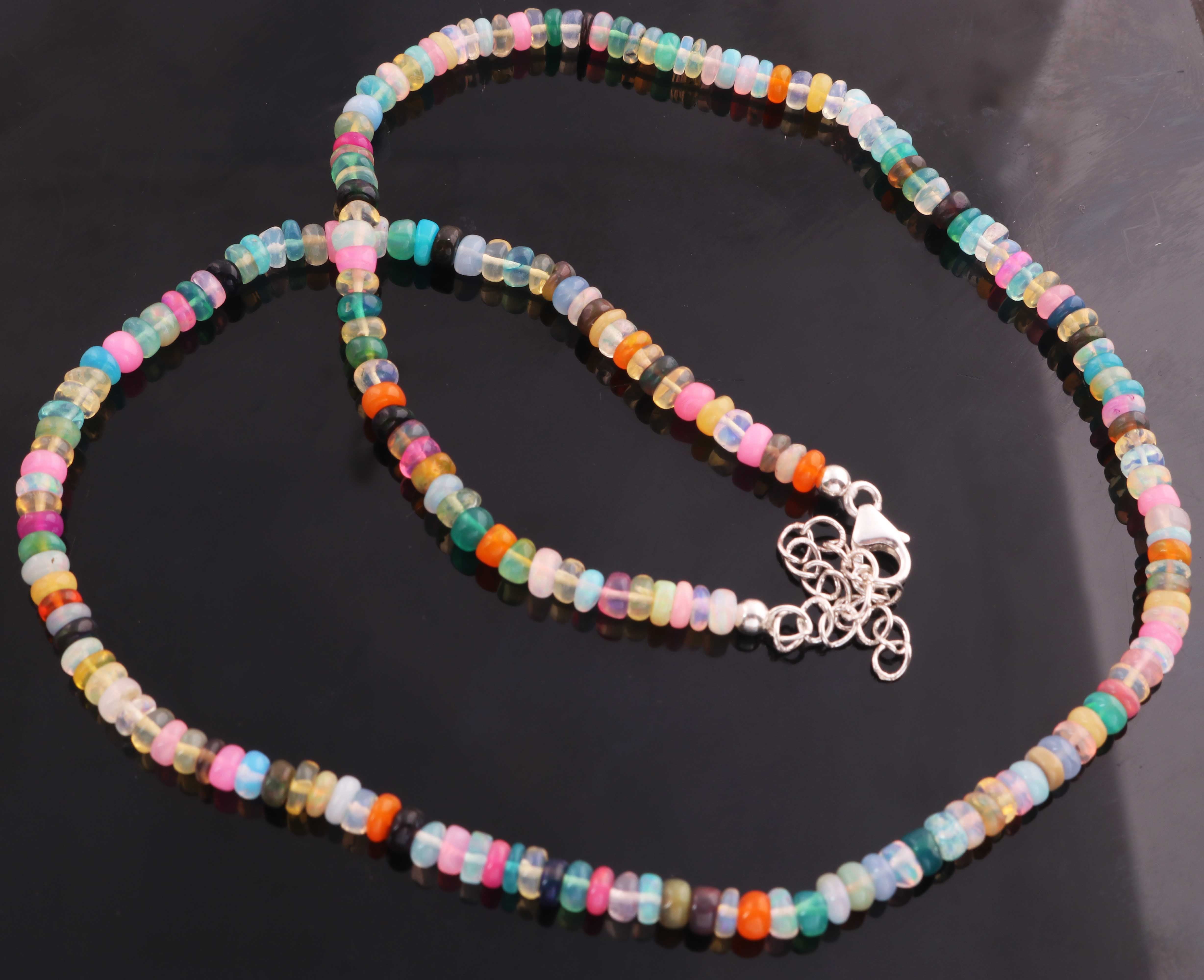 Multi Ethiopian Opal Smooth Rondelles Beaded Necklace - Necklace With Lock -Single Wrap Necklace - Gemstone Necklace - 4mm-15.5 Inches BR-03597