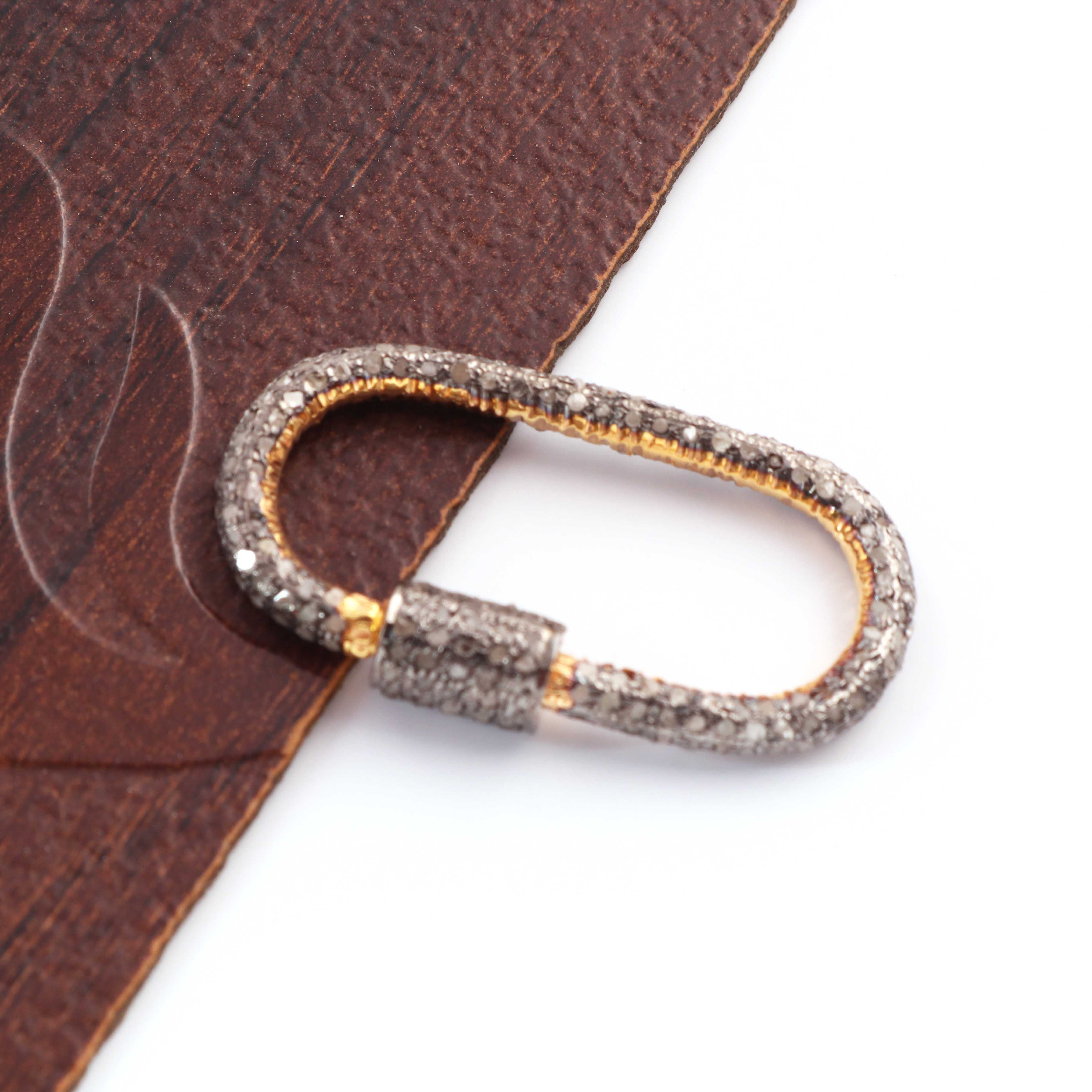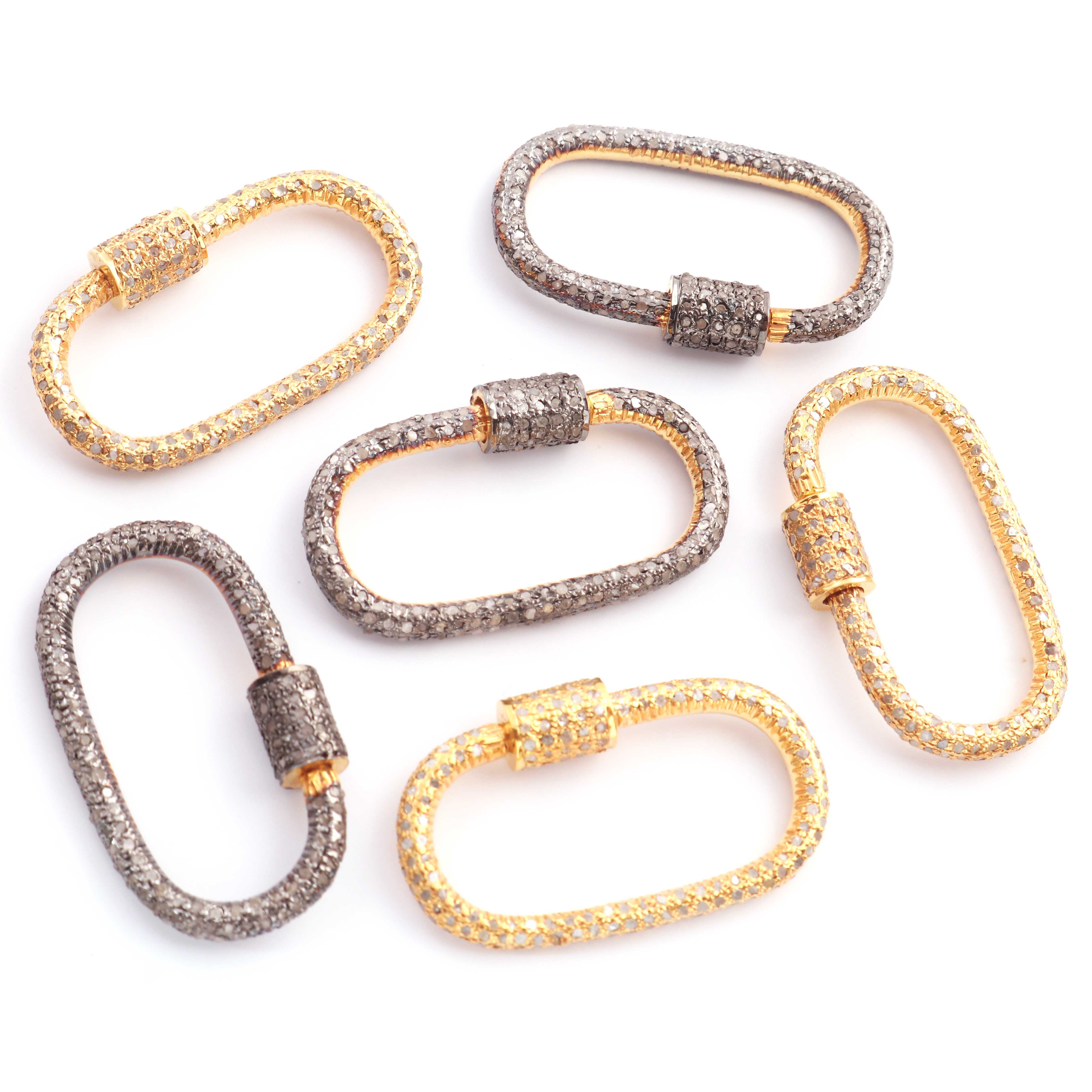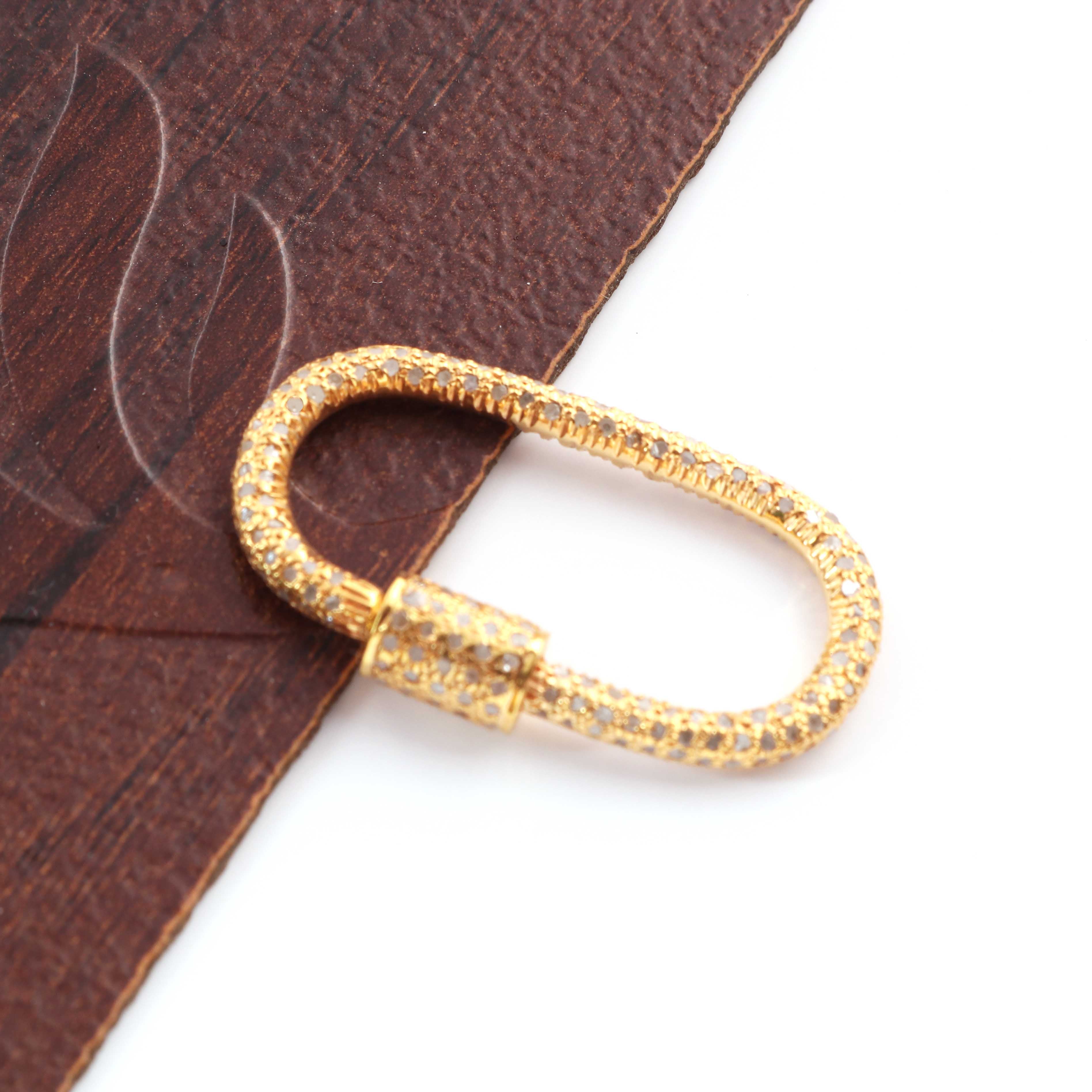 1 Pc Pave Diamond Designer 925 Sterling Vermeil & Yellow Gold Vermeil Carabiner - Diamond Lock with Screw On Mechanism 29mmx17mm PDC00451
