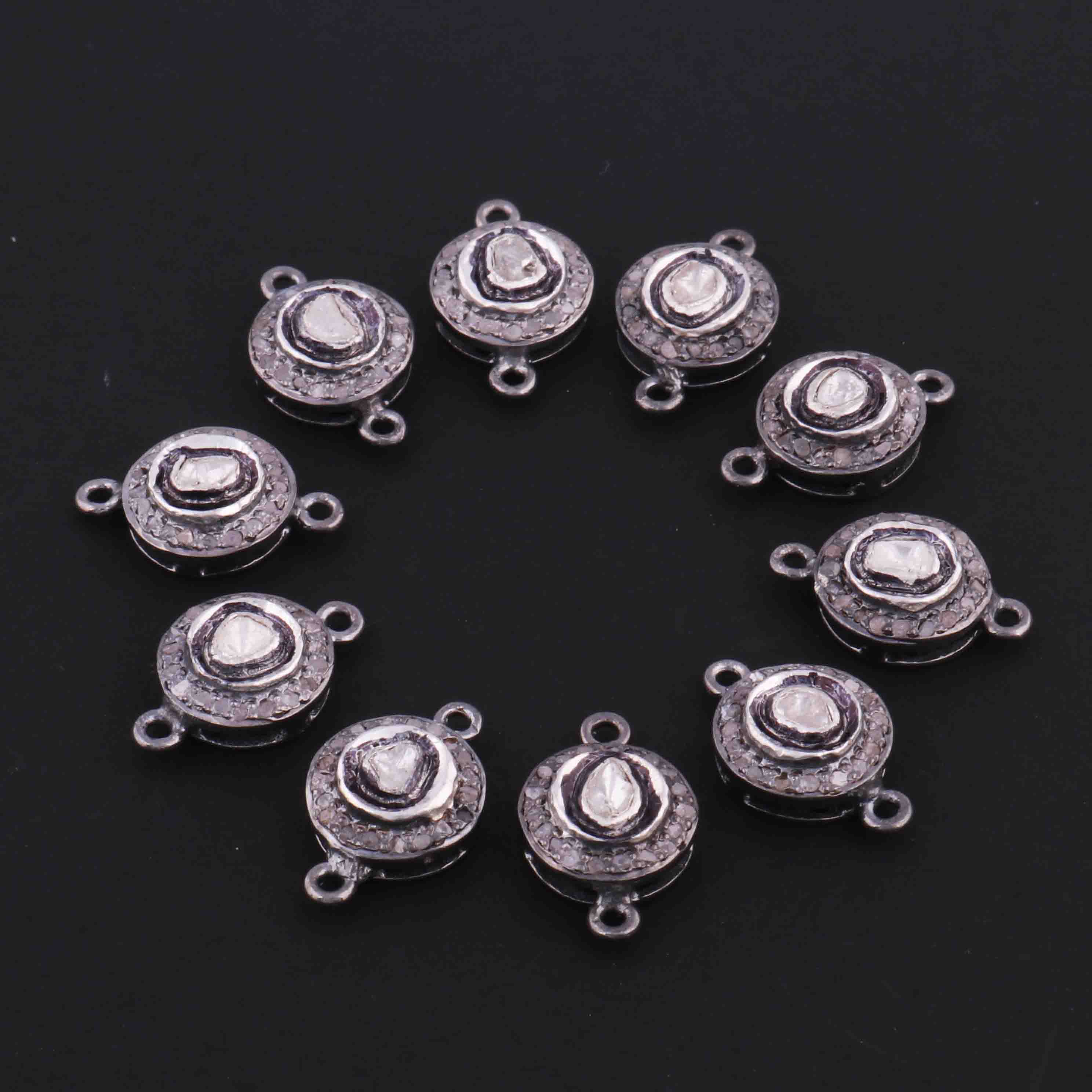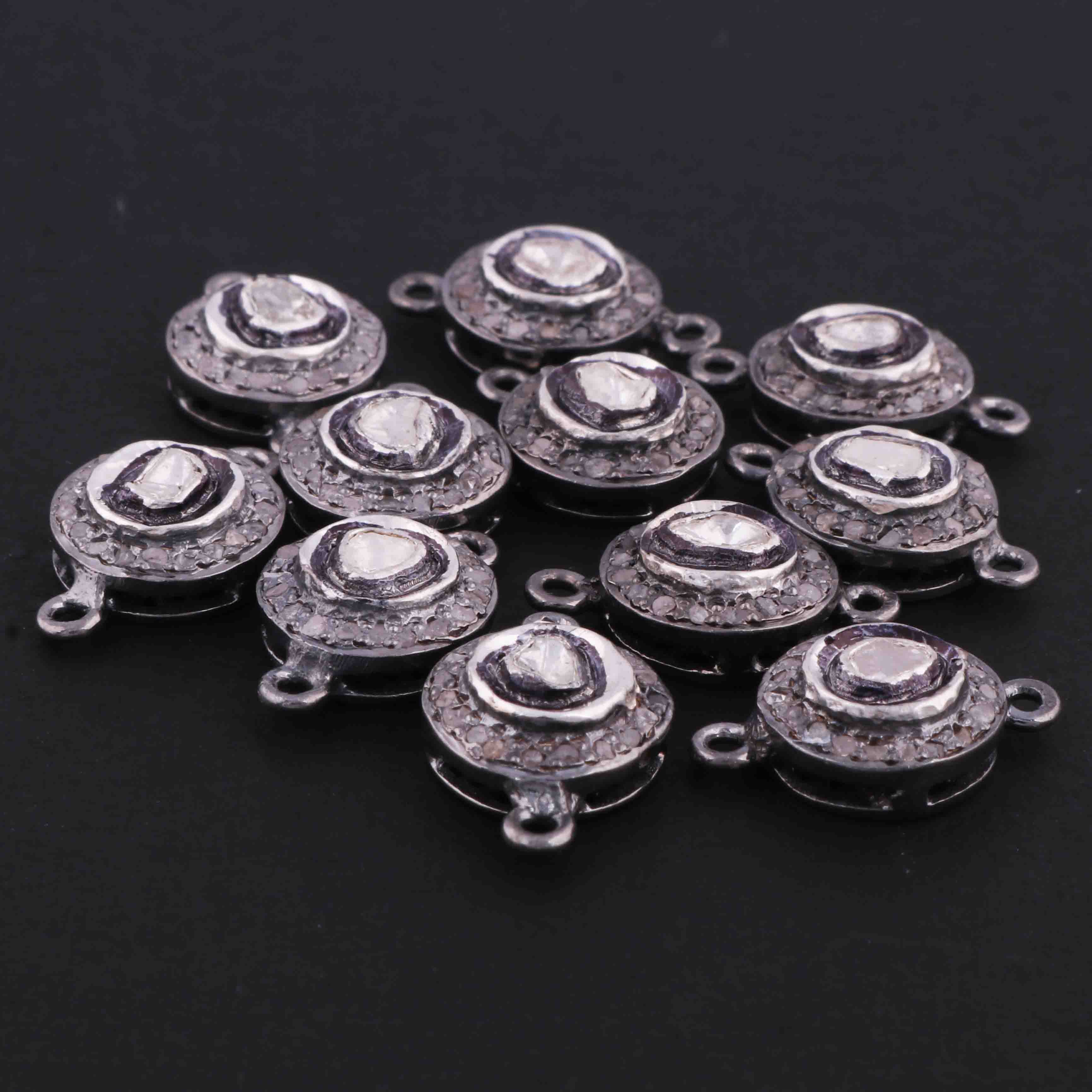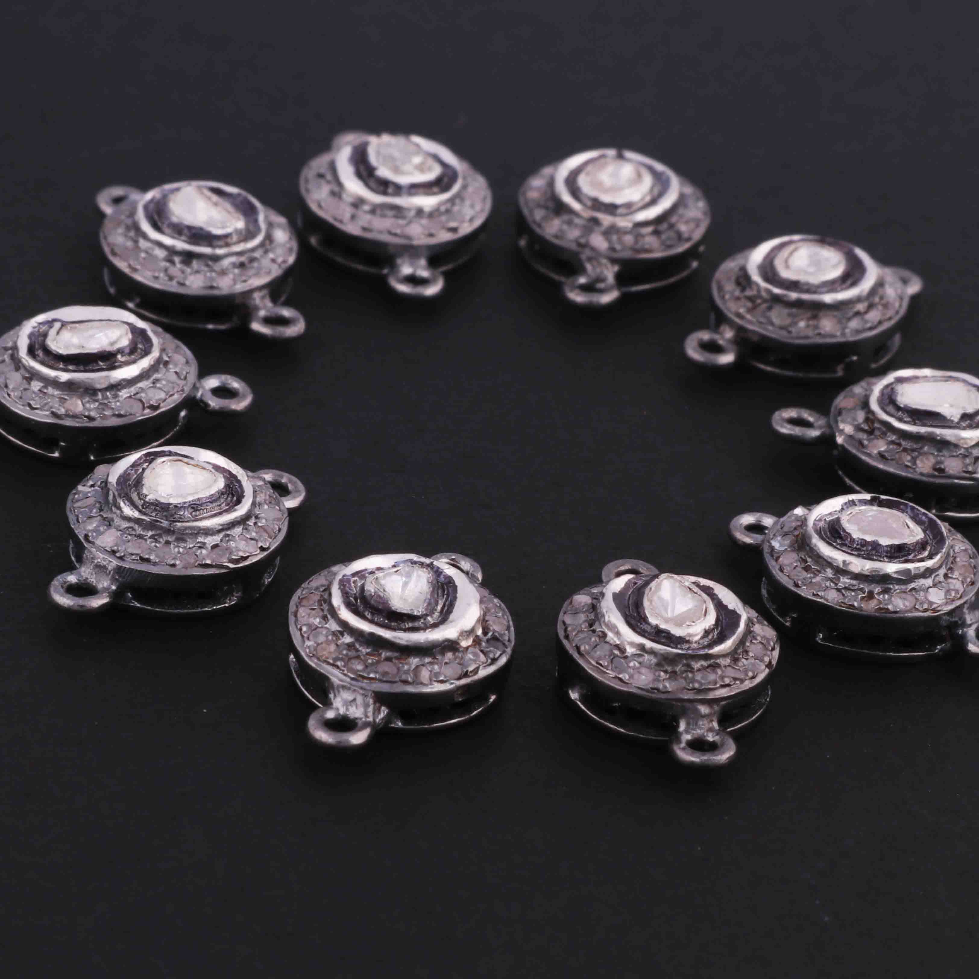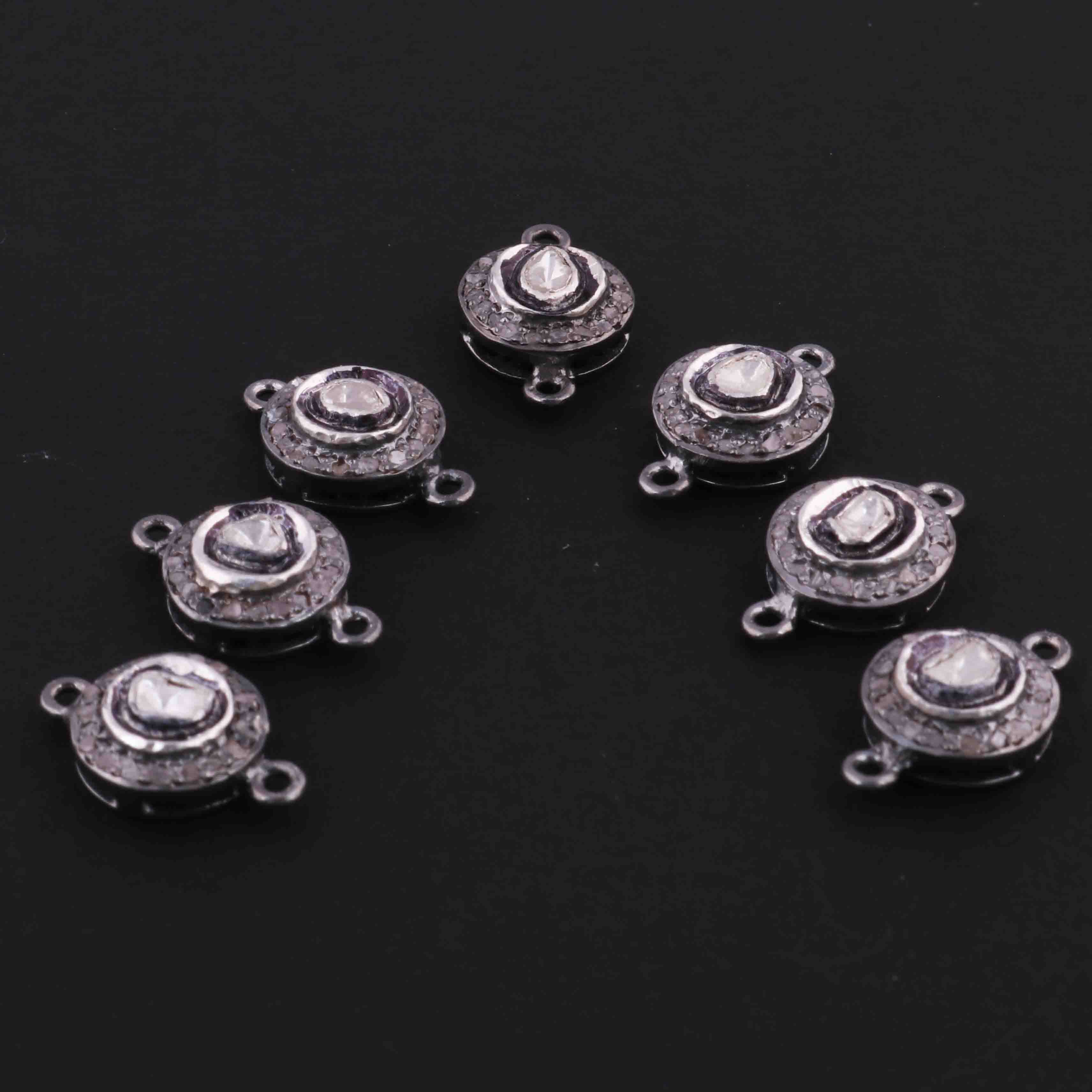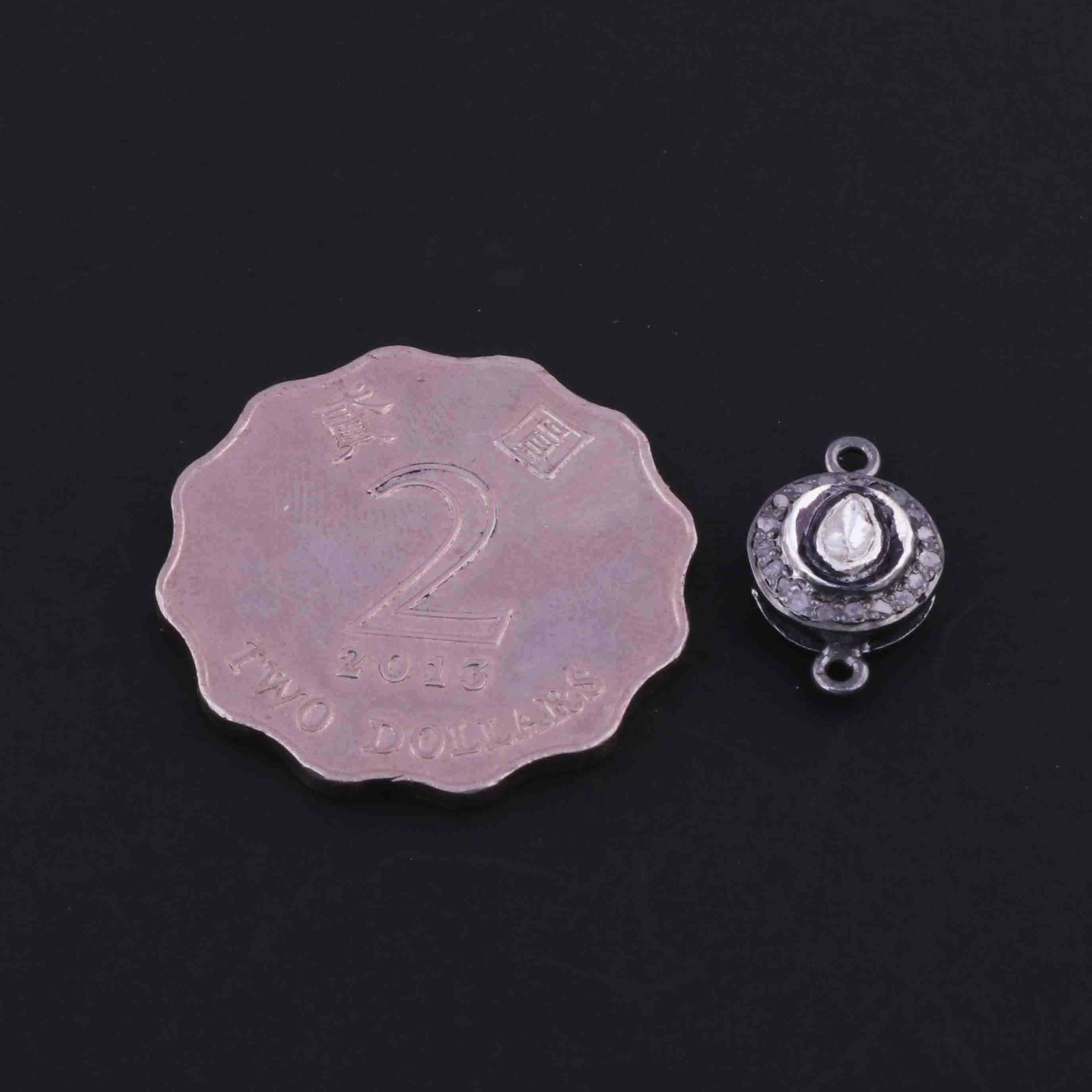 1 Pc Pave Diamond With Rosecut Diamond 925 Sterling Silver Round Double Bail Connector- Polki Connector-Size: 16mmx10mm PDC1403