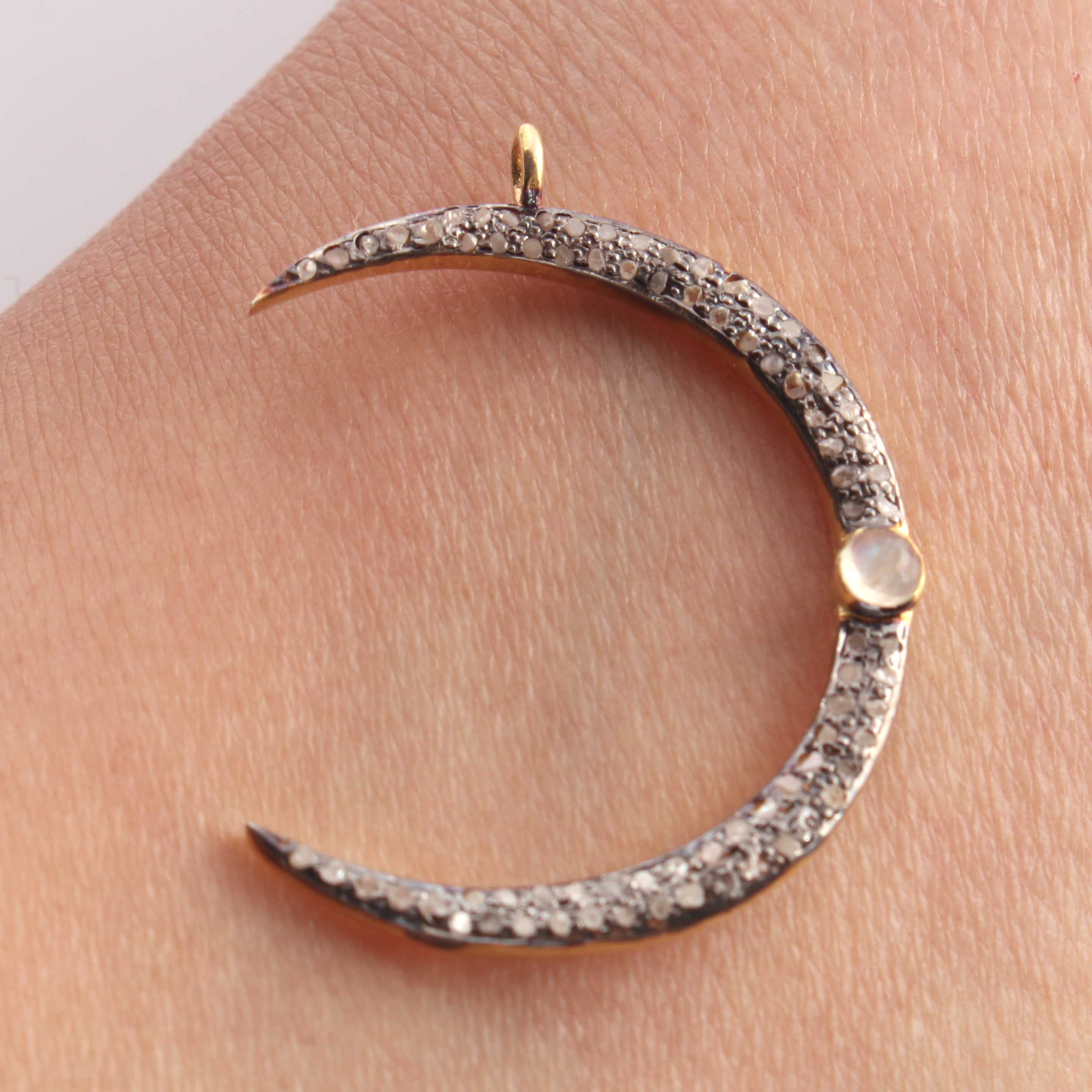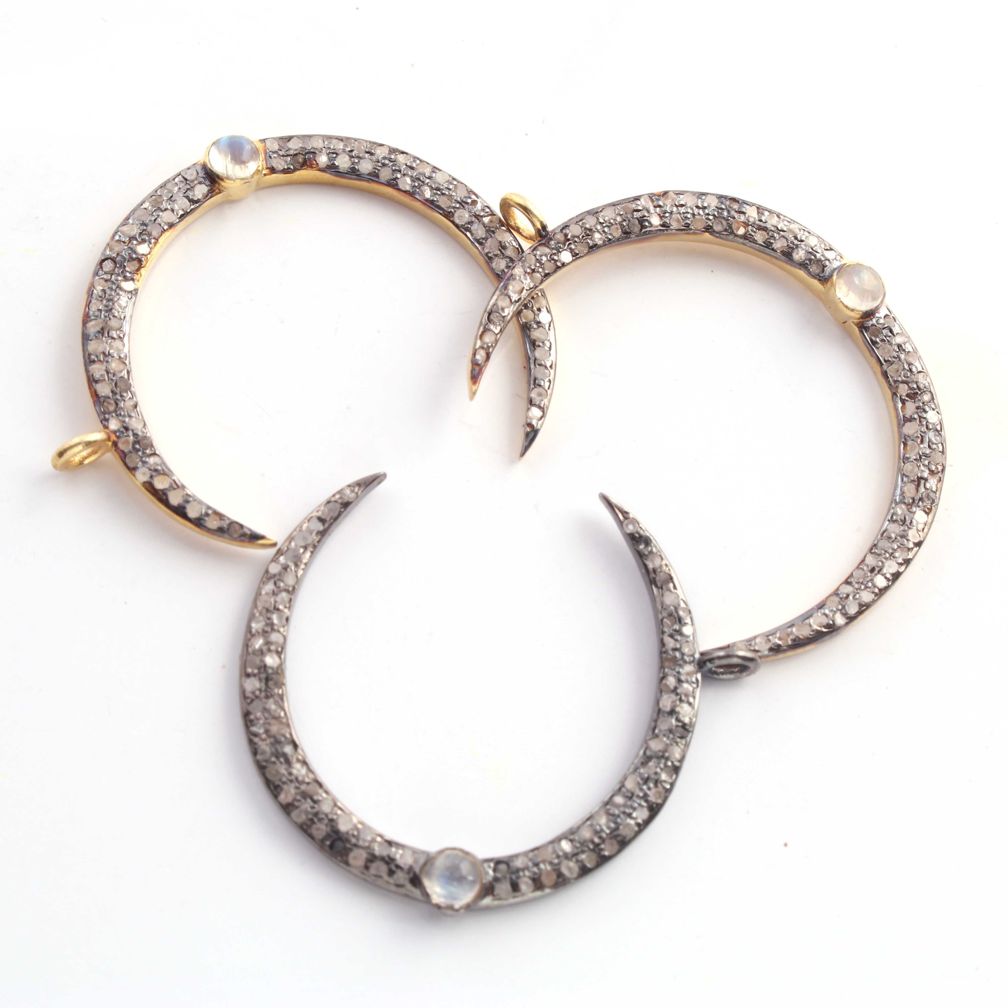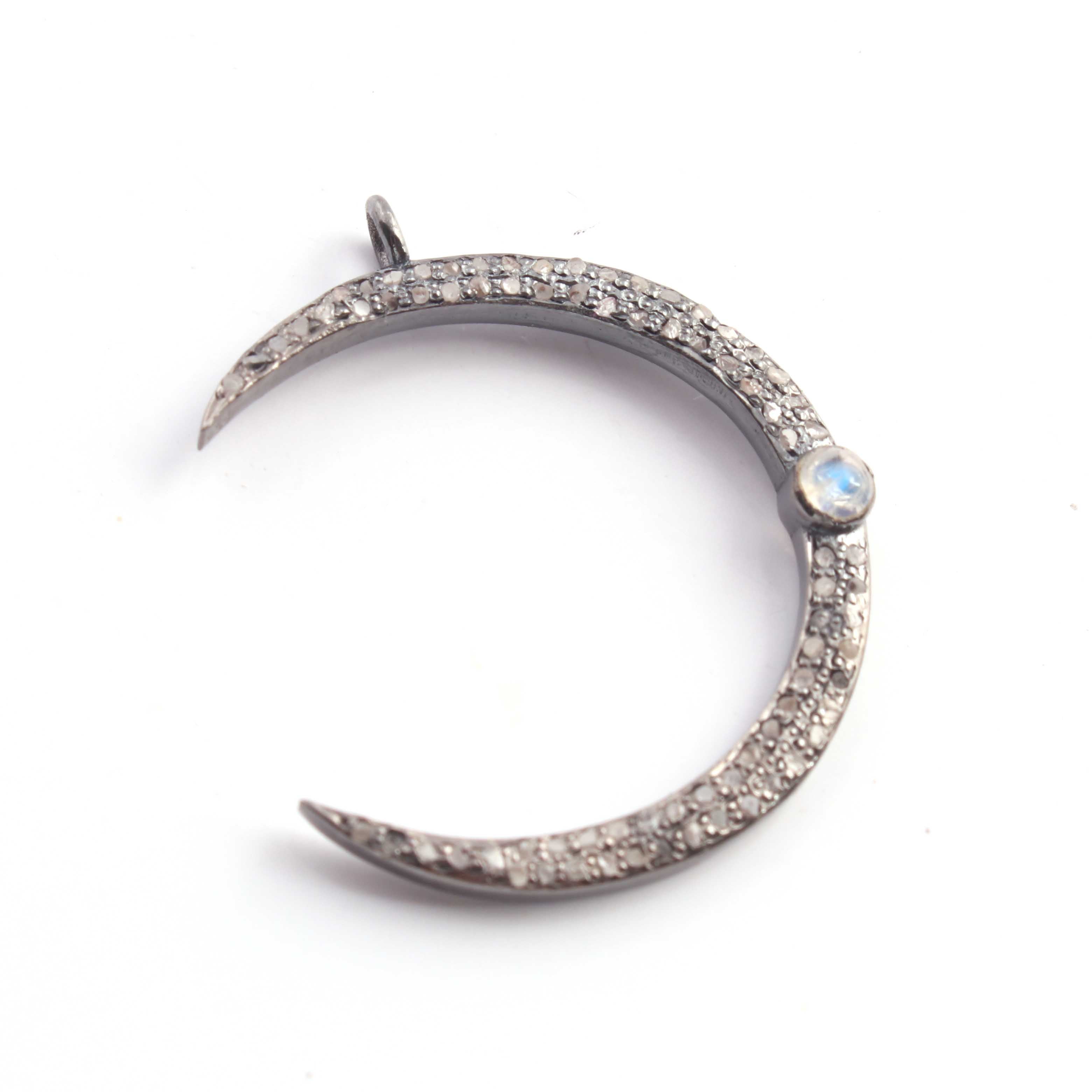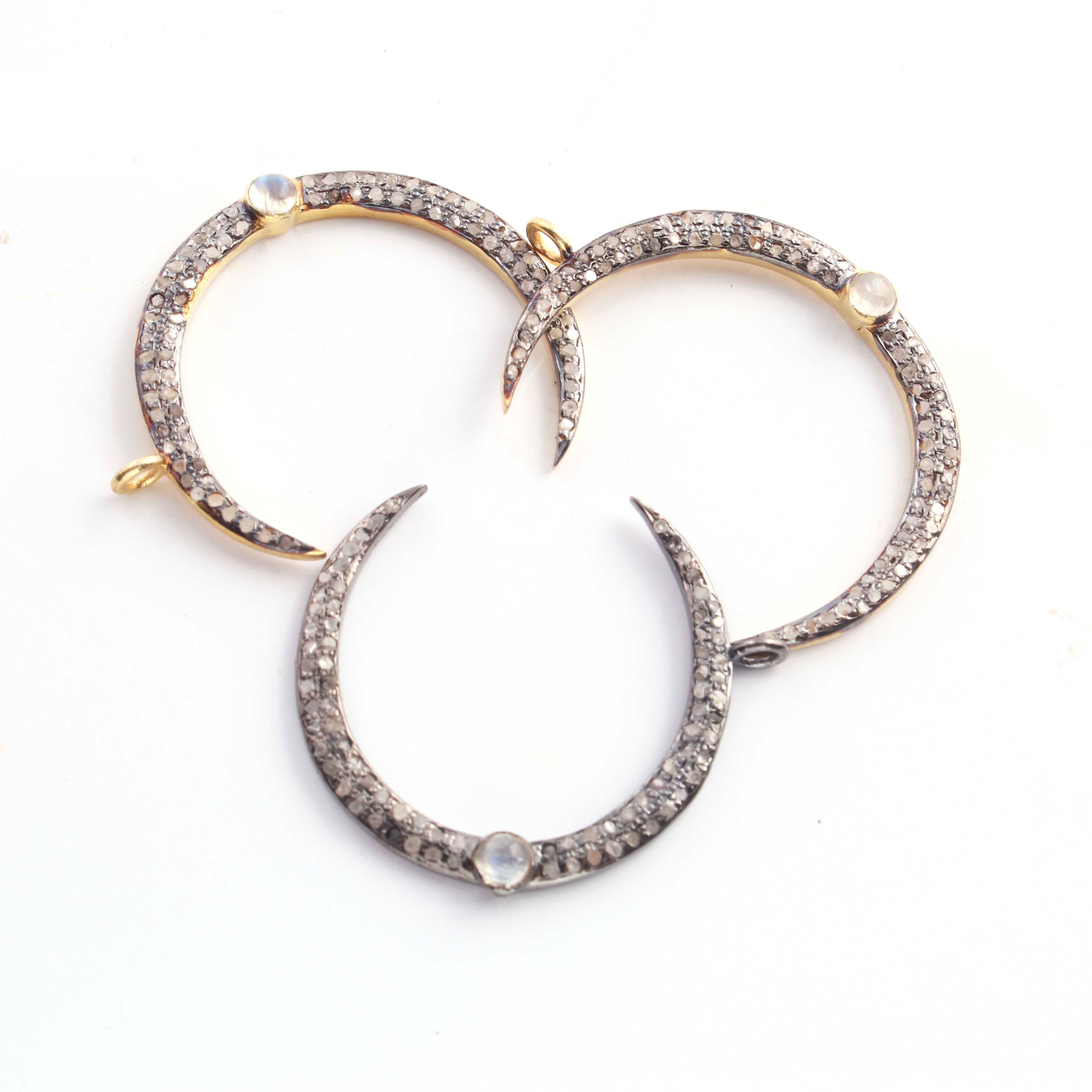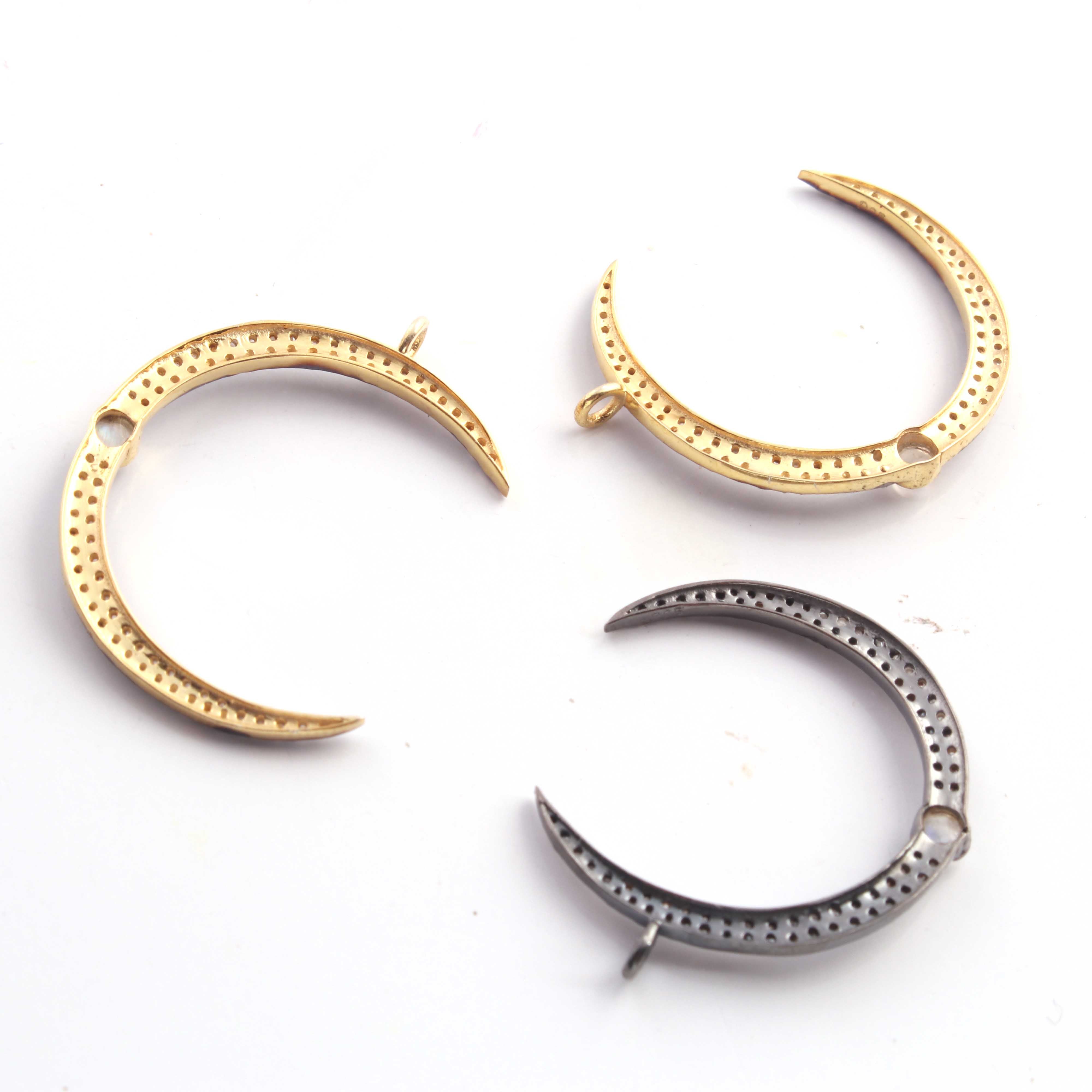 1 Pc Pave Diamond Moon With Moonstone & Ruby Gemstone Charm 925 Sterling Silver & Vermeil Single Bail Pendant 30mmX4mm PDC314
