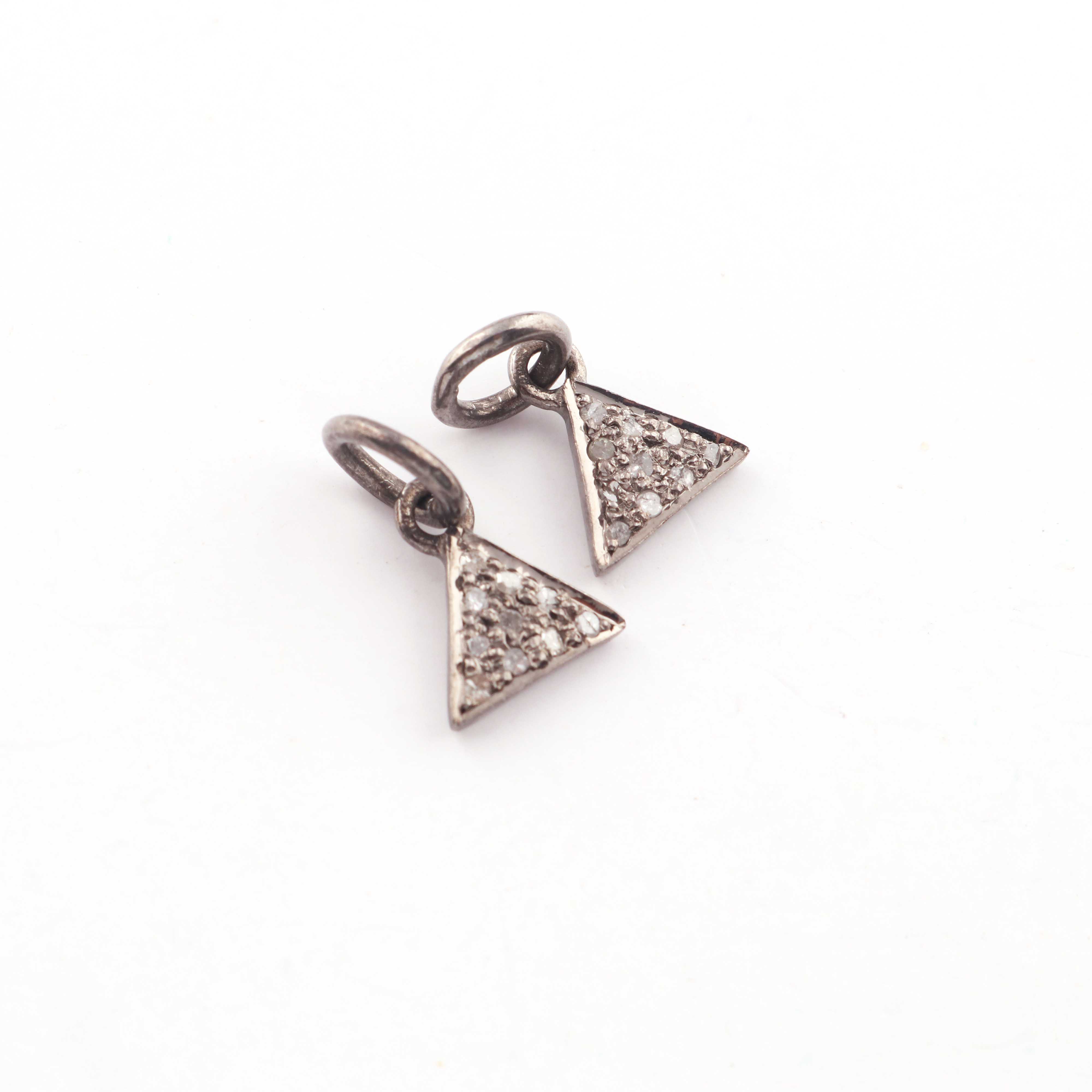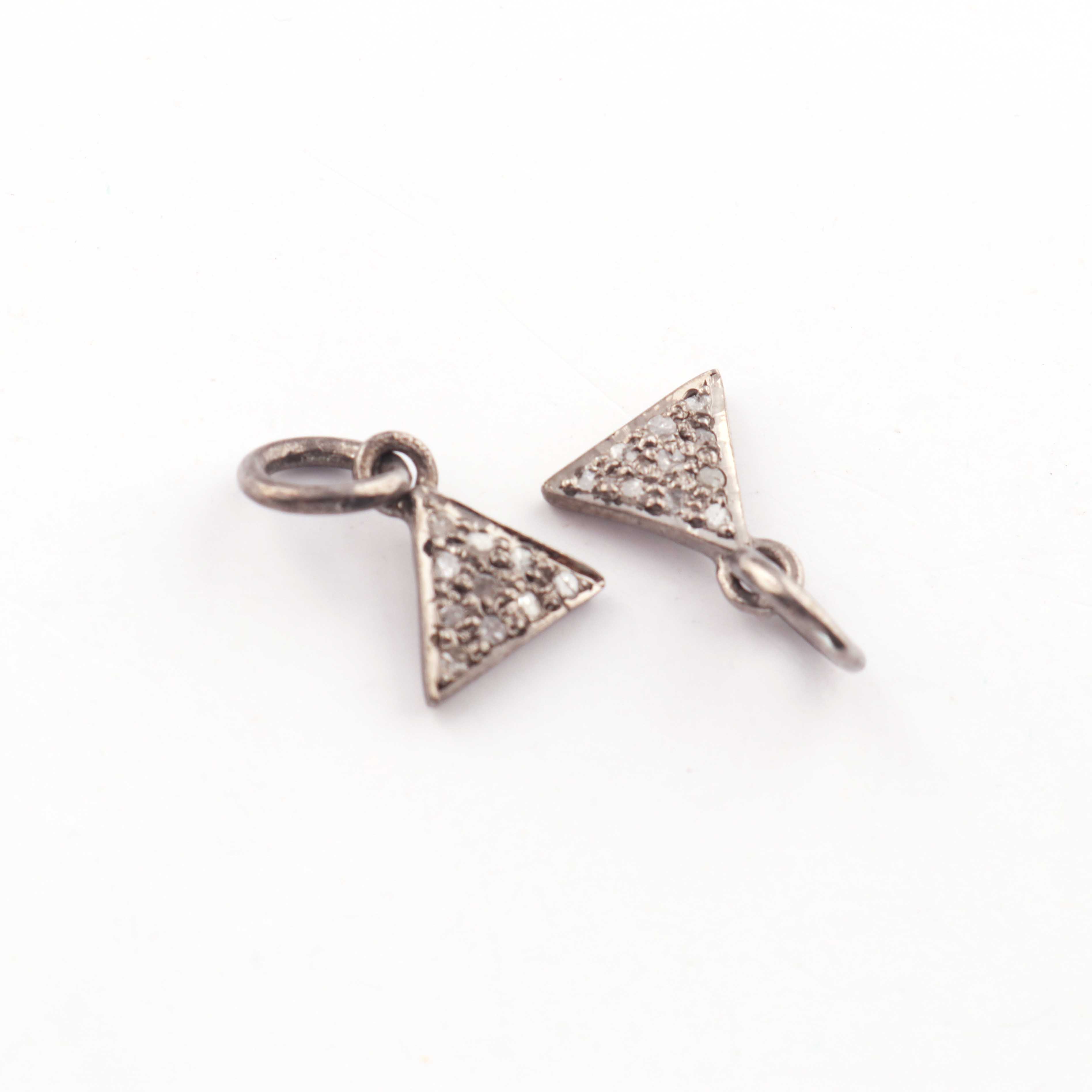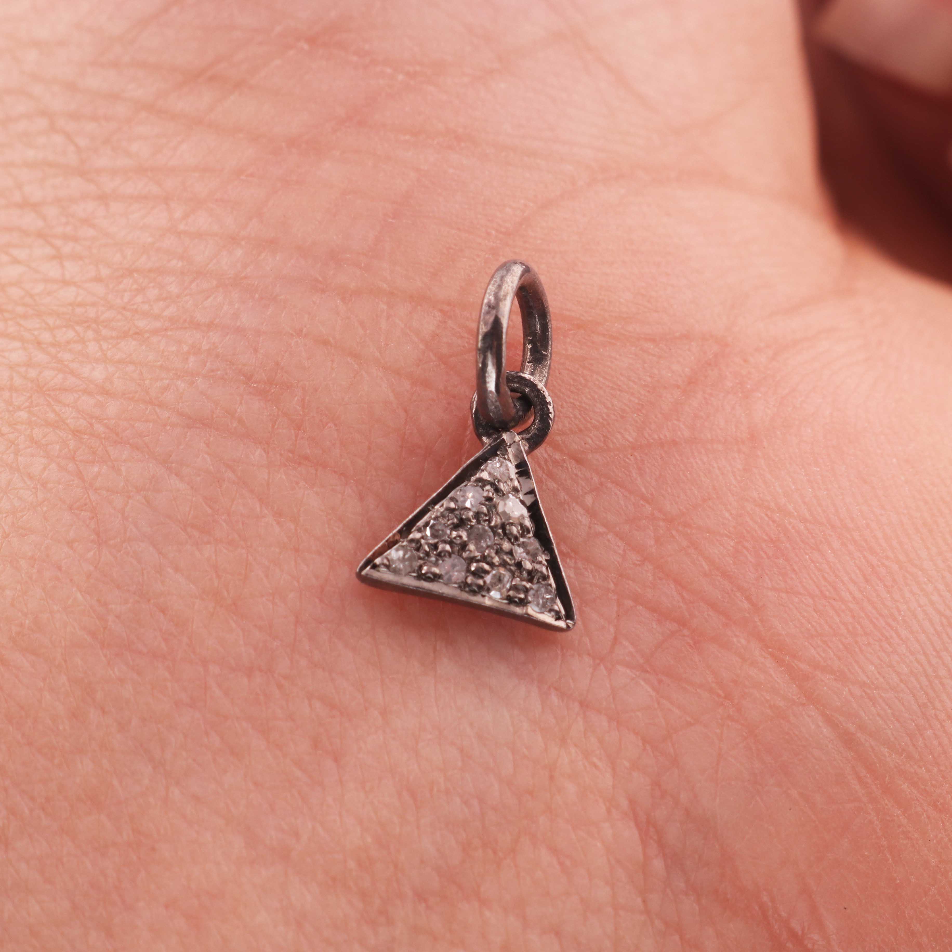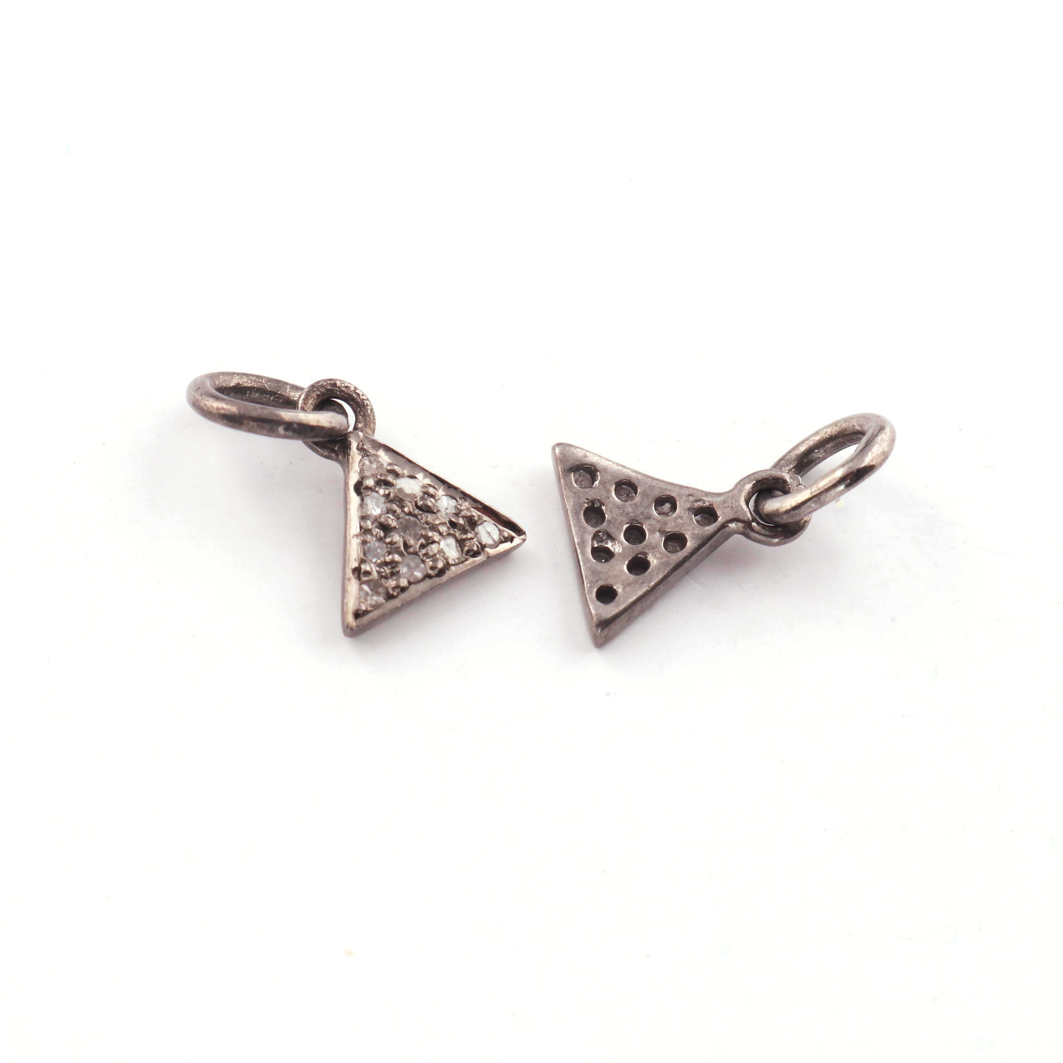 1 Pc Pave Diamond Triangle Charm 925 Sterling Silver Pendant - 10mmx8mm PDC281