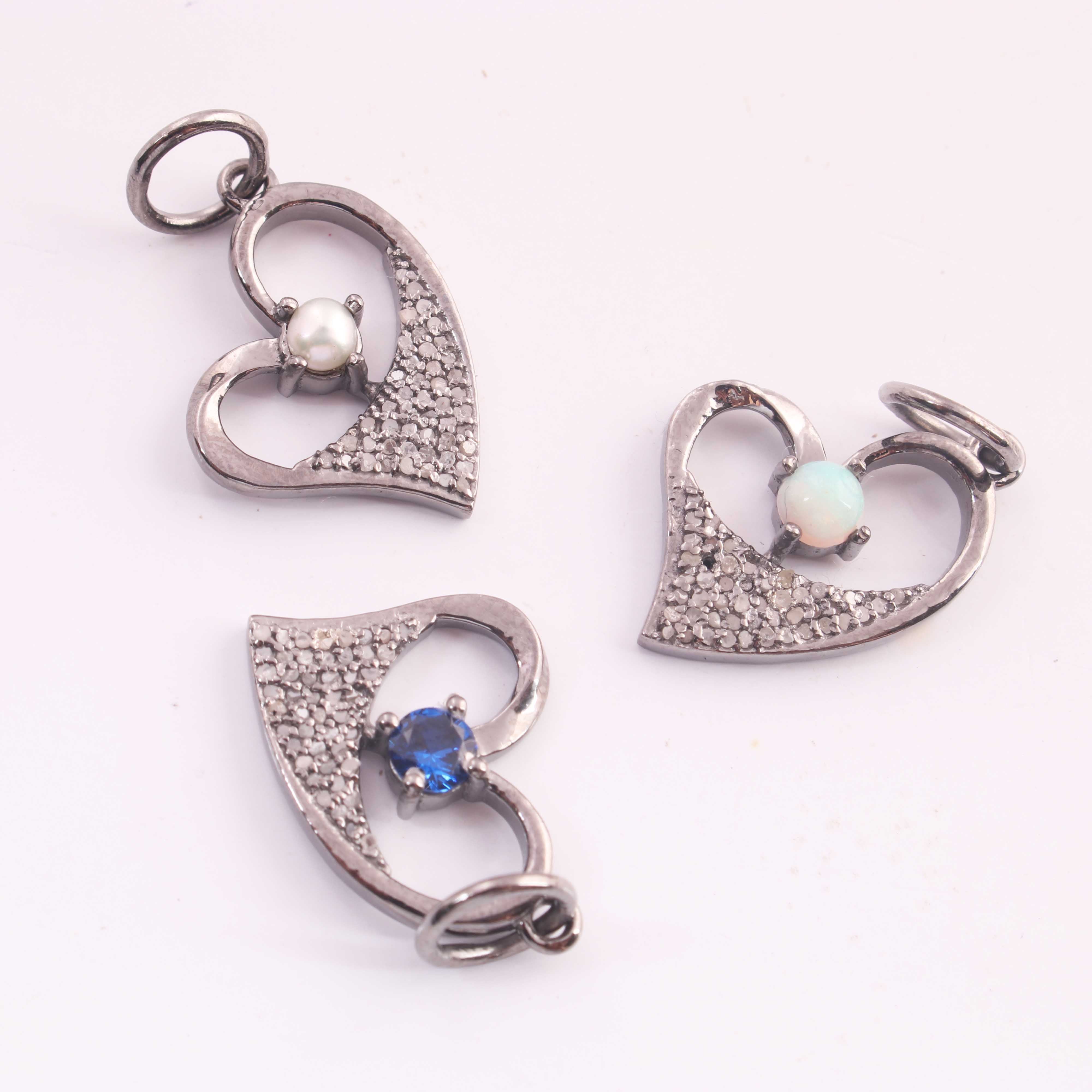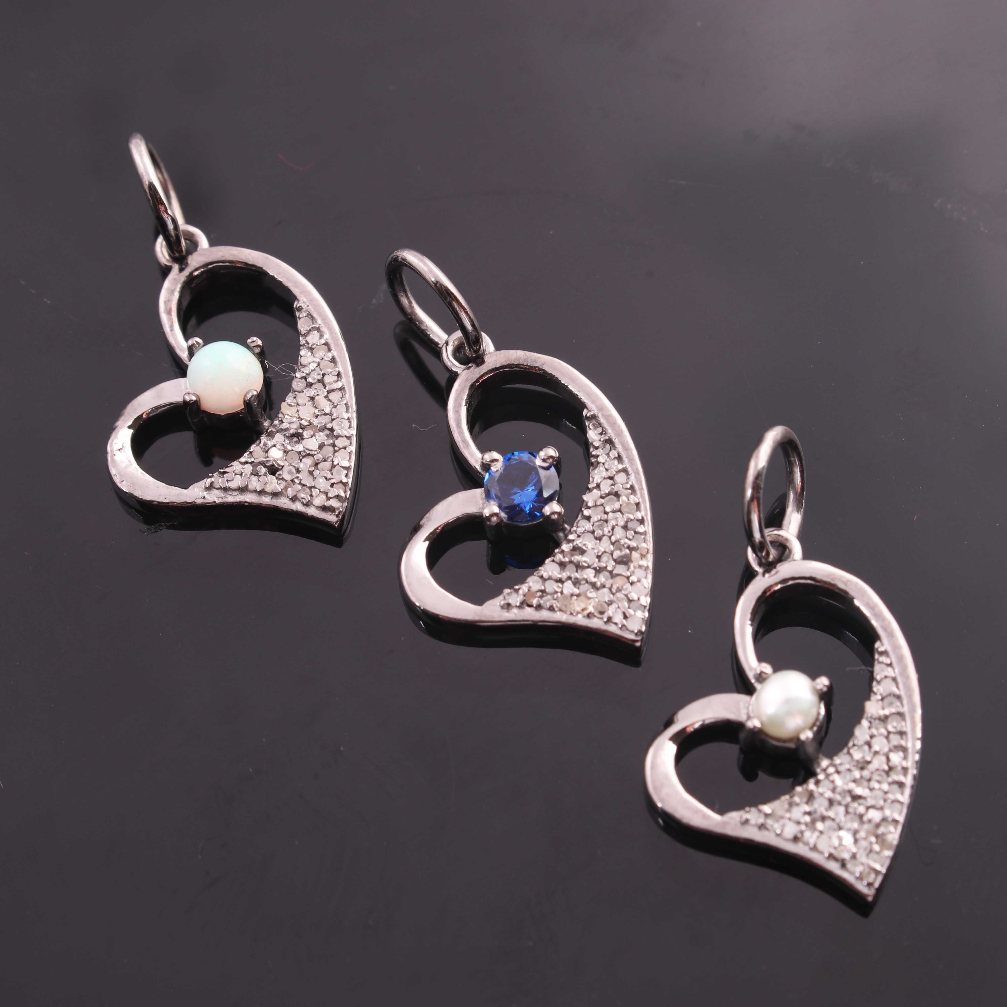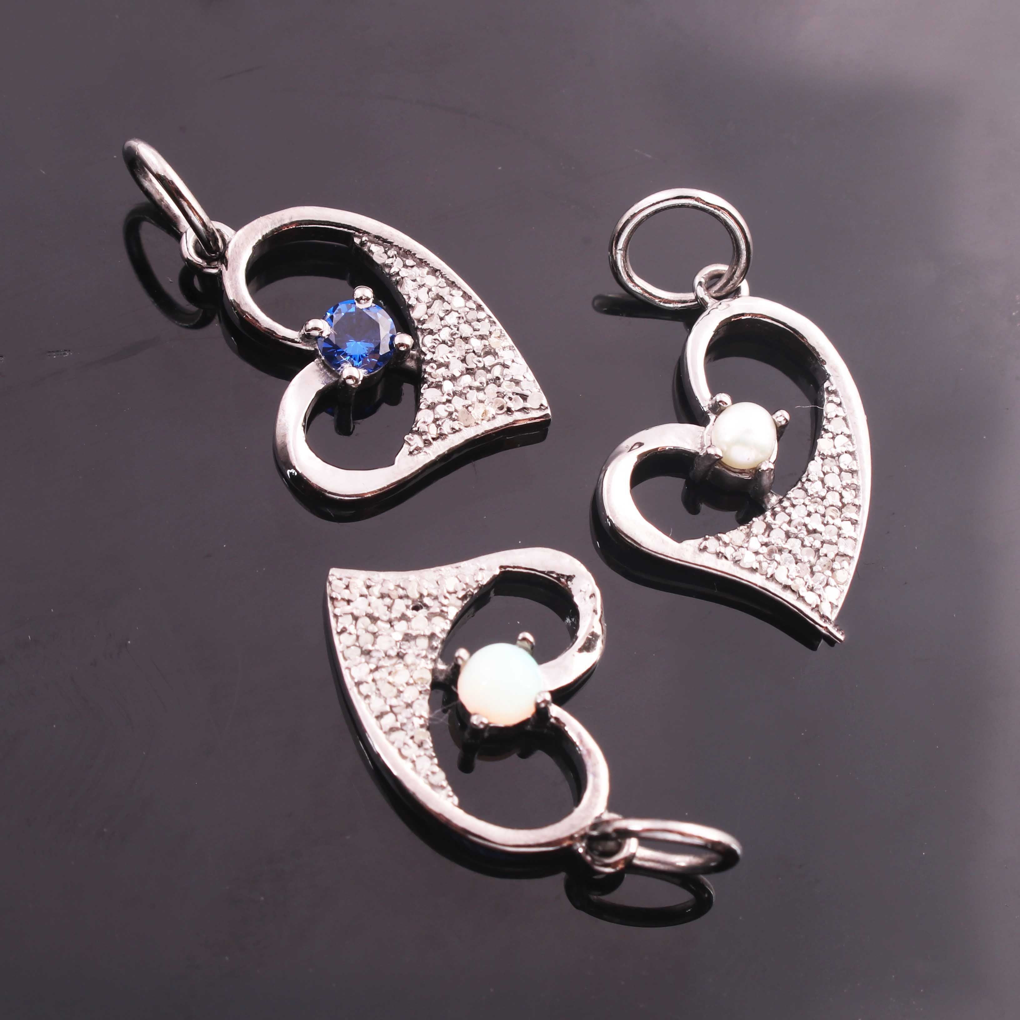 Listing is For One (1) Pc Pave Diamond Ethiopian opal, Pearl, Emerald & Blue Sapphire with Heart Shape Pendant 925 Sterling Silver - Pdc1199
