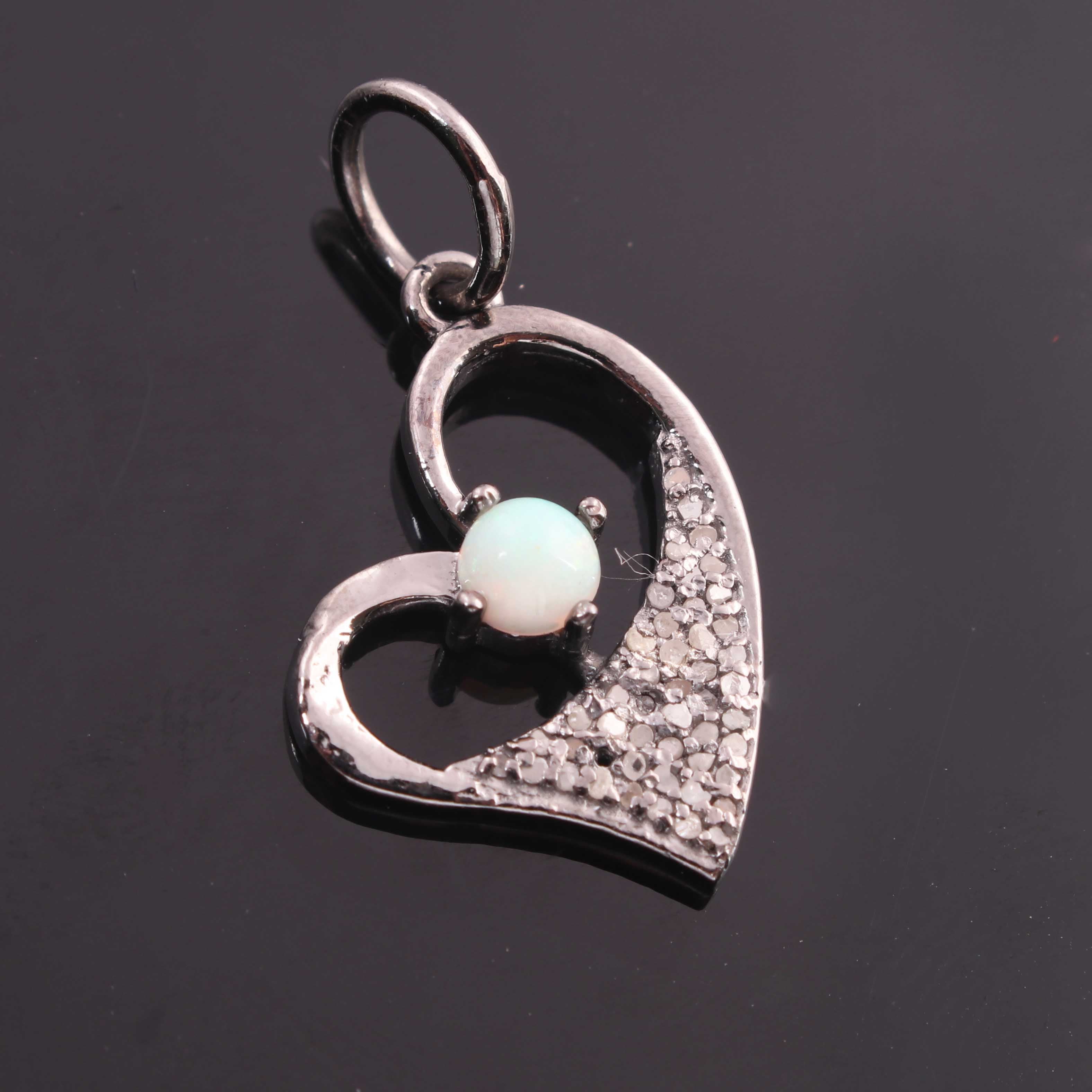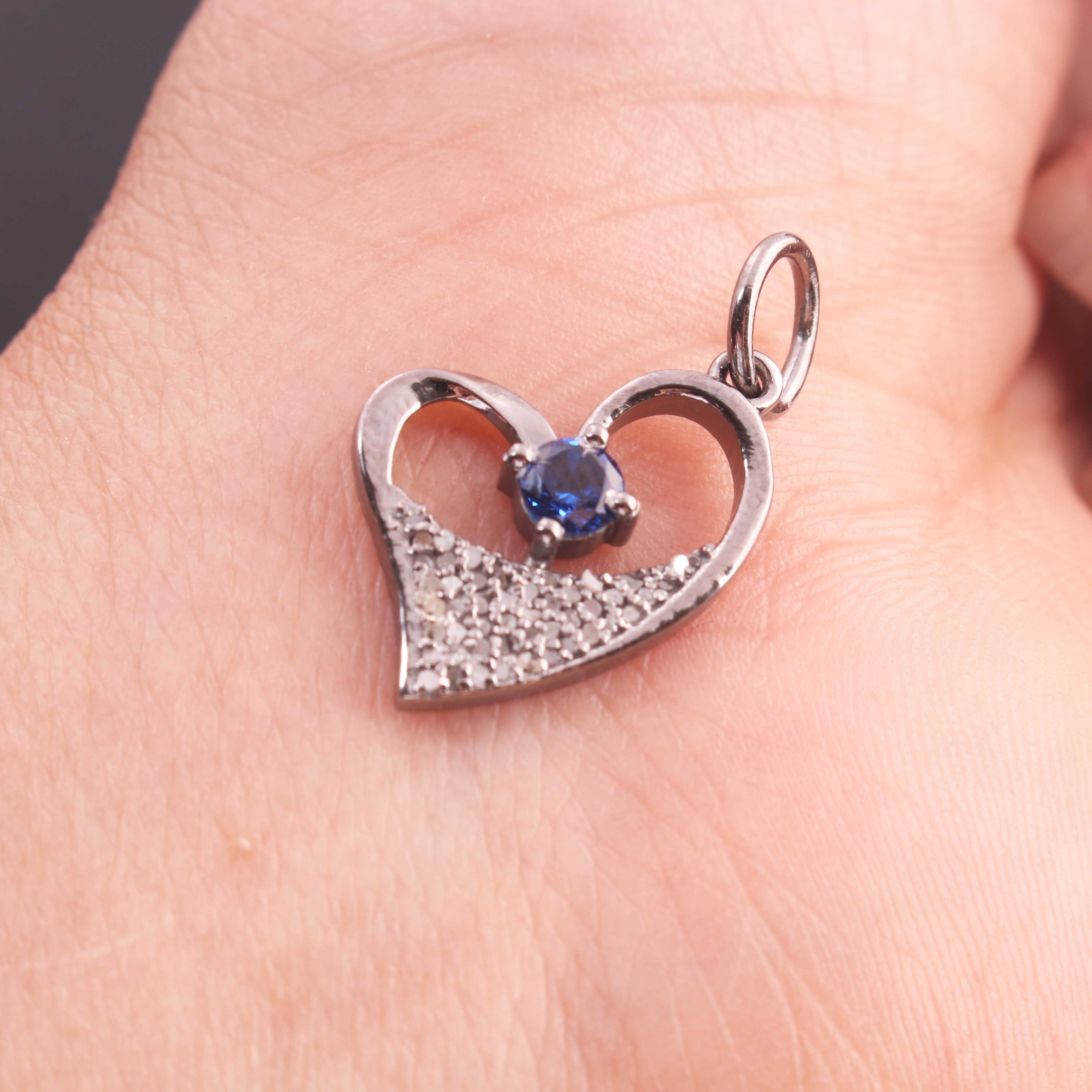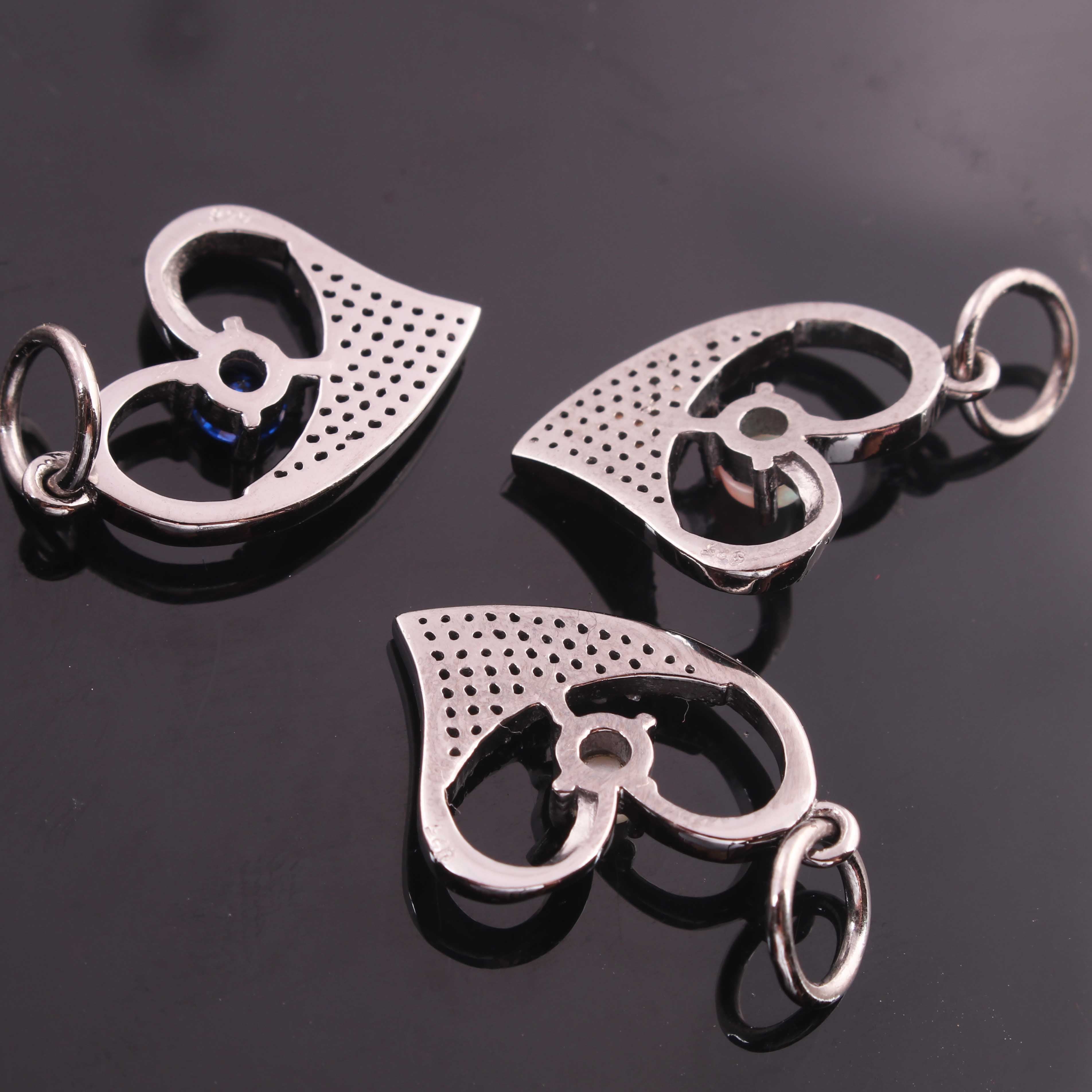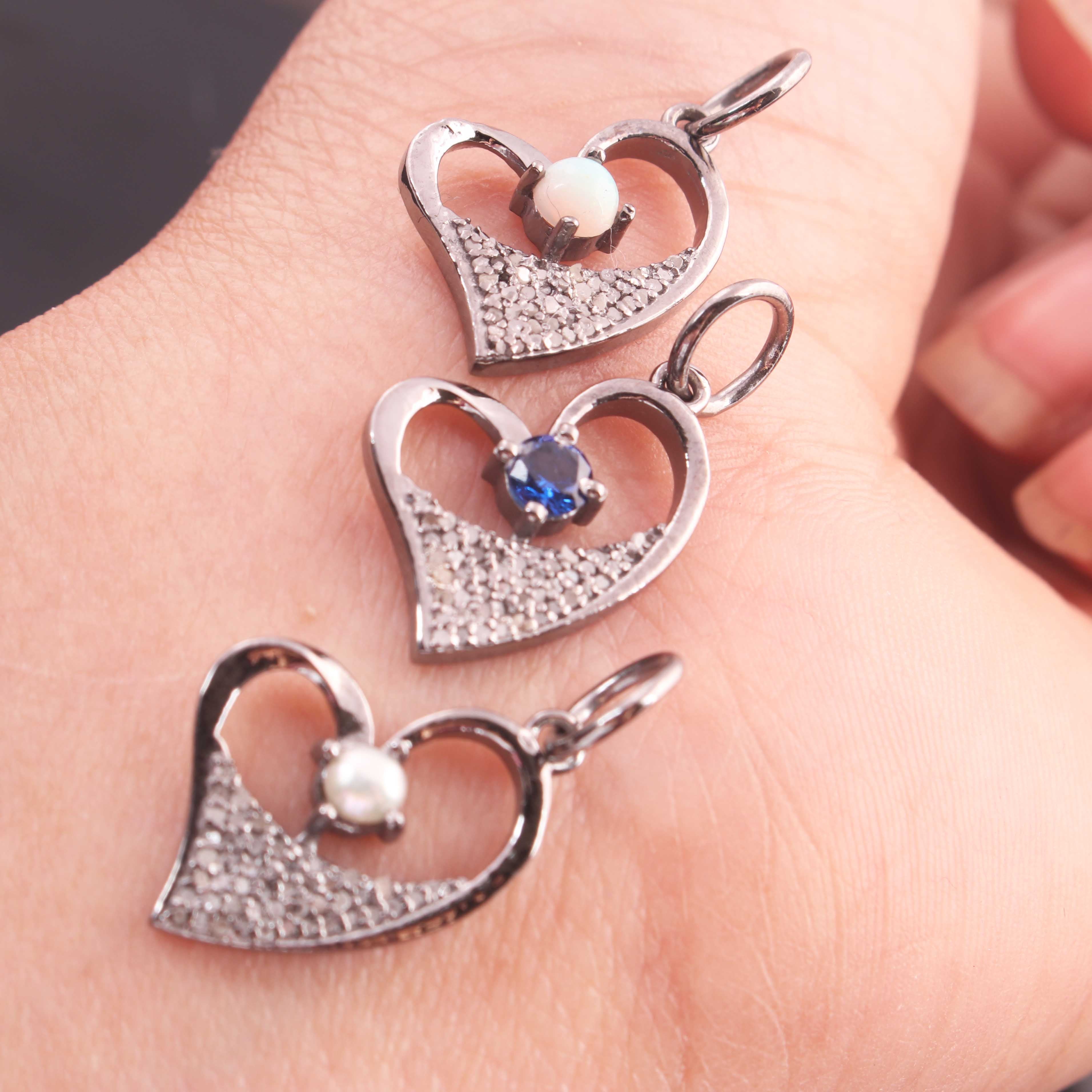 Listing is For One (1) Pc Pave Diamond Ethiopian opal, Pearl, Emerald & Blue Sapphire with Heart Shape Pendant 925 Sterling Silver - Pdc1199