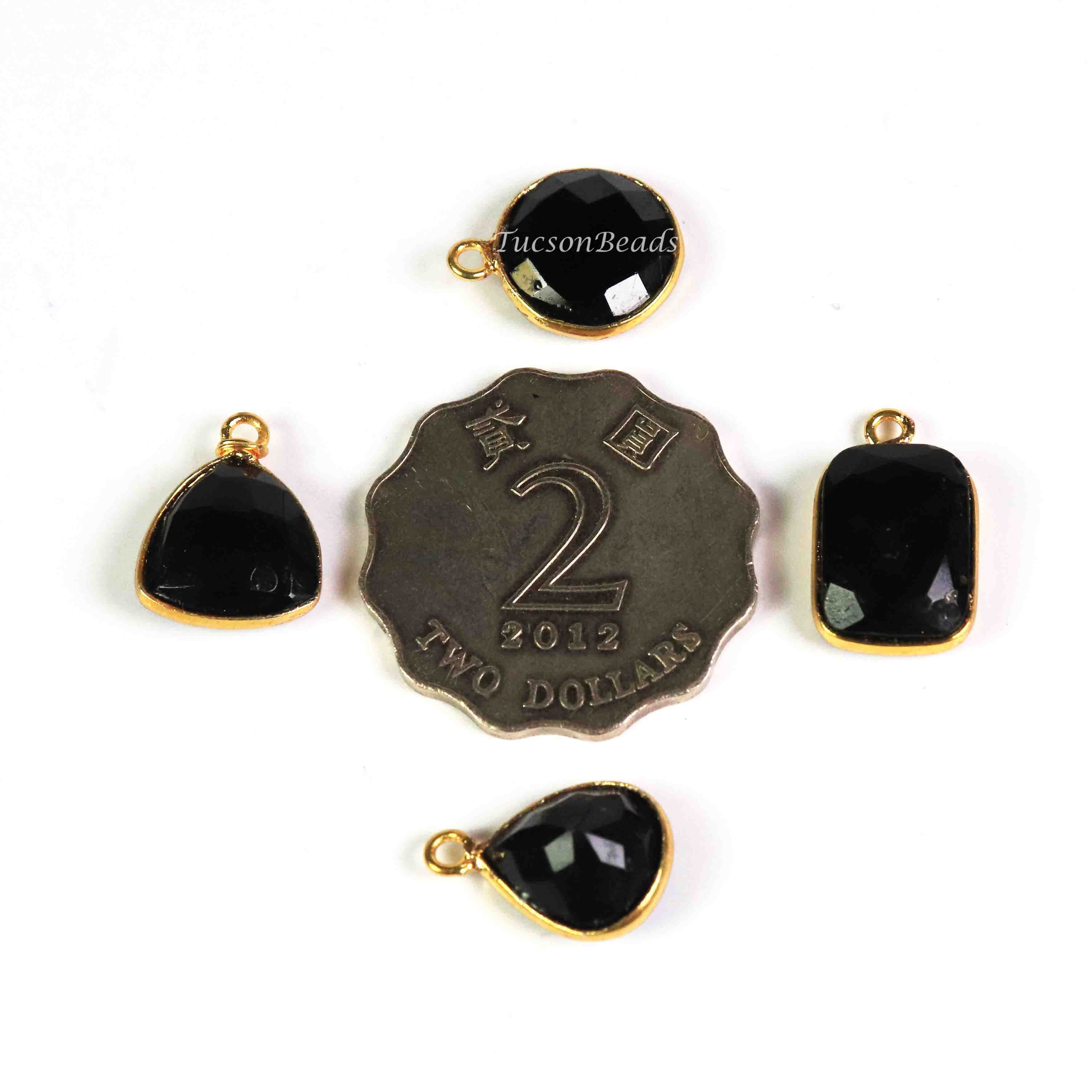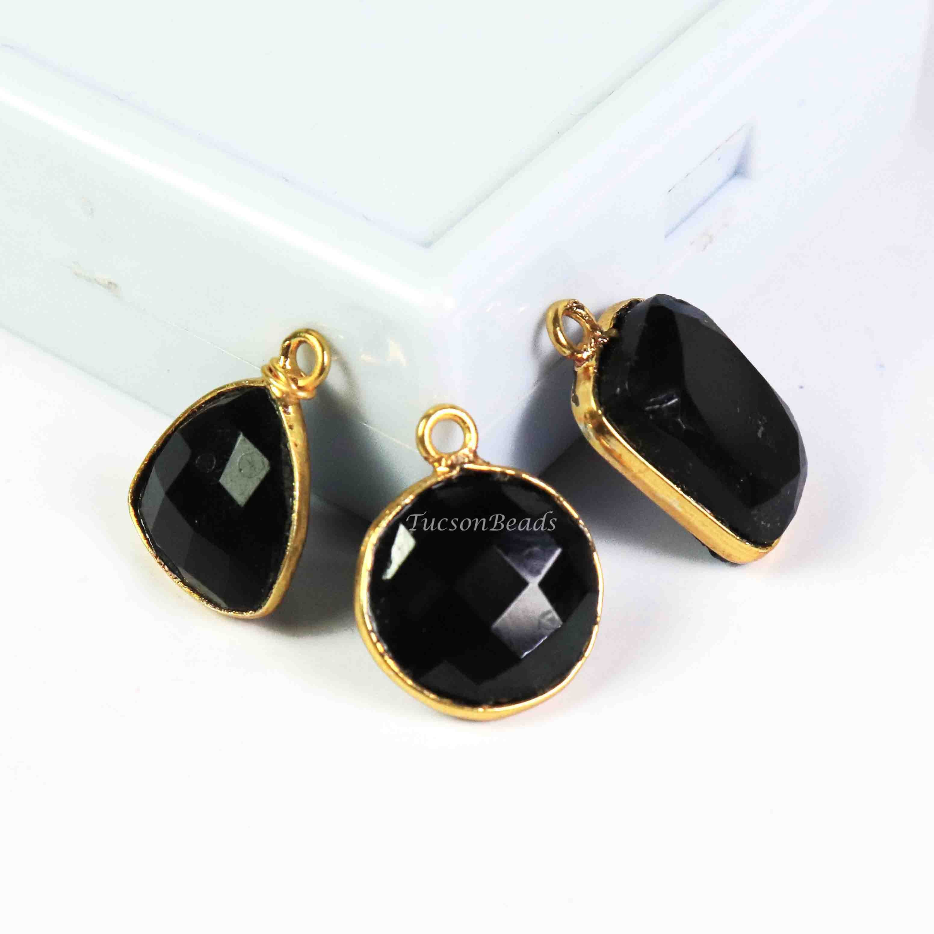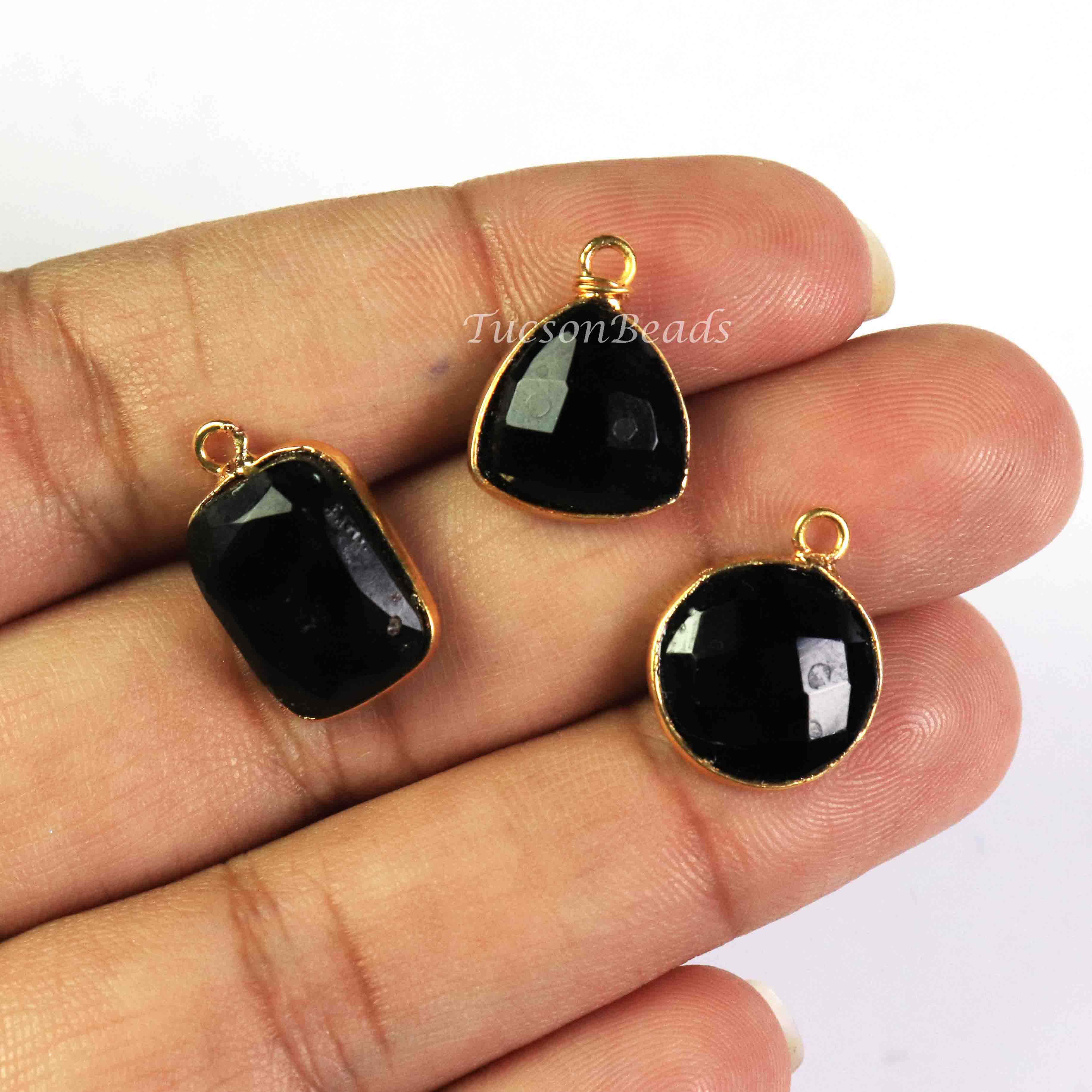 10 Pcs Black Onyx Faceted Assorted Shape 24k Gold Plated Pendant & Connector - 19mmx11mm-14mmx11mm-PC594