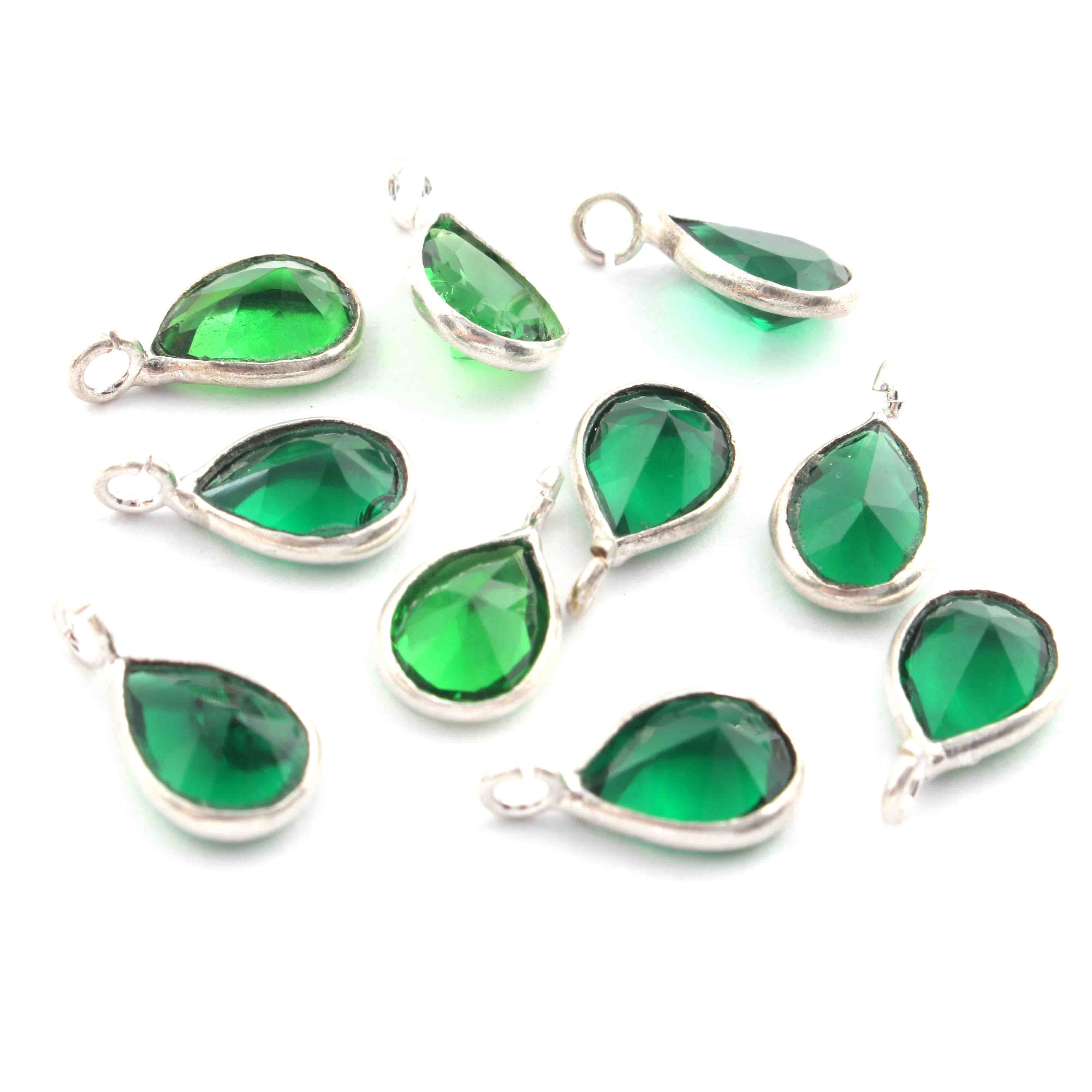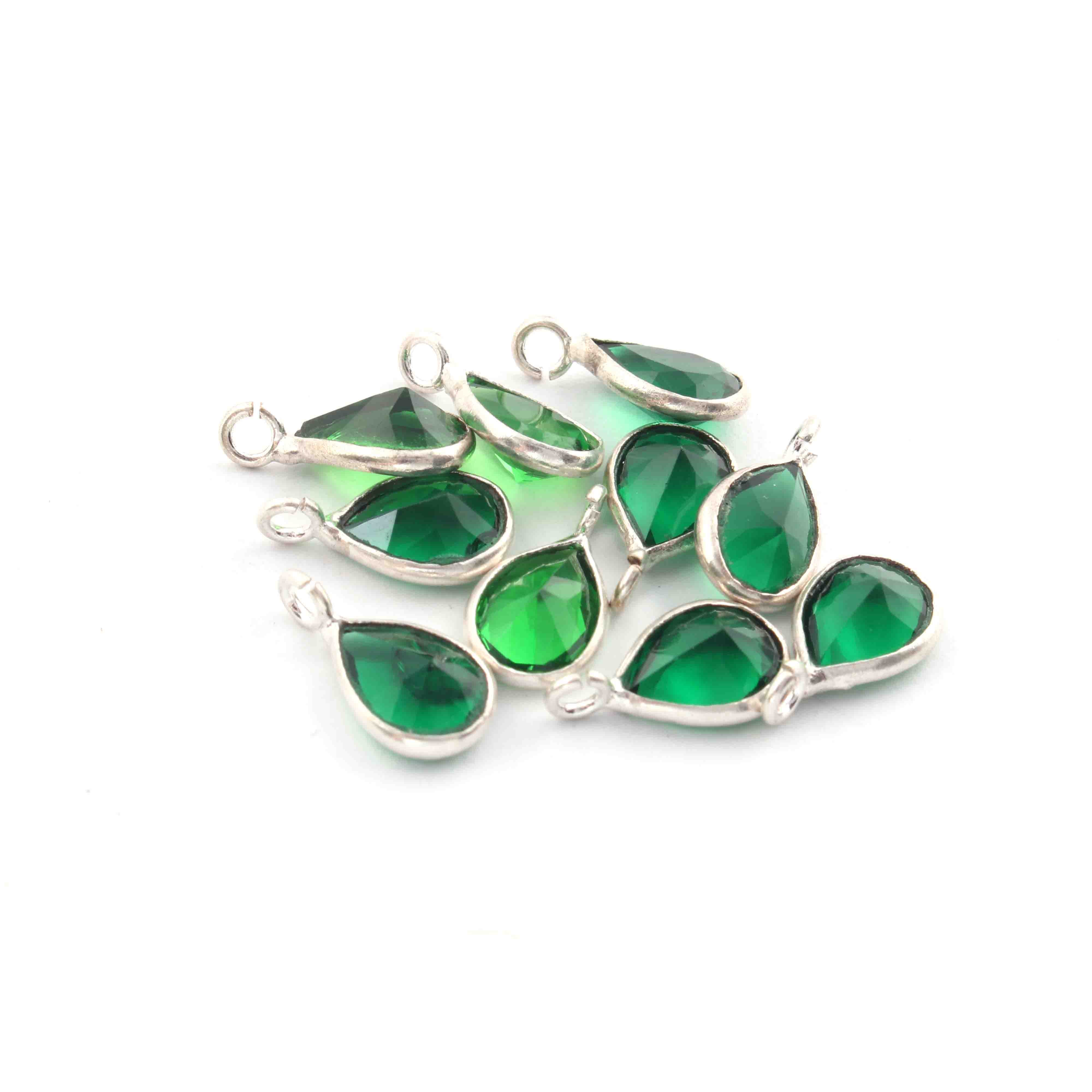 10 Pcs Green Glass Hydro   925 Silver Plated Faceted - Pear Shape Faceted Pendant -11mmx6mm PC928