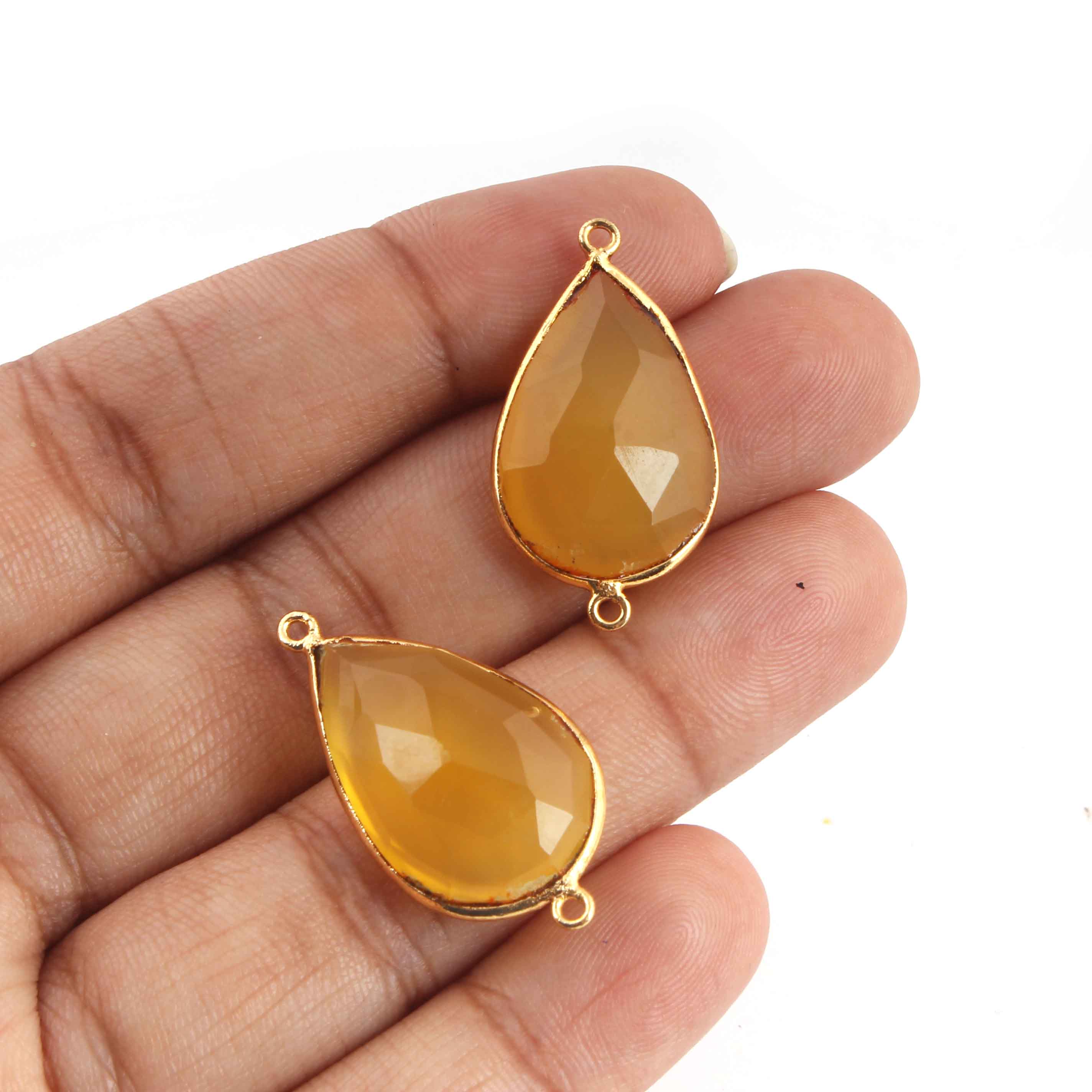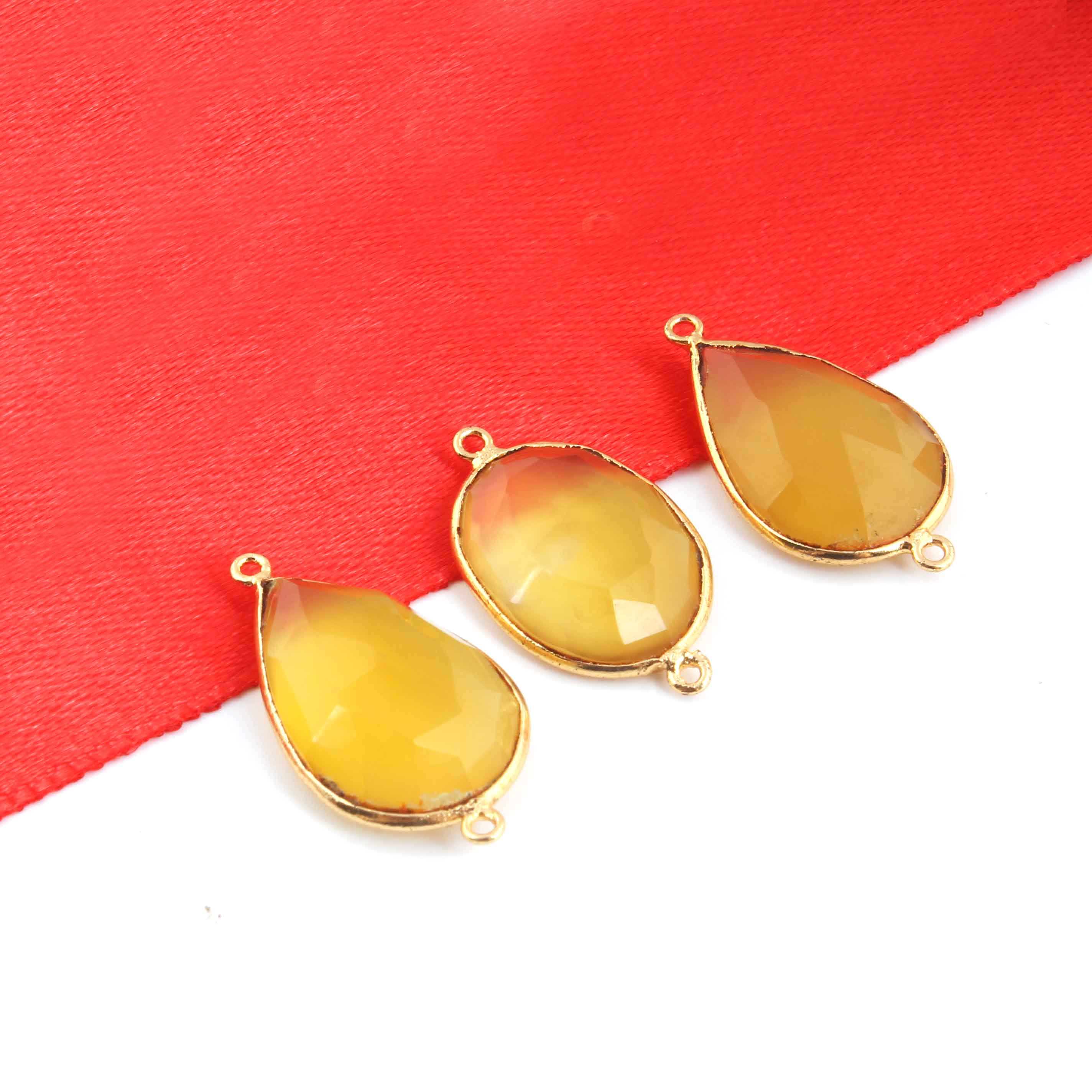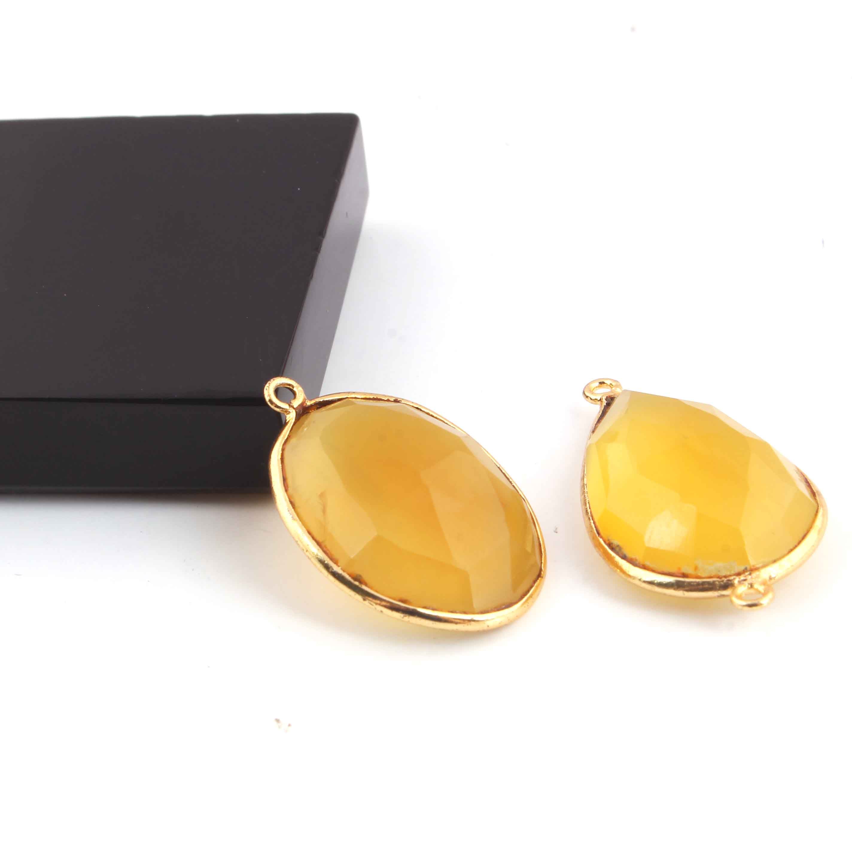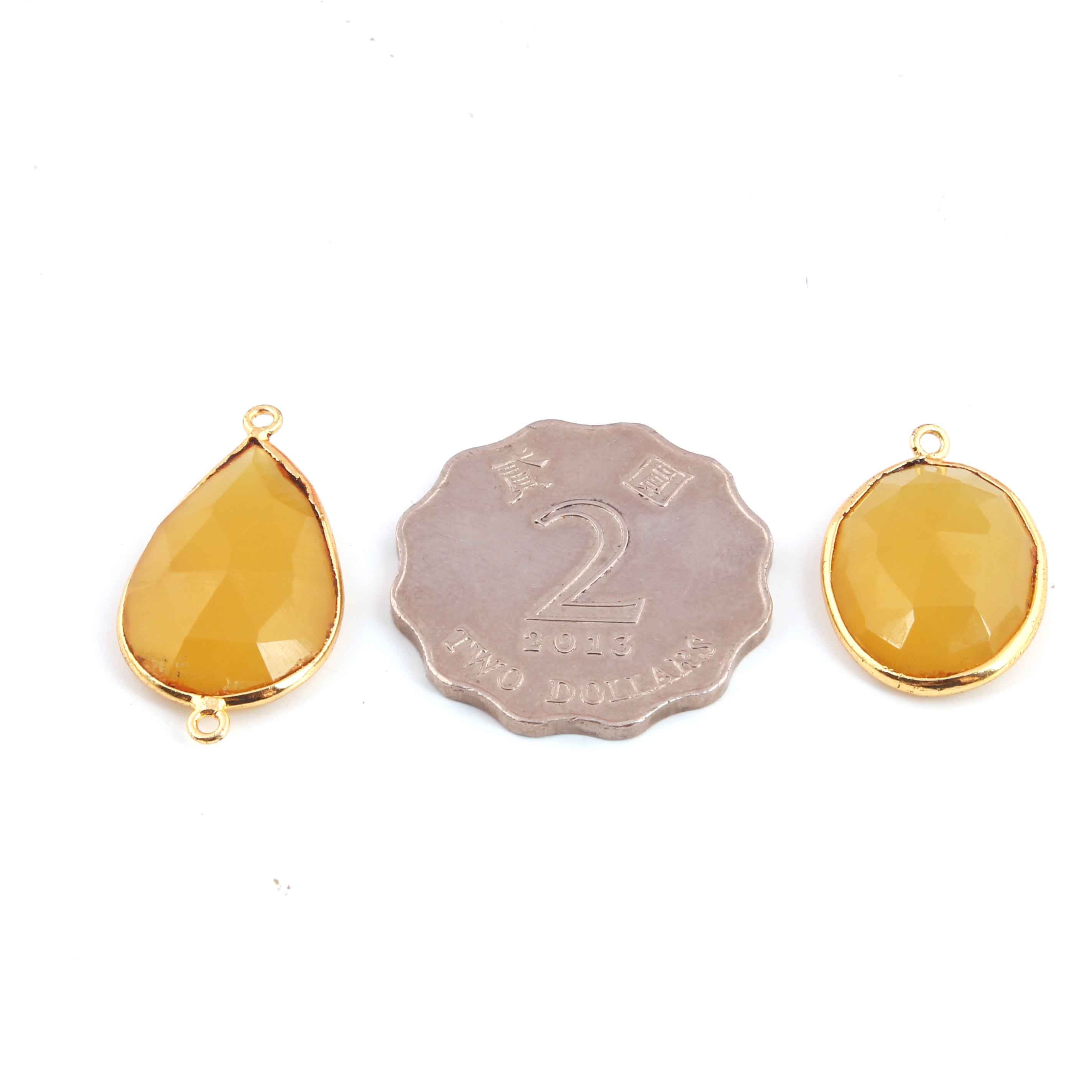 11 Pcs Lemon Quartz Faceted 24k Gold Plated Assorted Shape Pendant/Connector - 30mmx16mm -PC735