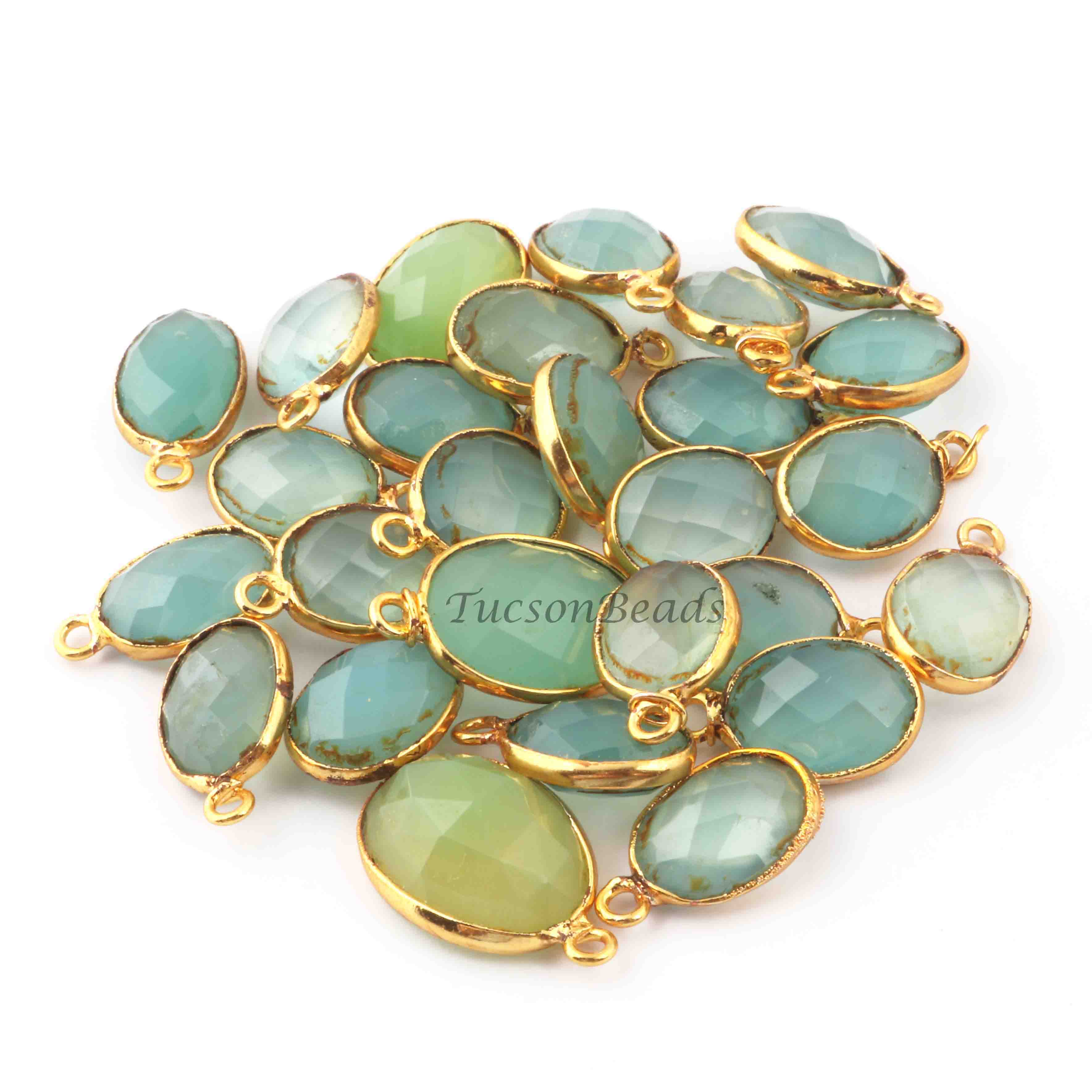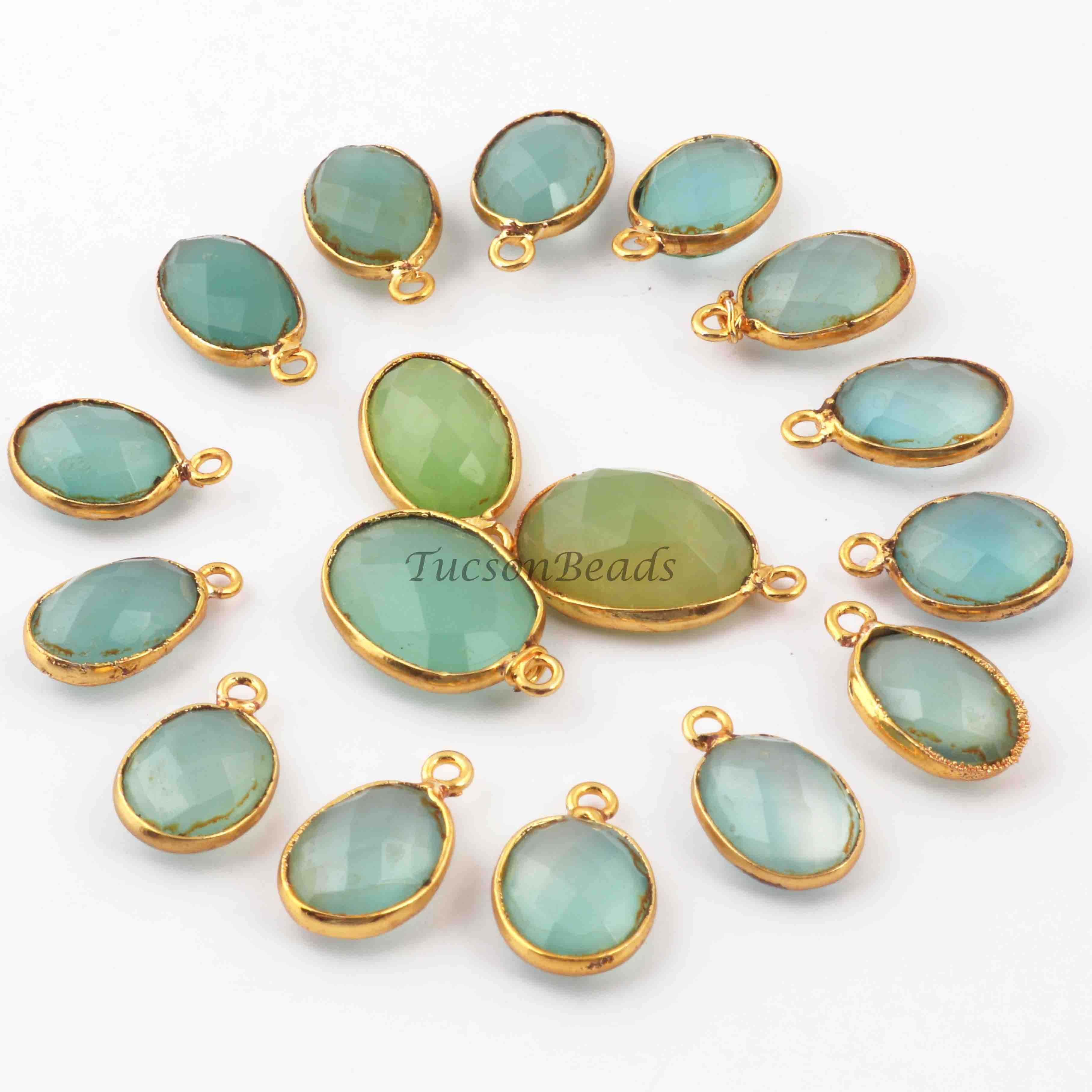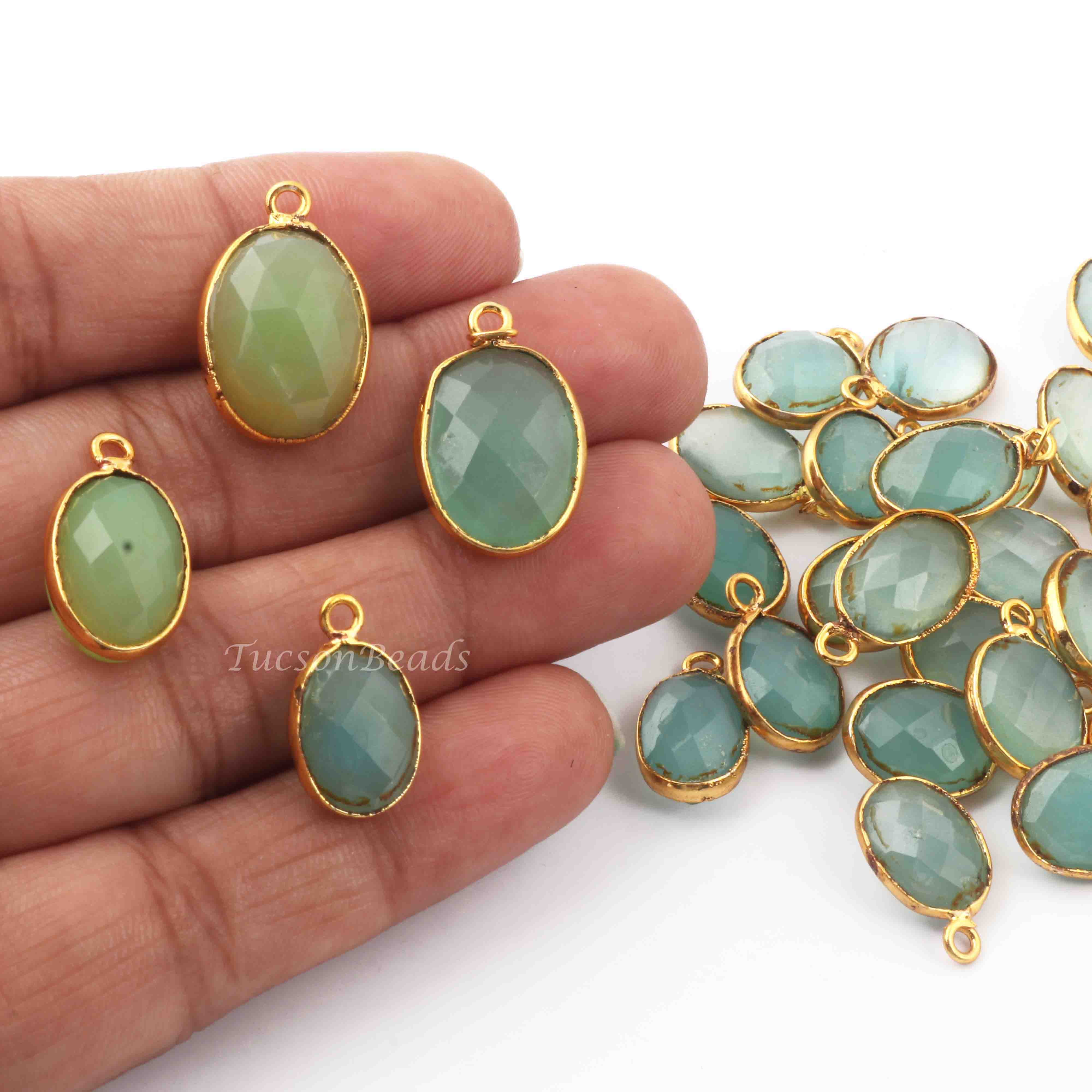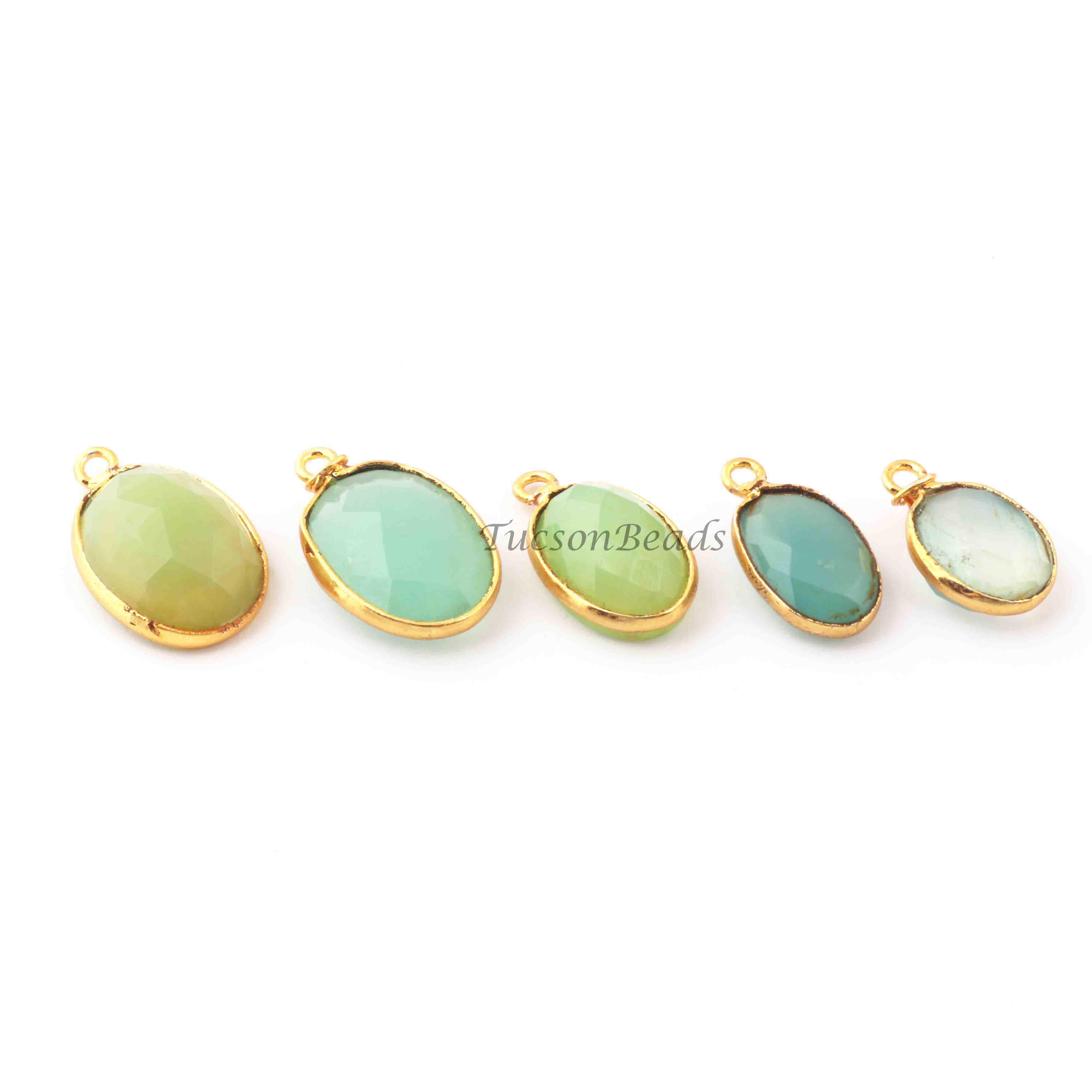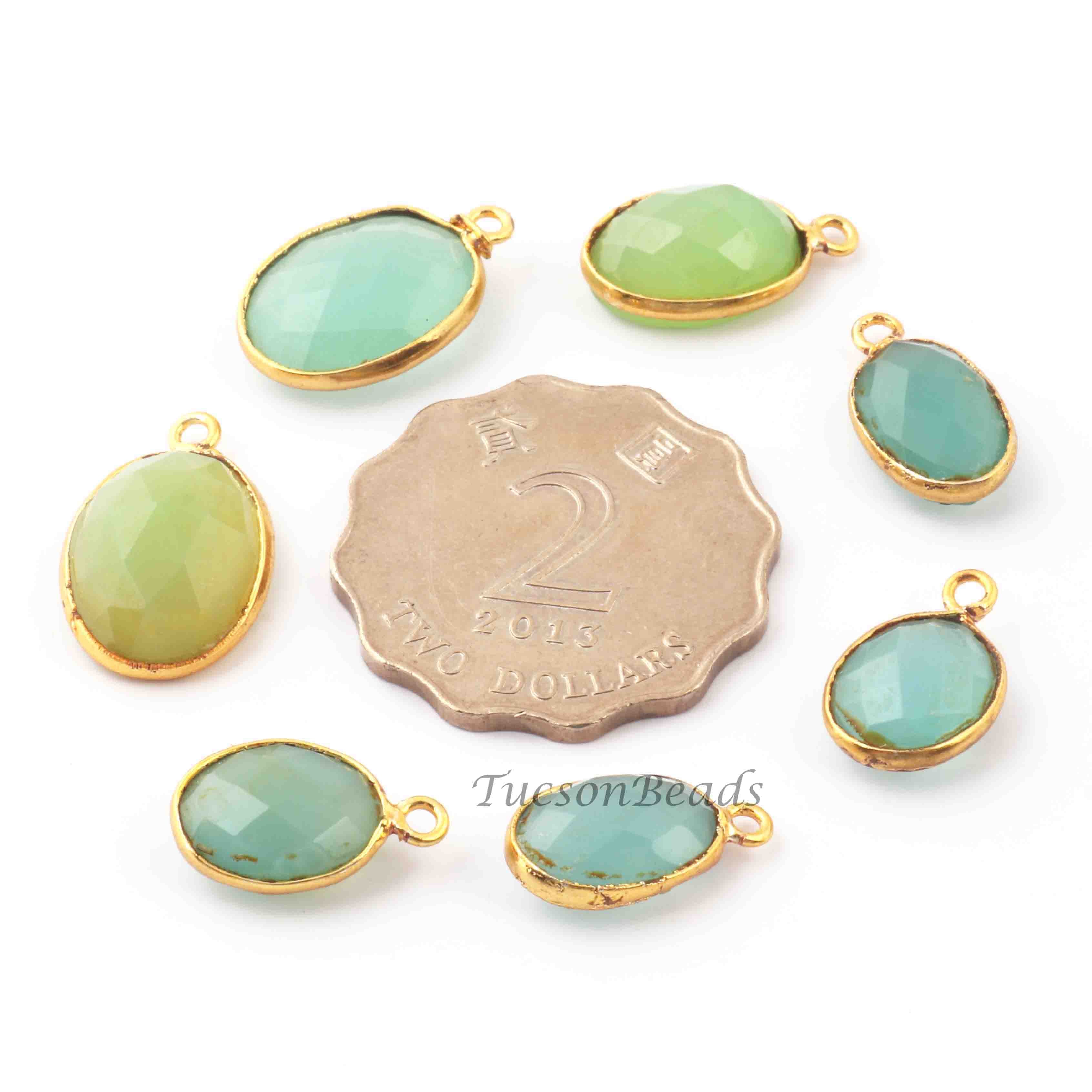 15 Pcs Mix Stone Faceted Oval Shape 24k Gold Plated Pendant- 20mmx13mm-16mmx15mm-PC710