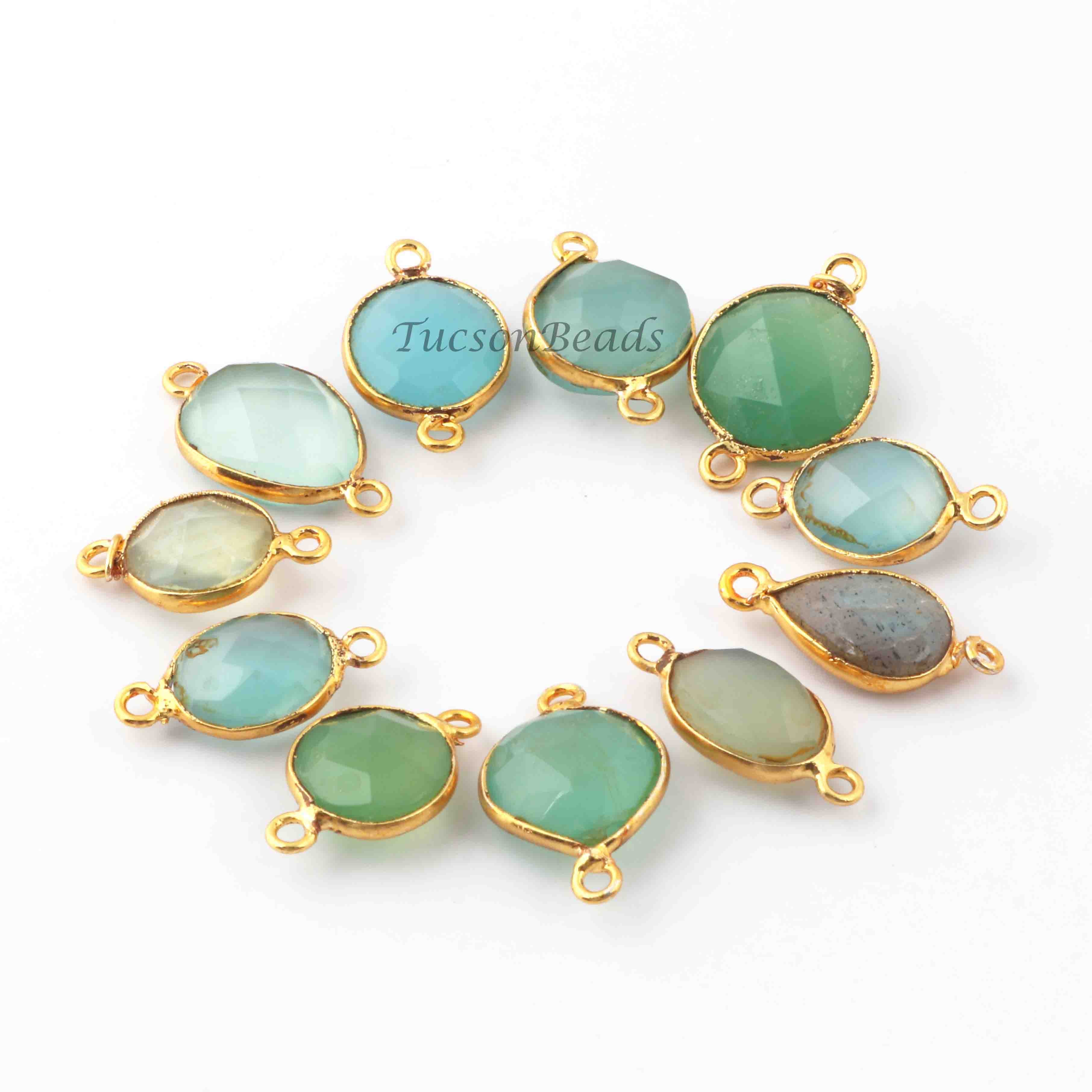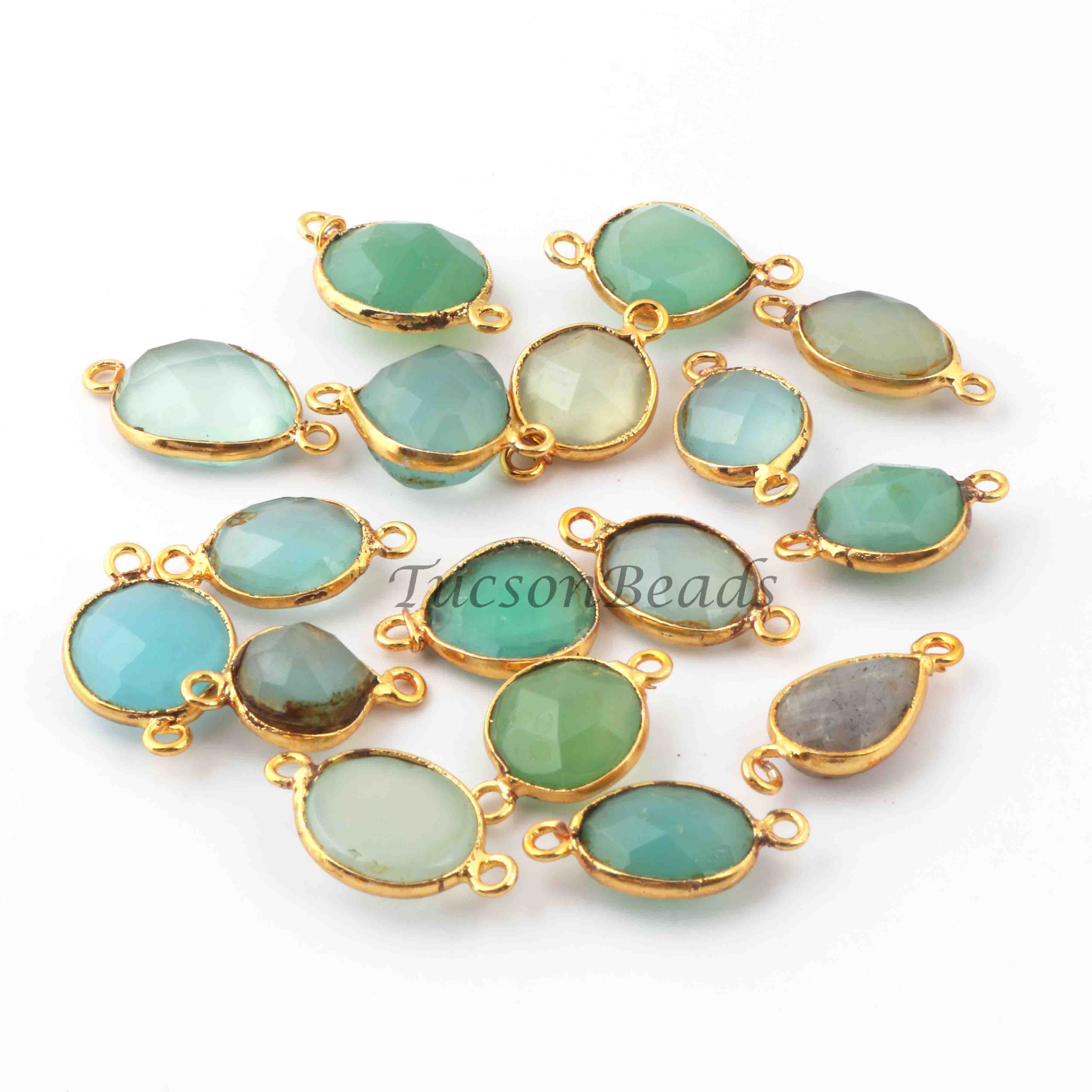 17 Pcs Mix Stone Faceted Assorted Shape 24k Gold Plated Connector &Pendant - 20mmx14mm-18mmx11mm-PC712