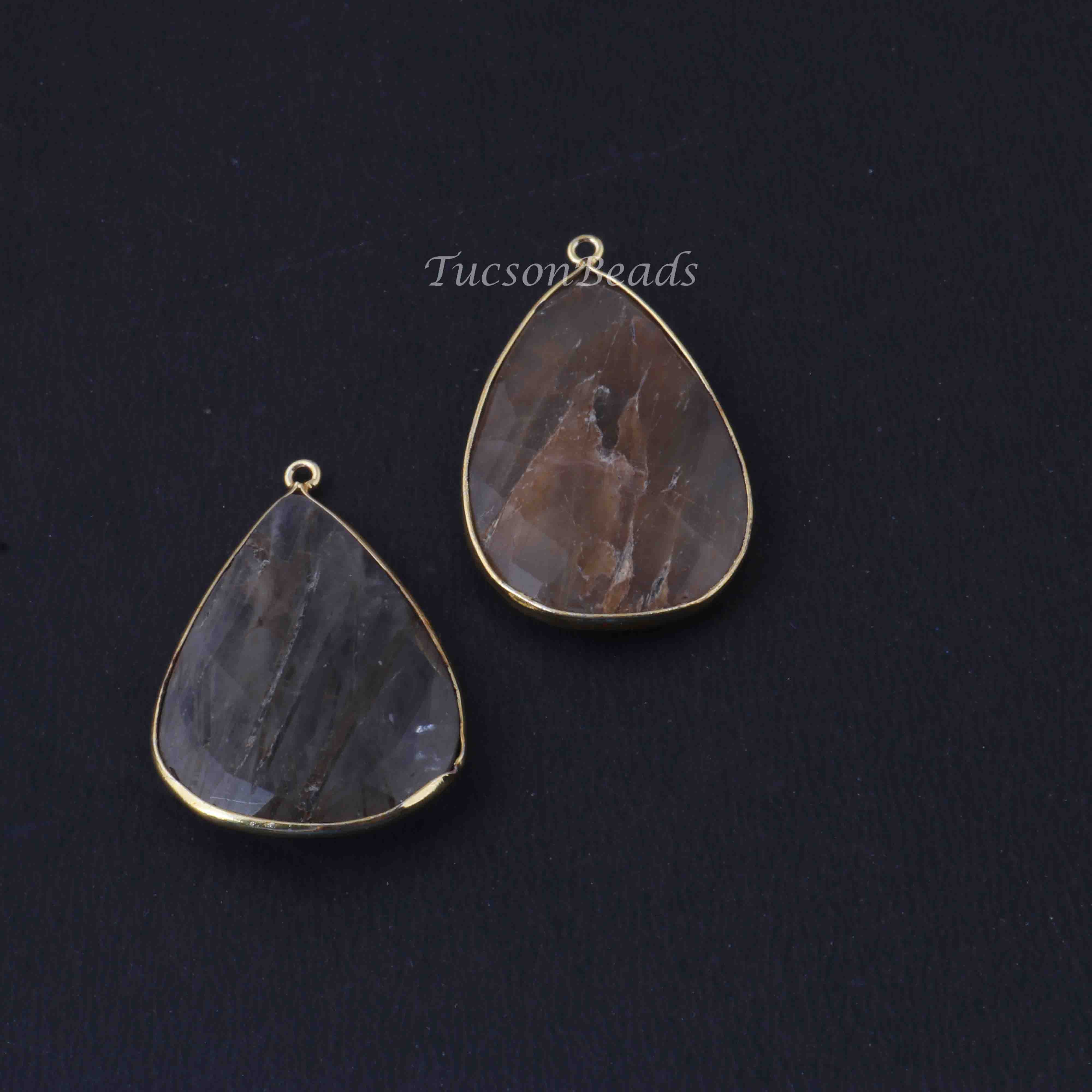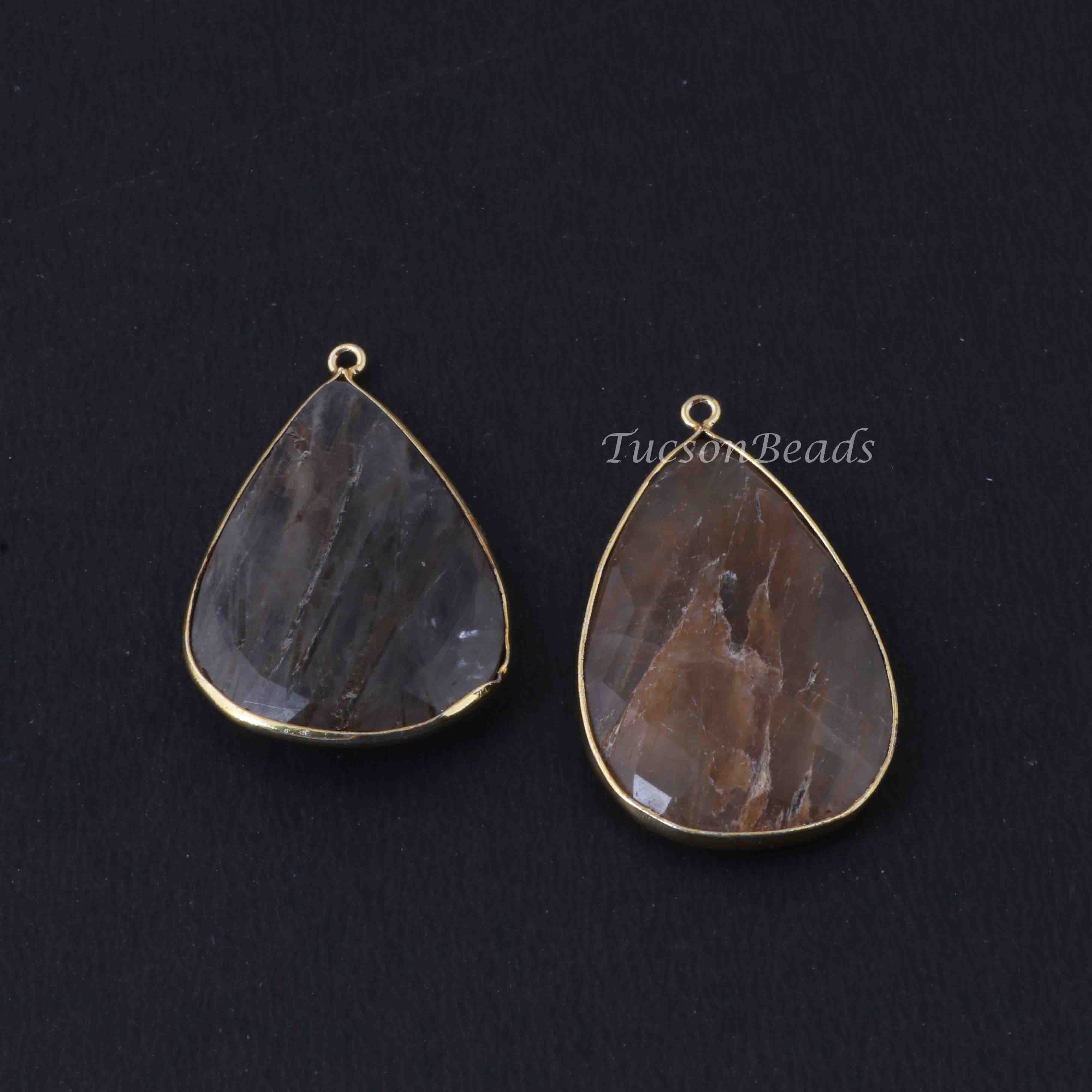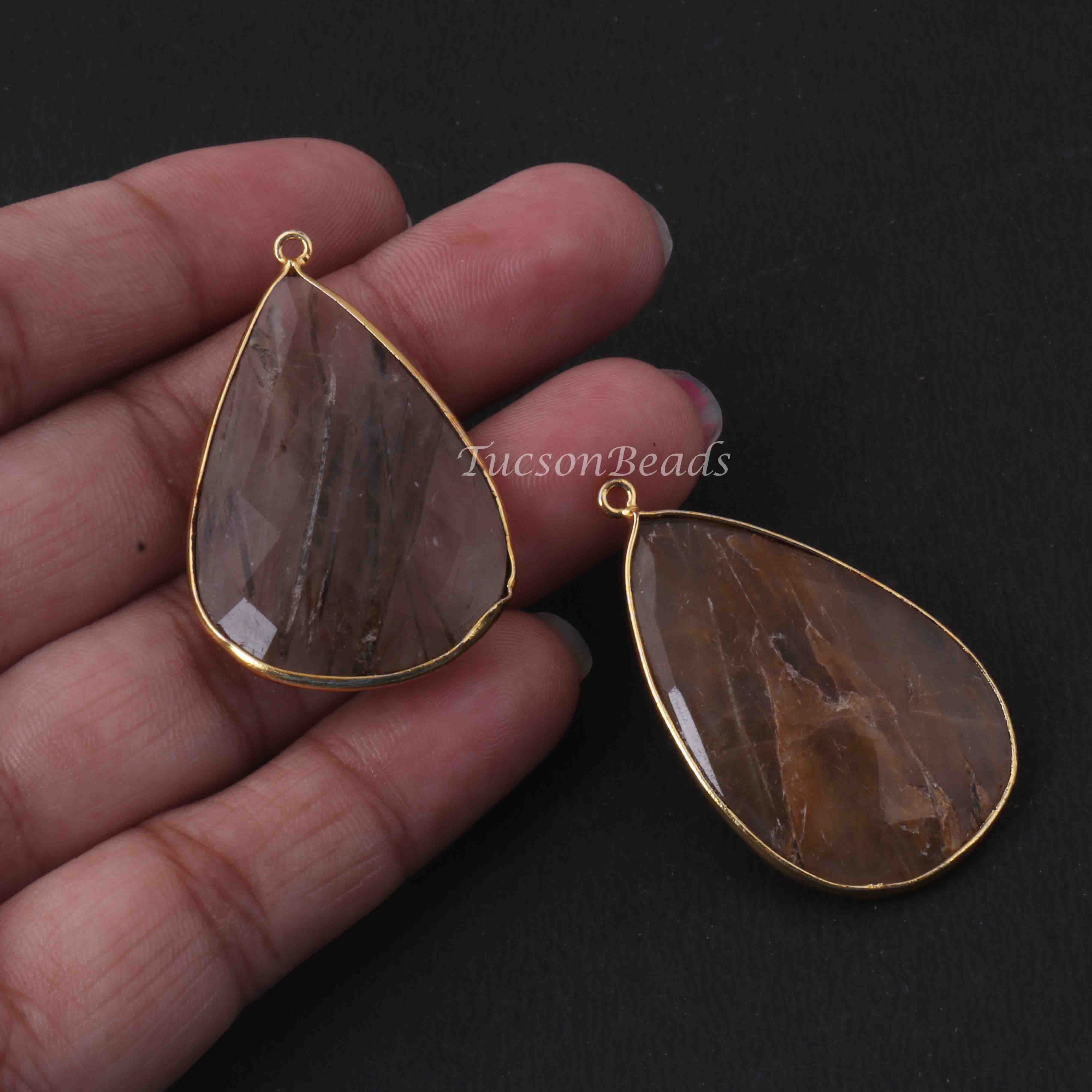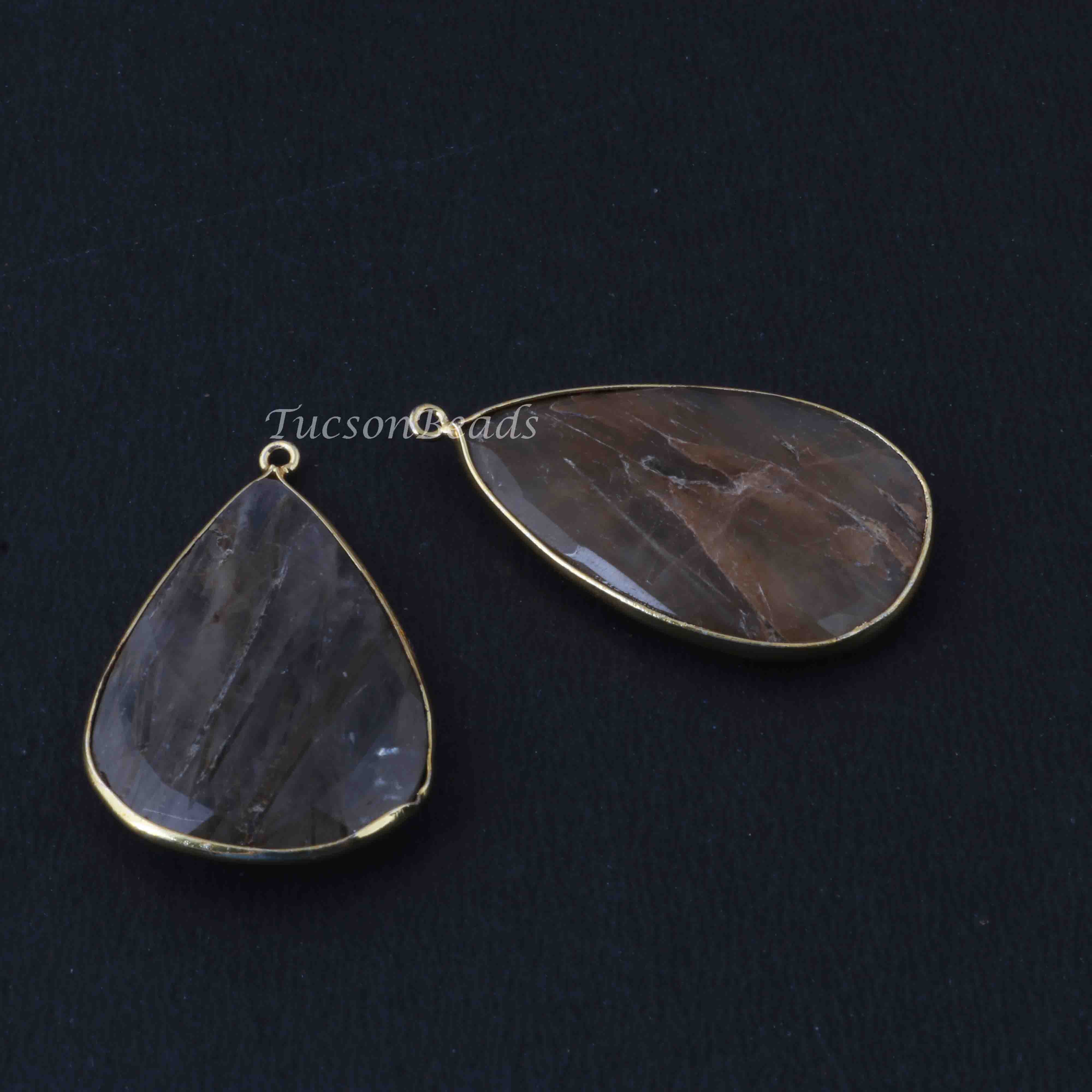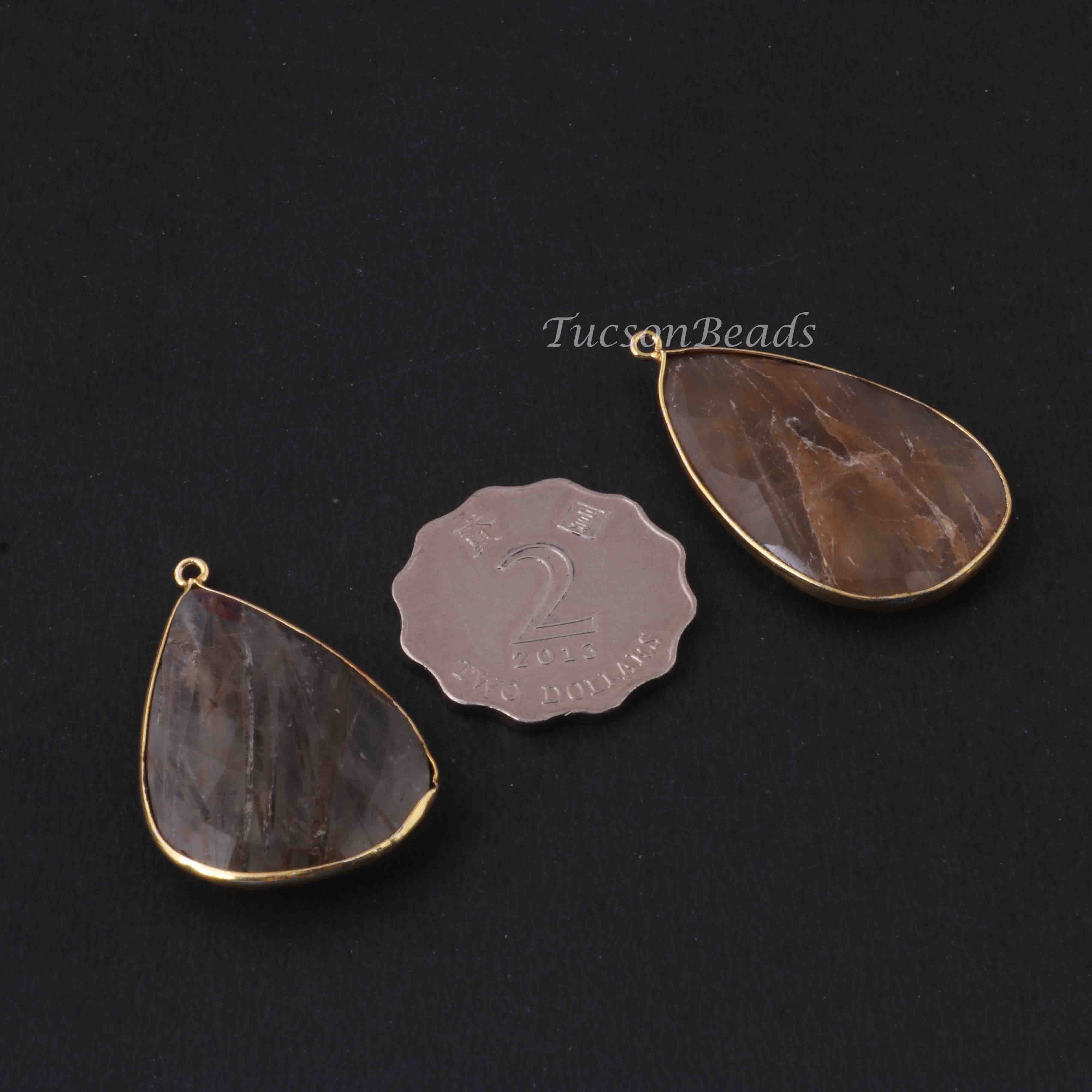 2 Pcs Mix Stone 24k Gold Plated Faceted Heart Shape Pendant - 40mmx25mm PC791