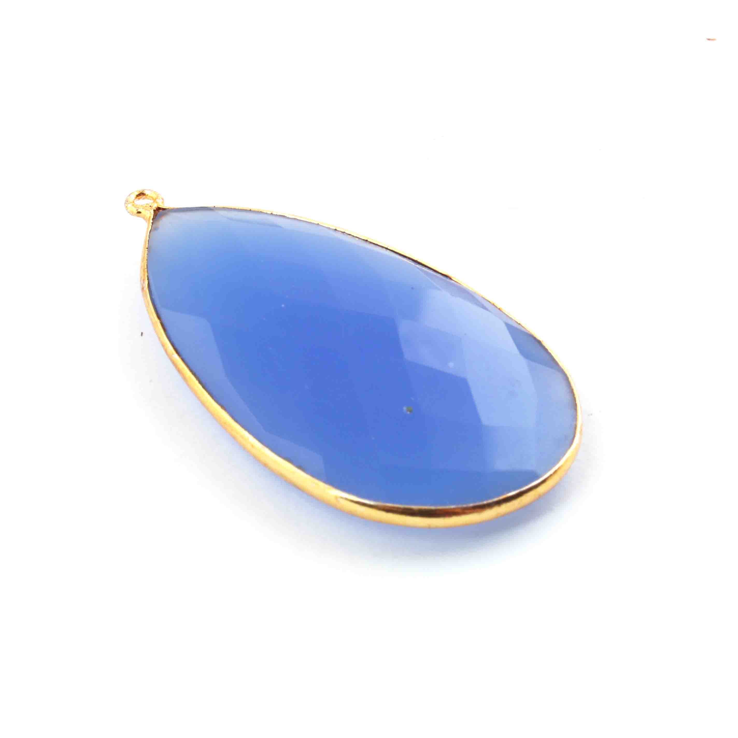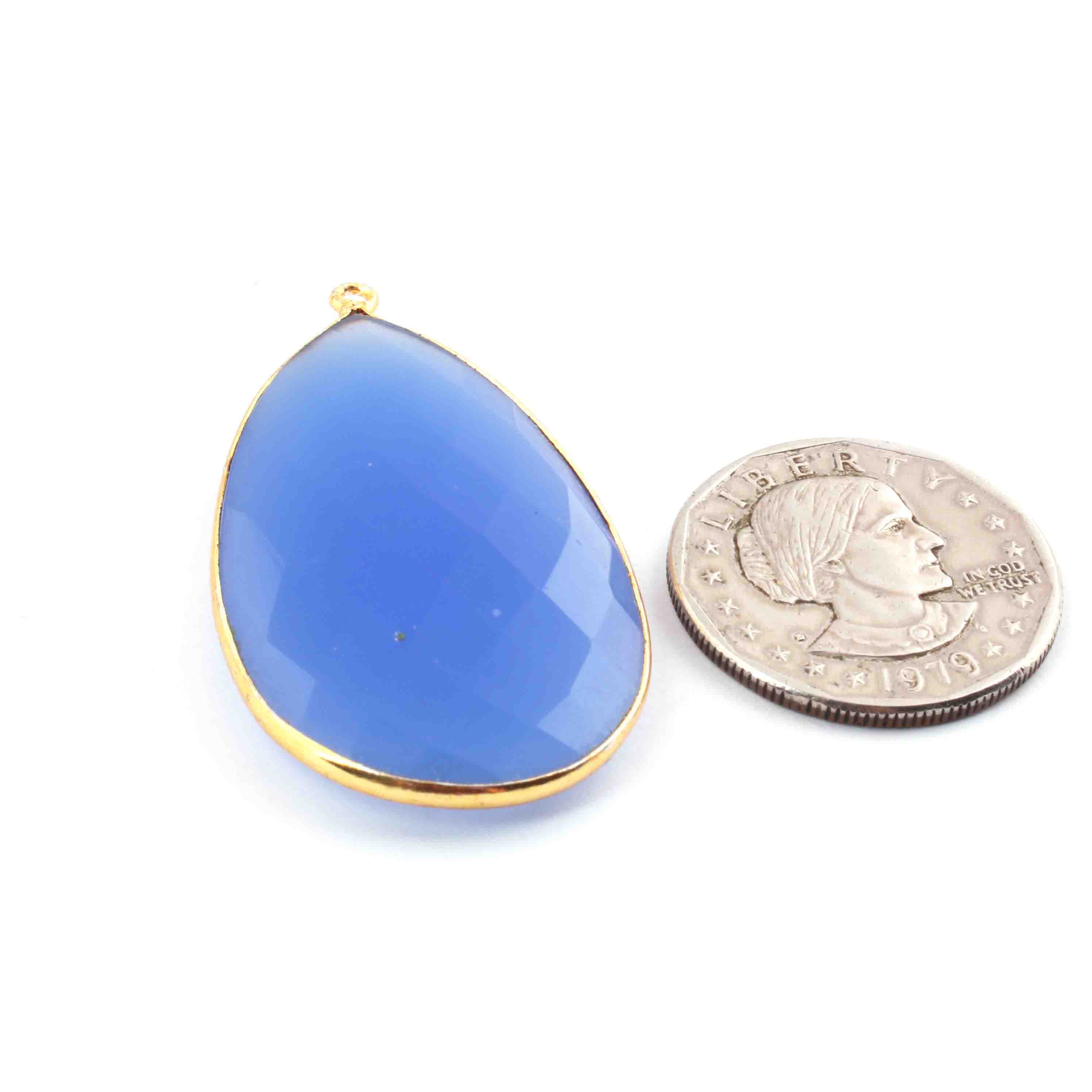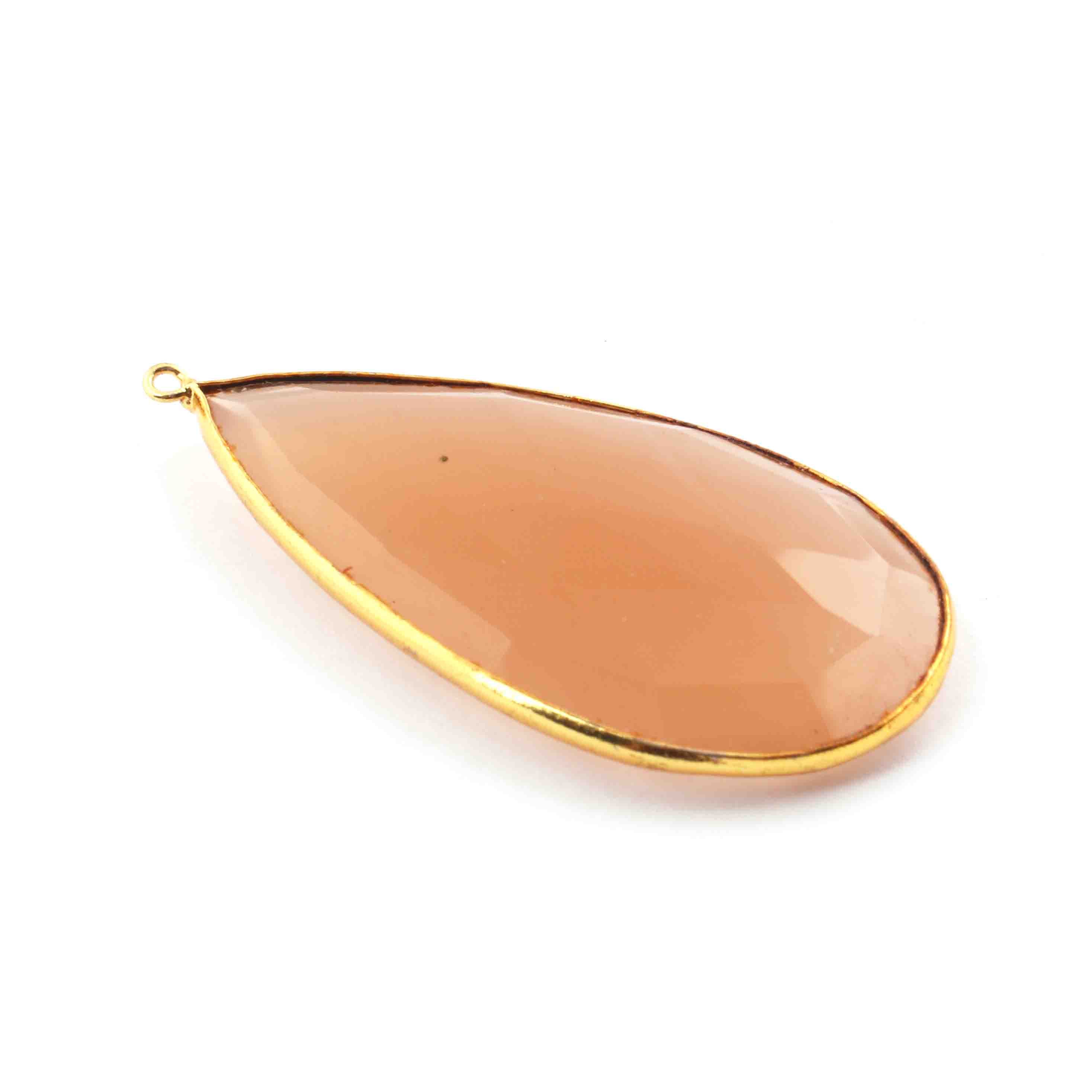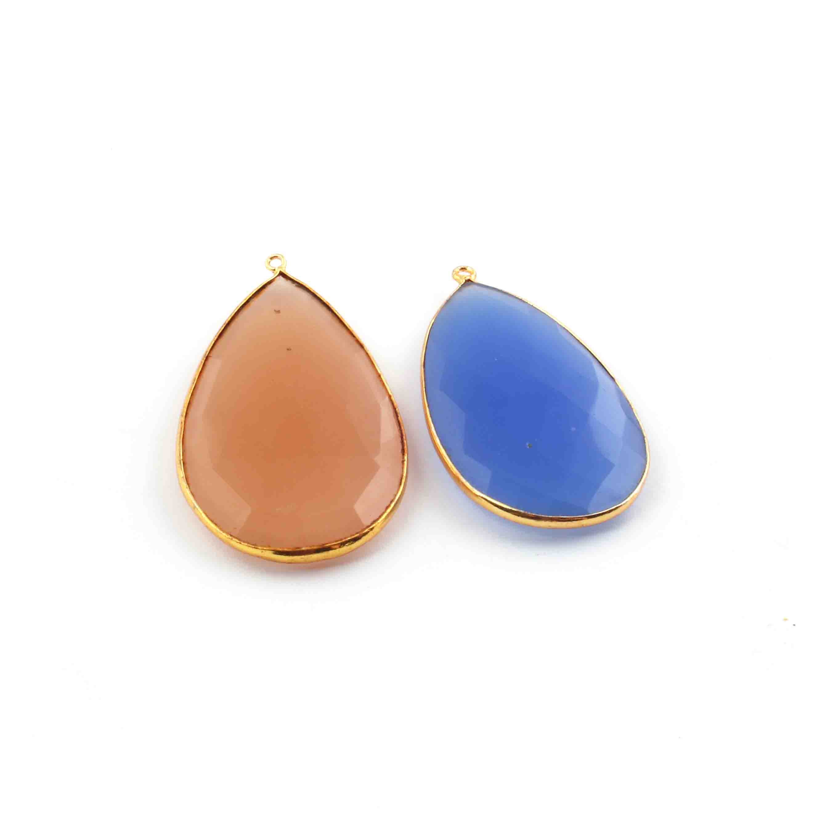 2 Pcs Mix Stone Faceted Pear Shape 24k Gold Plated Pendant - 49mmx27mm-55mmx29mm-PC702