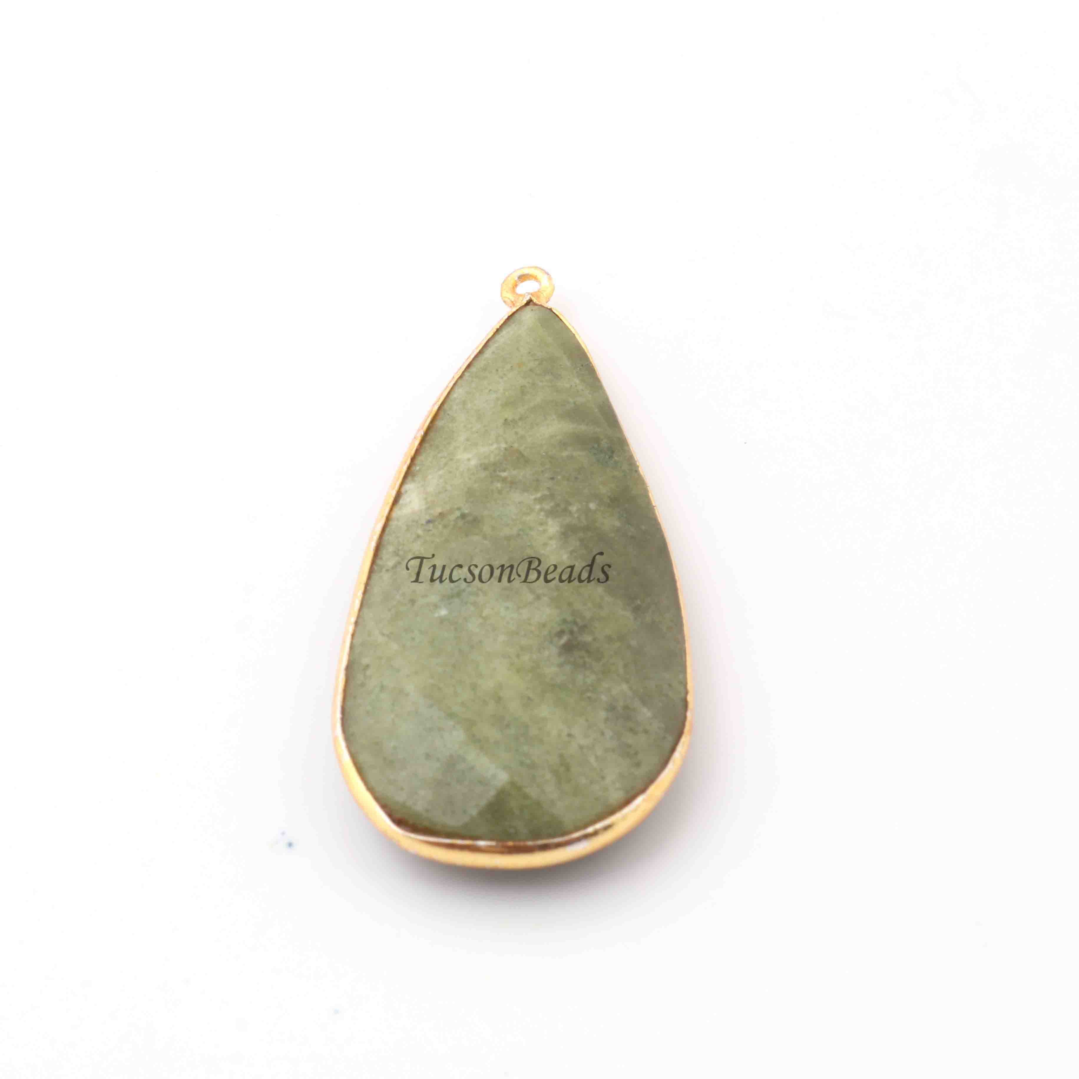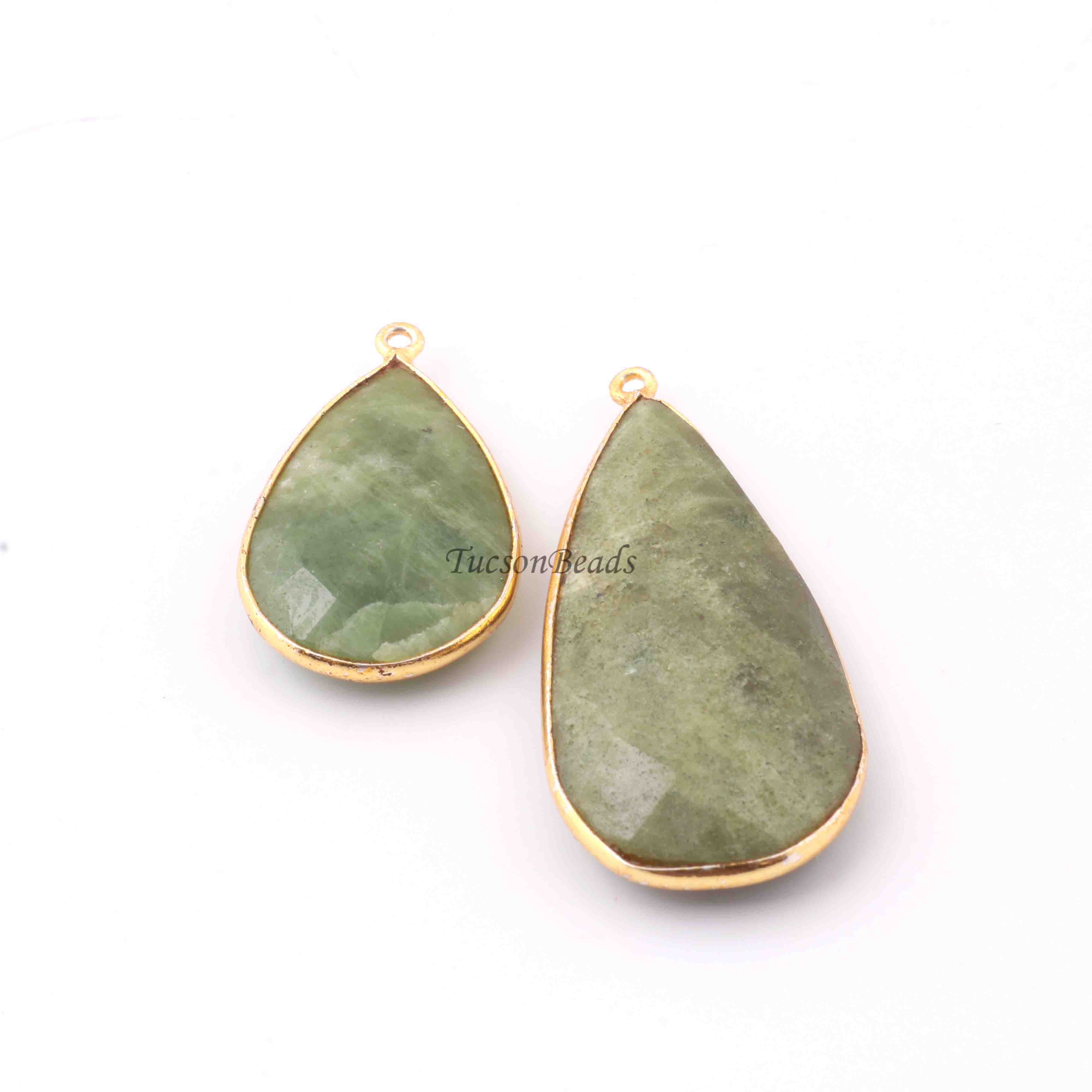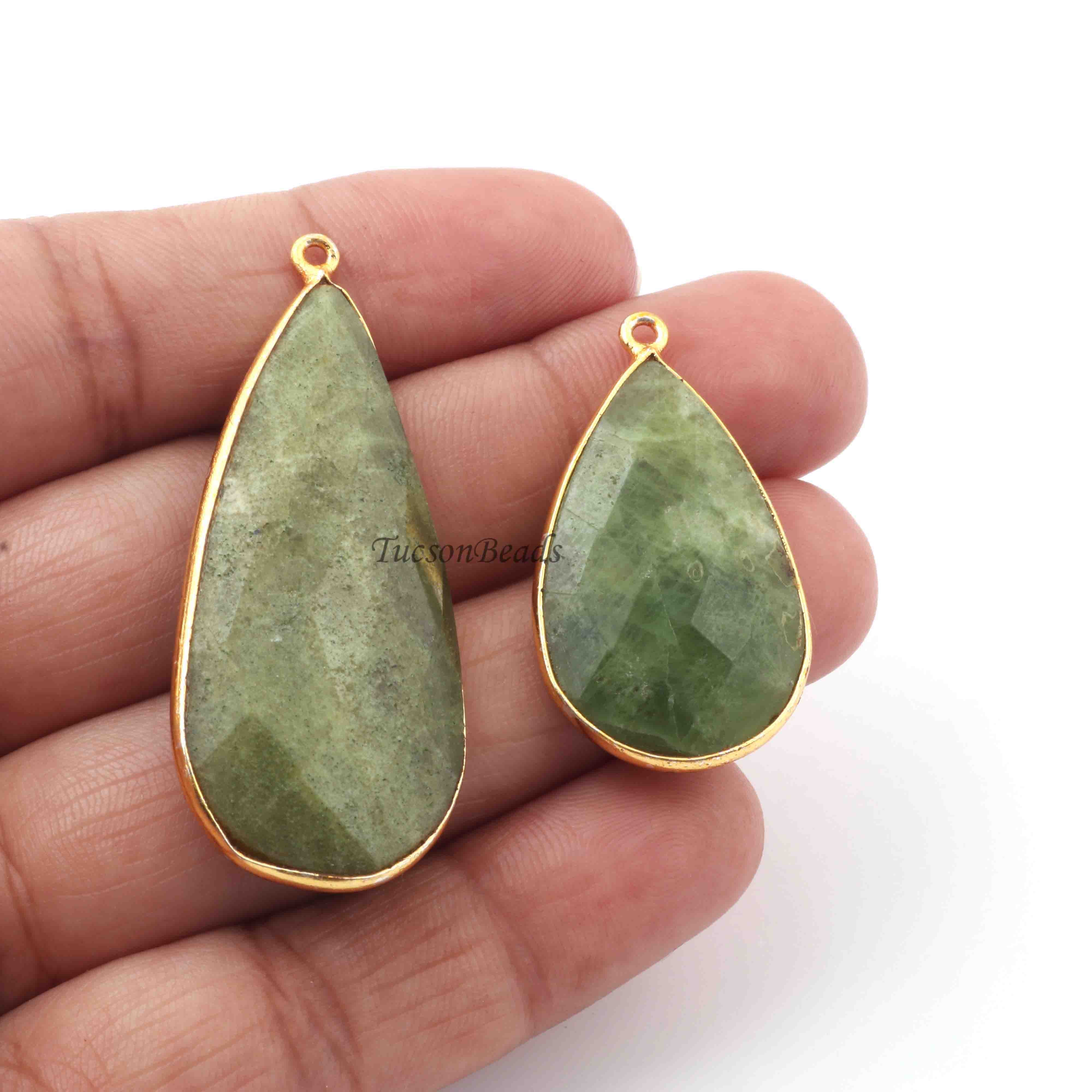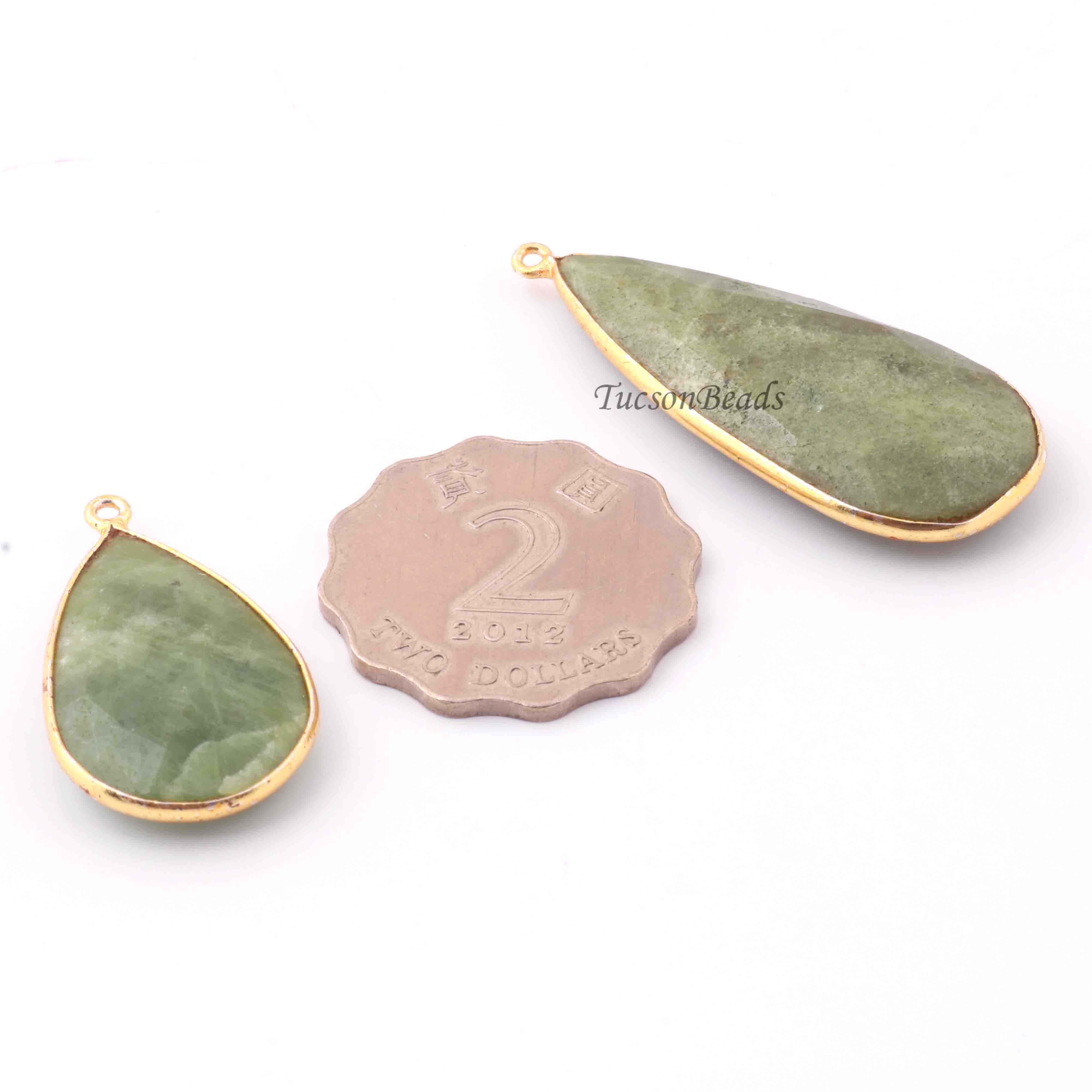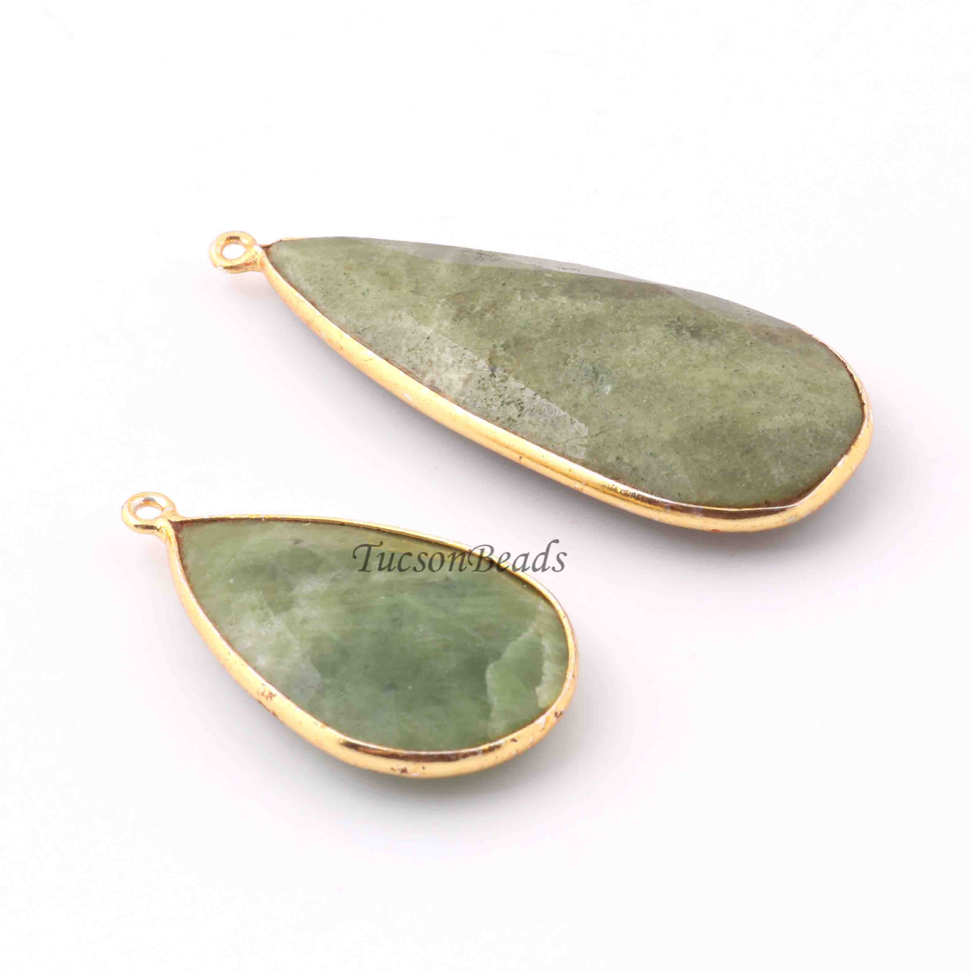 2 Pcs Serphanite Pear Shape 24k Gold Plated Pendant- 42mmx15mm-28mmx13mm PC036
