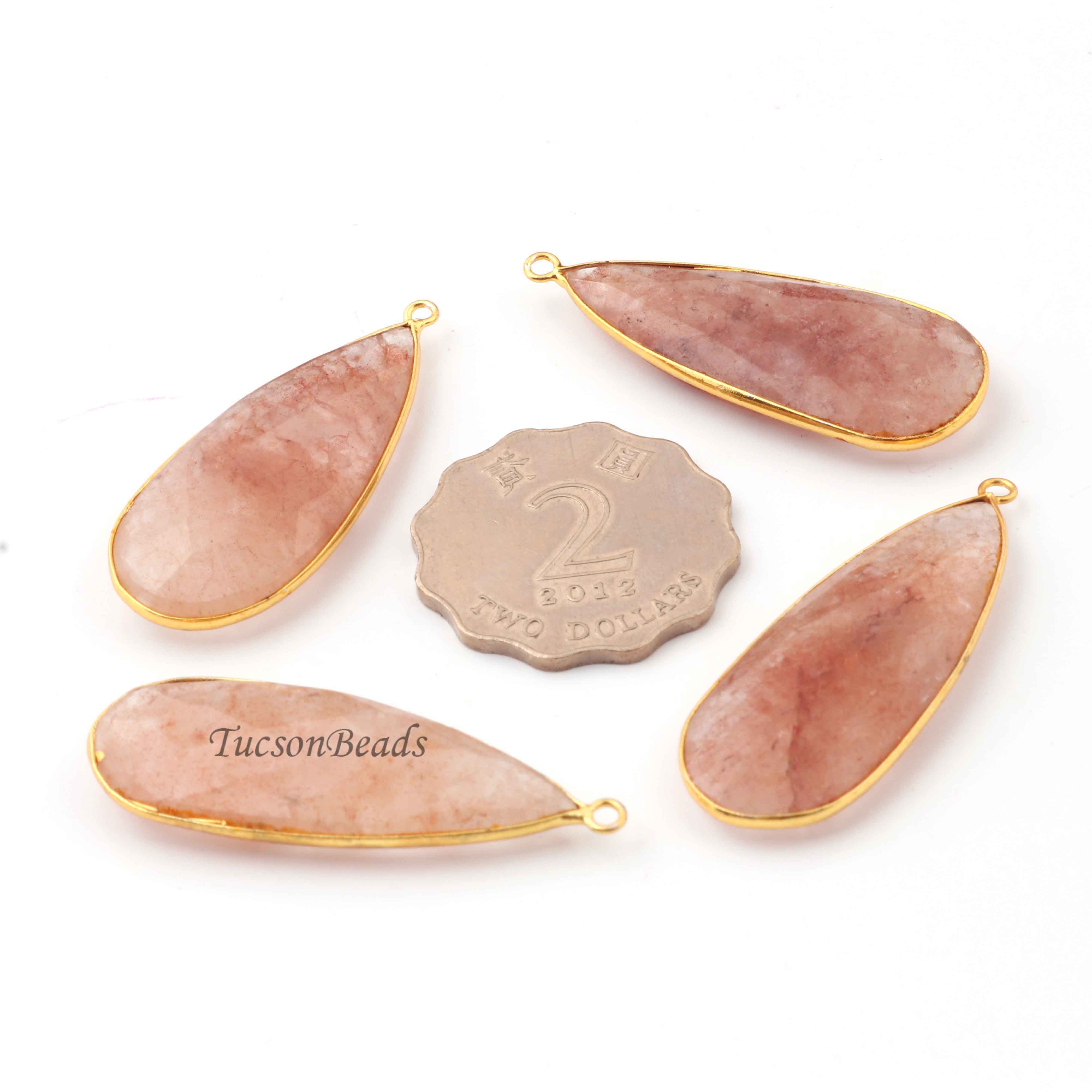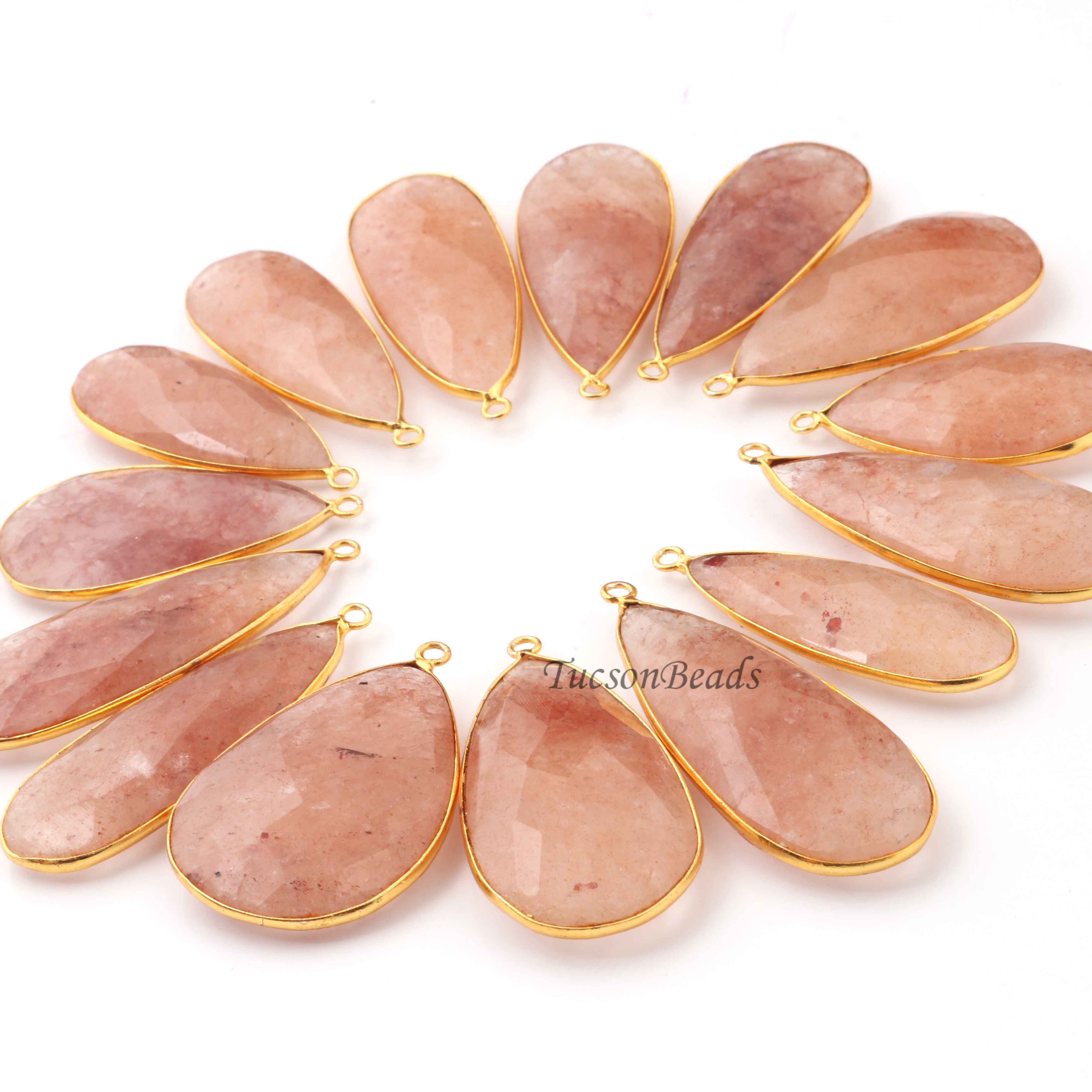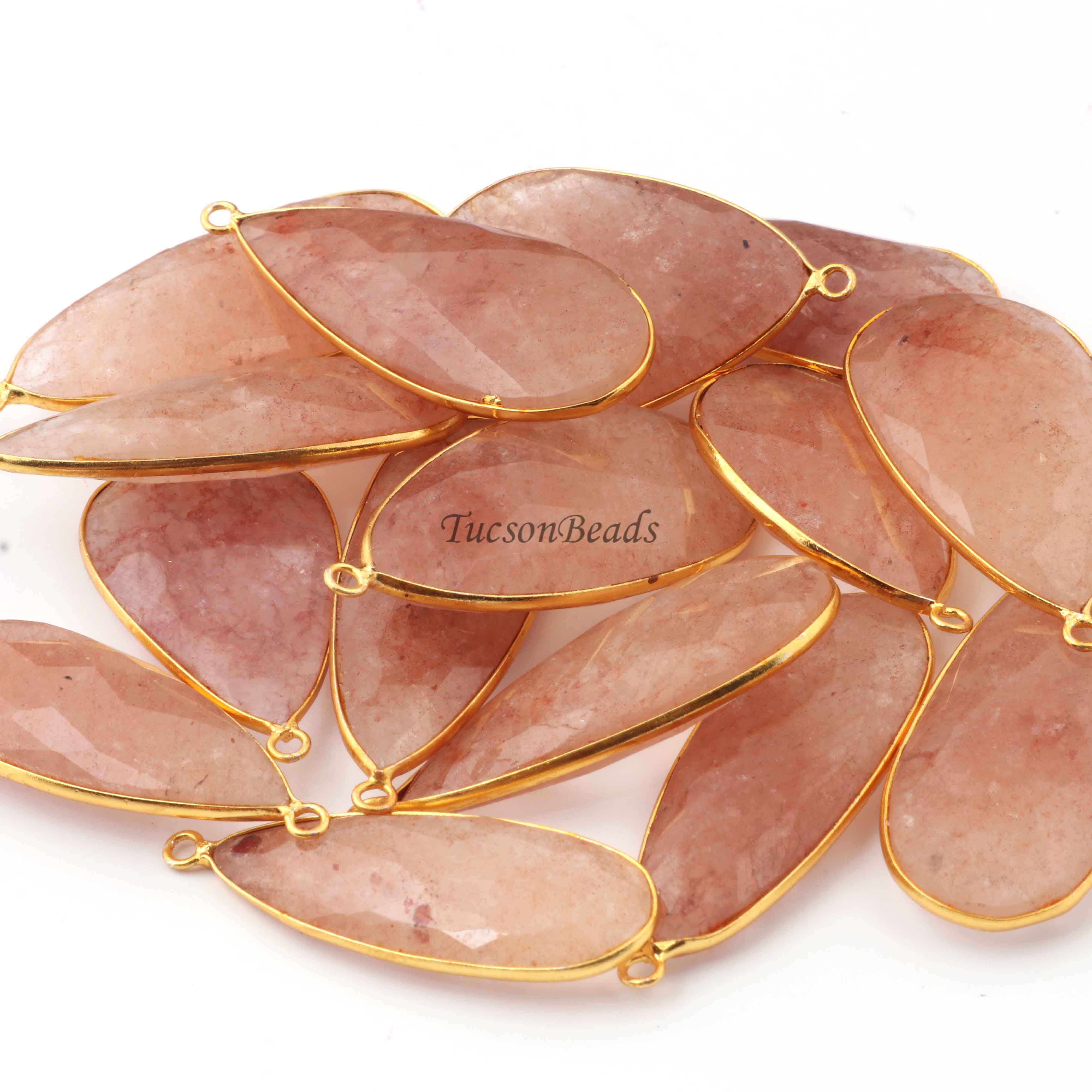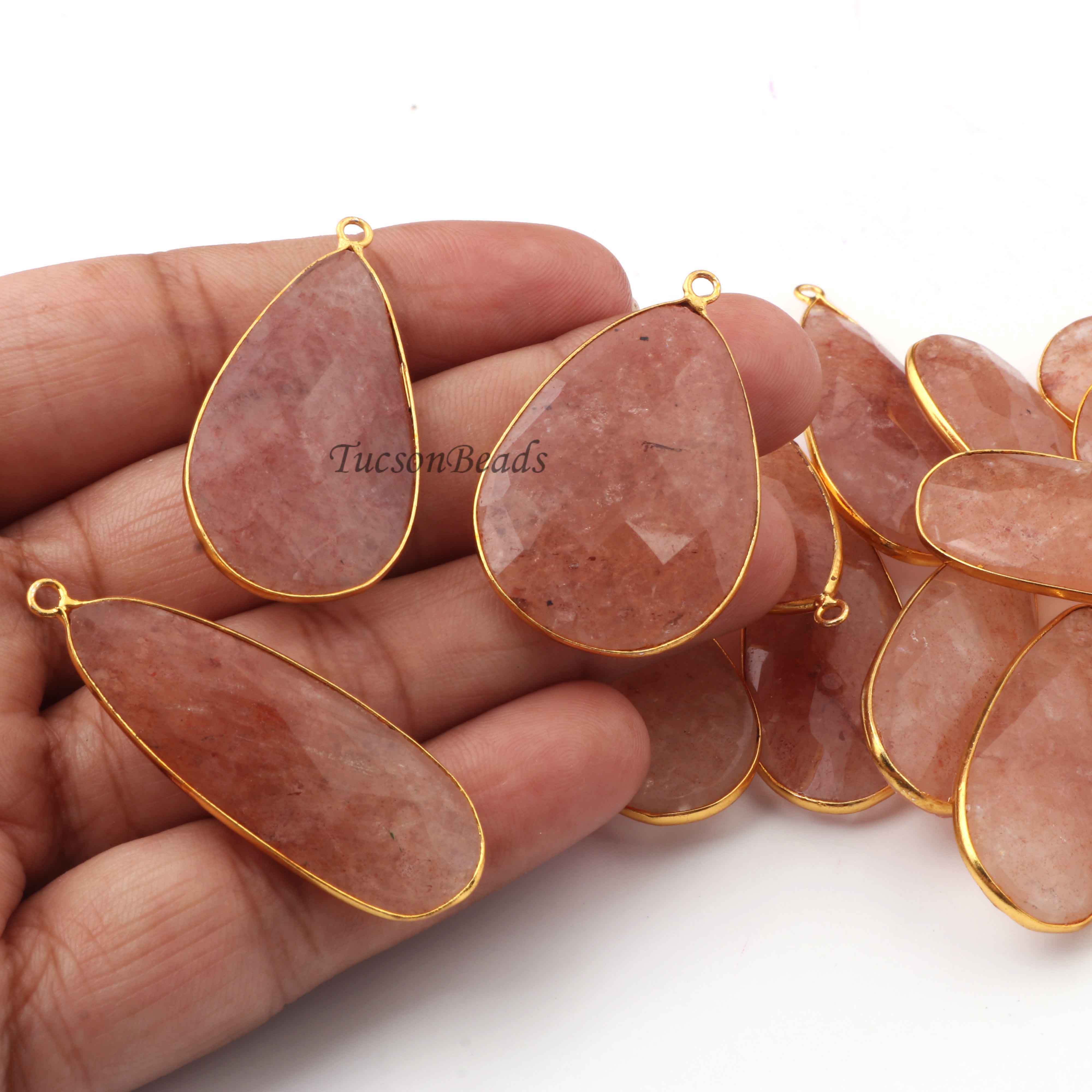 7 Pcs Red Rutile Faceted 24k Gold Plated Pear Shape Pendant - 42mmx20mm- PC799