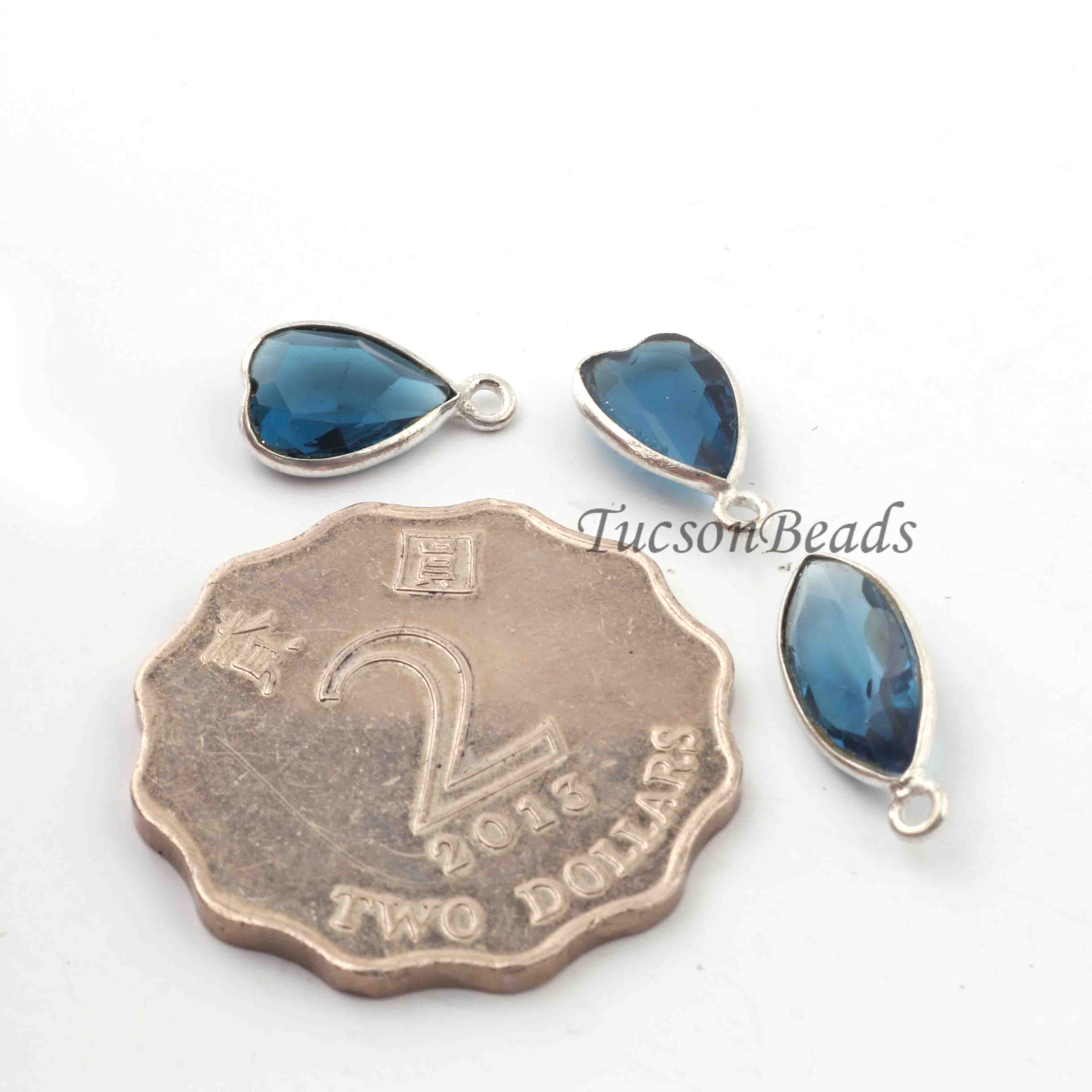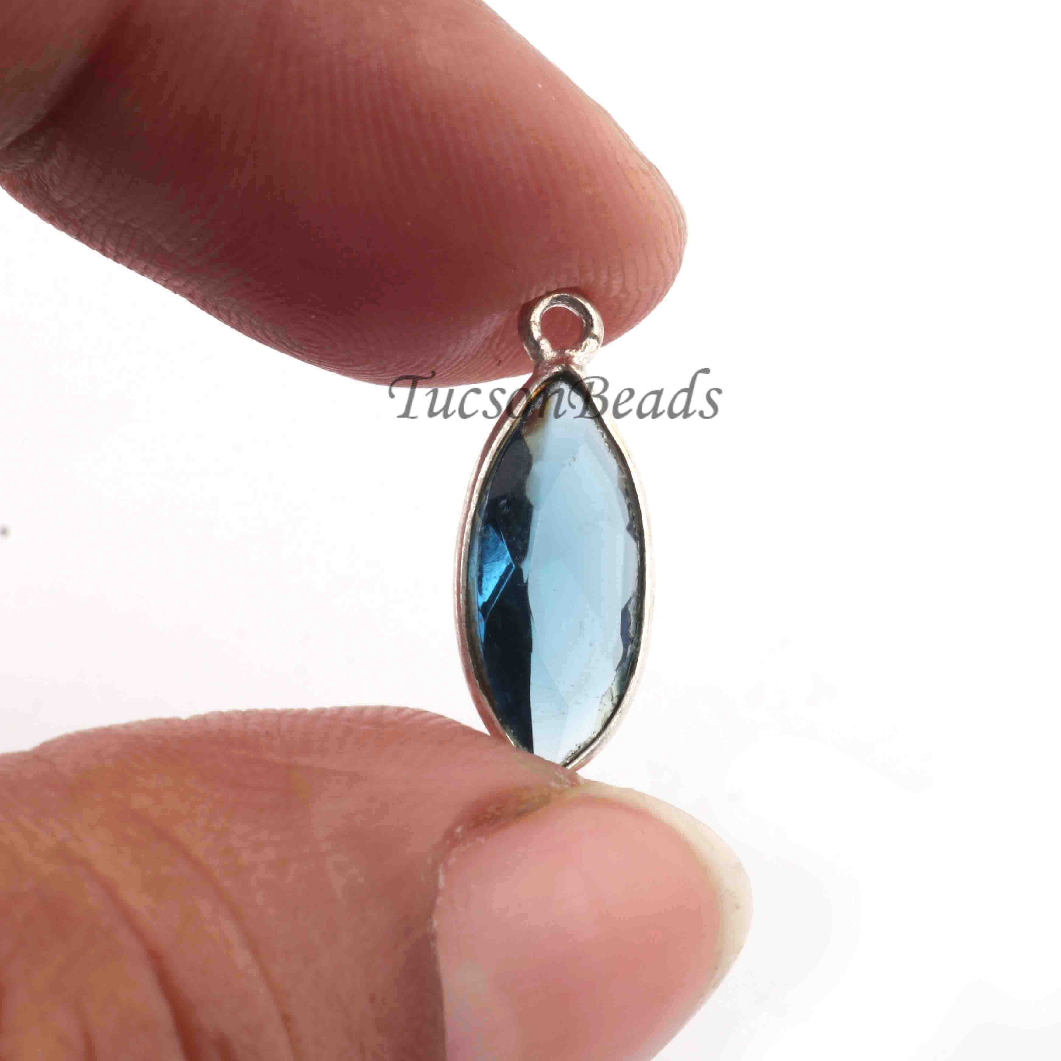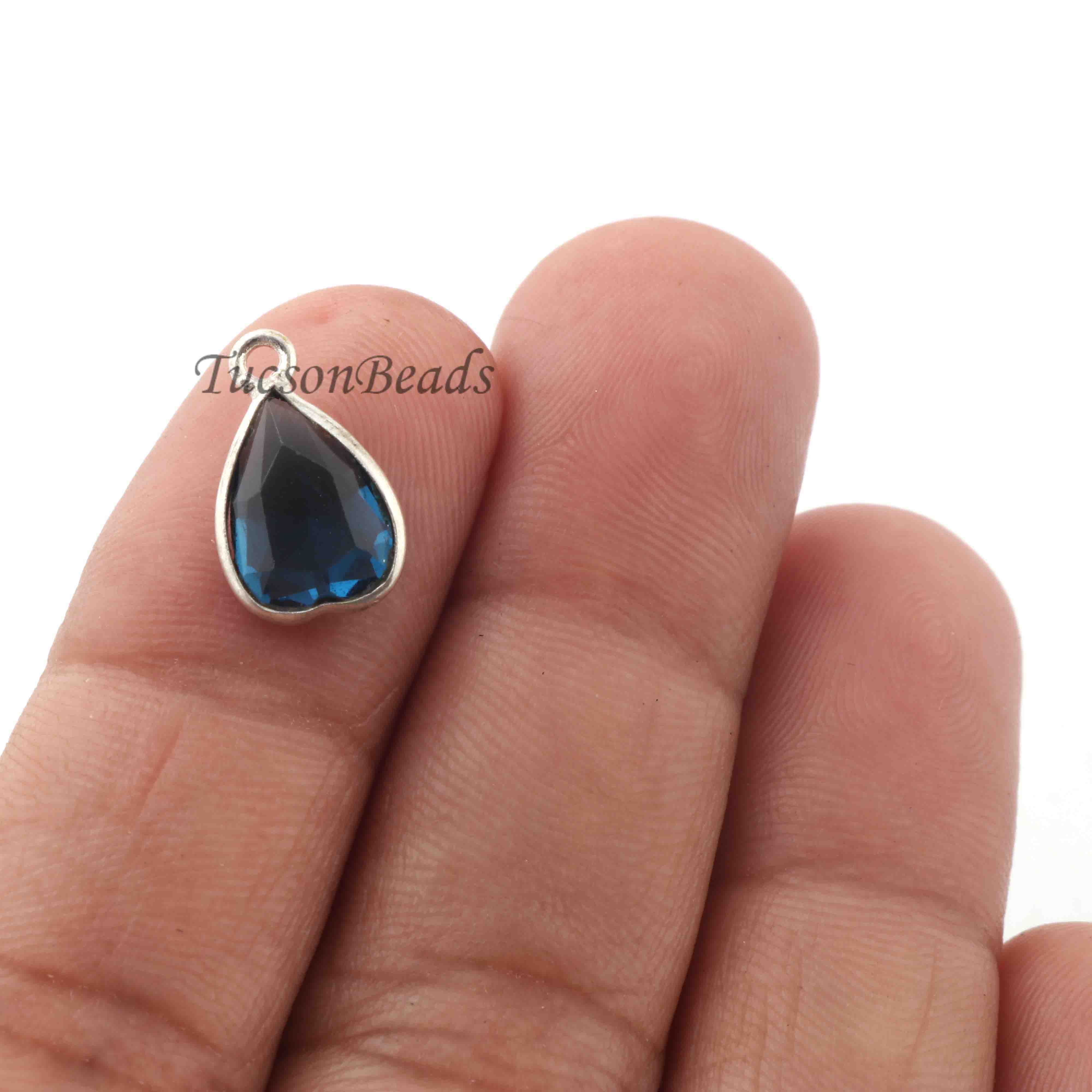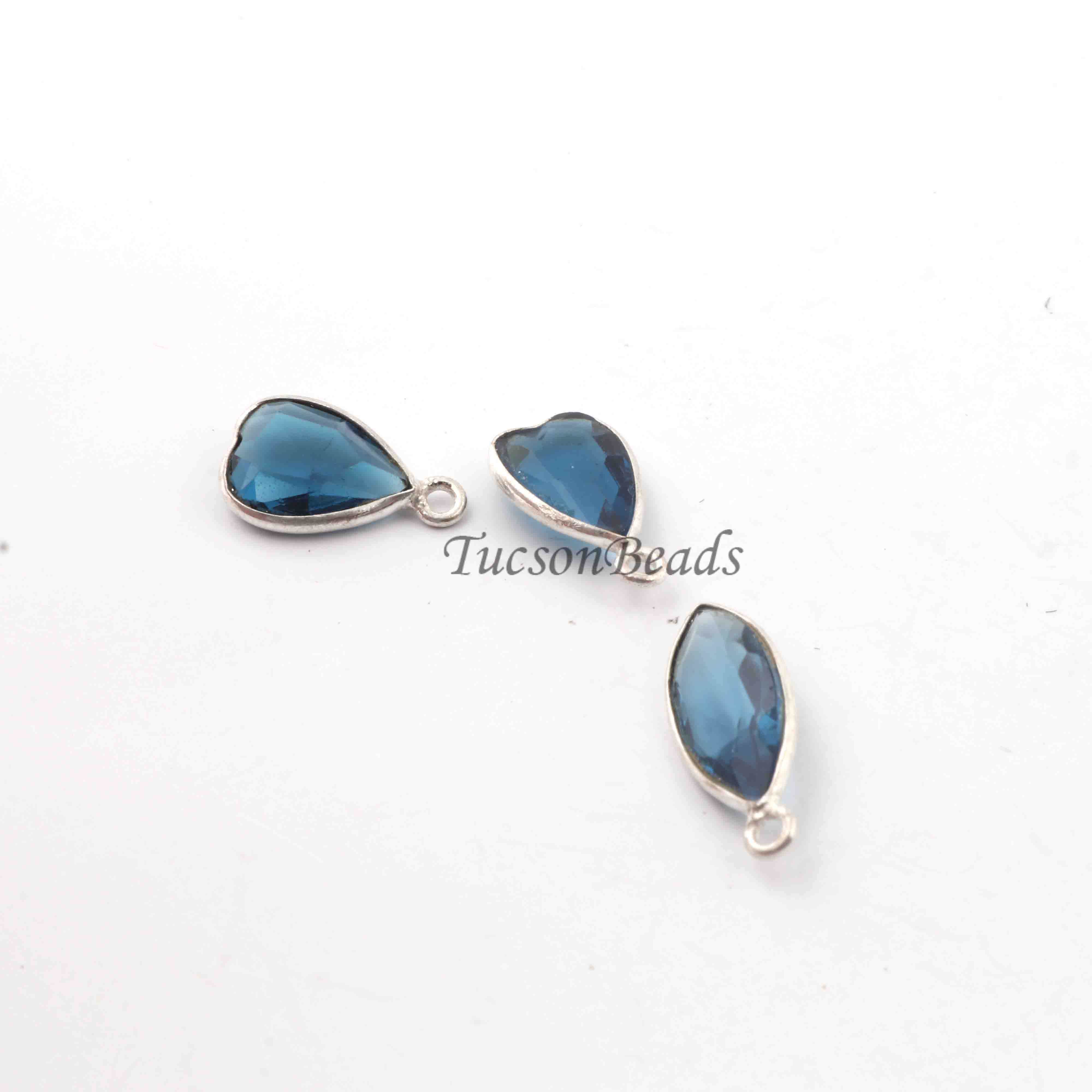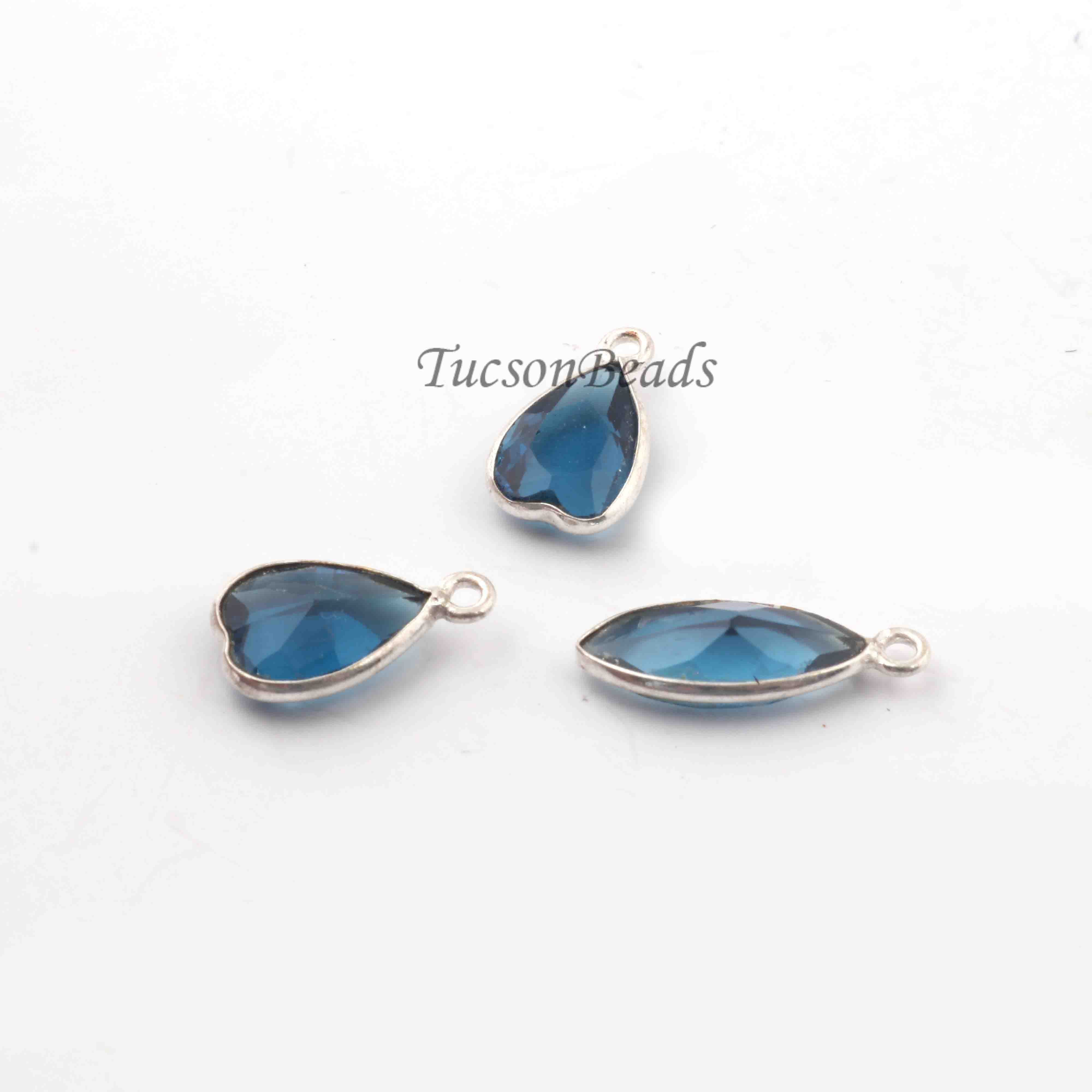 3 Pcs Blue Hydro 925 Silver Plated Faceted - Assorted Shape Faceted Pendant -13mmx8mm PC871