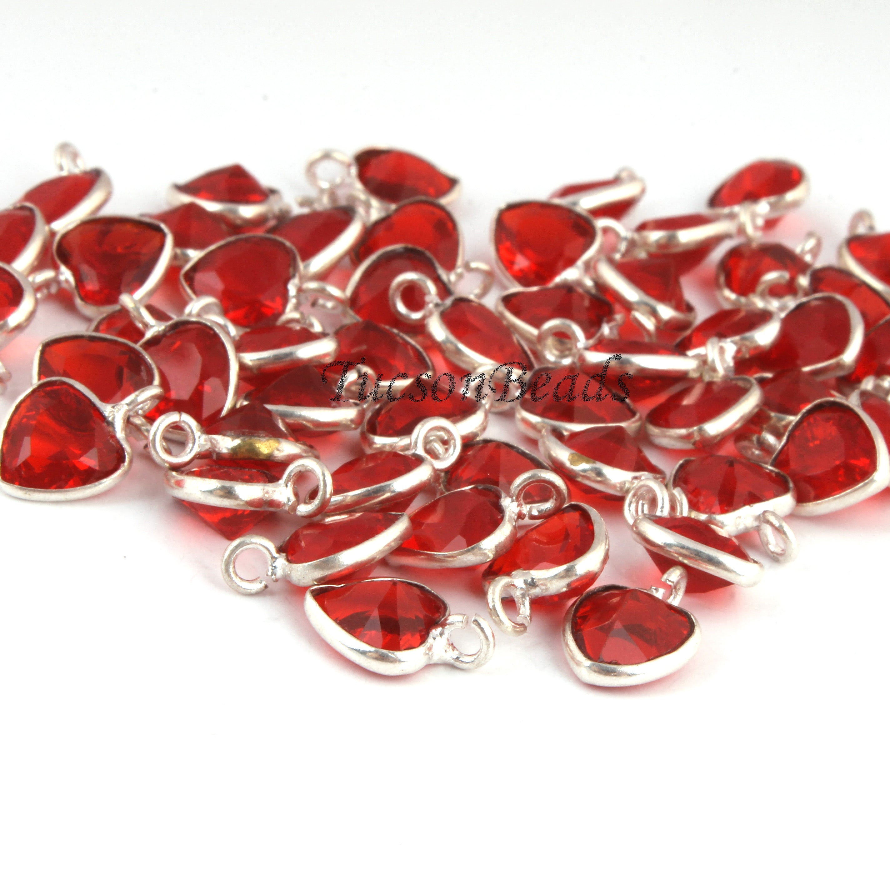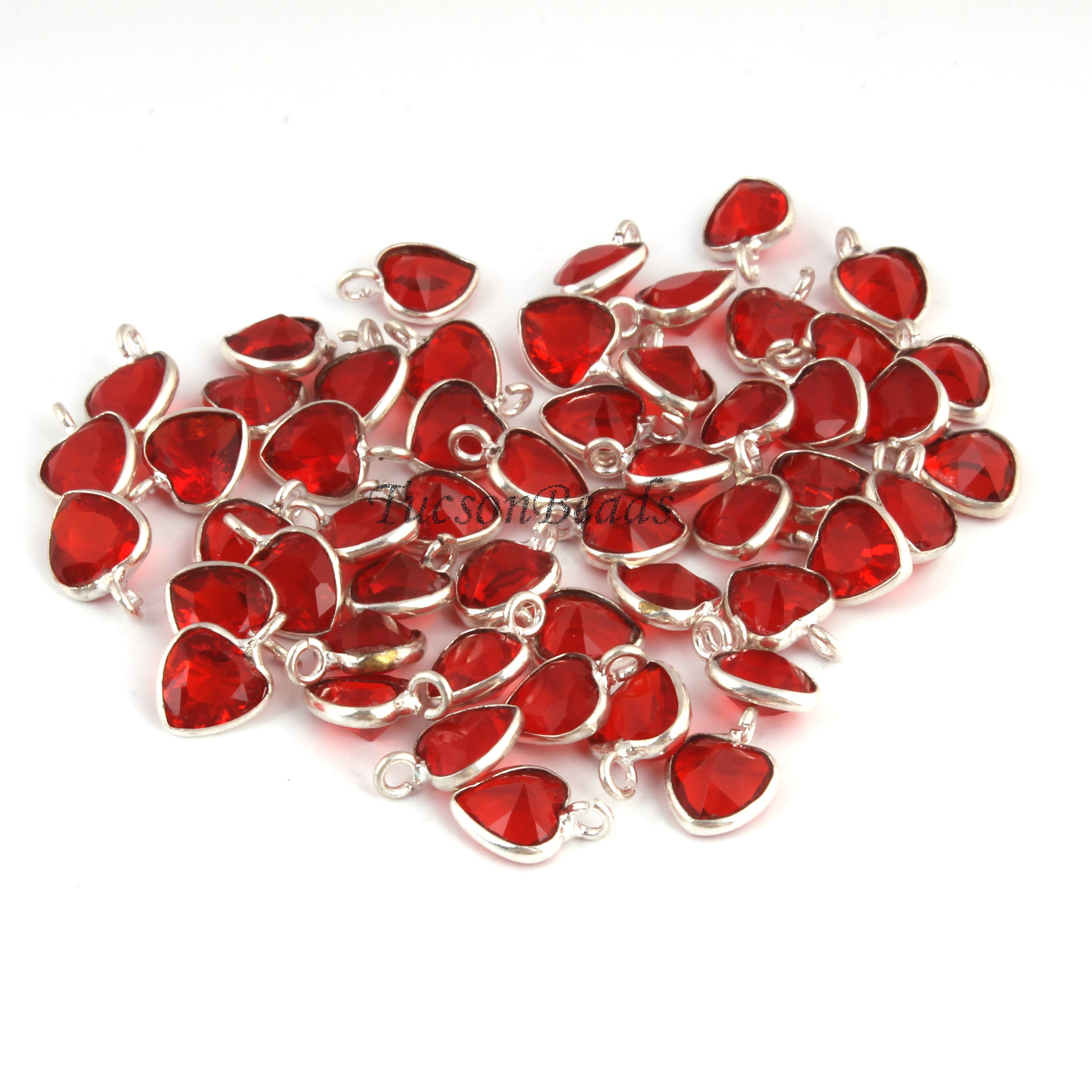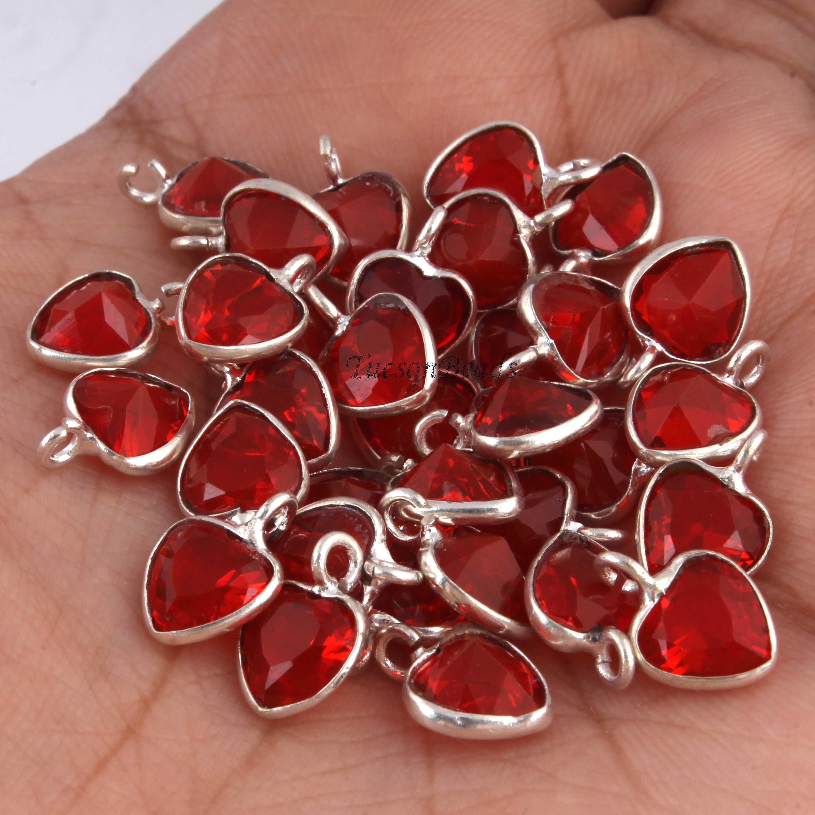 10 Pcs  Garnet 925 Silver Plated Faceted - Heart  Shape Faceted Pendant -11mmx7mm  PC850