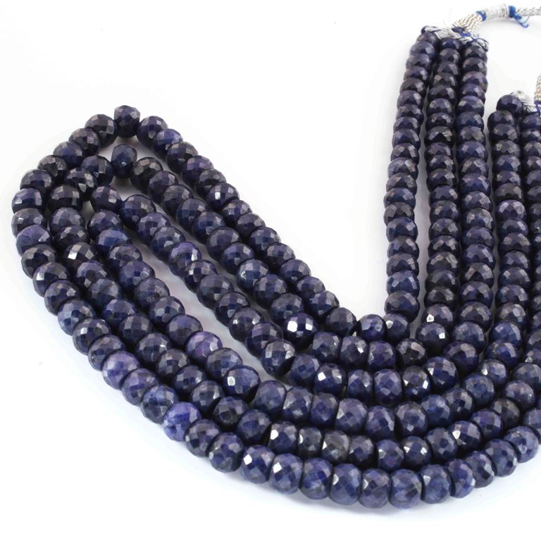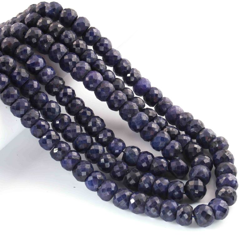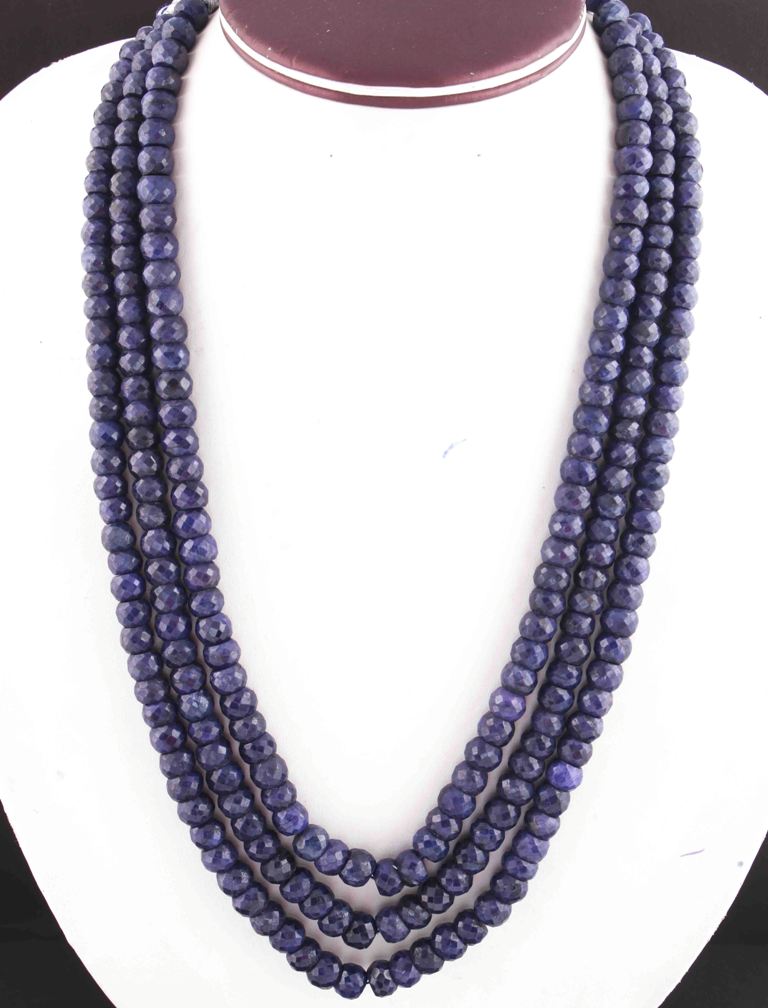 1320. Ct 3 Strands Of Dyed Blue Sapphire Necklace - Faceted Rondelle Beads -Stunning Elegant Necklace SPB0136