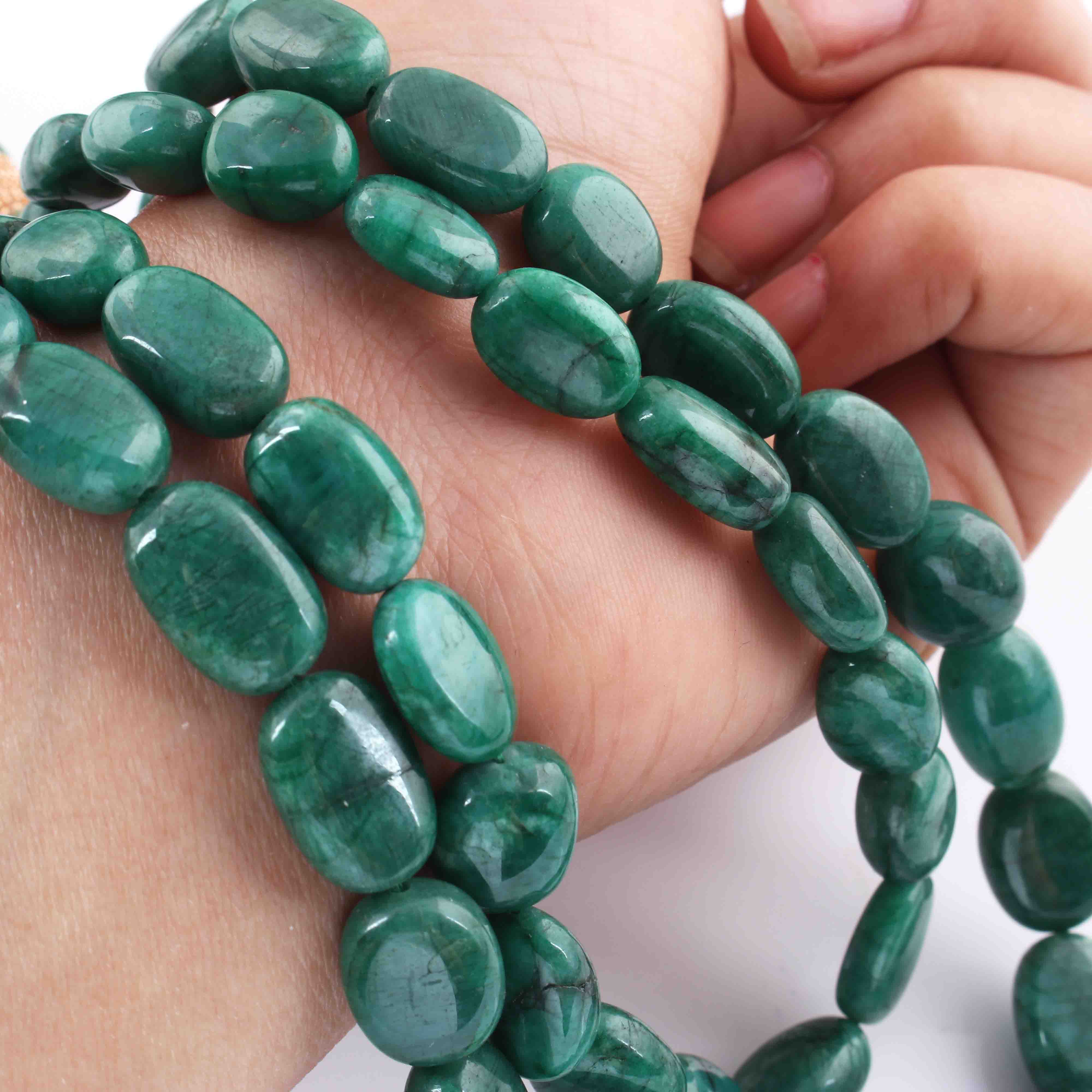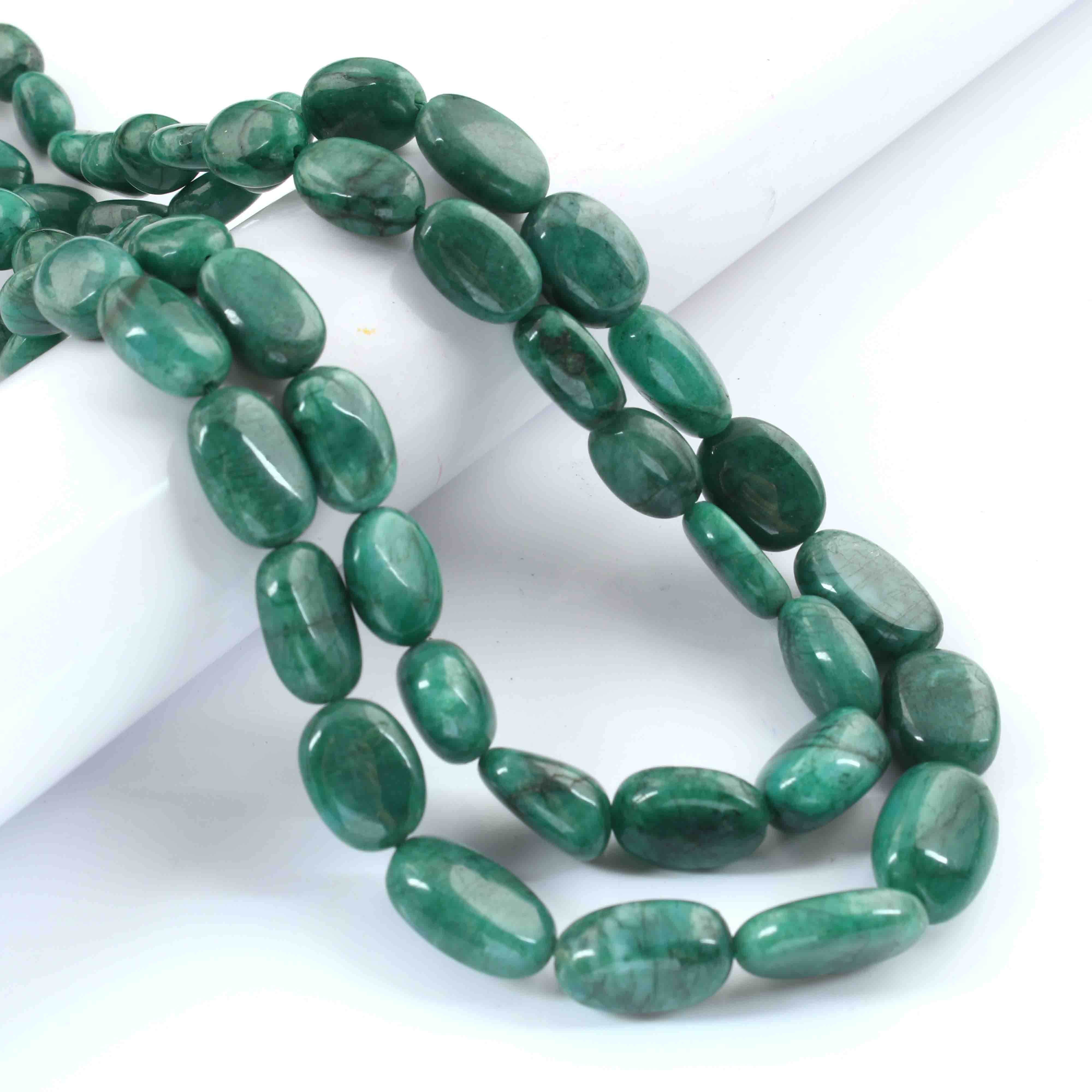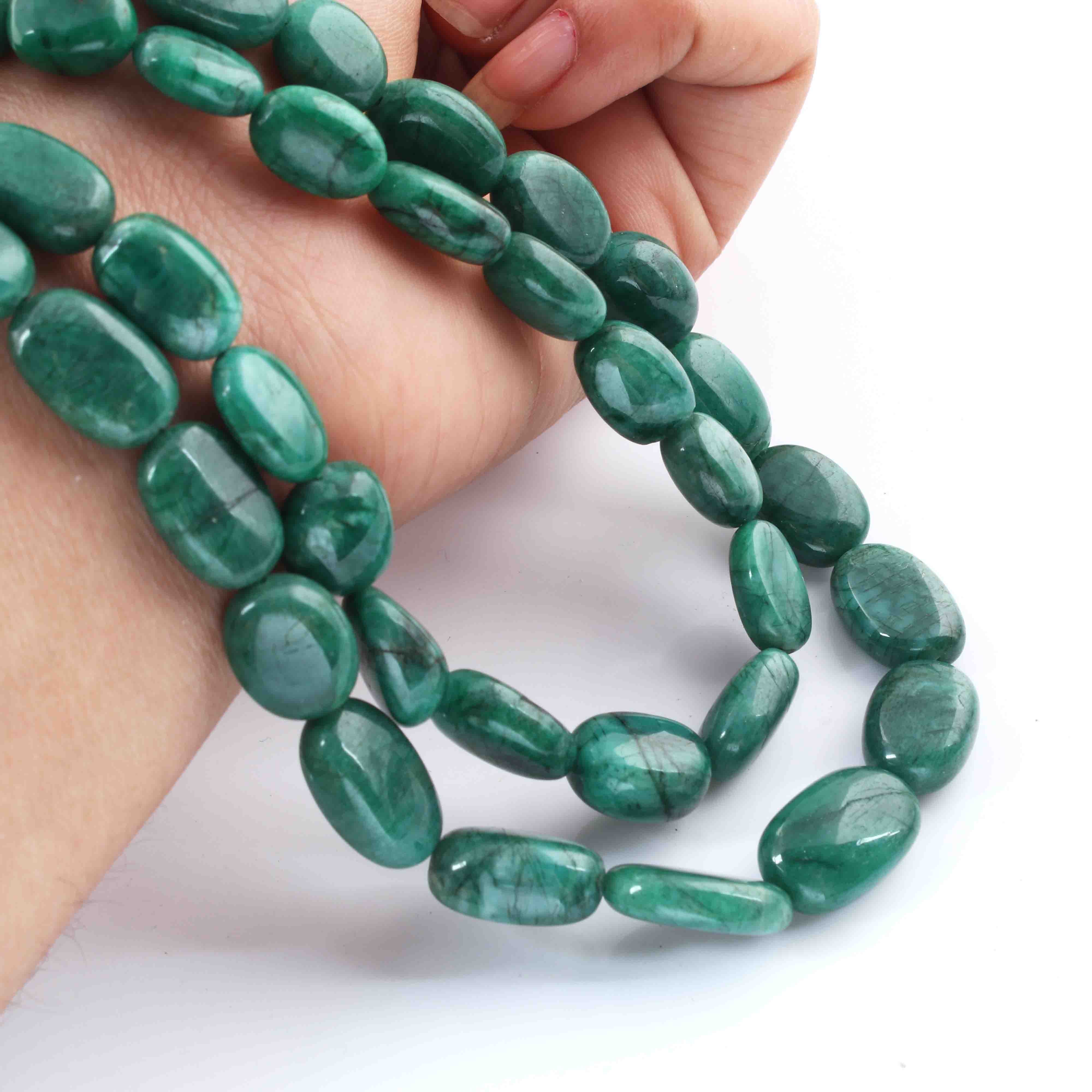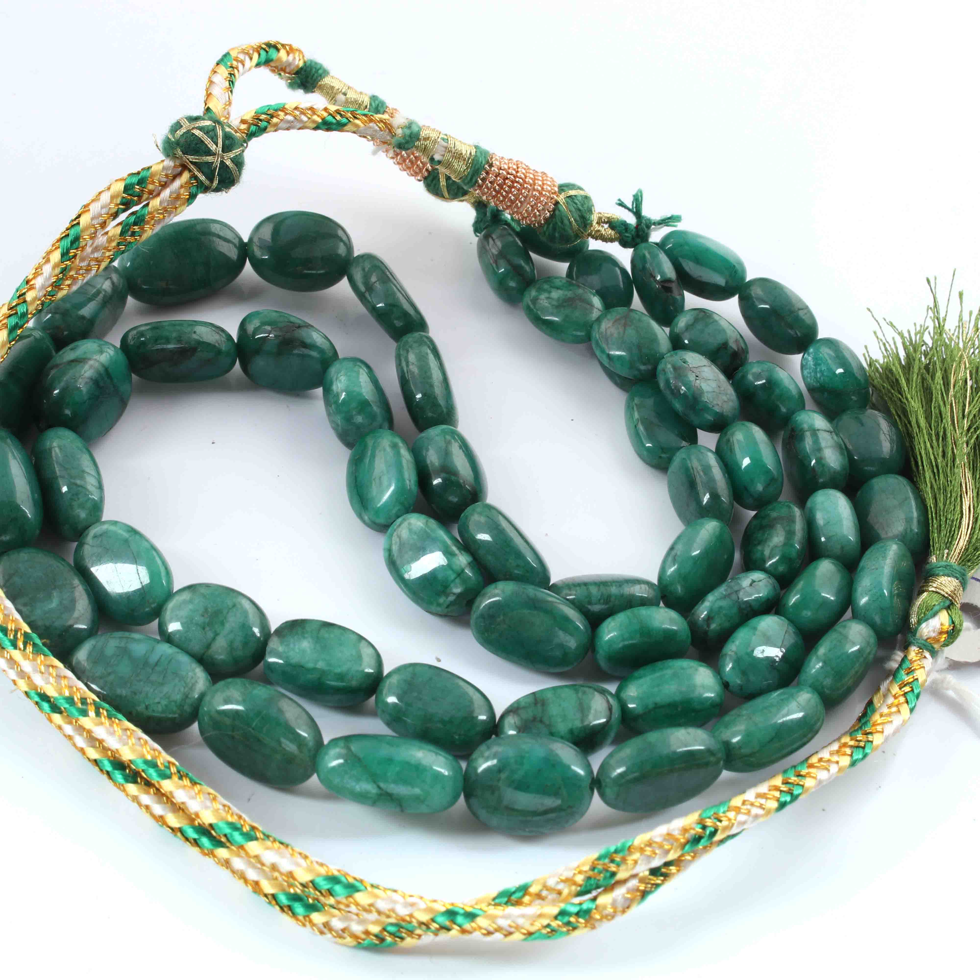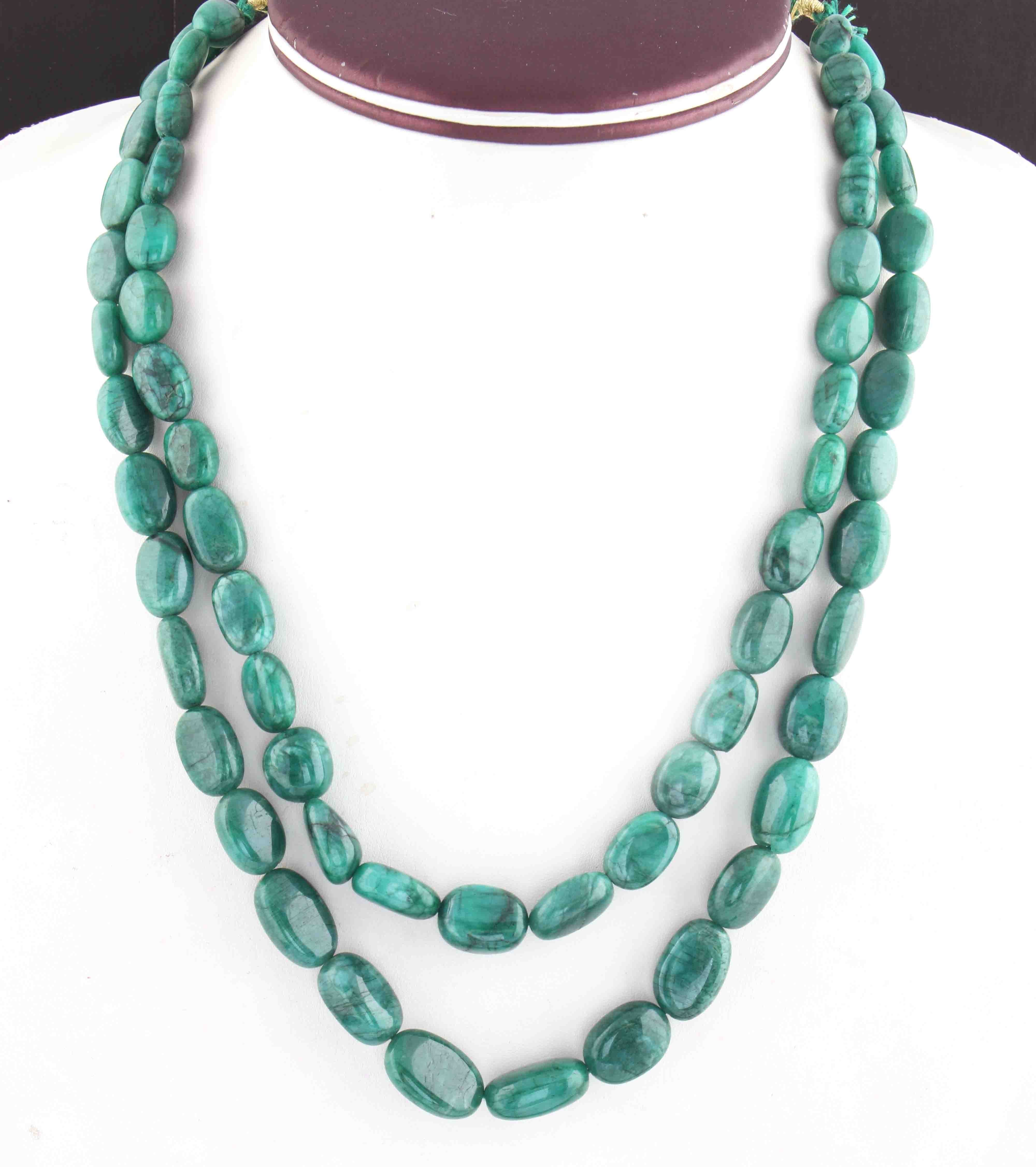 410 Carats 2 Strands Of Precious Genuine Natural Emerald Necklace - Smooth oval Beads - Rare & Natural Emerald Necklace - Stunning Elegant Necklace SPB0163