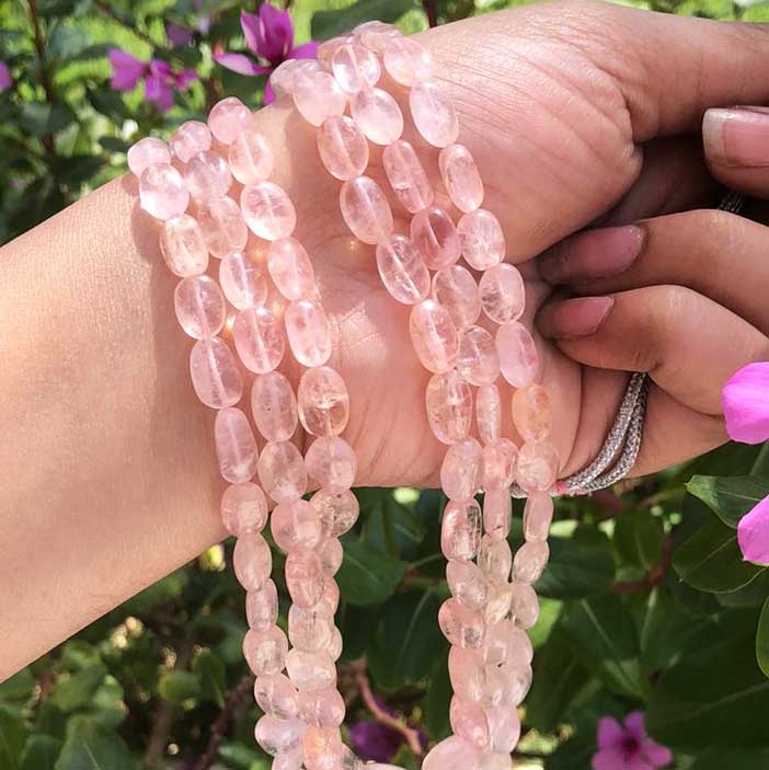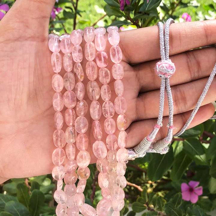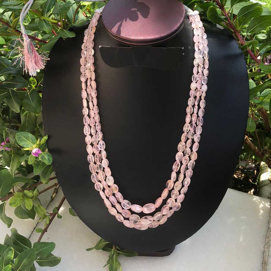 475 Ct. 3 Strands Of Genuine Morganite Necklace -Smooth Oval Beads - Rare & Natural Morganite Necklace - Stunning Elegant Necklace - SPB0020