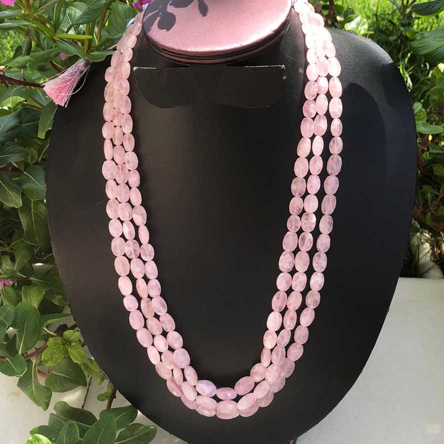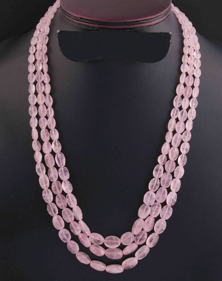 840 Ct. 3 Strands Of Genuine Morganite Necklace - Faceted Oval Beads - Rare & Natural Morganite Necklace - Stunning Elegant Necklace - SPB0022