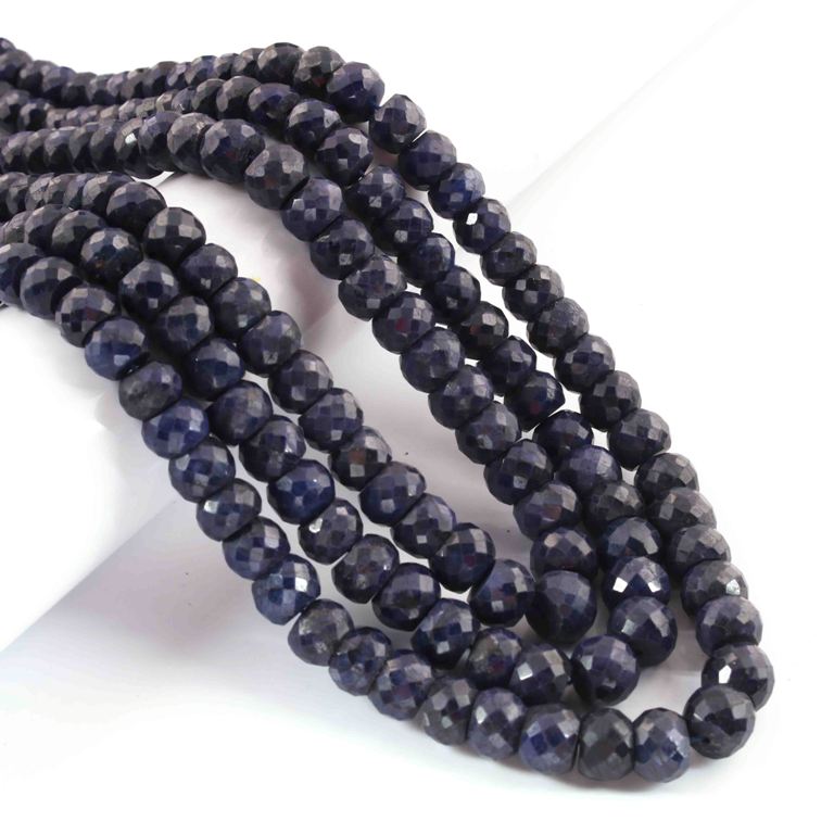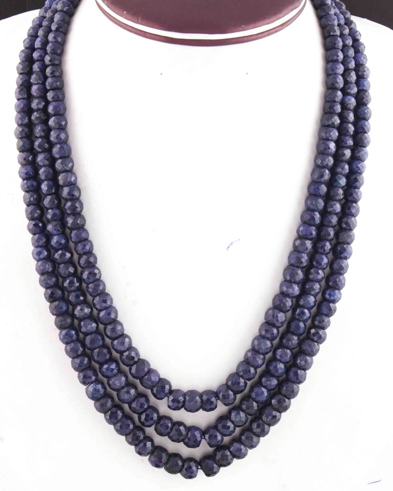 985. Ct 3 Strands Of Dyed Blue Sapphire Necklace - Faceted Rondelle Beads -Stunning Elegant Necklace SPB0135