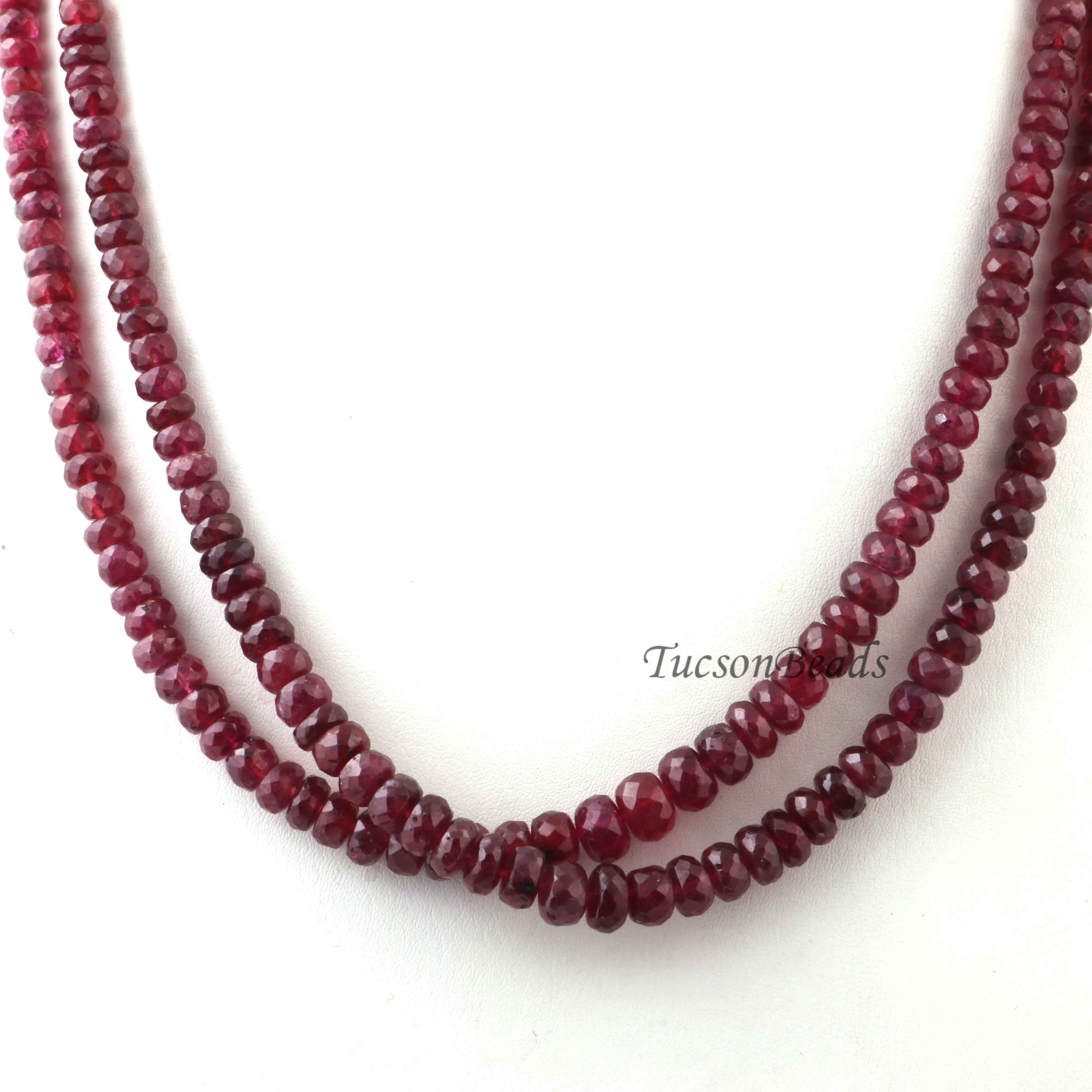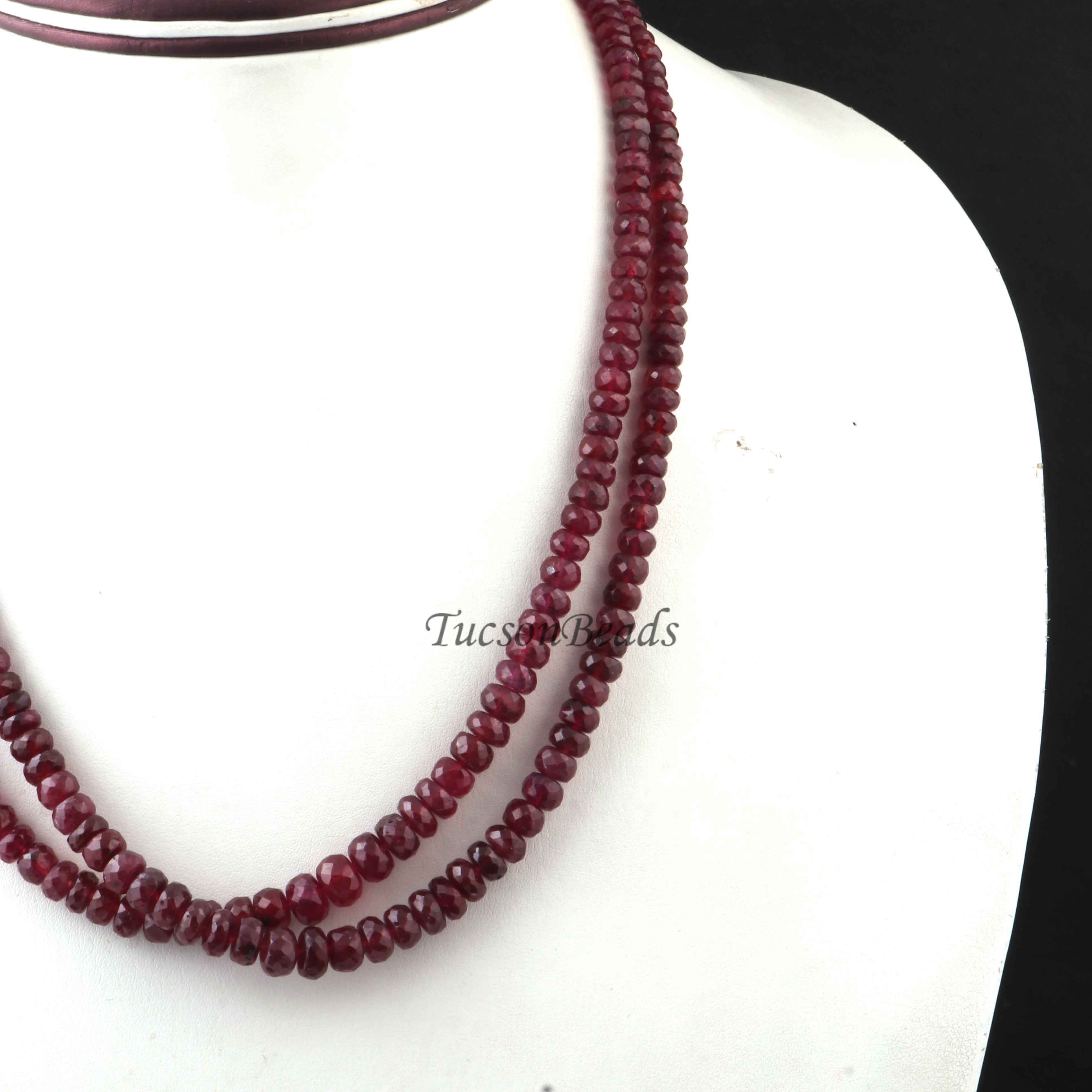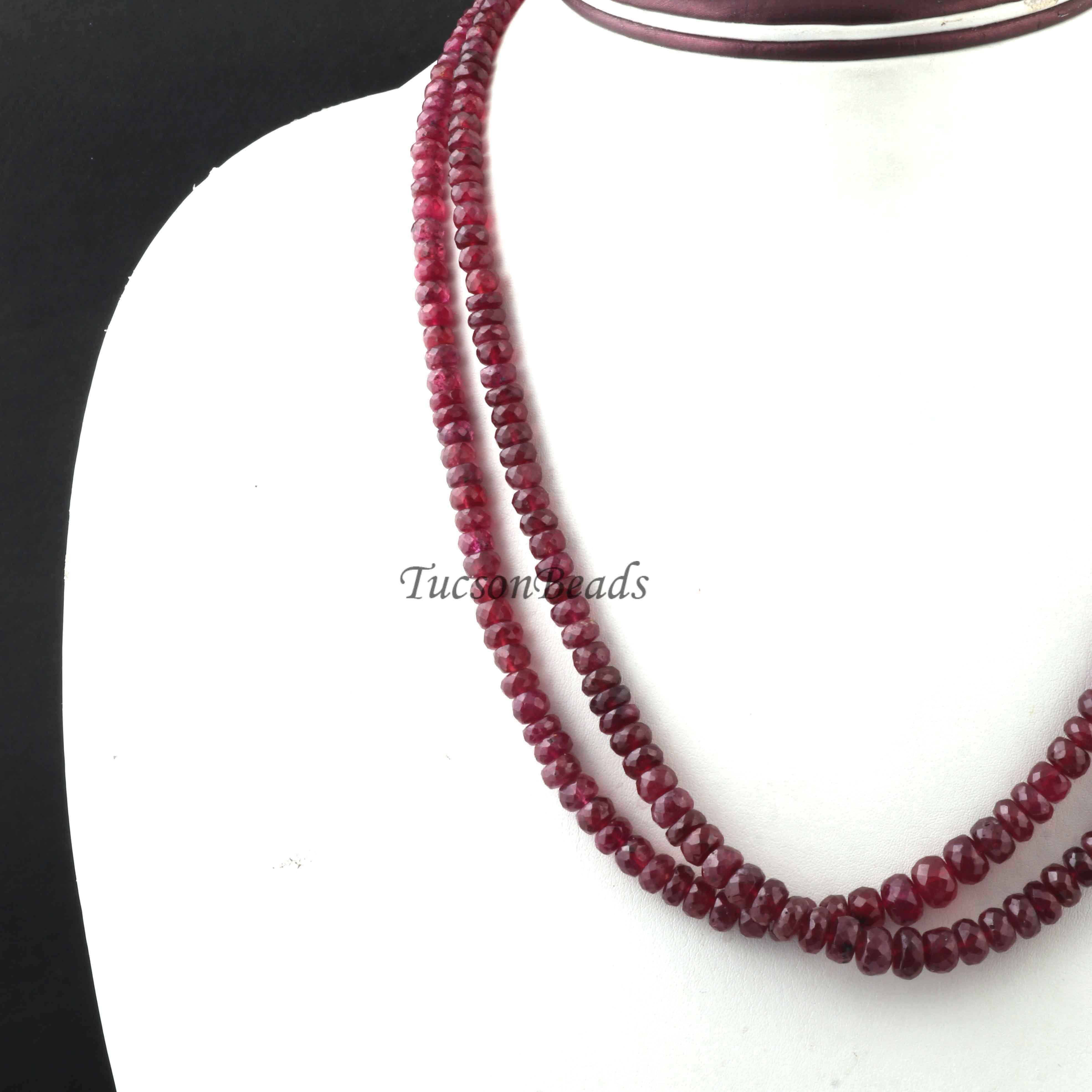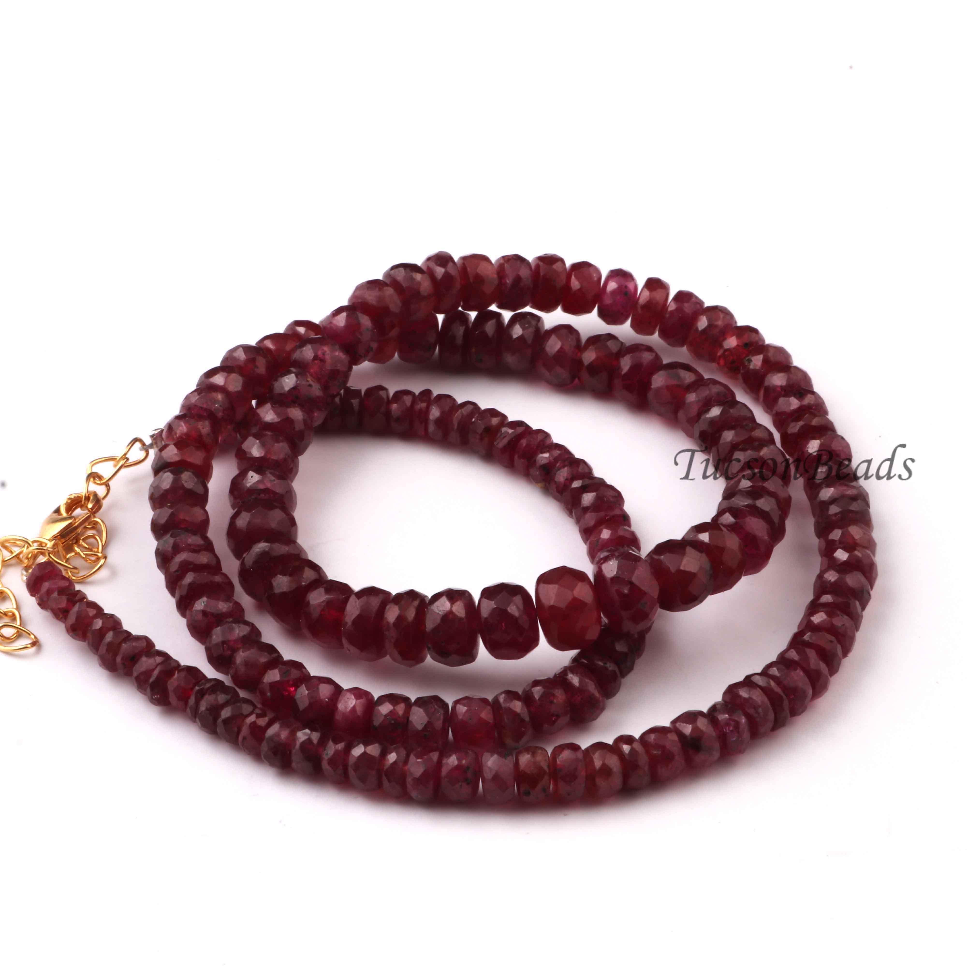 Thai Ruby Beaded Necklace - Necklace With Lock - Long Knotted Beads Necklace -Single Wrap Necklace - Gemstone Necklace (Without Pendant) BR-0405