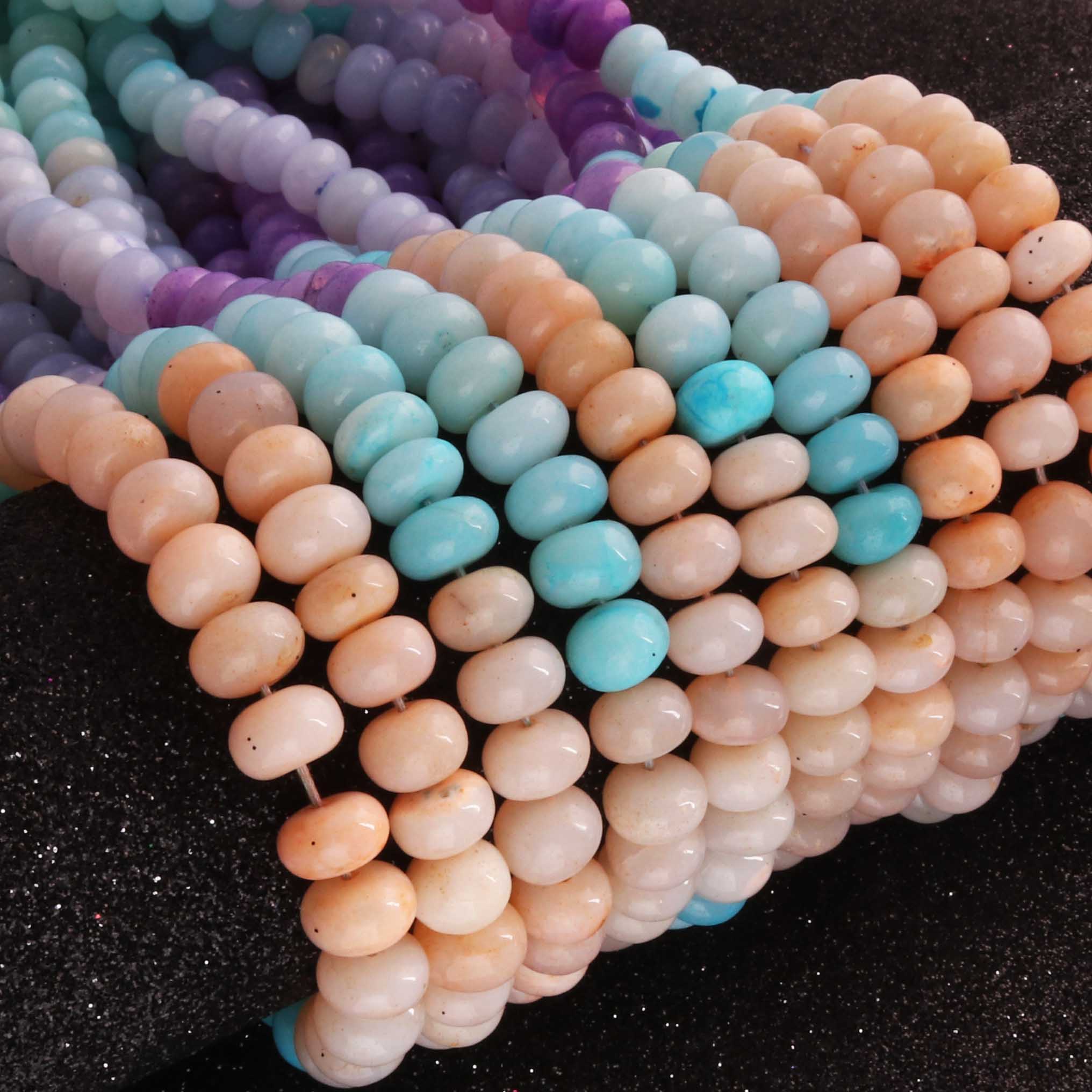 1 Long Strand Beautiful Multi Color Opal Smooth Rondelles Beads-Semi Precious Gem Stone Rainbow Color Plain Opal Beads, - 9mm-10mm 16 inches BR03770