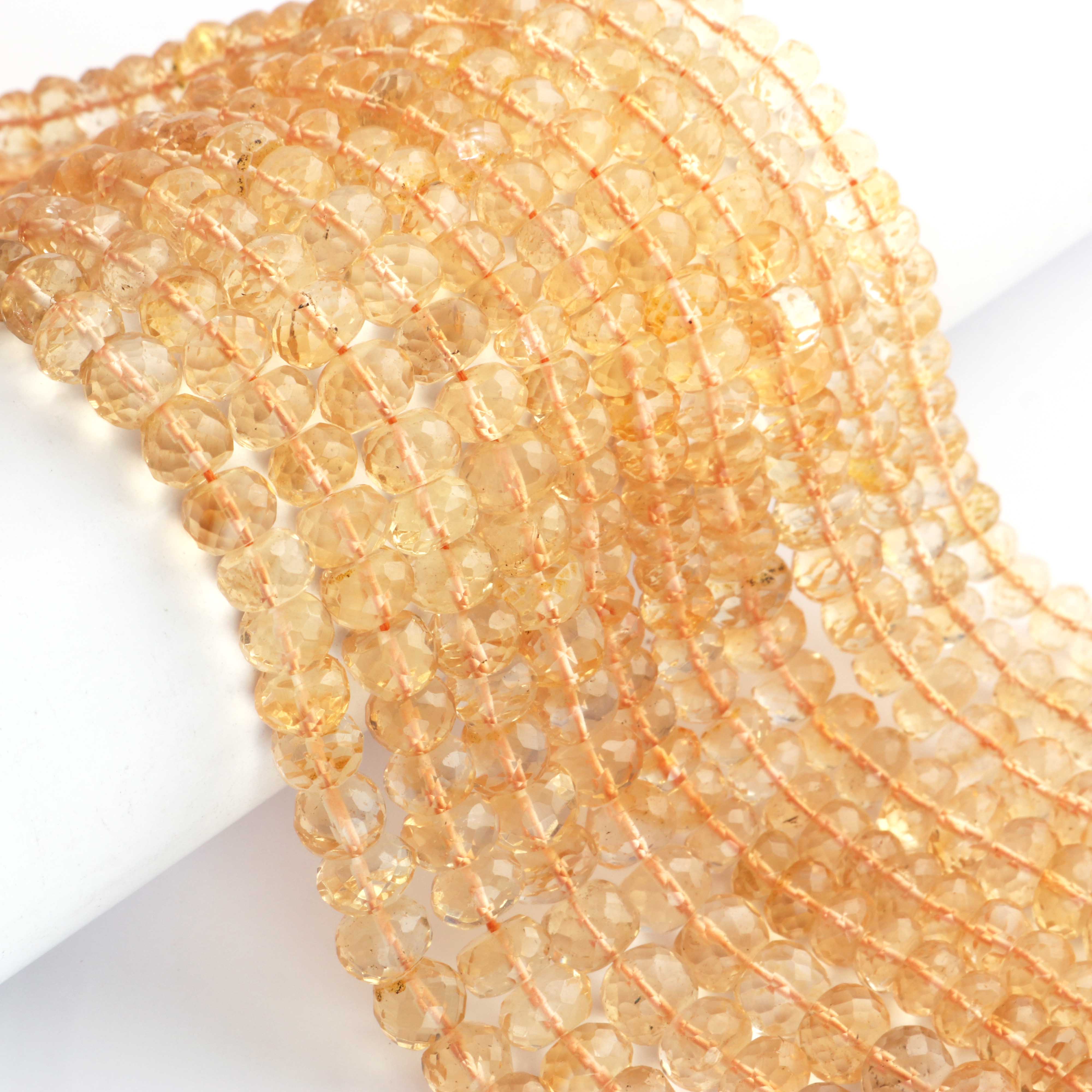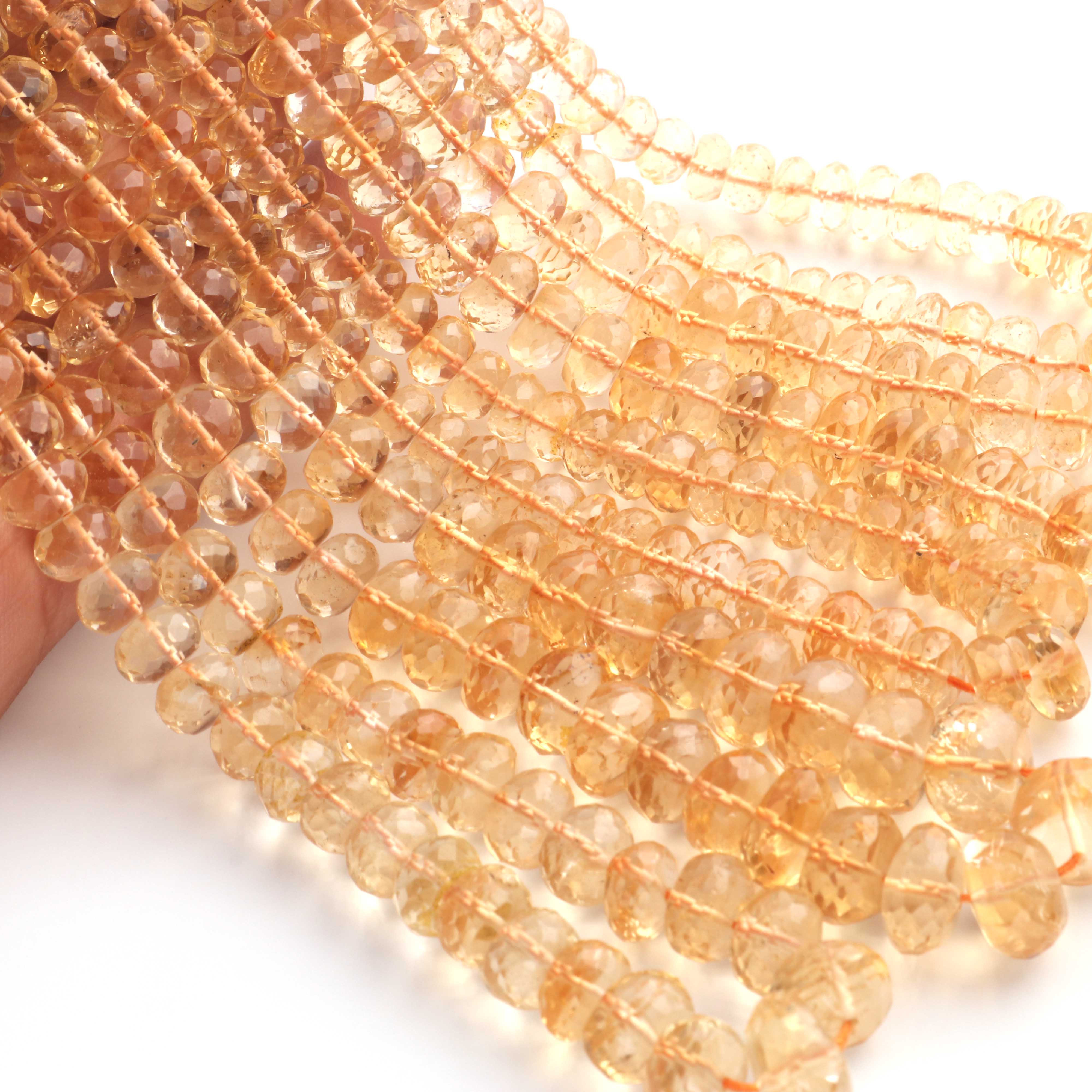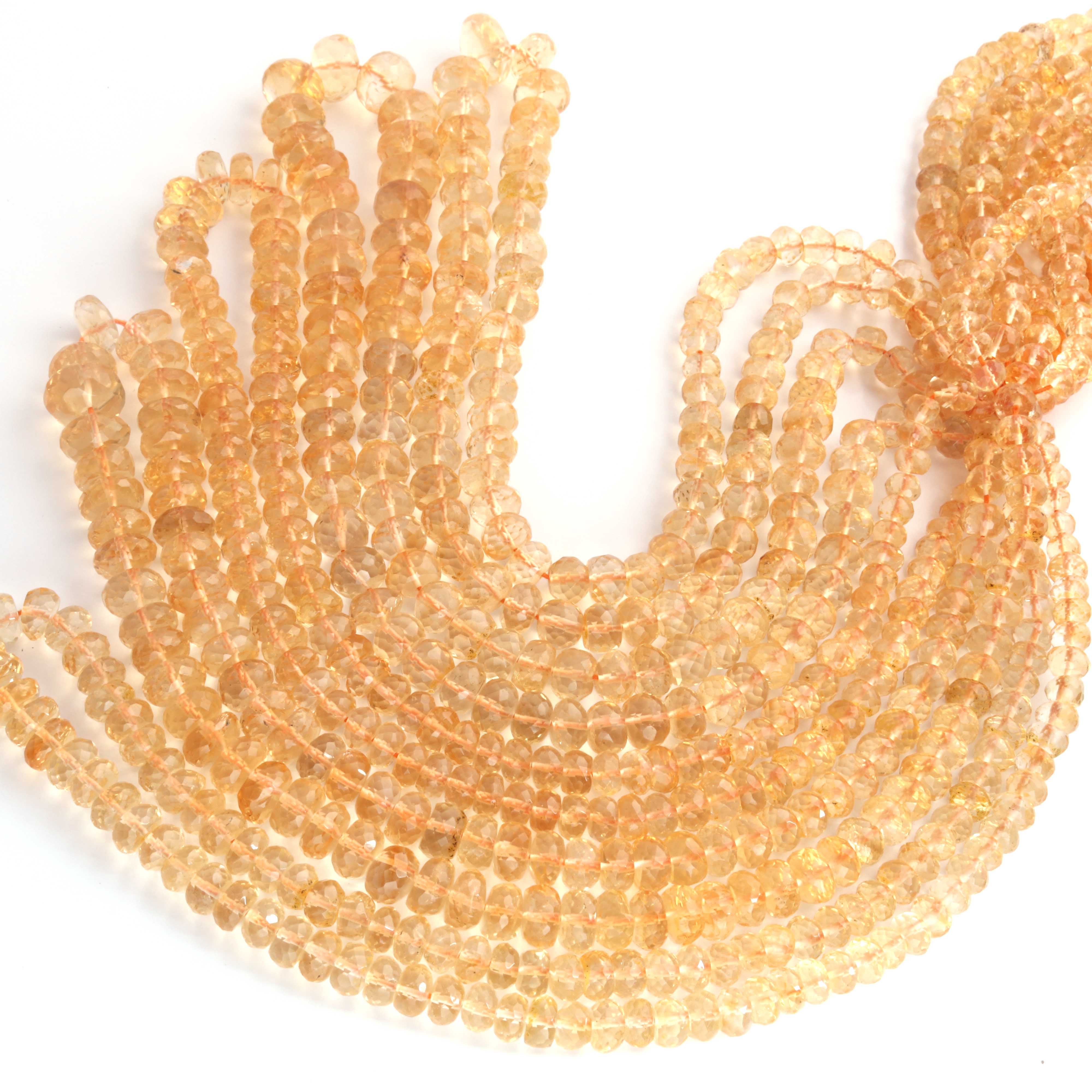 1 Long Strand Citrine Faceted Rondelles -Semi Precious Gemstone Citrine Rondelles Beads- 4mm-10mm 16 Inches BR03709